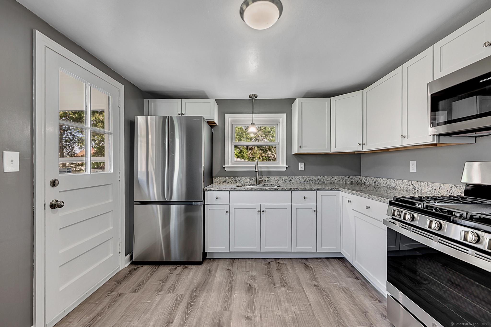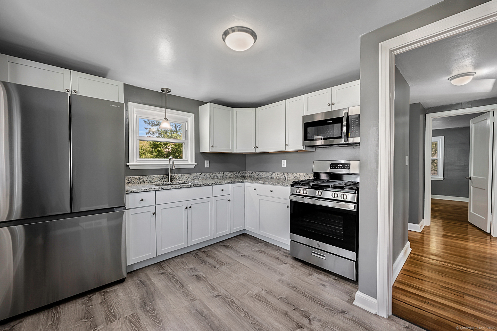 This charming 4-bedroom home has been fully updated and is move-in ready! Step inside to find a brand-new kitchen featuring modern cabinetry, stainless steel appliances, and sleek finishes. The bathroom has been completely renovated with stunning tile work, offering a fresh and stylish retreat. Throughout the home, you'll enjoy refinished hardwood floors, fresh paint, and brand-new windows that fill the space with natural light. The flexible floor plan offers 2 bedrooms on the main level and 2 bedrooms on the upper level. The lower-level recreation room includes a heating vent, adding the potential for over 200 square feet of additional living space, while the unfinished storage area provides over 300 square feet of additional storage space. Outside, you'll find a detached garage, a carport, and a spacious backyard, offering plenty of room for parking, storage, and outdoor enjoyment. Located in a desirable Hartford neighborhood, this property is close to schools, parks, shopping, and transportation. This beautifully updated home is perfect for buyers seeking a blend of charm, modern finishes, and convenience!