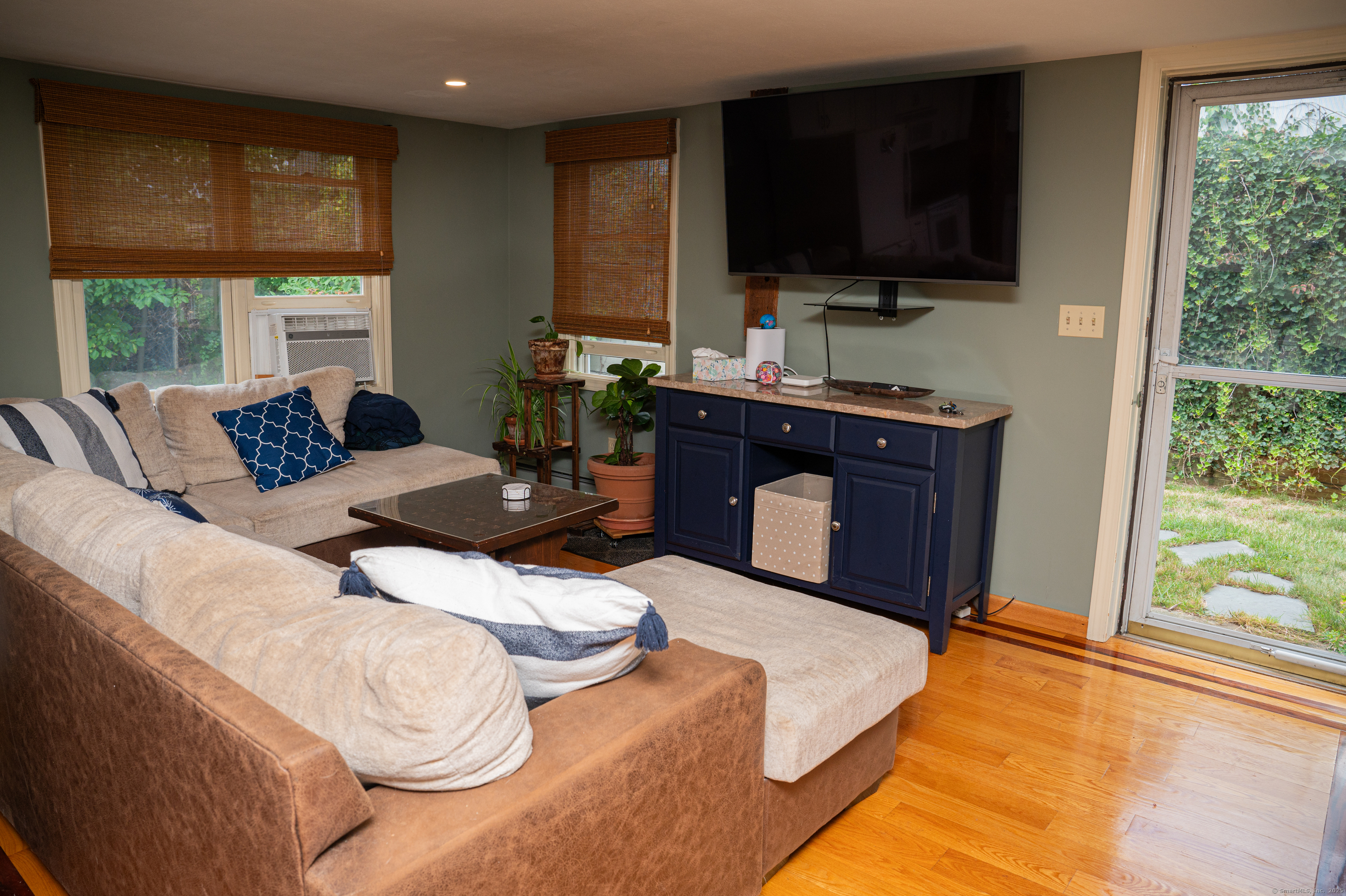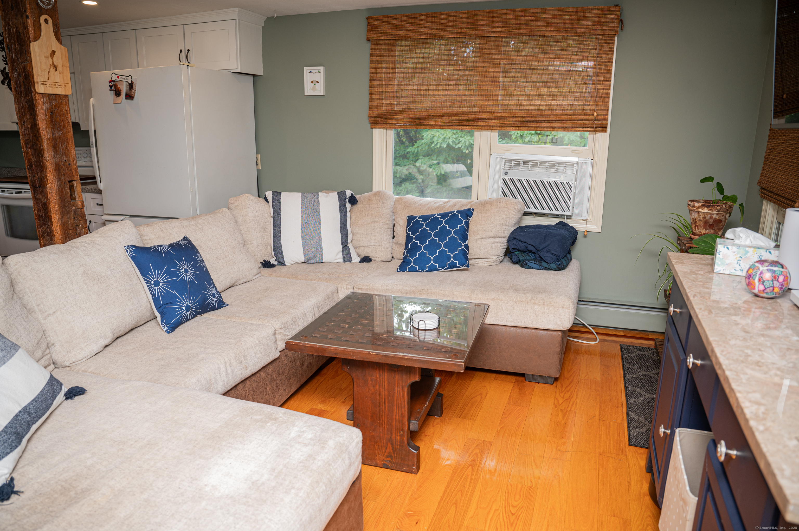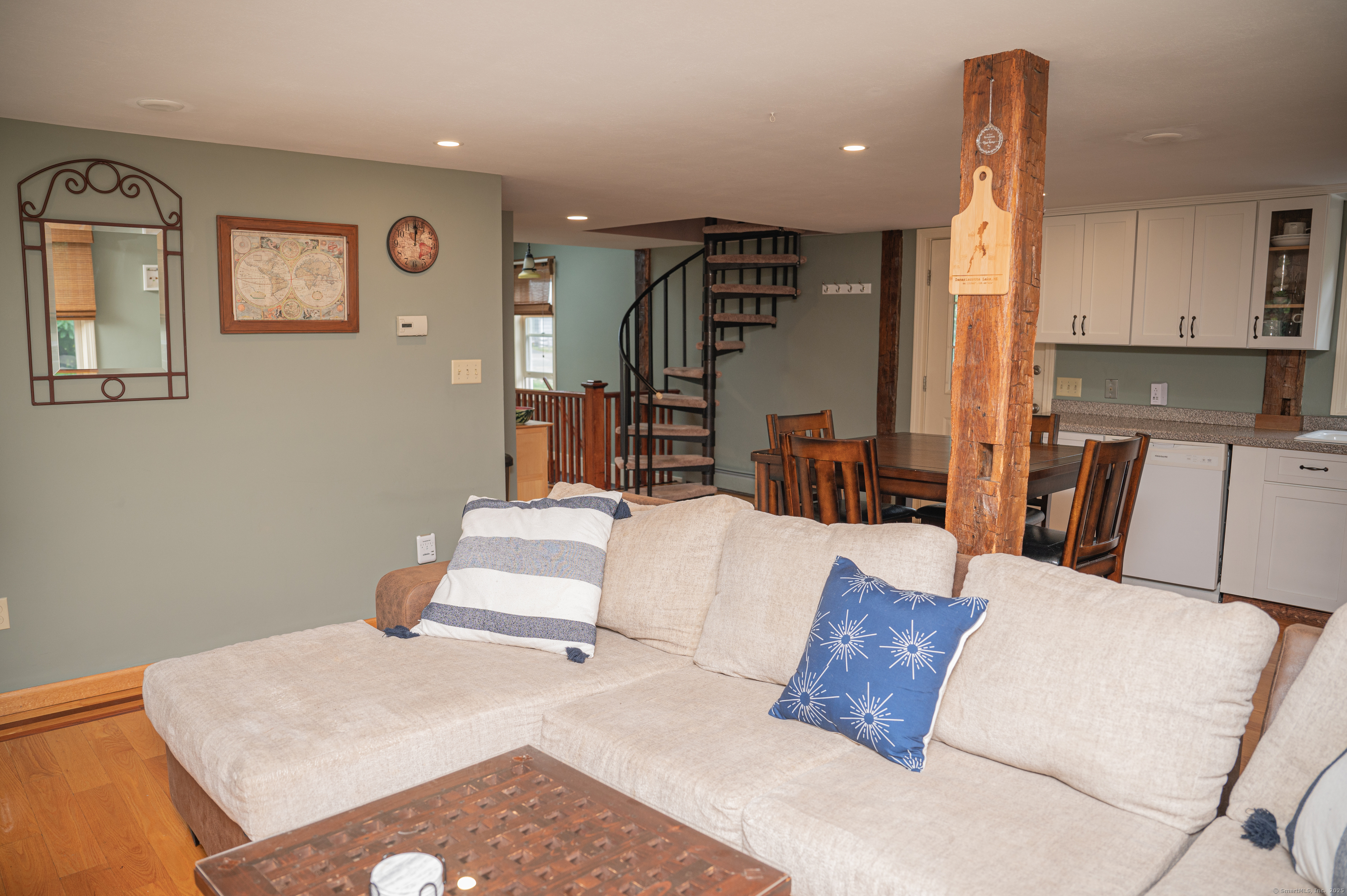CENTER of TOWN! Walk to the green and Branford River. GREAT Condo Alternative! So tranquil. 2 Great decks to enjoy nice view and the sea-breeze. You can live on one floor if you wish, Kitchen, bedroom, living room, full bath and laundry all one level. The lower level has a beautiful inlaid wood floor, closet space and walk out to the back driveway. This house has parking in the front on Chestnut Street and off the back from cul-de-sac of Beach Place. The lower level even has a place to keep your Kayak. No Flood Insurance Needed! Town lists Sq ft as 966 however actual living space is 759 sq ft main floor, 207 sq ft upper floor, and 414 sq ft lower level. Basement is dry and guaranteed by Basement Systems.