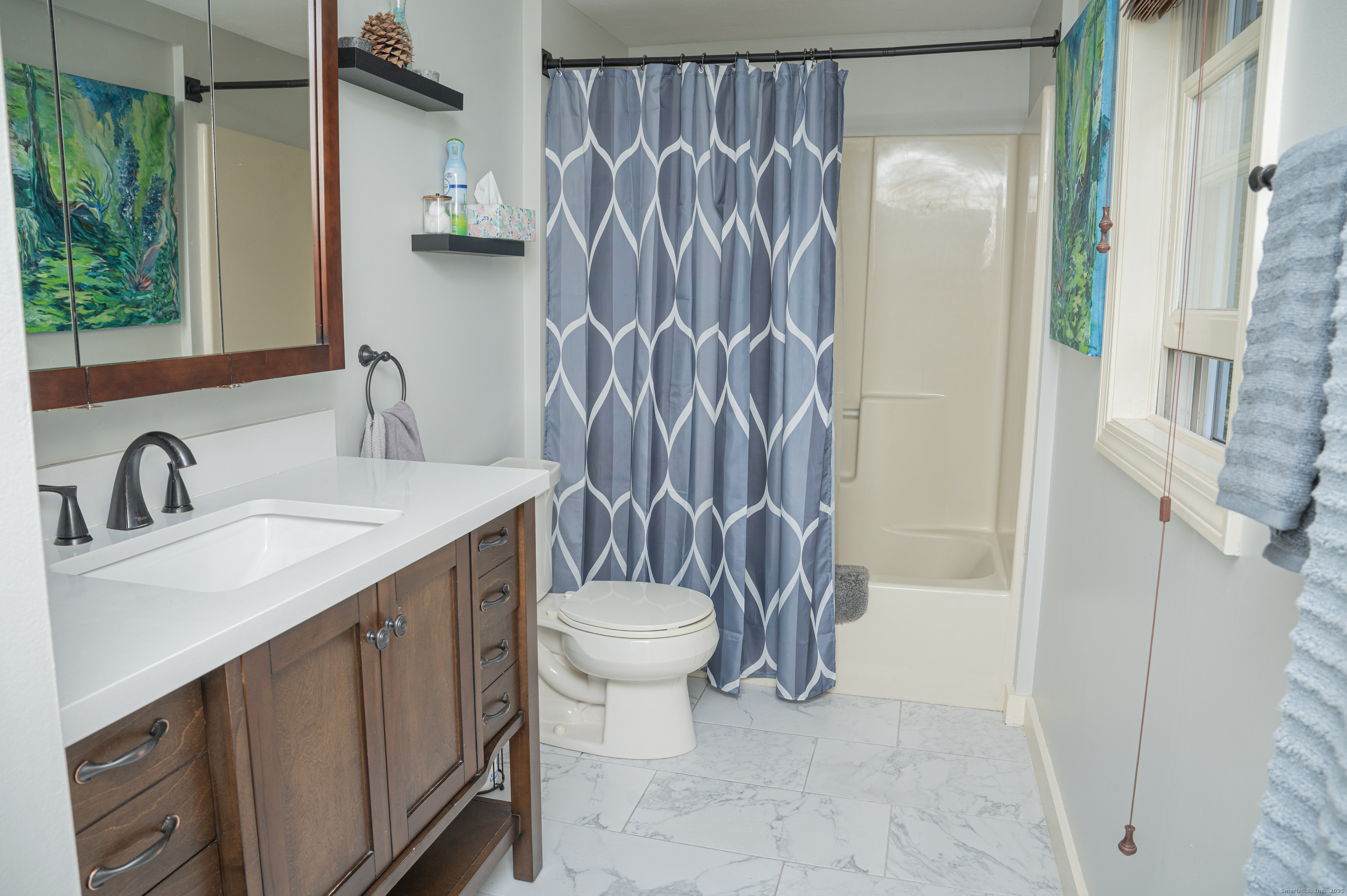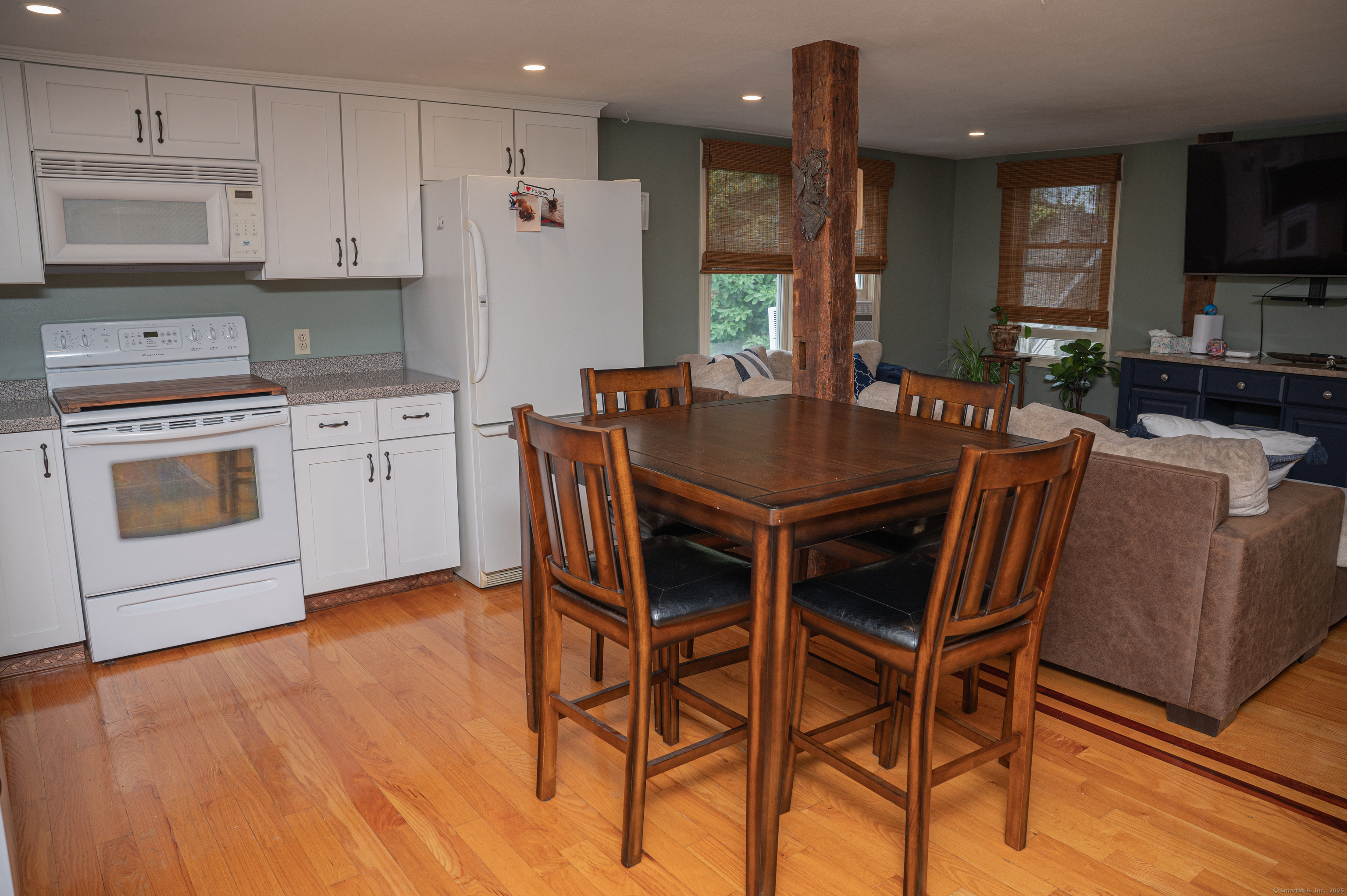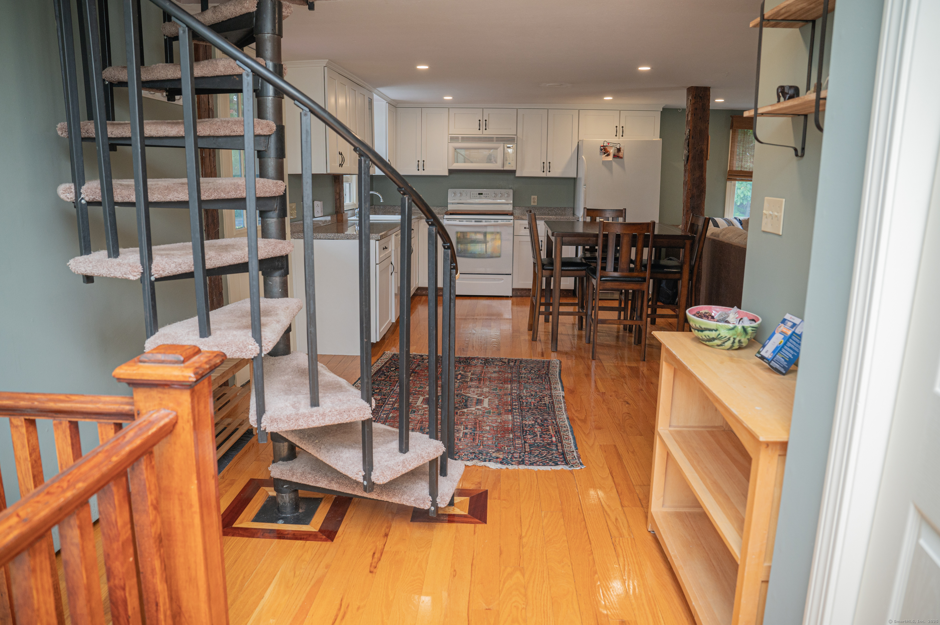 CENTER of TOWN! Walk to the green and Branford River. GREAT Condo Alternative! So tranquil. 2 Great decks to enjoy nice view and the sea-breeze. You can live on one floor if you wish, Kitchen, bedroom, living room, full bath and laundry all one level. The lower level has a beautiful inlaid wood floor, closet space and walk out to the back driveway. This house has parking in the front on Chestnut Street and off the back from cul-de-sac of Beach Place. The lower level even has a place to keep your Kayak. No Flood Insurance Needed! Town lists Sq ft as 966 however actual living space is 759 sq ft main floor, 207 sq ft upper floor, and 414 sq ft lower level. Basement is dry and guaranteed by Basement Systems.