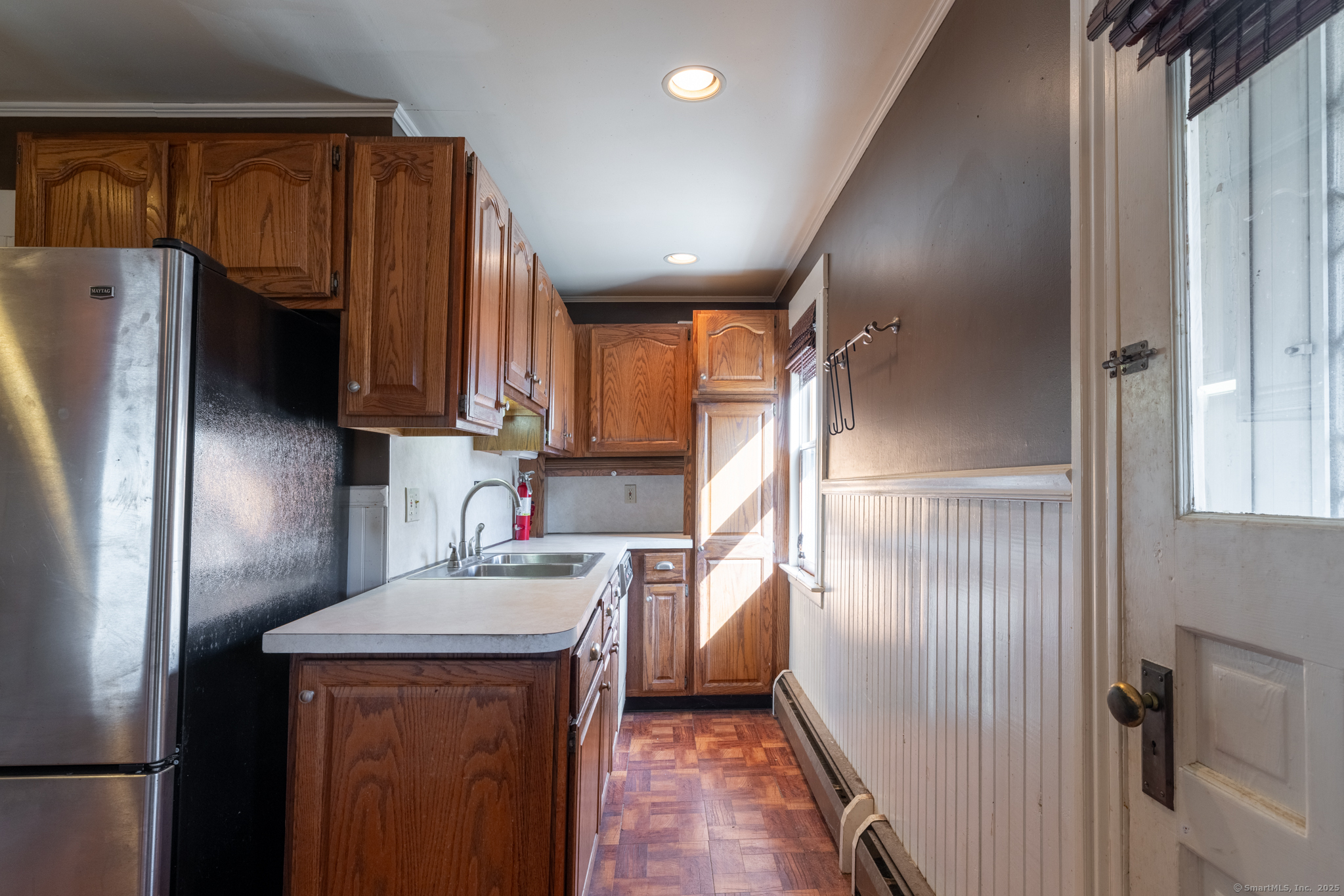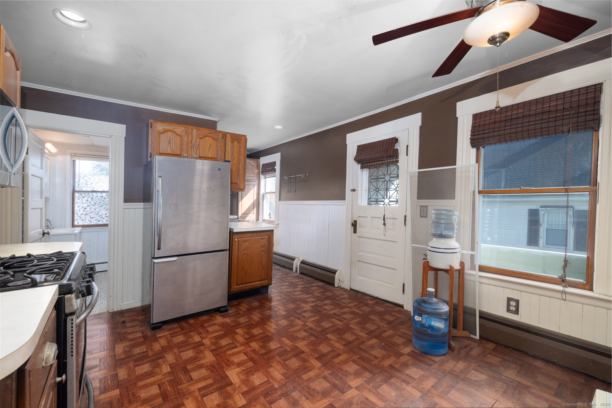 This spacious and versatile 2-family home offers excellent potential for investors or owner-occupants. The first floor unit has been beautifully renovated, featuring 2 bedrooms, a large open-concept living and dining room, an eat-in kitchen, and the comfort of central air conditioning, perfect for modern living. The second floor unit mirrors the generous layout of the first, with 2 bedrooms, a large living/dining room combo, and a spacious eat-in kitchen. While unrenovated, it offers great bones and tons of upside potential. A finished third floor adds even more flexibility-expand the second unit into a two-story layout or explore the possibility of creating a third apartment (check with local zoning). Outside, enjoy a detached 3 car garage, a long driveway with ample parking, a covered front porch, and multiple porches on the second level ideal for relaxing or entertaining. Conveniently located near shopping, schools, and parks, this home is a rare find with room to grow. Torrington public schools started the school year with a brand-new middle school and brand-new high school. Don't miss your chance to unlock its full potential! Inspections for informational purposes only. Separate utilities. First floor gas heat and hot water. Second floor oil heat, gas hot water.