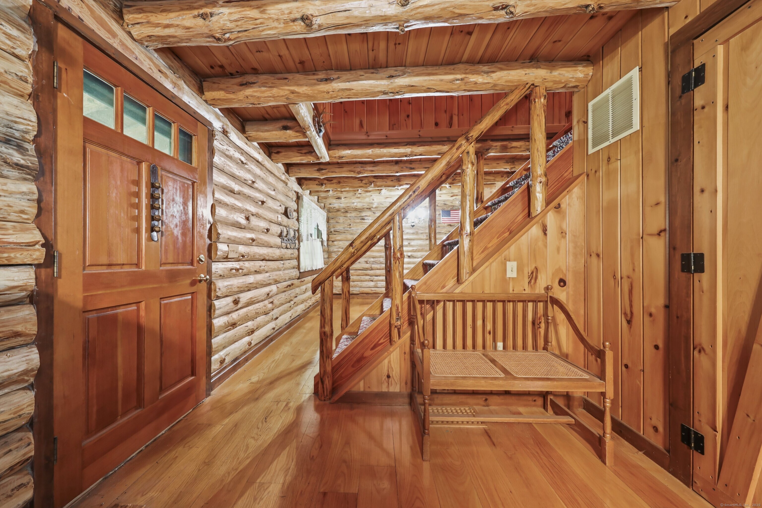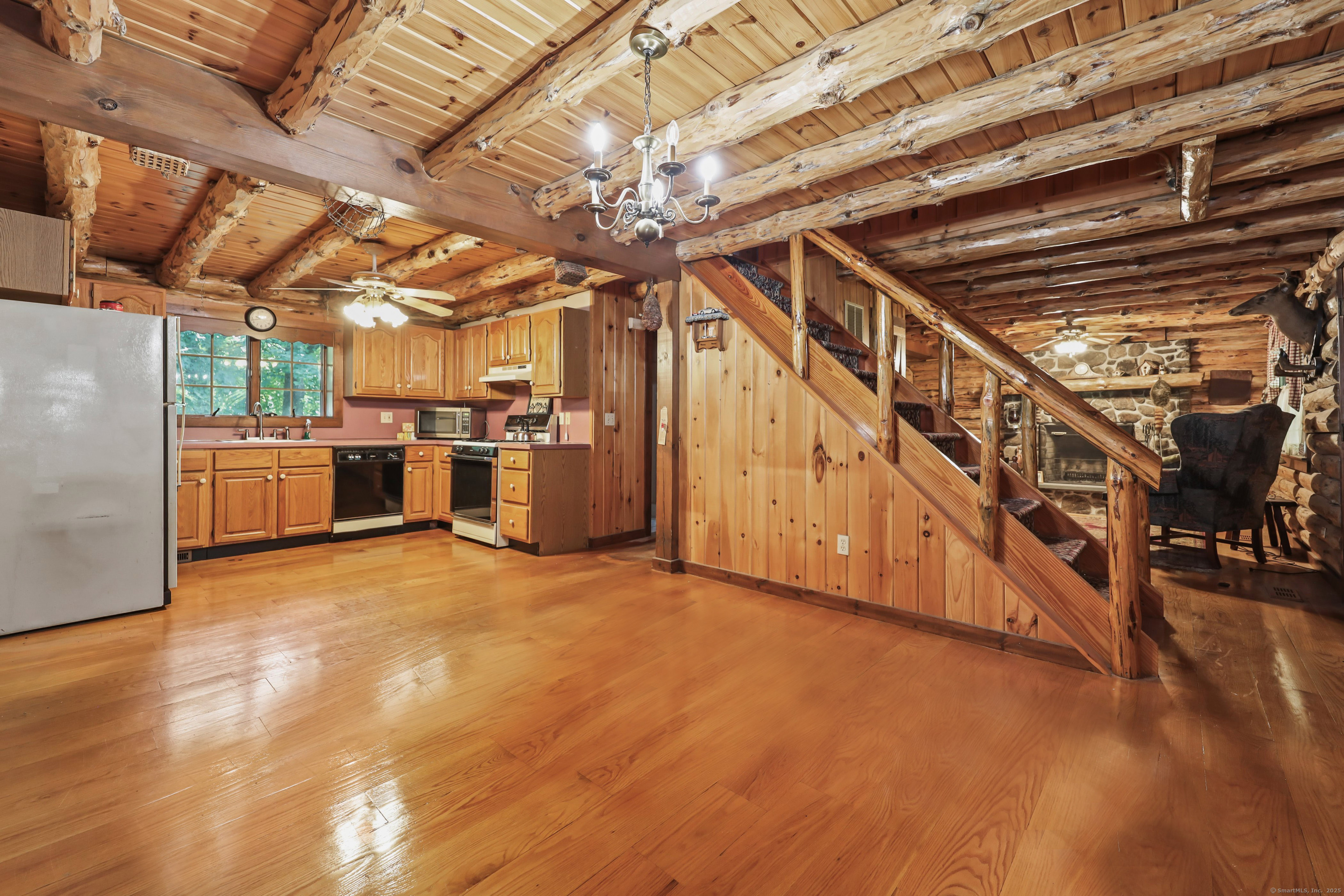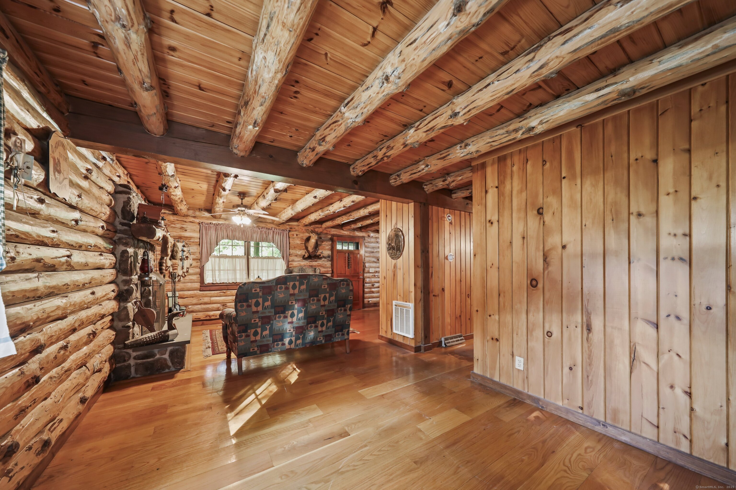 ***HIGHEST AND BEST DEADLINE MONDAY 10/6 @ 3pm *** Tucked away on a tranquil dead-end road in Waterbury this custom-built move in ready 1994 log cabin home blends rustic charm with urban convenience. The home features 3 spacious bedrooms and 2 full baths and has ample space for comfortable living. The inviting living area, with exposed log beams and a cozy fireplace creates a warm atmosphere for relaxing evenings. The kitchen and bathrooms are ready for your personal touch, allowing you to customize these spaces to your taste. A massive two-car garage with soaring ceilings provides abundant storage and workspace for hobbyists, or car enthusiasts. Its convenient location is minutes from the 84 corridor. Just a quick hop in the car gives you quick passage to surrounding towns, dining, and entertainment. This unique log cabin is a rare find in one of Connecticut's major cityscapes . Don't miss your chance to own this distinctive home!