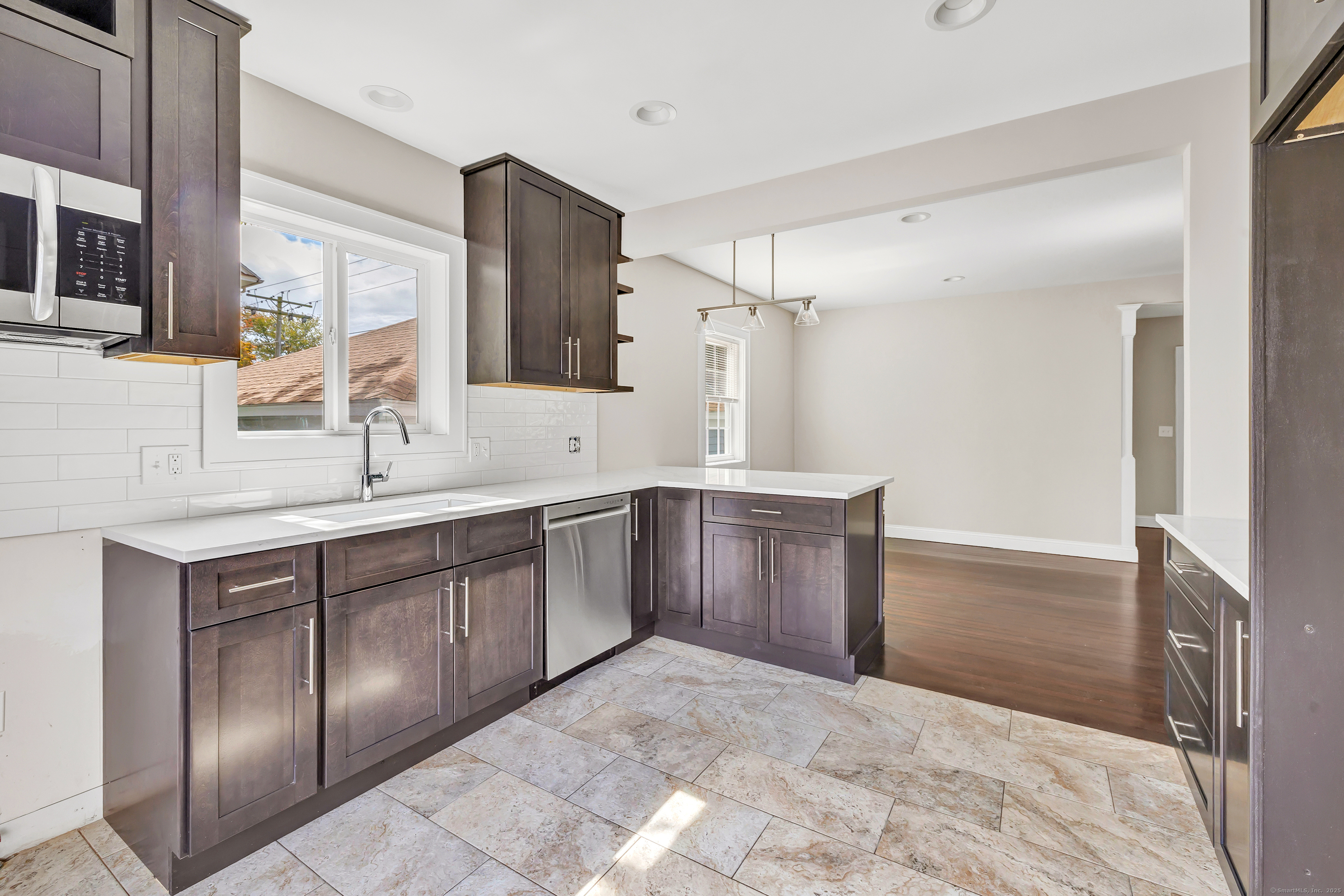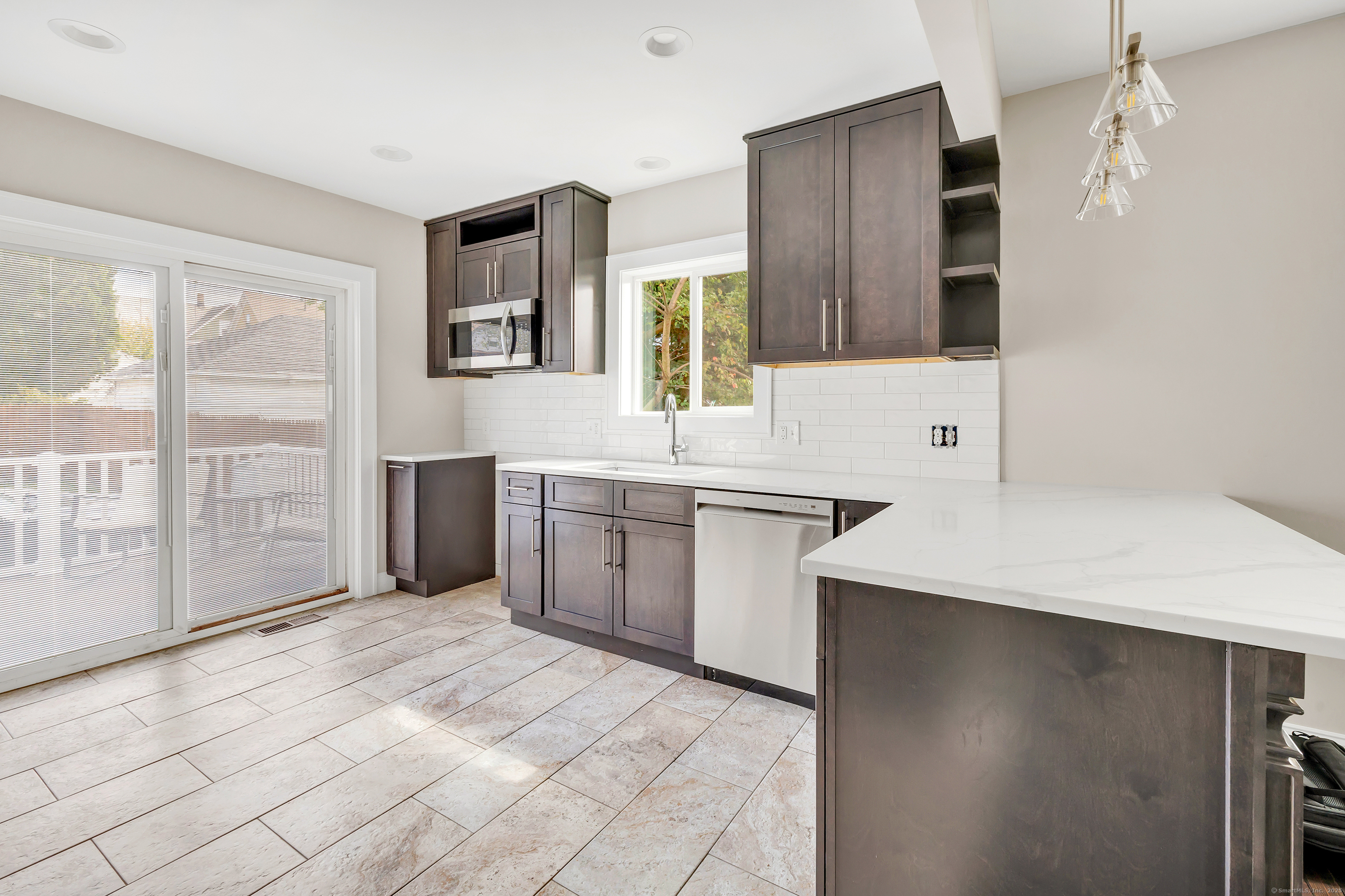 Remodeled colonial with 8 rooms, 5 bedrooms, 3 full baths, finished attic not included in the 1920 square feet of living space, full basement and a 2 car garage detached. Common driveway. Good location in the North End of Bridgeport.