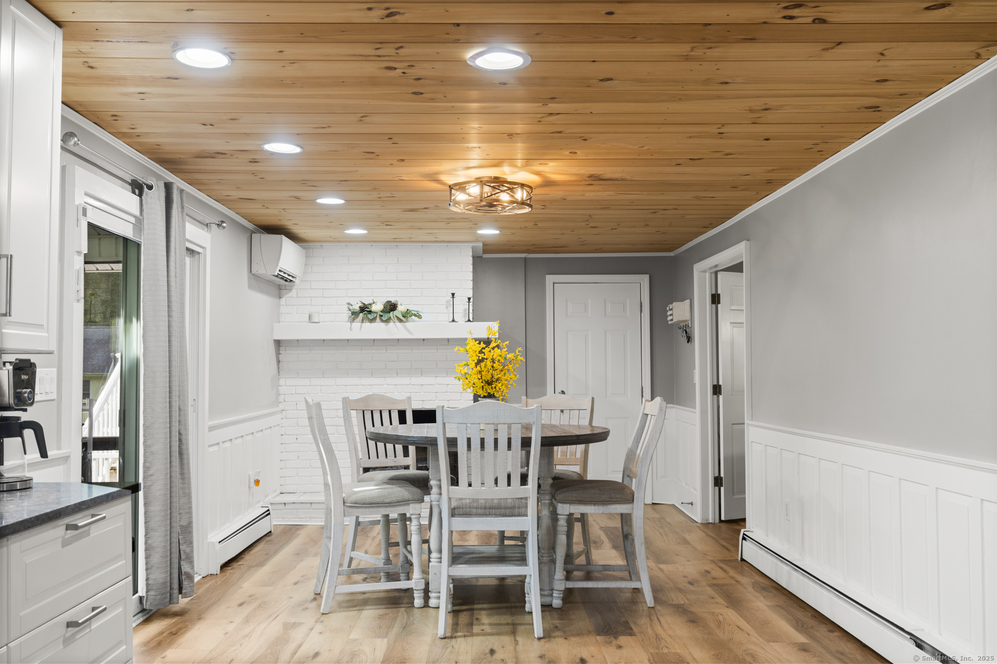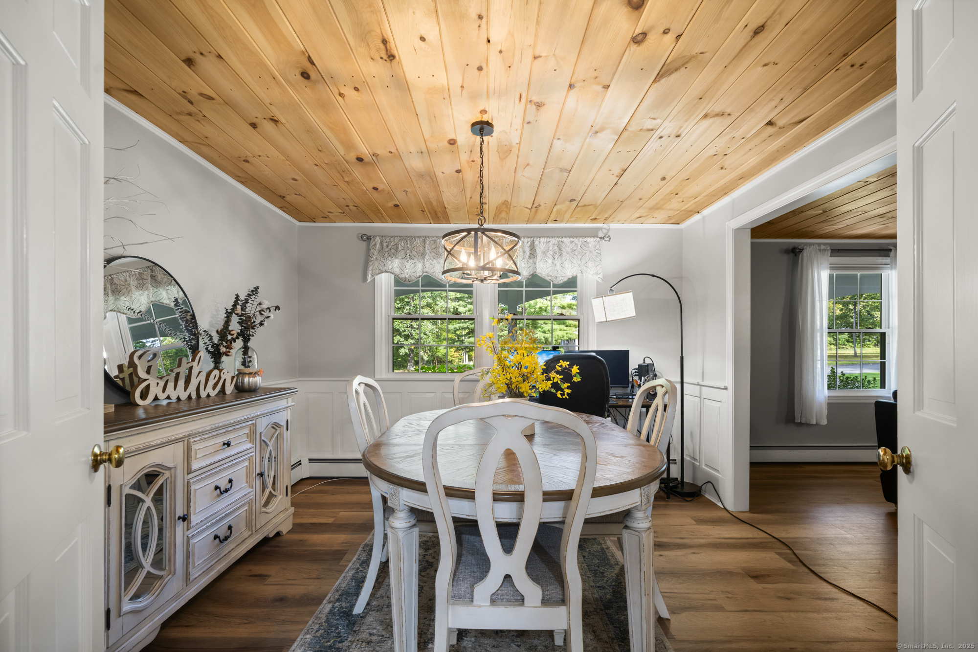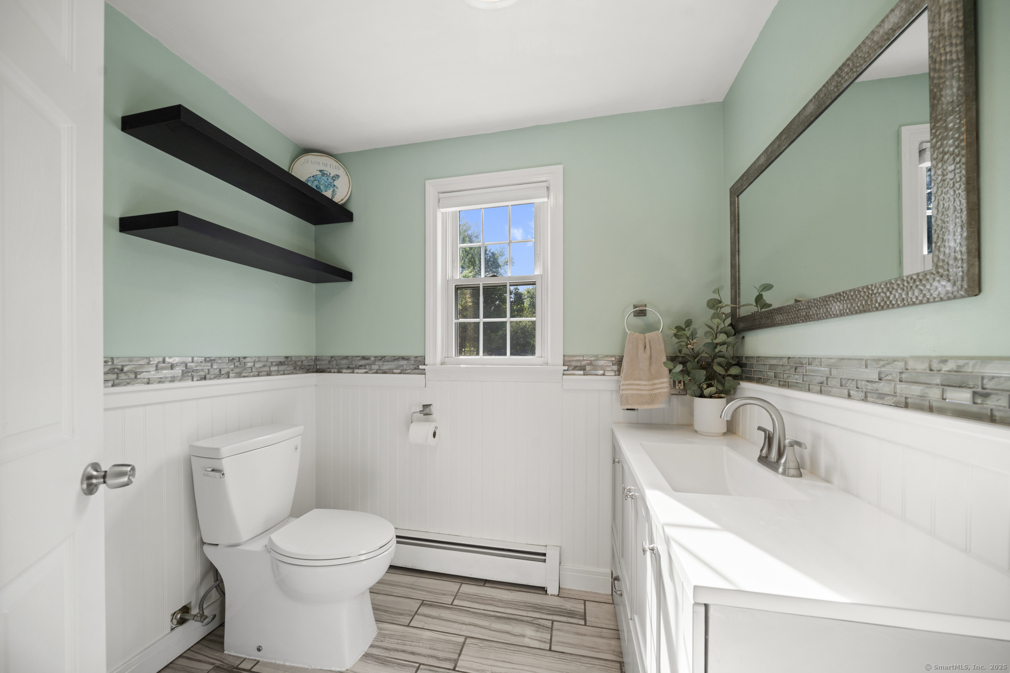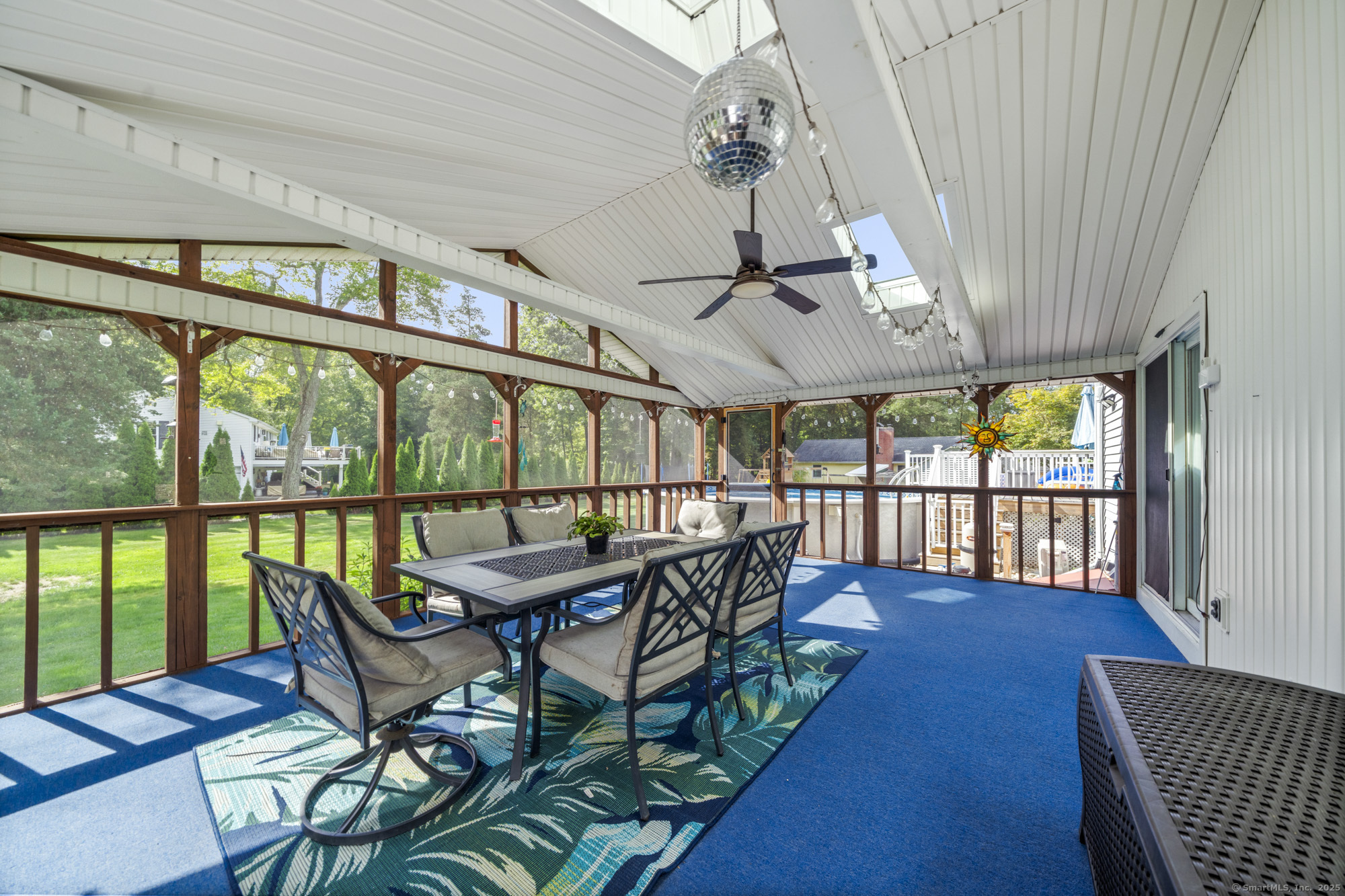 New England charm with THREE levels of living! The circular driveway leads to a welcoming front porch that invites you inside. LVP runs throughout the first floor, with pine tongue & groove ceilings. Fully remodeled kitchen with custom cabinetry, quartz countertops, stainless steel appliances, and a spacious dining area with a white bricked propane fireplace. Sliders from the kitchen lead to a 16x21 covered screened porch which provides the perfect spot to relax or entertain while overlooking the private backyard. The first floor also has a fully updated bath and a private primary suite with a walk-in closet, and renovated bath. Upstairs are three generously sized bedrooms with double closets and ceiling fans, along with a remodeled full bath featuring a double vanity, tub, and shower. The finished lower level has two offices, den, half bath, and wet bar. The finished basement is ideal for working from home or potential in-law use. Recent updates include a new mini-split system (2023), patio roof and skylights (2022), and an above-ground pool with pool deck (2022). A gorgeous flat back yard with firepit, spring-fed pond, oversized two-car garage, Buderus boiler, and sprinkler system. Enjoy all that Somers has to offer with top rated school systems, local shops with charm, and multiple areas to enjoy the outdoors!
