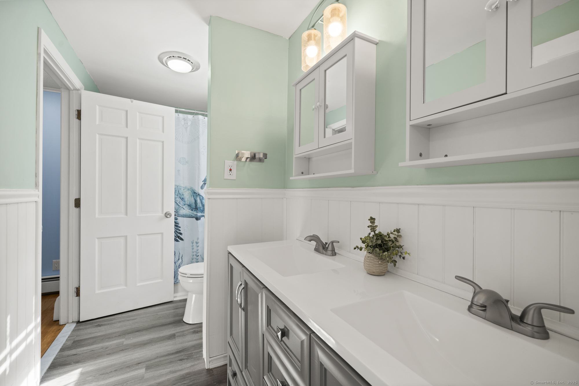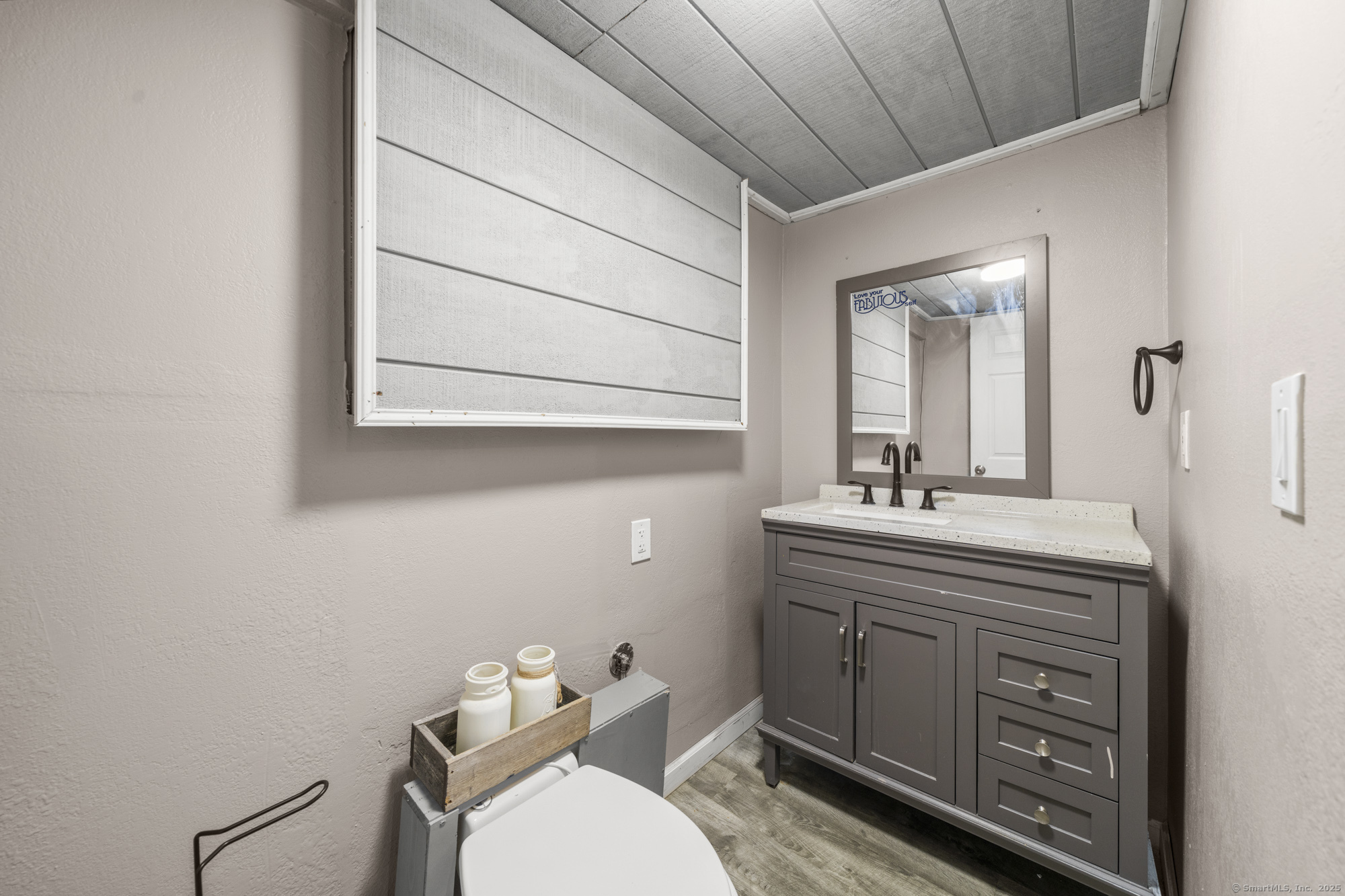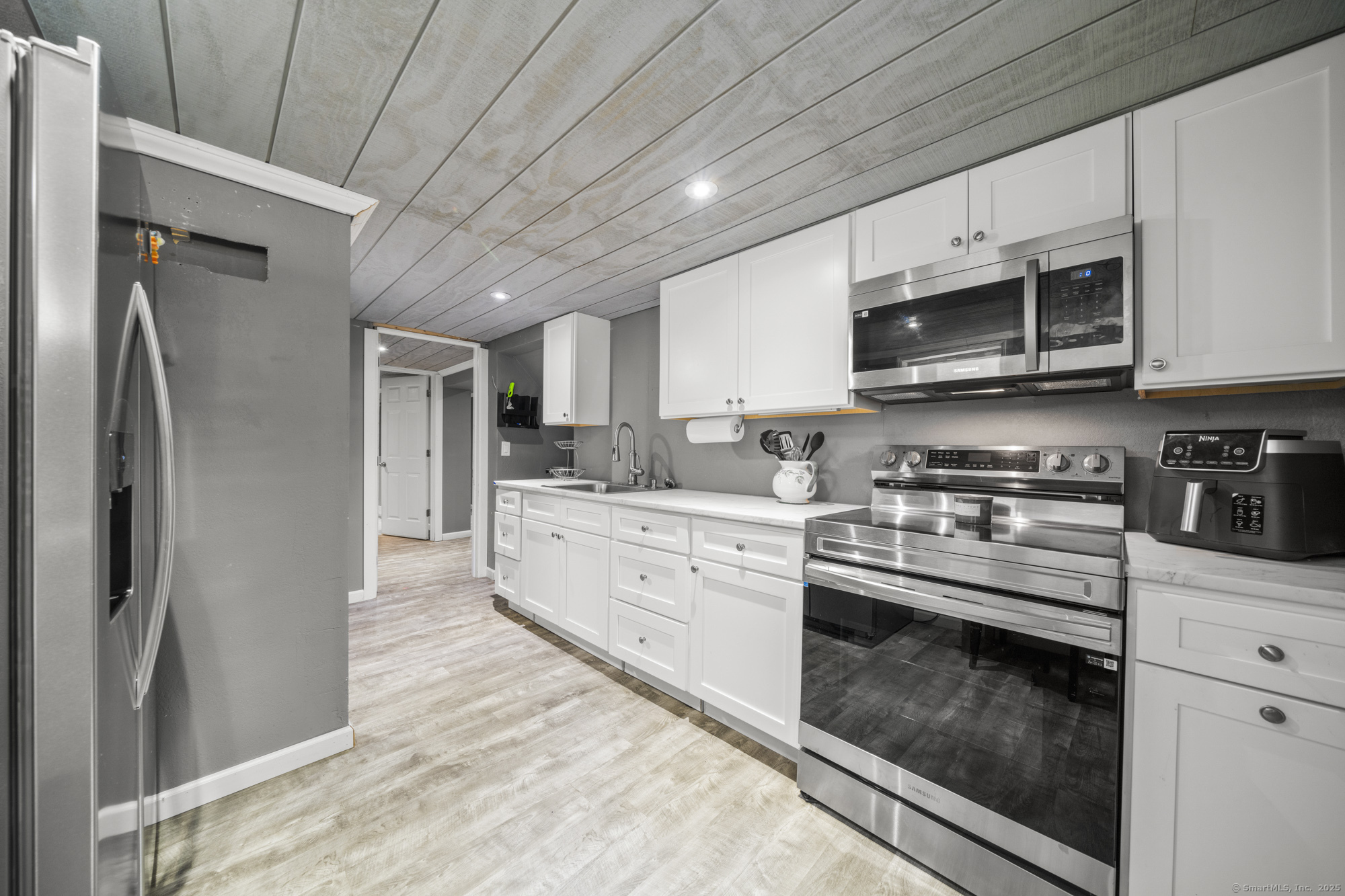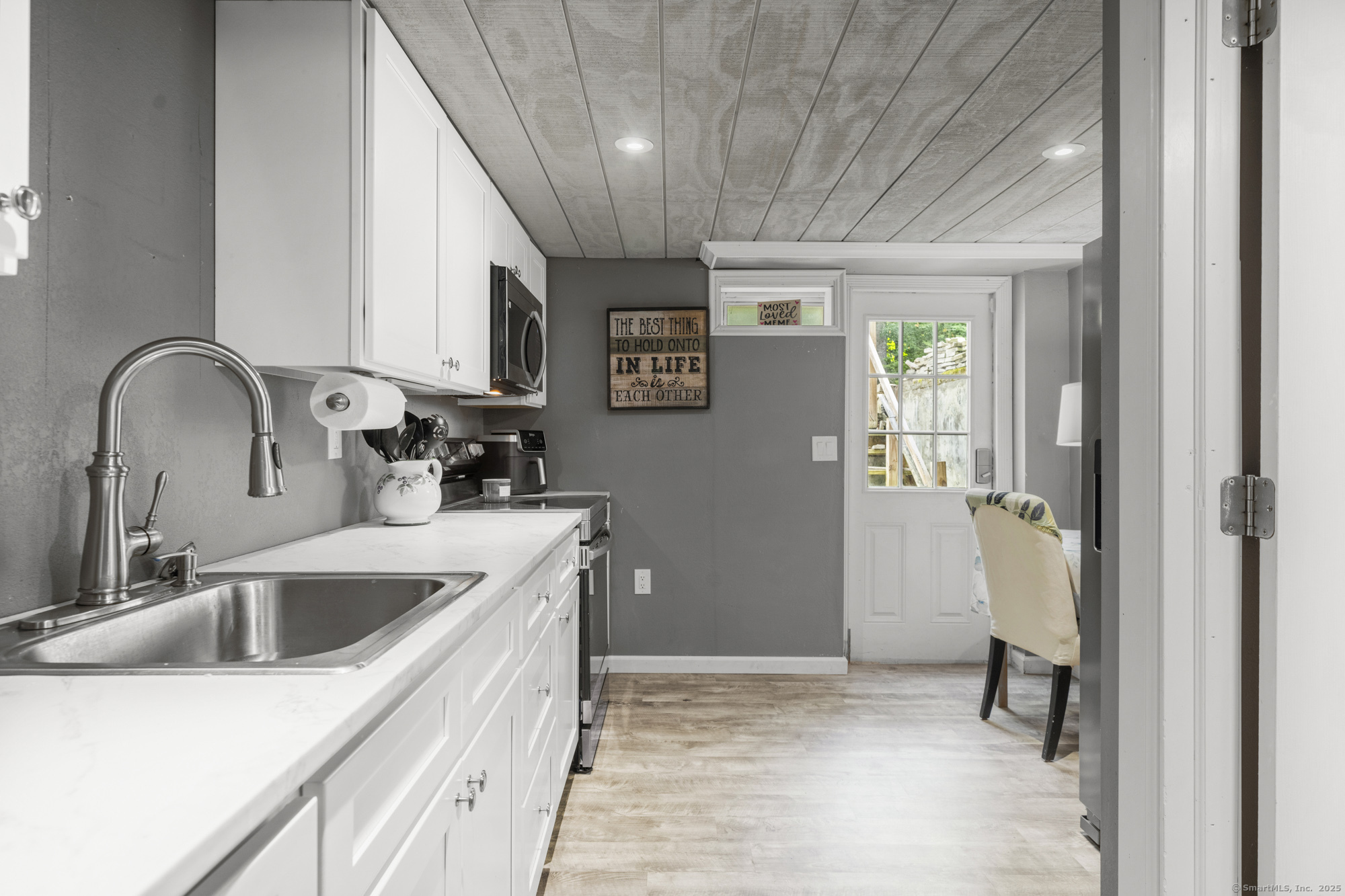 New England charm with THREE levels of living! The circular driveway leads to a welcoming front porch that invites you inside. LVP runs throughout the first floor, with pine tongue & groove ceilings. Fully remodeled kitchen with custom cabinetry, quartz countertops, stainless steel appliances, and a spacious dining area with a white bricked propane fireplace. Sliders from the kitchen lead to a 16x21 covered screened porch which provides the perfect spot to relax or entertain while overlooking the private backyard. The first floor also has a fully updated bath and a private primary suite with a walk-in closet, and renovated bath. Upstairs are three generously sized bedrooms with double closets and ceiling fans, along with a remodeled full bath featuring a double vanity, tub, and shower. The finished lower level has two offices, den, half bath, and wet bar. The finished basement is ideal for working from home or potential in-law use. Recent updates include a new mini-split system (2023), patio roof and skylights (2022), and an above-ground pool with pool deck (2022). A gorgeous flat back yard with firepit, spring-fed pond, oversized two-car garage, Buderus boiler, and sprinkler system. Enjoy all that Somers has to offer with top rated school systems, local shops with charm, and multiple areas to enjoy the outdoors!