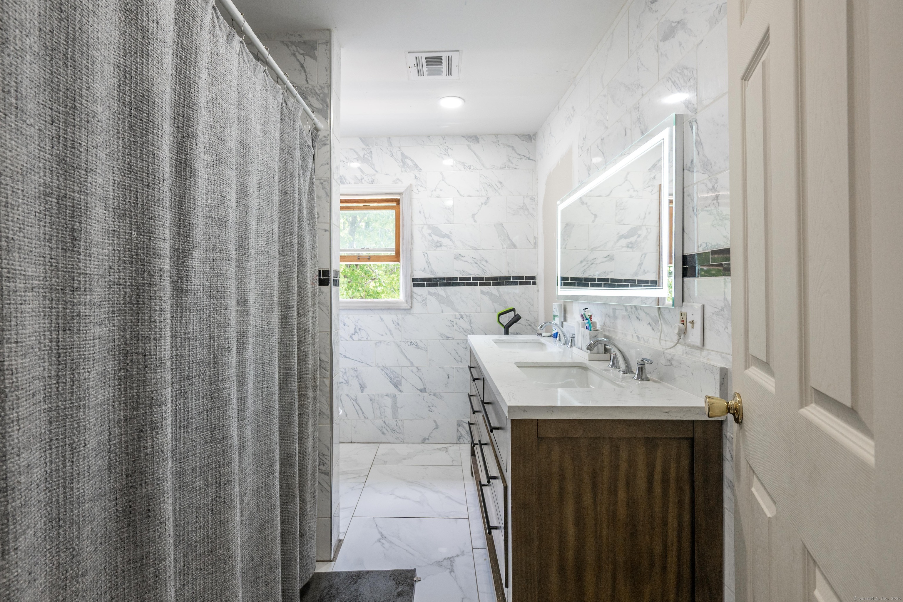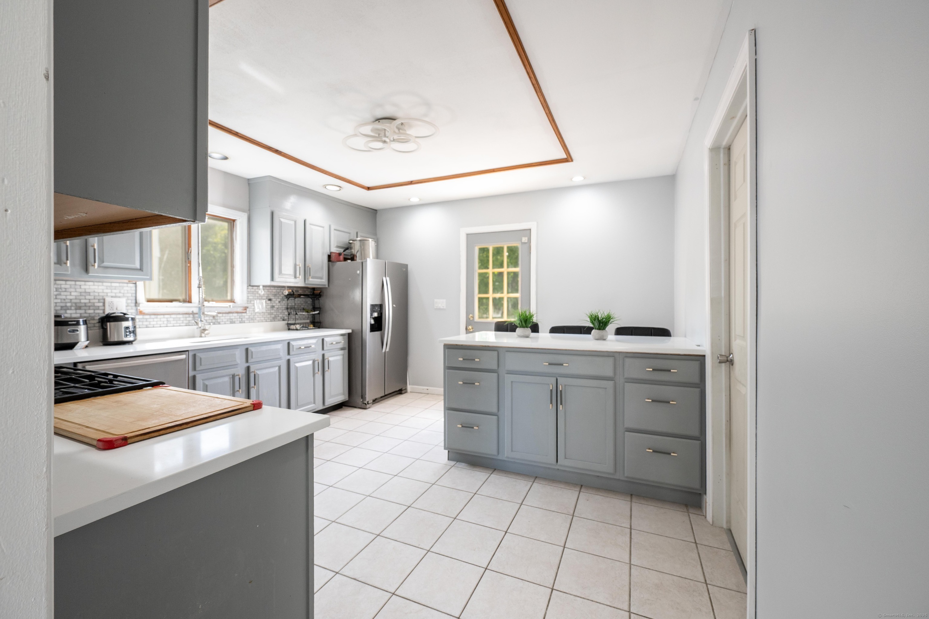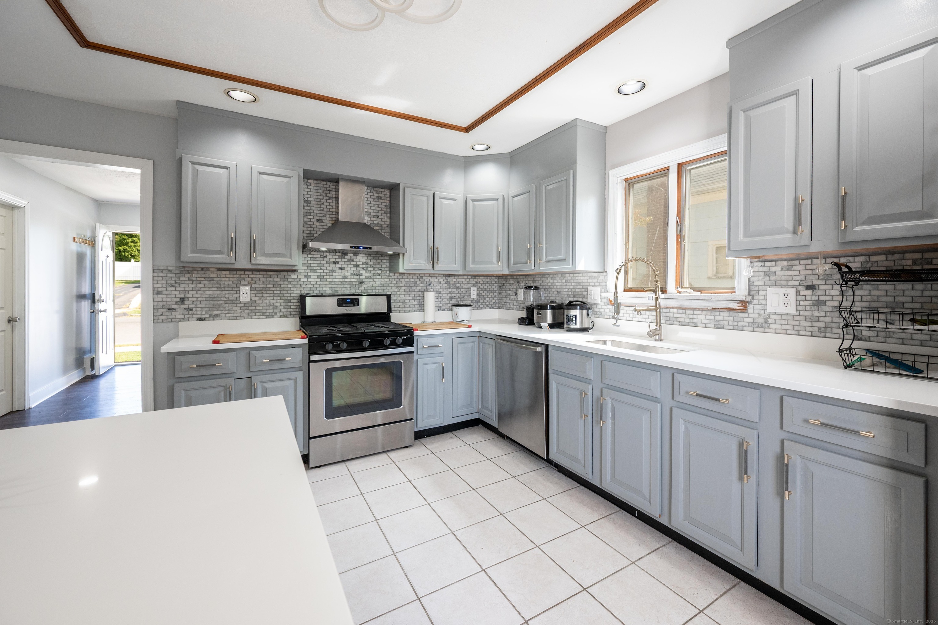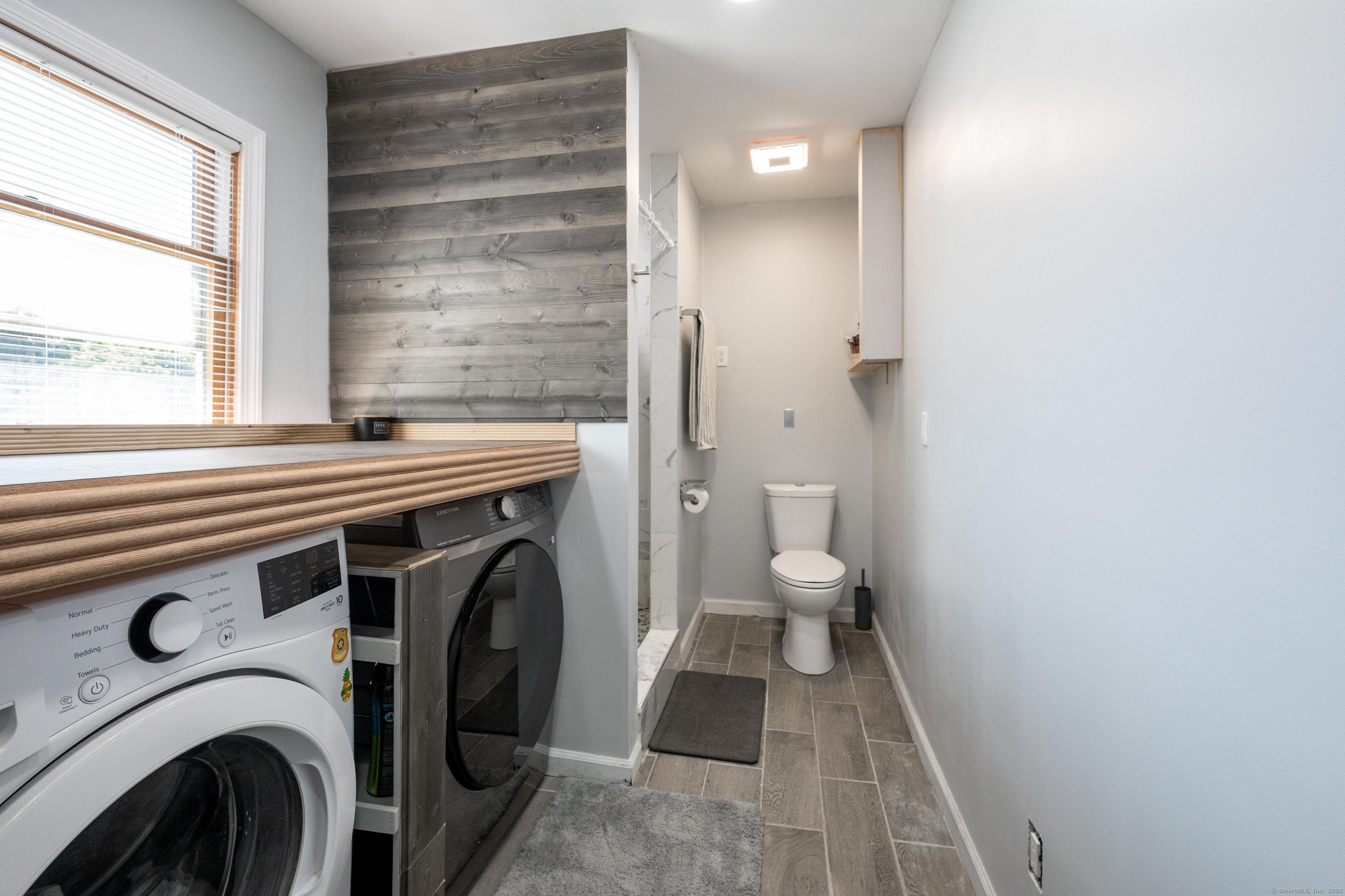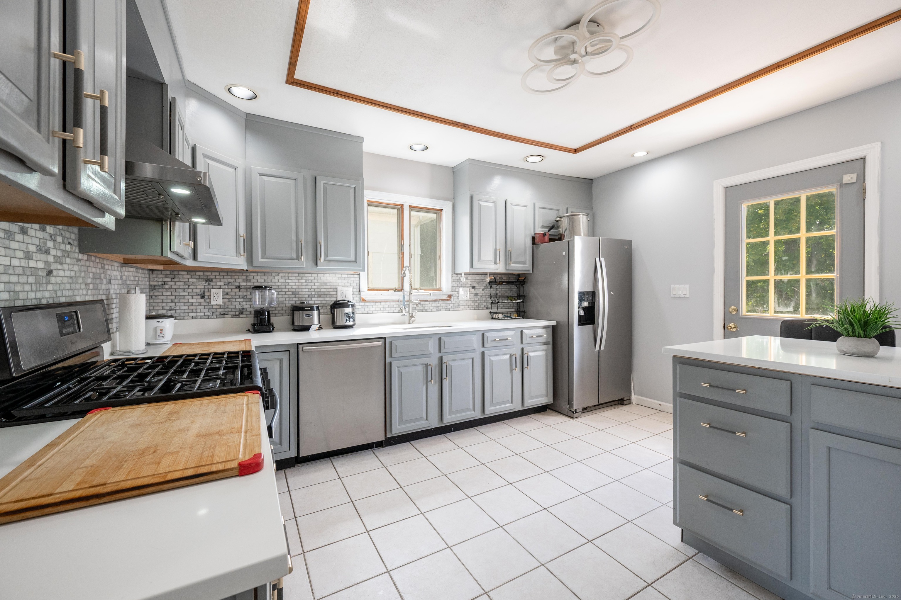 Beautifully updated and spacious 3-4 bedroom Colonial in downtown Danbury. Updated inside and out with a gorgeous new kitchen, bathrooms, flooring, paint and mechanicals. The main level has a large new eat-in kitchen with island that walks out to the deck, plus half bathroom and extra large living/dining room. The living and dining rooms have been modified to the owner's needs with some temporary walls, which can easily be removed if the new buyer chooses. Upstairs offers three spacious bedrooms and two fully updated bathrooms, one with a convenient laundry area. The walk-out lower level features a potential in-law suite with full bath and two bonus rooms with extra closet space. There is also a full walk-up attic for storage or future expansion. The back deck has lovely western views and overlooks the level yard with shed and above ground pool. There is also ample parking in the driveway. Located on a lovely sidewalked street, just minutes to many shops, restaurants and Danbury Hospital.
