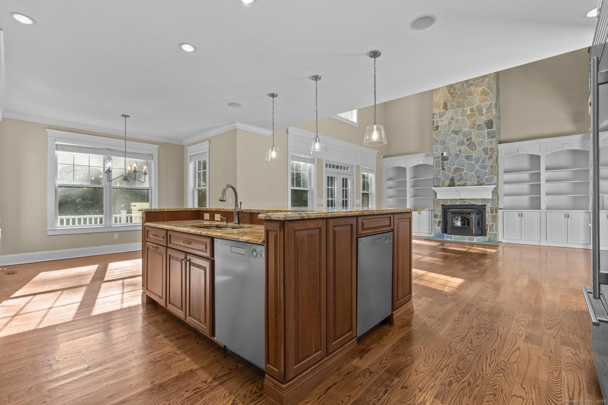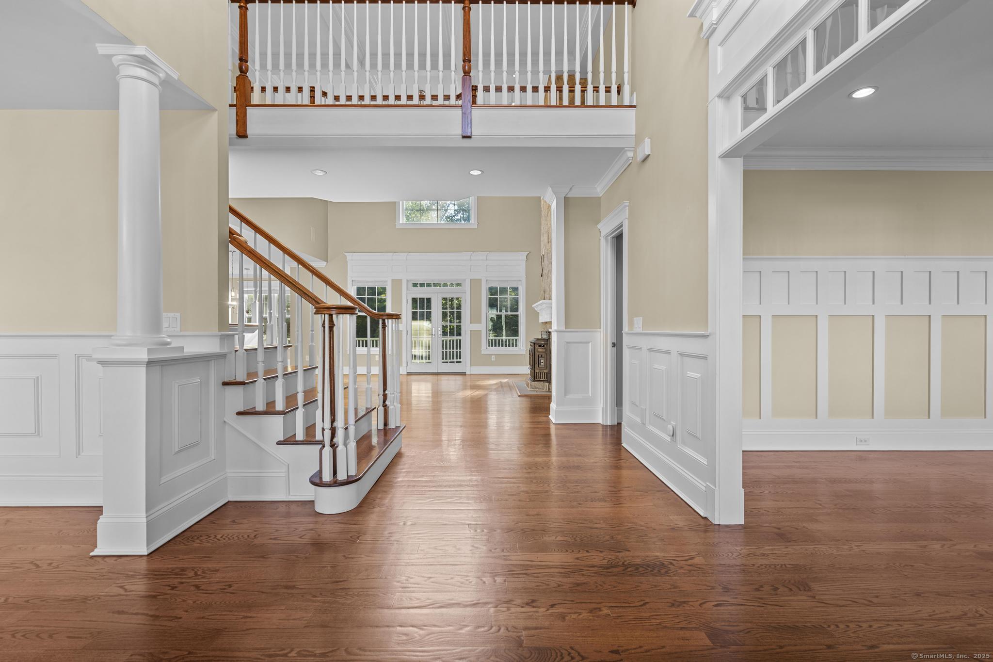 Nestled in the premier Farm River Estates, this stunning residence offers a peaceful cul-de-sac setting surrounded by woodlands. From the moment you enter, you'll be captivated by the custom millwork, tray ceilings, crown molding, and raised panel wainscoting that define the home's craftsmanship. The state-of-the-art chef's kitchen is a showpiece, featuring Wolf and Sub-Zero appliances, a granite island, spacious countertops, and a sunlit breakfast nook. A main-level primary suite provides the ultimate retreat with a cozy fireplace, dual walk-in closets, and a spa-inspired bath complete with heated marble floors, whirlpool tub, and tropical rain shower. The expansive grounds are a masterpiece in themselves, showcasing architect-designed stone walls, curated plantings, and a full irrigation system-all surrounding a beautiful inground pool with a waterfall feature. Entertain with ease thanks to a fully equipped outdoor kitchen, perfect for summer gatherings. The home also boasts an additional 2,500 sq ft walkout lower level-not reflected on the property card-offering endless possibilities for recreation, fitness, a media room, or multigenerational living, with seamless access to the outdoors. Modern conveniences abound, with central vac, a home audio system, video surveillance, and laundry on both levels. Every detail has been thoughtfully curated-only the best has gone into this fine home. Conveniently located near Yale, shopping, Rt.15 and award-winning school system!