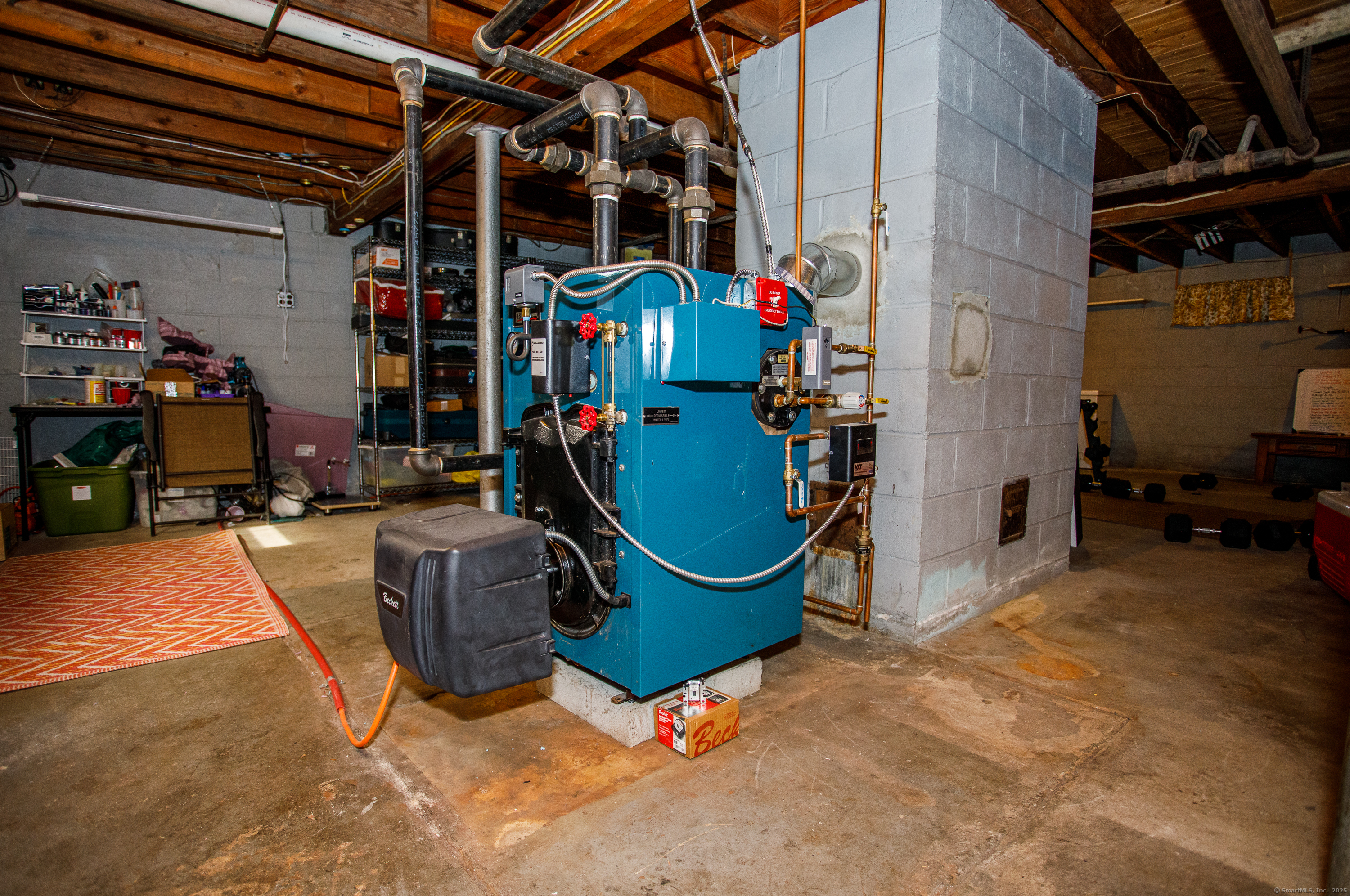 ADORABLE 2 BEDROOM RANCH ON QUIET CUL-DE-SAC. LIGHT BRIGHT OPEN FLOOR PLAN WITH SPACIOUS EAT-IN-KITCHEN, FIREPLACED LIVING ROOM WITH HARDWOOD FLOORS AND SPRAWLING DRY BASEMENT COULD EASILY BE FINISHED OFF FOR MAN CAVE OR PLAYROOM. WONDERFUL SUN PORCH OVERLOOKING LEVEL FENCED BACKYARD GREAT FOR PETS, THROWING A FOOTBALL AND GRILLING OUT. NEWER OIL TANK, BOILER, WINDOWS AND CHIMNEY LINER. ONE CAR GARAGE. PERFECT HOME FOR STARTING OUT OR DOWNSIZING!