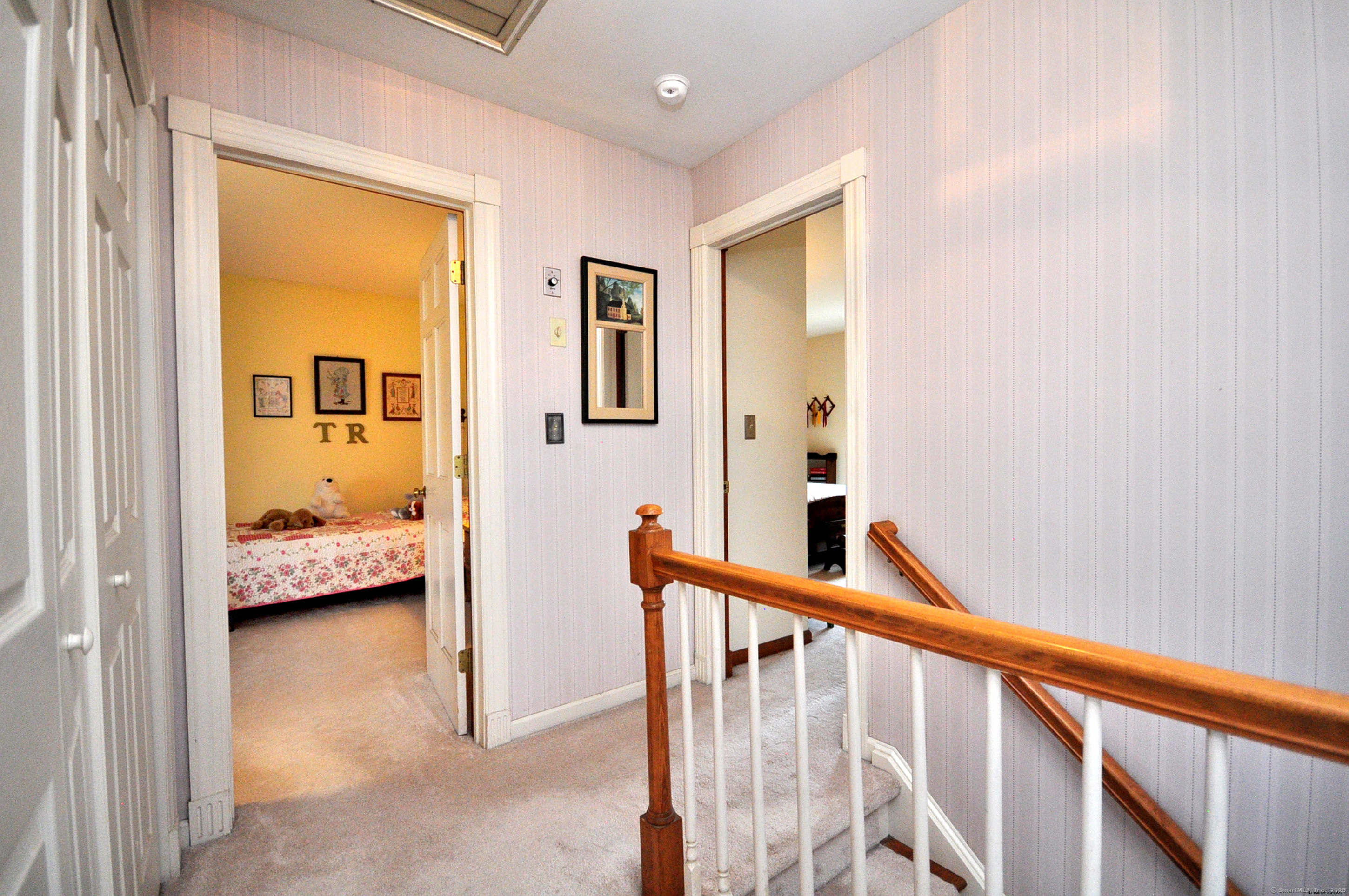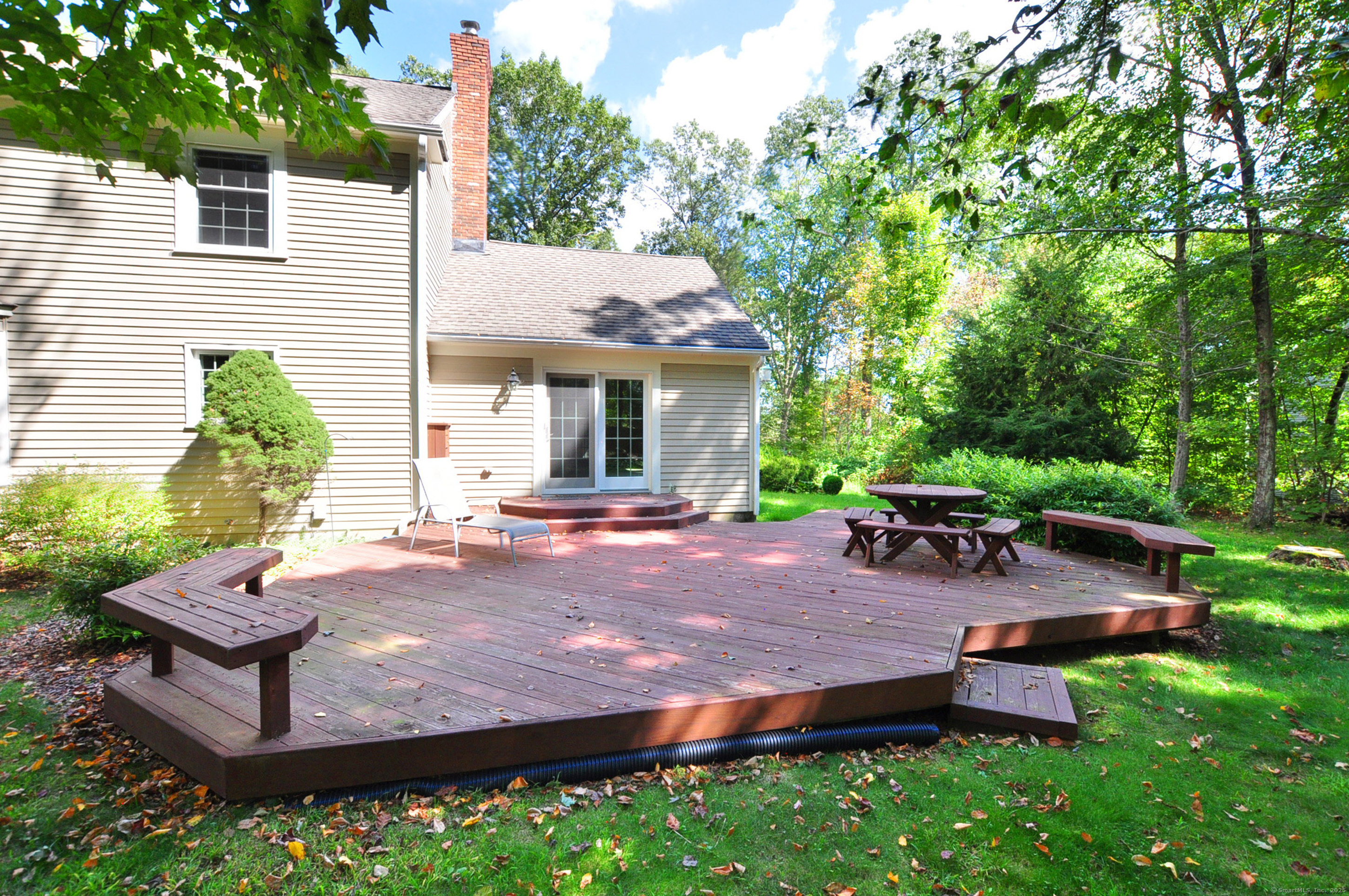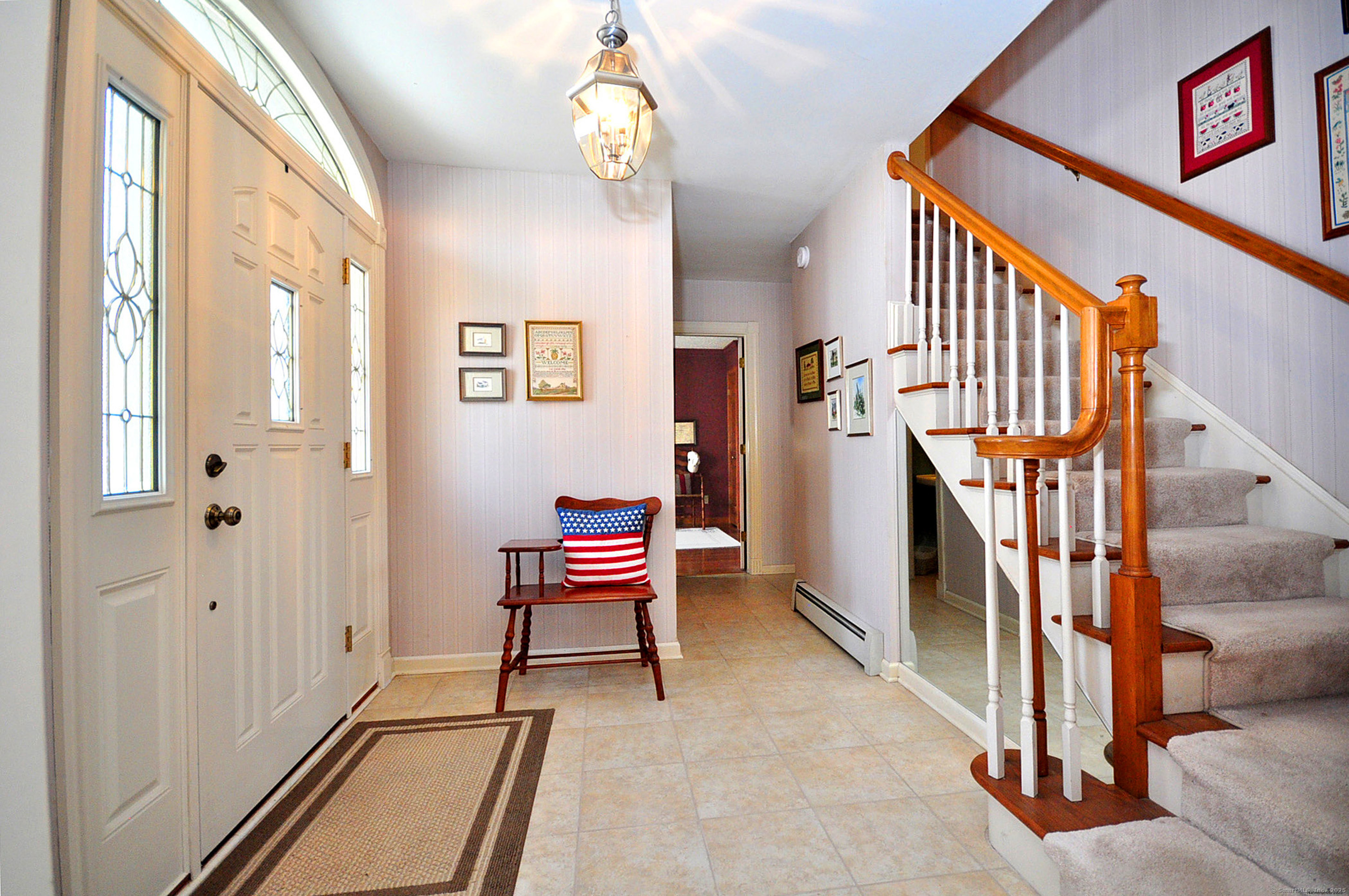LOCATION, LOCATION, LOCATION! Nestled on a spacious 1.39-acre lot in a quiet cul-de-sac, this lovingly maintained home is just minutes from local and state parks, scenic trails, and outdoor recreation. Owned by the same family for 35 years-only the second owners-this property exudes pride of ownership throughout. The first floor features a bright, spacious living room with fireplace, a formal dining room, and an eat-in kitchen with granite countertops and stainless steel appliances that opens into a cozy family room with a second fireplace. Step out to the ground-level deck and level backyard-perfect for entertaining or relaxing. A large breezeway connects to the attached garage for added convenience. Need space for guests or multi-generational living? A private office next to a full bath offers flexible options for an in-law setup or home workspace. Upstairs, you'll find a huge primary bedroom with full bath, along with three generously sized bedrooms and ample storage throughout. Recent updates include: Newer windows (2010), New boiler (2015), Professionally painted exterior (2019) New gutters (2014), Newer roof and front steps. This home combines timeless charm with thoughtful updates, all in an unbeatable location. Don't miss this rare opportunity!