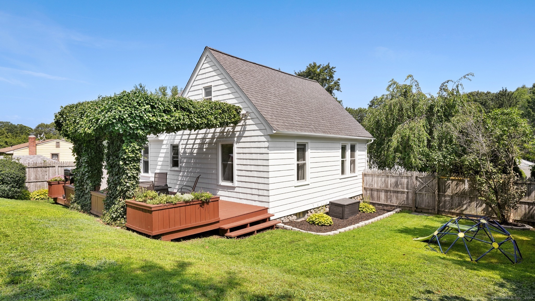 **Sunday open house canceled** Atop a tree-lined hill, 39 Alma Street is a fairy-tale Cape-charming, meticulously cared for, and brimming with modern updates. From the moment you arrive, the curb appeal catches your breath-classic lines, lush landscaping, and a warm welcome that feels like home. Step inside and feel the love and care that has gone into this home. On the main floor, the large, welcoming living room incorporates a dining area directly off the kitchen for family gatherings. Through the original arched doorway are two sizable bedrooms and a full bathroom. Upstairs, the primary suite is a quiet haven: spacious, light, and versatile. A serene place to rest, it features a separate sitting area or office, a walk-in closet, and a full private bath. Major systems have been recently upgraded so you can move in with full confidence. A brand new Burnham boiler with indirect water heater and Roth oil tank in 2023, and new roof and windows in 2022. Important upgrades that protect your investment and your peace of mind. The full basement provides substantial clean, dry storage. Outside, the private back deck with its pergola is made for morning coffee, summer cookouts, or watching the stars, a perfect extension of the home, combining privacy with beauty. In short, this is a home that looks and feels timeless yet offers all the amenities of today. If you've been waiting for a place that tells a story, that blends warmth, quality, and style, 39 Alma Street is it.