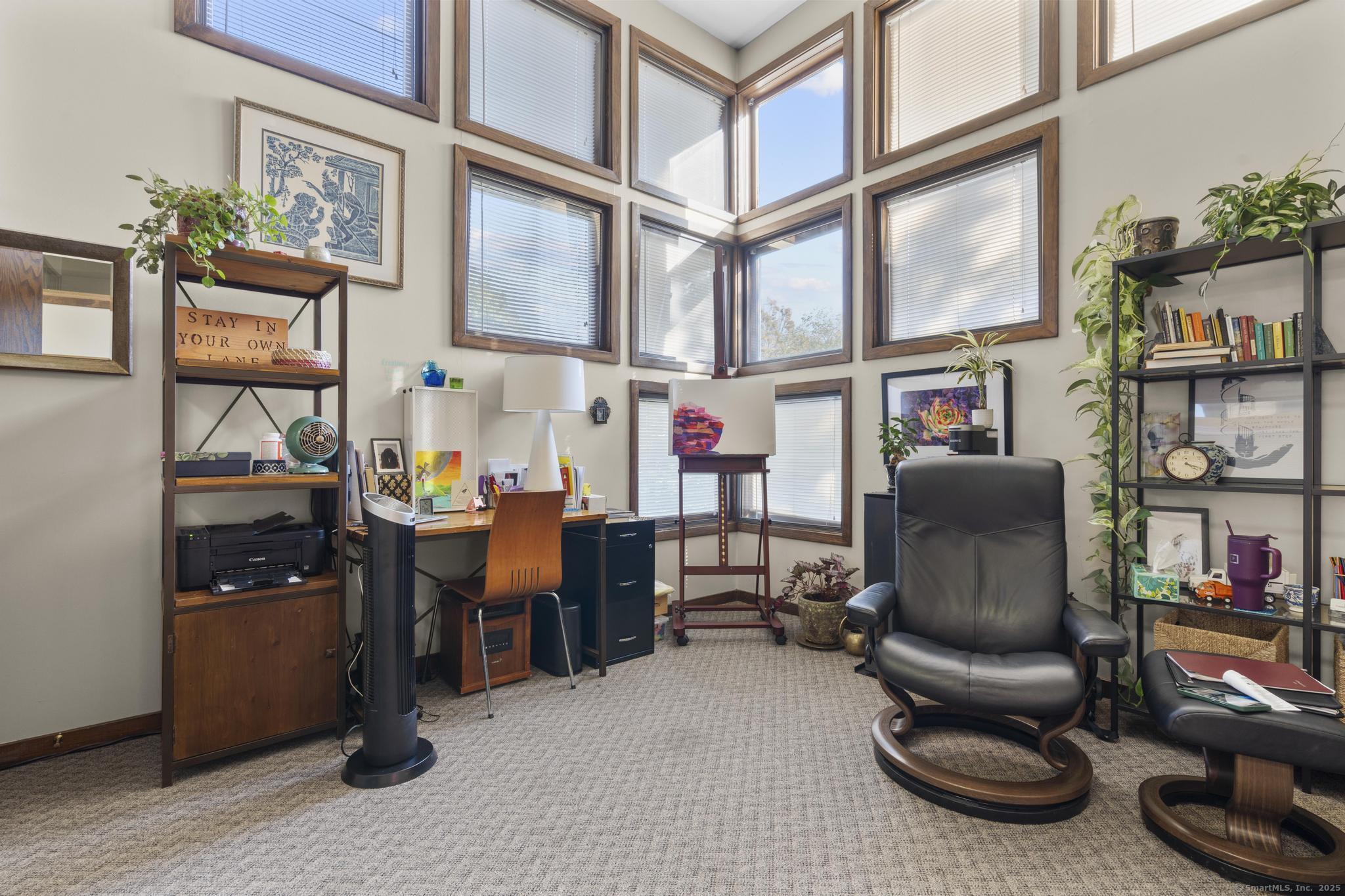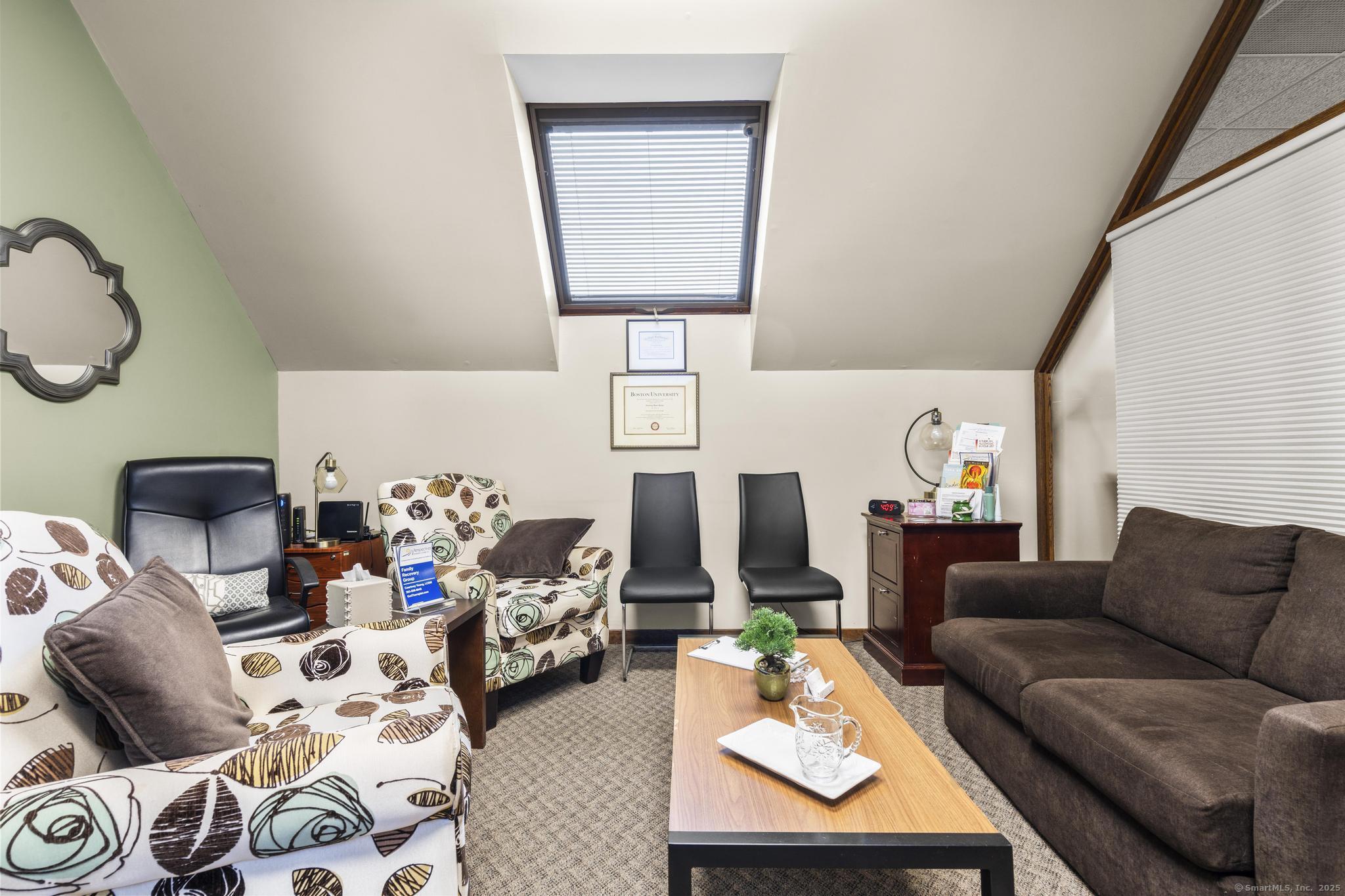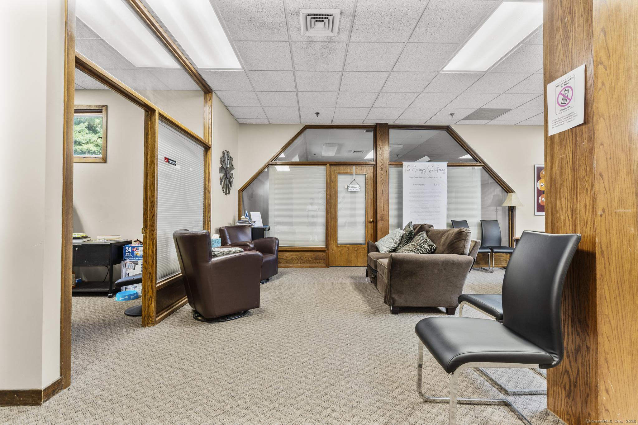 Prime office space for rent in Woodbury. Situated at the high-traffic intersection of Route 64 and Route 6, this contemporary office park offers exceptional exposure and convenience. The property features four separate buildings with modern architecture, abundant windows that flood the offices with natural light, inviting courtyards, and beautifully maintained mature landscaping. Located in building A, this unit is on the second floor with an elevator for ease of access. Ample open parking ensures convenience for staff and clients alike. With its attractive design, professional setting, and unmatched accessibility, Cornerstone Professional Office Park provides an ideal space for your business to thrive.
