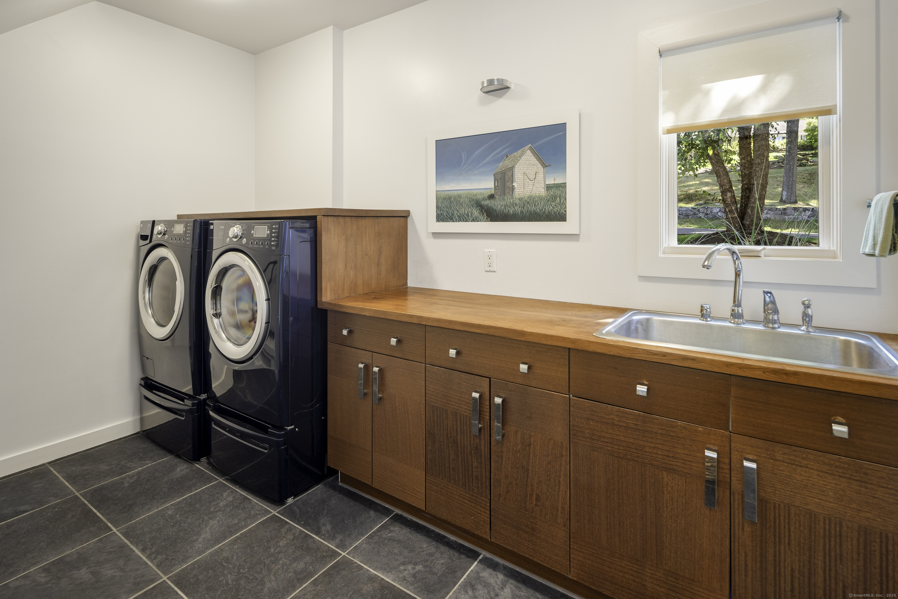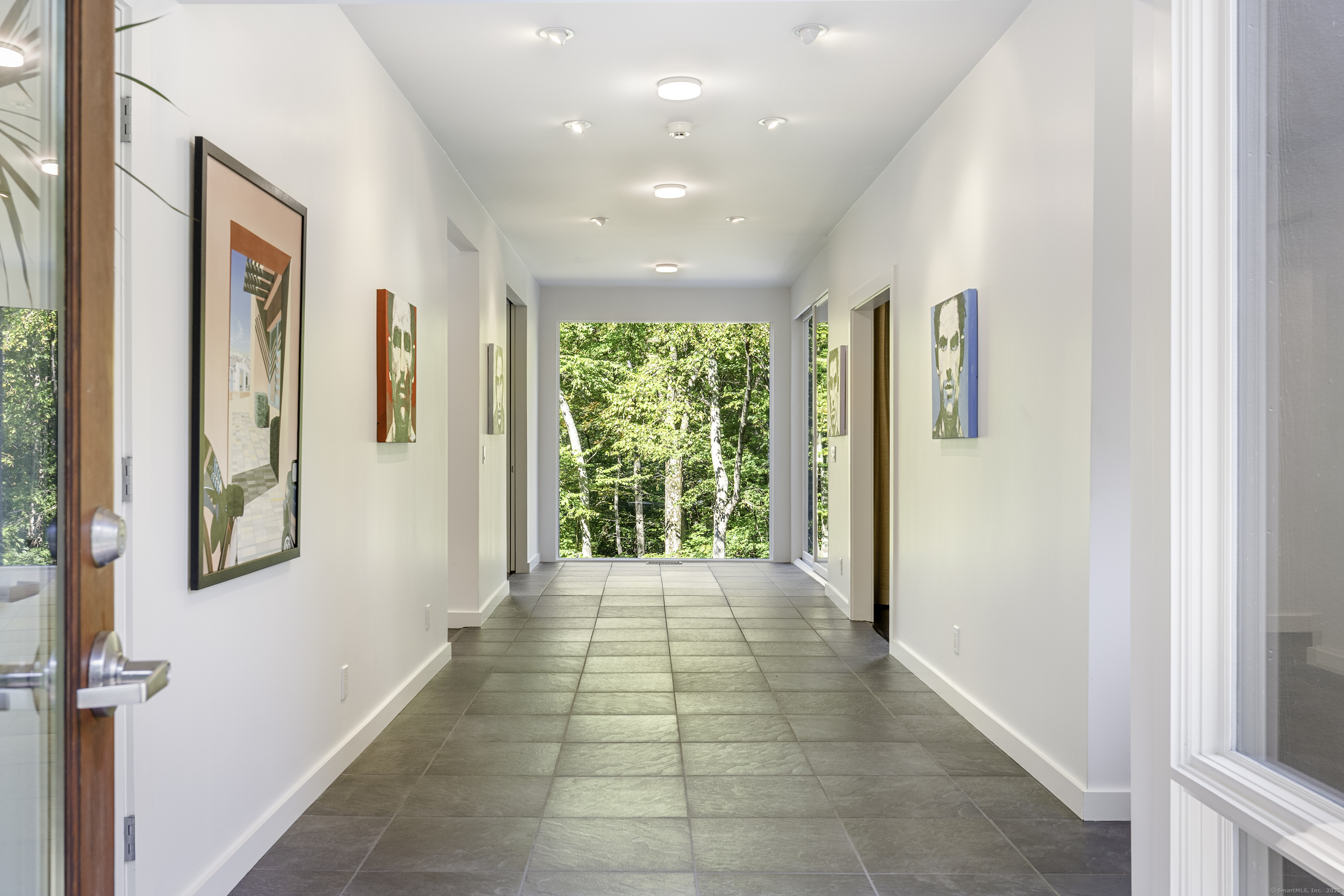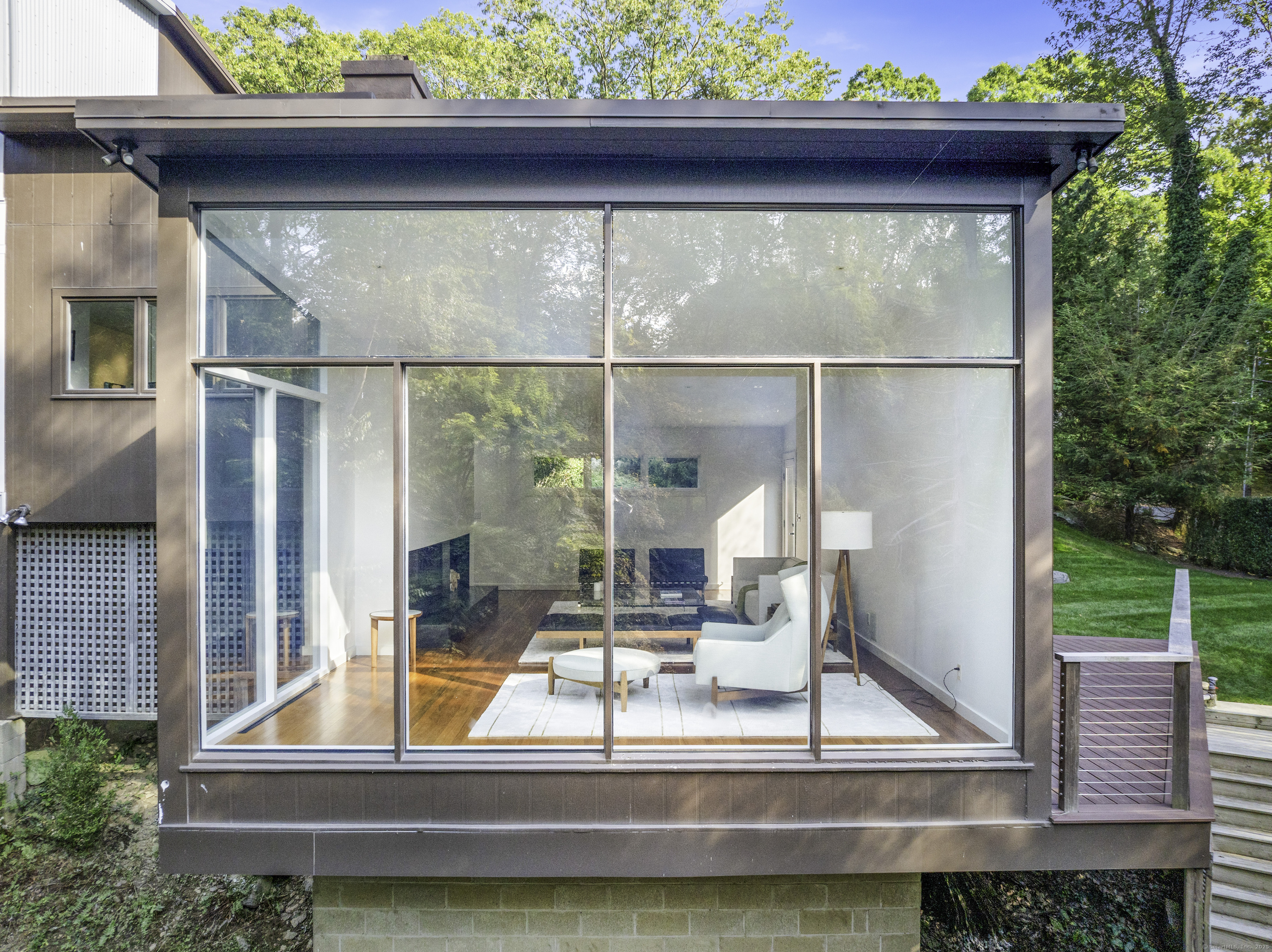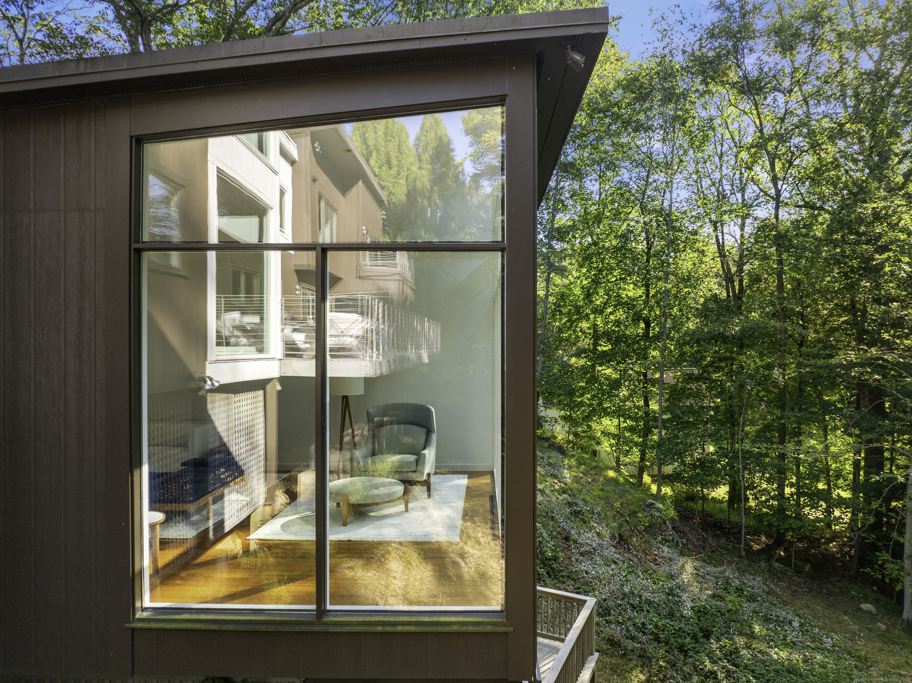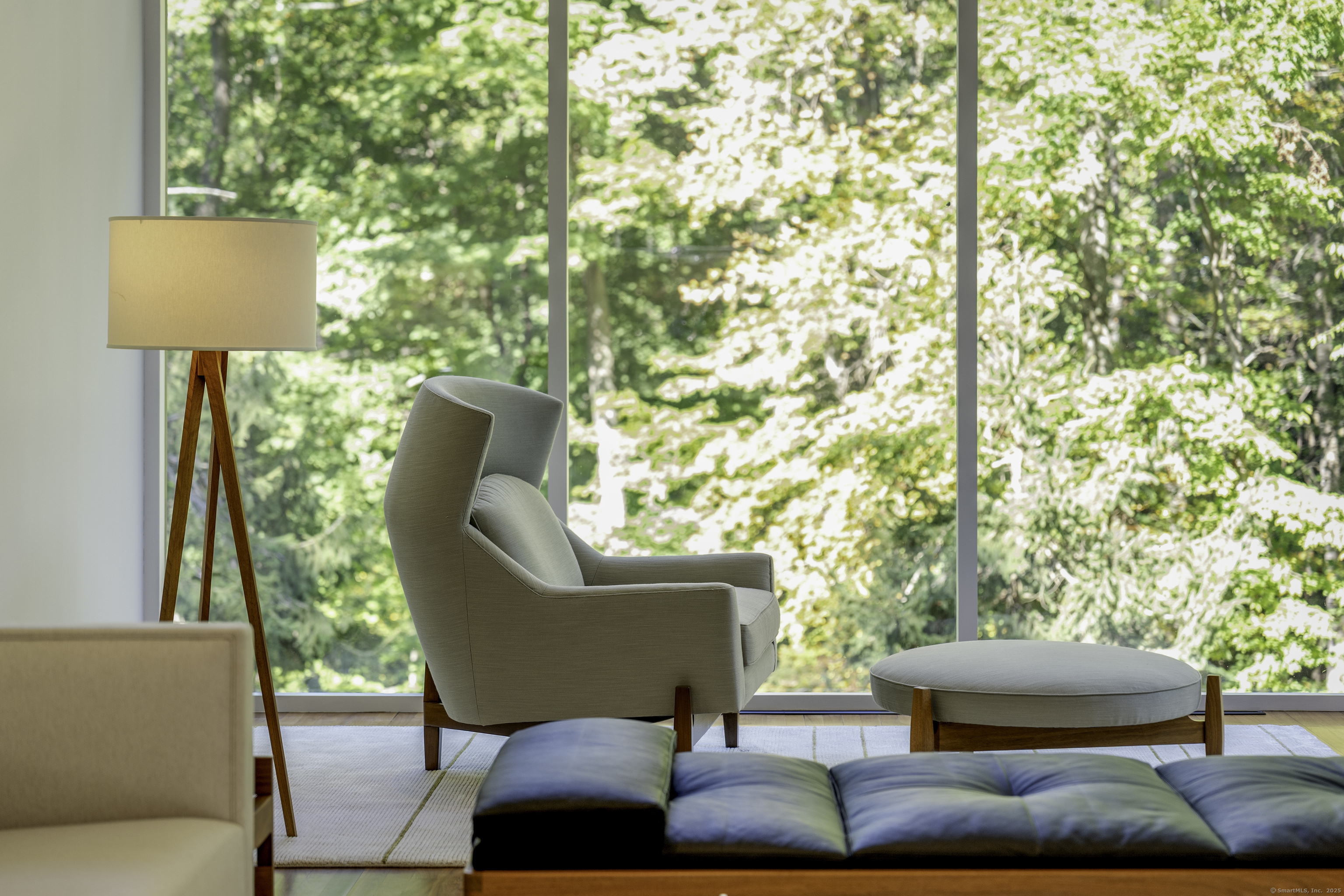 Perched high above the Goodwives River, this stunning Mid-Century Modern home offers sophisticated living in an extraordinary natural setting. Walls of floor-to-ceiling glass invite the outdoors in, seamlessly blending interior spaces with the serene beauty of the 1.8-acre private landscape. Reimagined by renowned architectural firm Joeb Moore + Partners, highlights include a dramatic cantilevered IPE deck that spans the back of the home-evoking the feeling of a treehouse floating in space. Superior finishes throughout this carefully curated home include warm walnut floors, a striking steel-wrapped fireplace, and vaulted ceilings that amplify the natural light. An entertainer's dream, this home is perfect for hosting family and friends-or simply curling up in one of the many cozy window nooks to watch the changing seasons and abundant wildlife. Ideally located just steps from the vibrant Corbin District-Darien's transformative downtown destination featuring NYC-caliber dining and boutique shopping yet only moments from the waterfront sanctuary of Great Island. A rare and inspired opportunity for design-forward, nature-infused convenient living within the award-winning Darien school district.