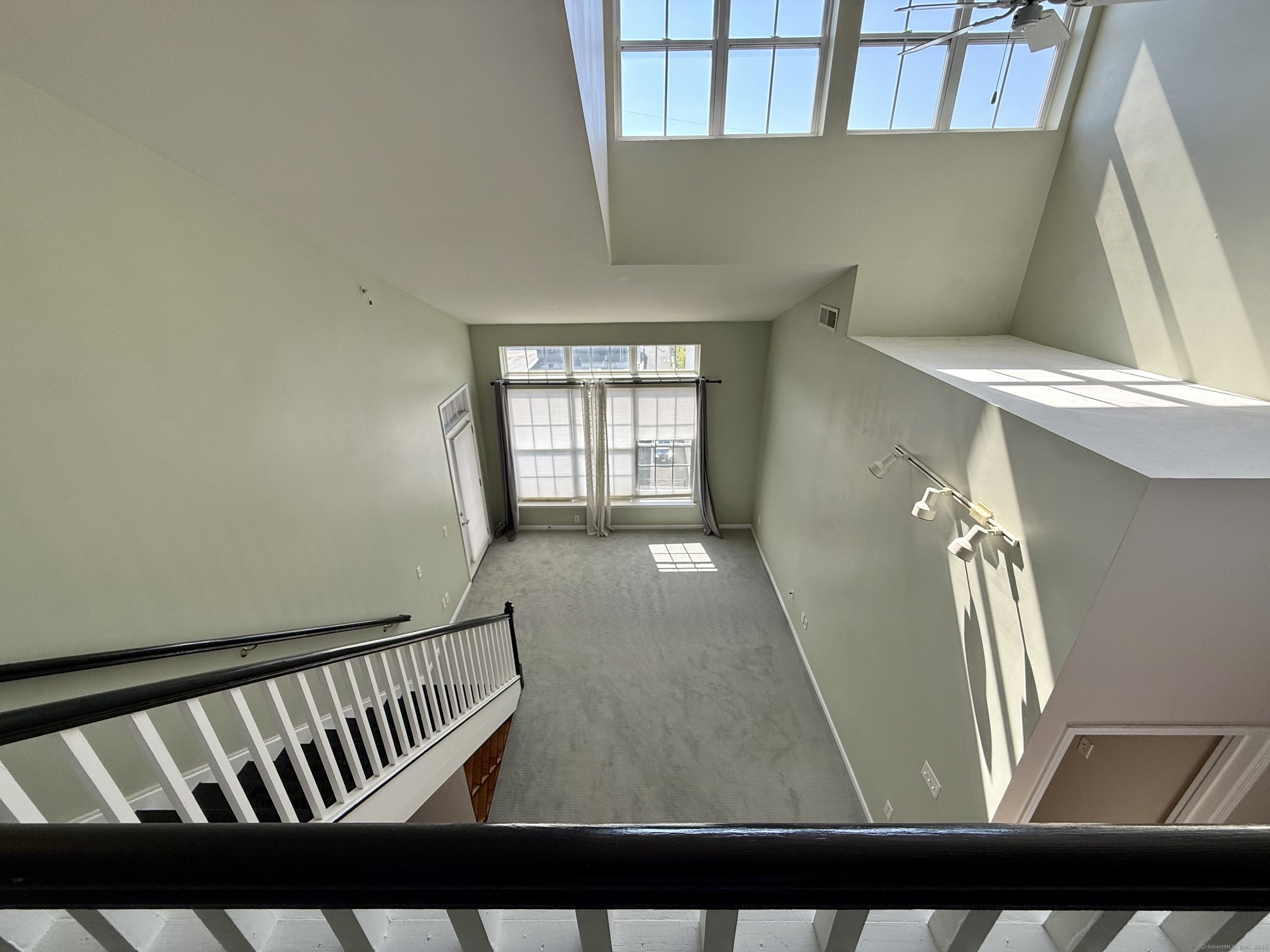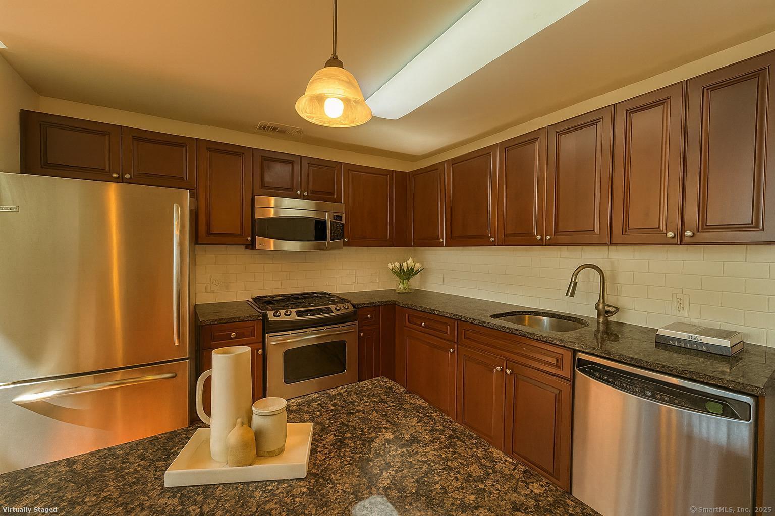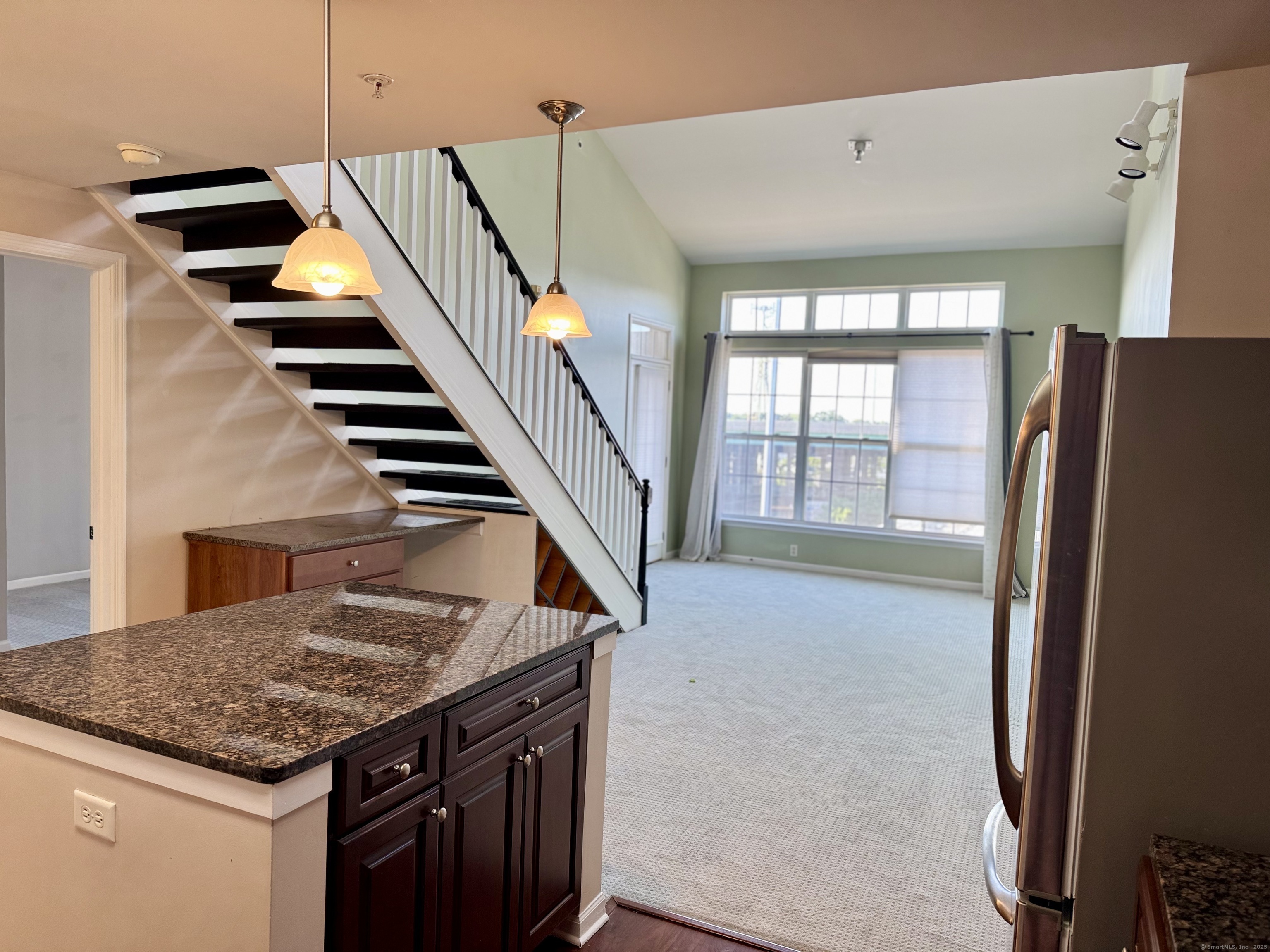 Modern Top-Floor Penthouse with Loft in Eastside Commons where style meets convenience in the heart of Stamford! This pet-friendly penthouse offers an impressive layout featuring 2 spacious bedrooms, 2 full bathrooms, and a versatile finished loft-perfect for a home office, gym, or additional living space. The home also includes in-unit laundry and a dedicated storage room for added convenience. Step inside to find soaring 9-foot ceilings, dramatic vaulted living room ceilings, and oversized picture windows that flood the home with natural light. Enjoy your morning coffee or unwind on your private balcony, ideal for relaxing or entertaining. The open-concept kitchen is a chef's dream, showcasing granite countertops, refinished cabinetry, stainless steel appliances, and an expansive island breakfast bar-perfect for hosting friends and family. Both bedrooms offer excellent storage space, with the primary suite featuring a walk-in closet, private balcony access, and an en suite bathroom. Recent updates include new carpeting, freshly painted, a refinished staircase, and a high-efficiency gas furnace for year-round comfort. You'll enjoy resort-style amenities such as a fitness center, meeting room, beautifully landscaped courtyard with grilling areas. The unit includes one reserved covered garage space plus plenty of guest parking. Located just minutes from downtown Stamford, Metro-North/Amtrak, and I-95. Please schedule your private view. $100 off if signing a 2-year lease.