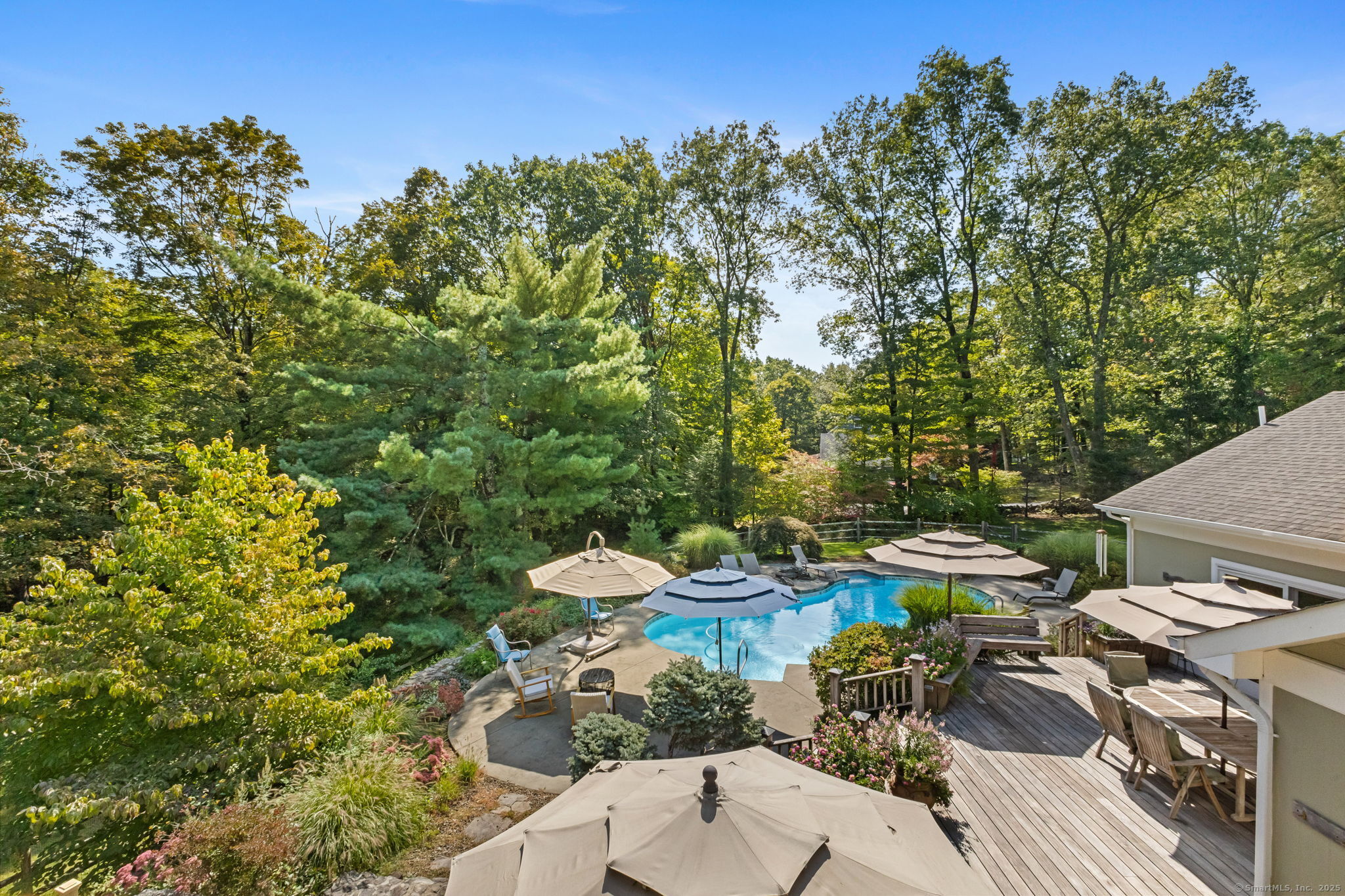 Nature and tranquility can be found at 13 Indian Hill Road, where this spacious 4300 sq foot Craftsman style home has been designed and thoughtfully updated for comfort, beauty and relaxation. Nestled within trees, specimen plants and beautifully landscaped, this property offers the perfect blend of peaceful living and modern luxury. The gorgeous pool and pergola help to create an outdoor retreat that is stunning in every way. Inside is a gorgeous new kitchen equipped with stylish finishes, quartz countertops and modern appliances. The spectacular 1st floor master en suite bathroom is a true show stopper with spa-like features, including radiant floor heat, walk in shower, and dual vanities. The 1st floor also includes 3 more bedrooms, 2 full bathrooms, a great room, office, dining room, living room and additional sitting room. An addition on the 2nd floor provides 2-3 flexible living spaces, including a dance studio/office/playroom/gym~ whatever suits your lifestyle needs. Plumbing is installed on this floor so adding a bathroom is possible. With 4/5 bedrooms, this country rambler offers room. to grow, relax and enjoy. Located close to Caraluzzis, Georgetown, Wilton center, trains, schools, and town forest. Not to be missed!