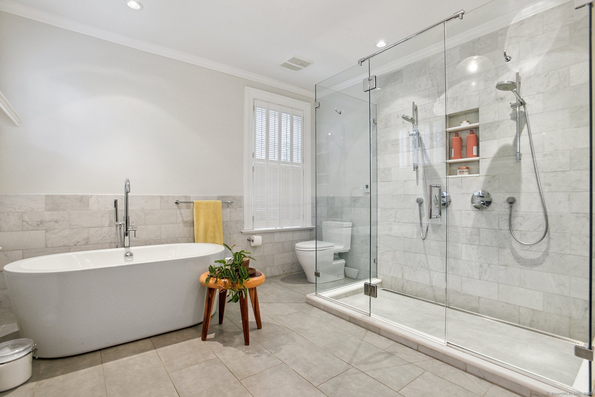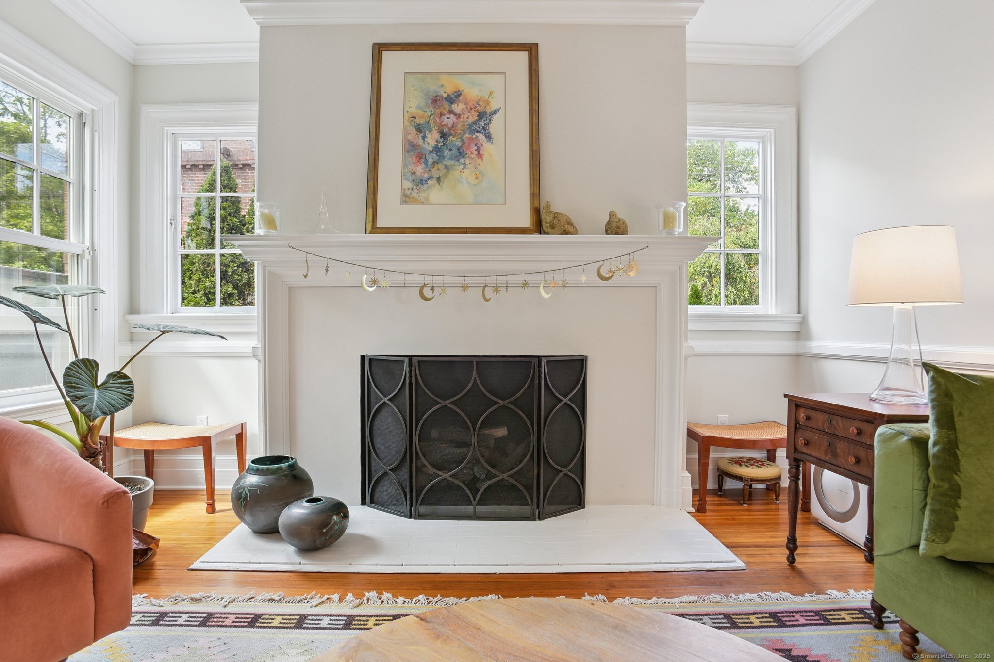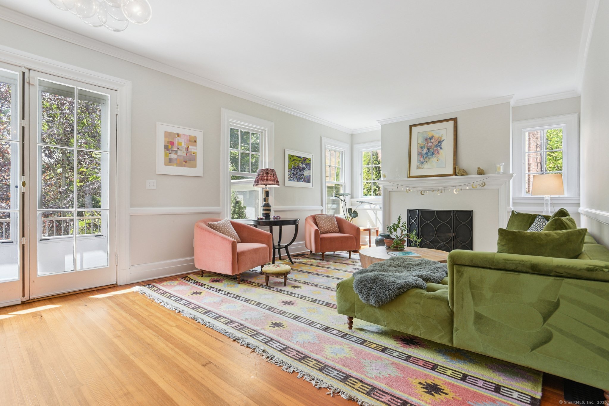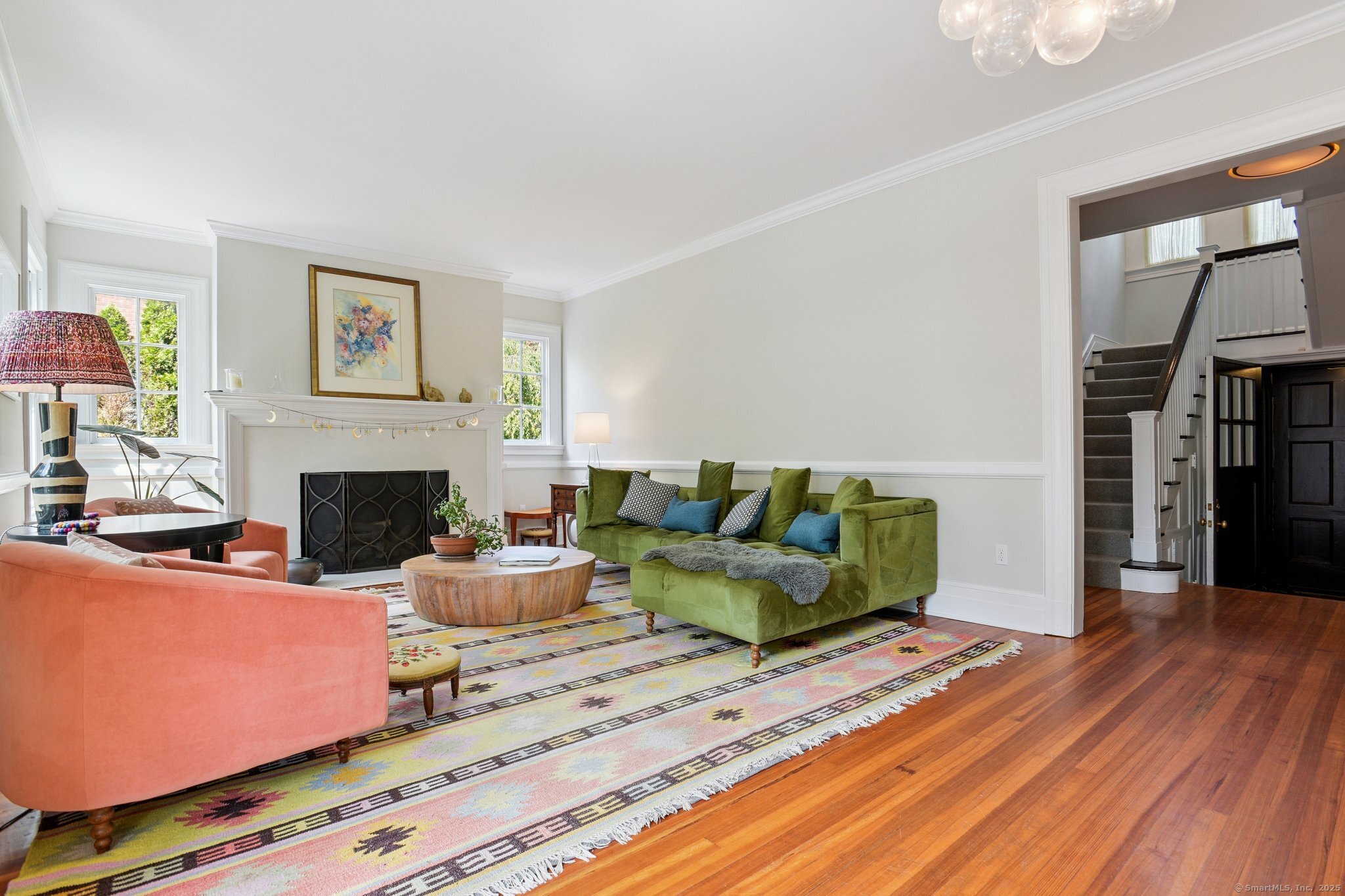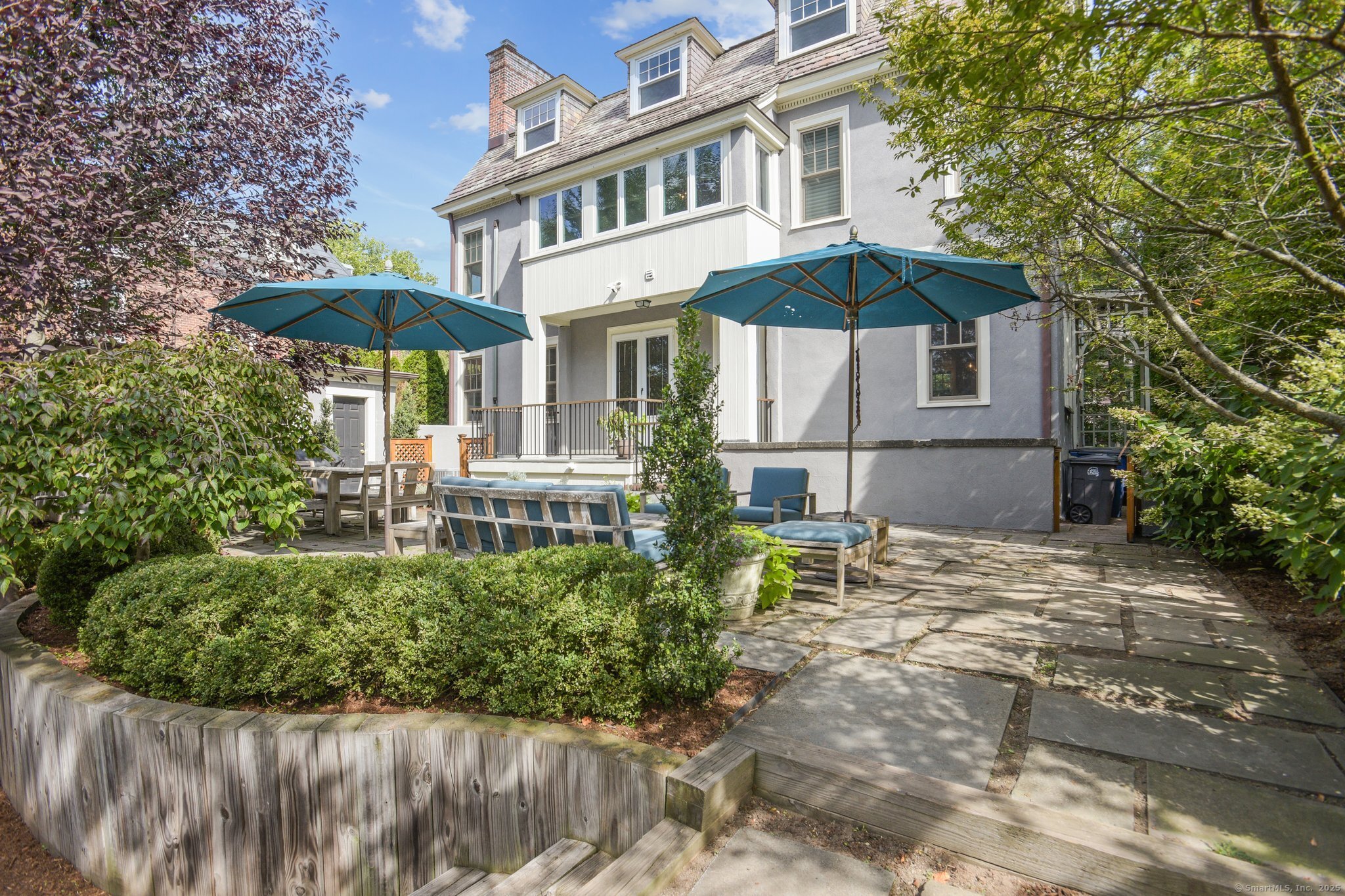 This meticulously renovated East Rock colonial is a perfect blend of historic charm and modern updates and is located on a lovely street close to the Yale Campus and downtown. The first floor is an open floor plan and is filled with light. The living room has a fireplace and French doors that lead to an outstanding south facing terrace. The spacious dining room has a large opening to quite possibly the best kitchen you can imagine. It has an amazing area of work and storage space, tasteful white cabinetry with marble countertops, outstanding appliances including a spectacular Lacanche stove, SubZero refrigerator, and a breakfast bar. It's a perfect place to gather. The family room on this level is a wonderful place to snuggle up with a book. The primary suite on the 2nd floor is a true sanctuary with a bedroom, walk-in closet, and a luxurious spa-like bathroom with a free-standing tub, a separate large glass enclosed shower, a double sink vanity and a gas fireplace. There are 3 more good size bedrooms on this level, a hall bath, + a laundry room. The top has a large loft-like room, a study, 2 additional bedrooms, and a full bath. It's perfect for guests, teenagers, or a private retreat. Everything in this house radiates good taste and quality workmanship. There is a one car garage and a very deep fenced yard surrounded by mature trees and landscaping. The close proximity to Town, Yale, YNHH, neighborhood markets, cafes, is ideal. Don't miss this very special East Rock gem!