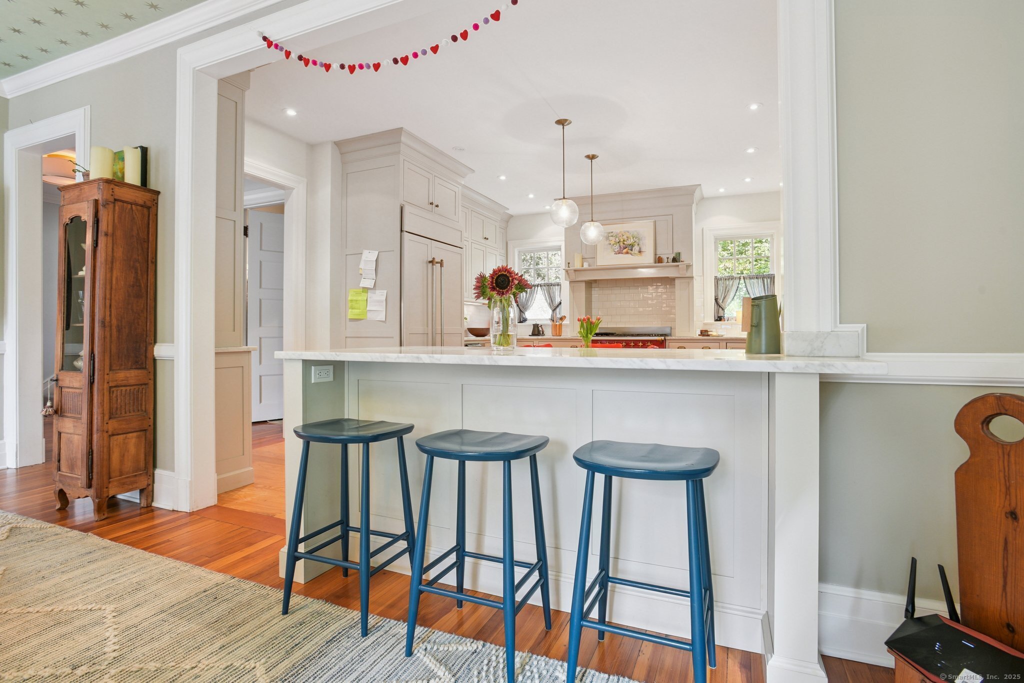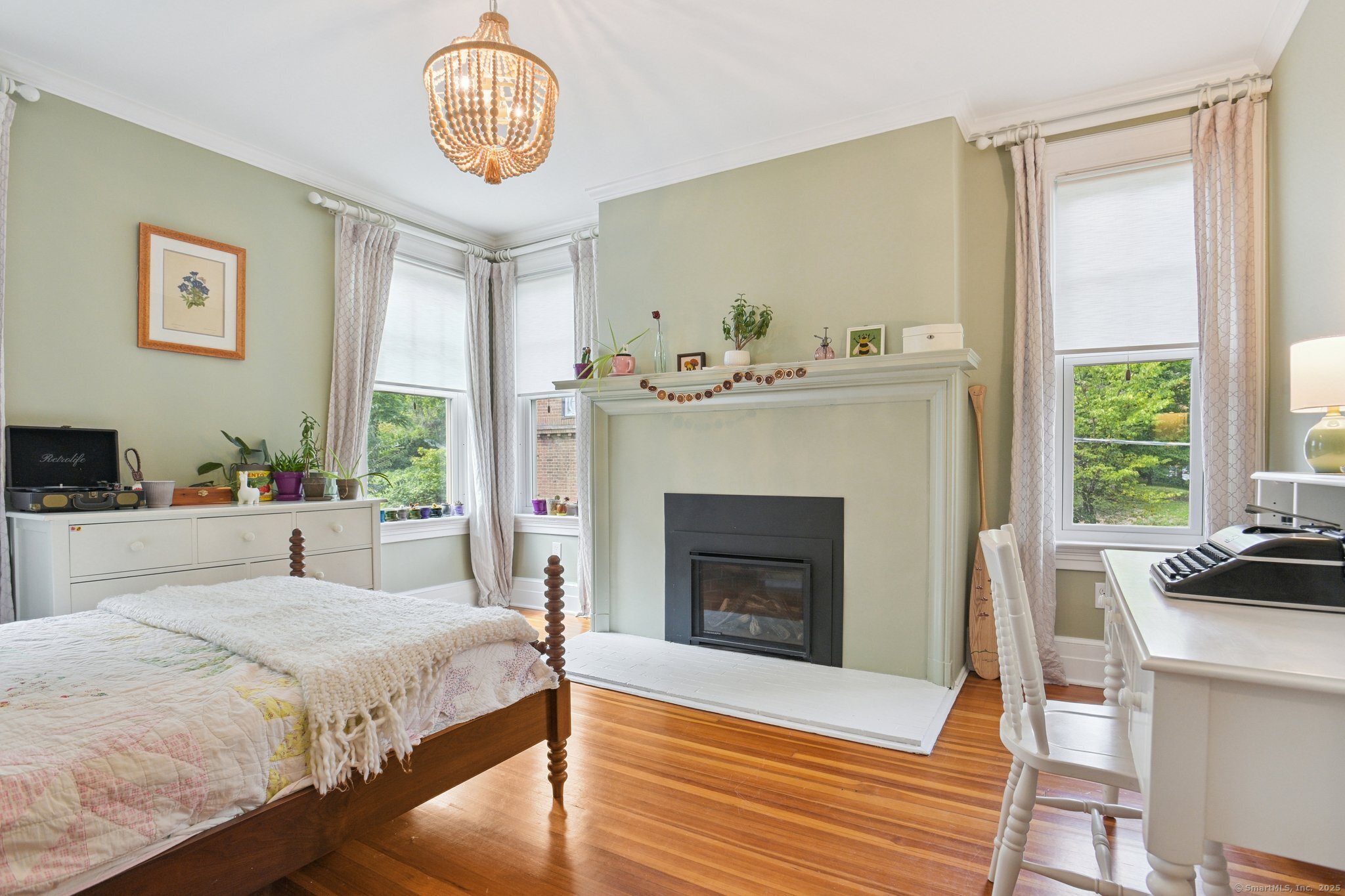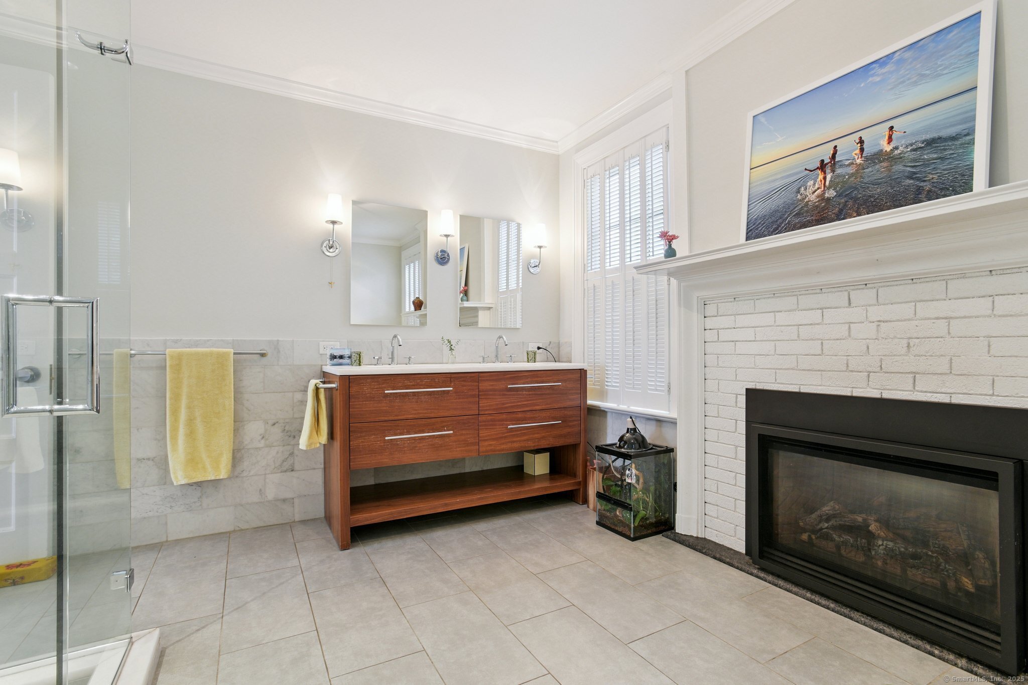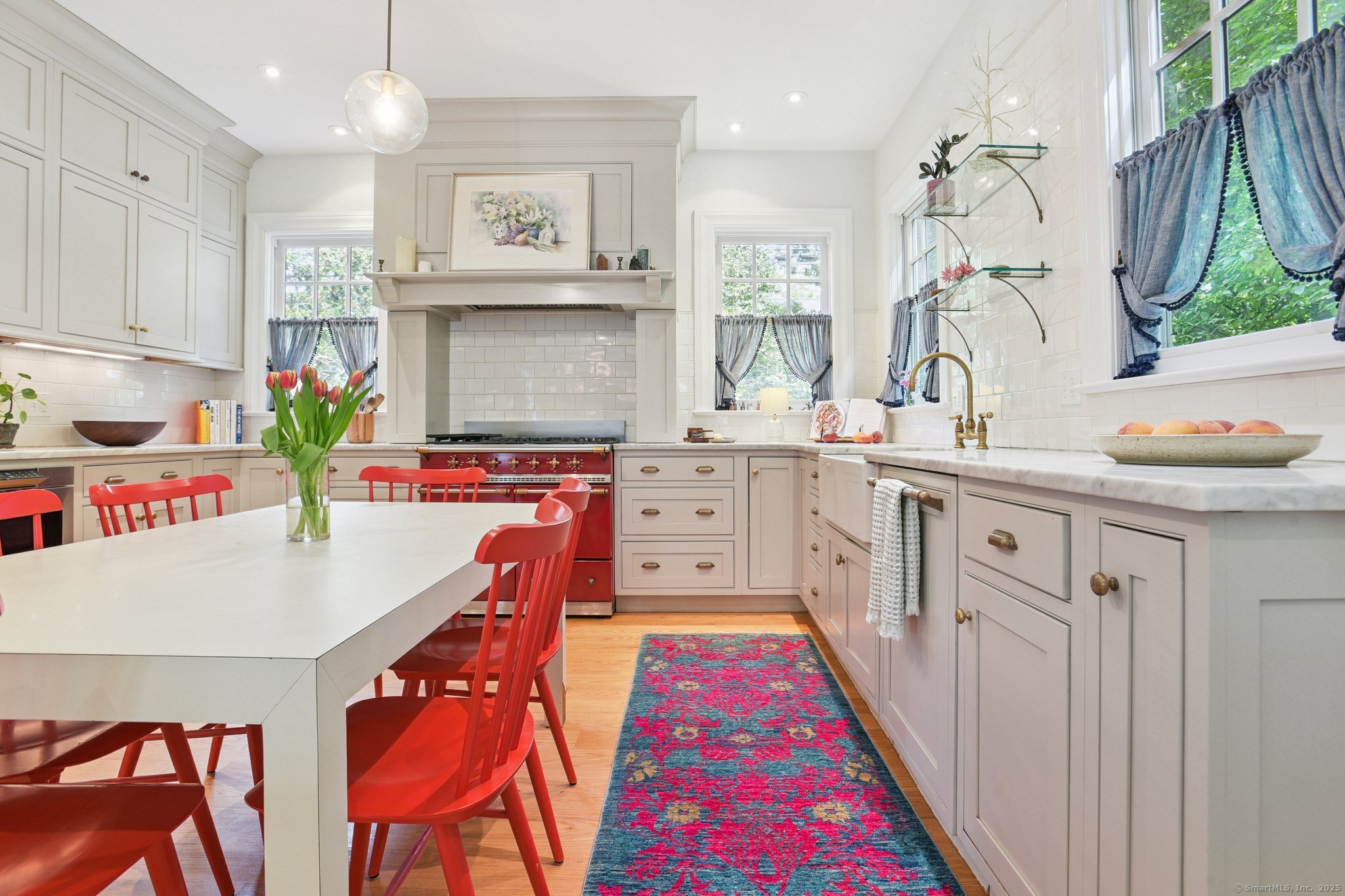 This meticulously renovated East Rock colonial is a perfect blend of historic charm and modern updates and is located on a lovely street close to the Yale Campus and downtown. The first floor is an open floor plan and is filled with light. The living room has a fireplace and French doors that lead to an outstanding south facing terrace. The spacious dining room has a large opening to quite possibly the best kitchen you can imagine. It has an amazing area of work and storage space, tasteful white cabinetry with marble countertops, outstanding appliances including a spectacular Lacanche stove, SubZero refrigerator, and a breakfast bar. It's a perfect place to gather. The family room on this level is a wonderful place to snuggle up with a book. The primary suite on the 2nd floor is a true sanctuary with a bedroom, walk-in closet, and a luxurious spa-like bathroom with a free-standing tub, a separate large glass enclosed shower, a double sink vanity and a gas fireplace. There are 3 more good size bedrooms on this level, a hall bath, + a laundry room. The top has a large loft-like room, a study, 2 additional bedrooms, and a full bath. It's perfect for guests, teenagers, or a private retreat. Everything in this house radiates good taste and quality workmanship. There is a one car garage and a very deep fenced yard surrounded by mature trees and landscaping. The close proximity to Town, Yale, YNHH, neighborhood markets, cafes, is ideal. Don't miss this very special East Rock gem!
