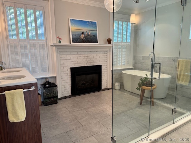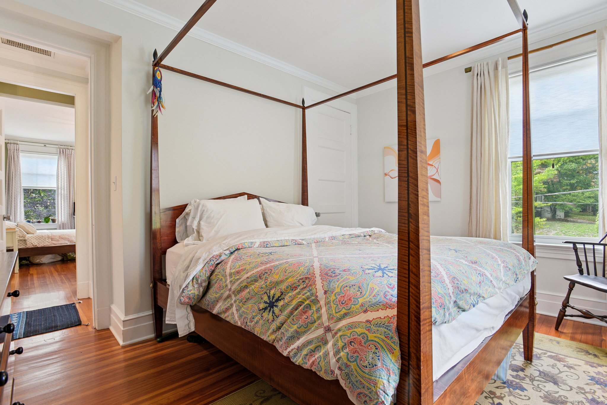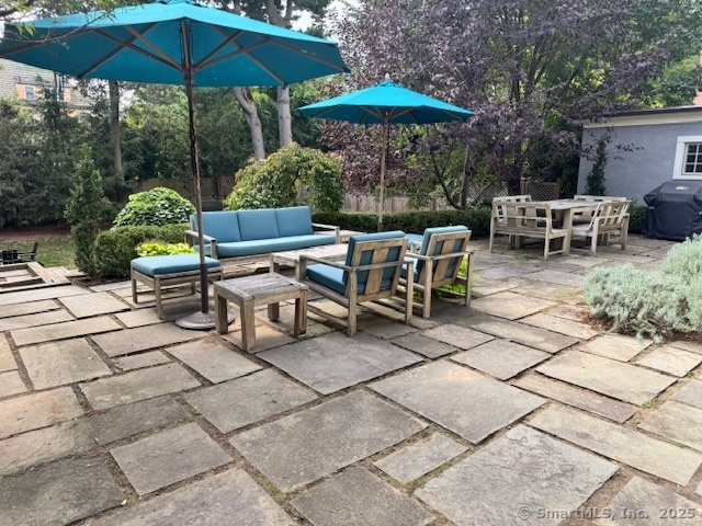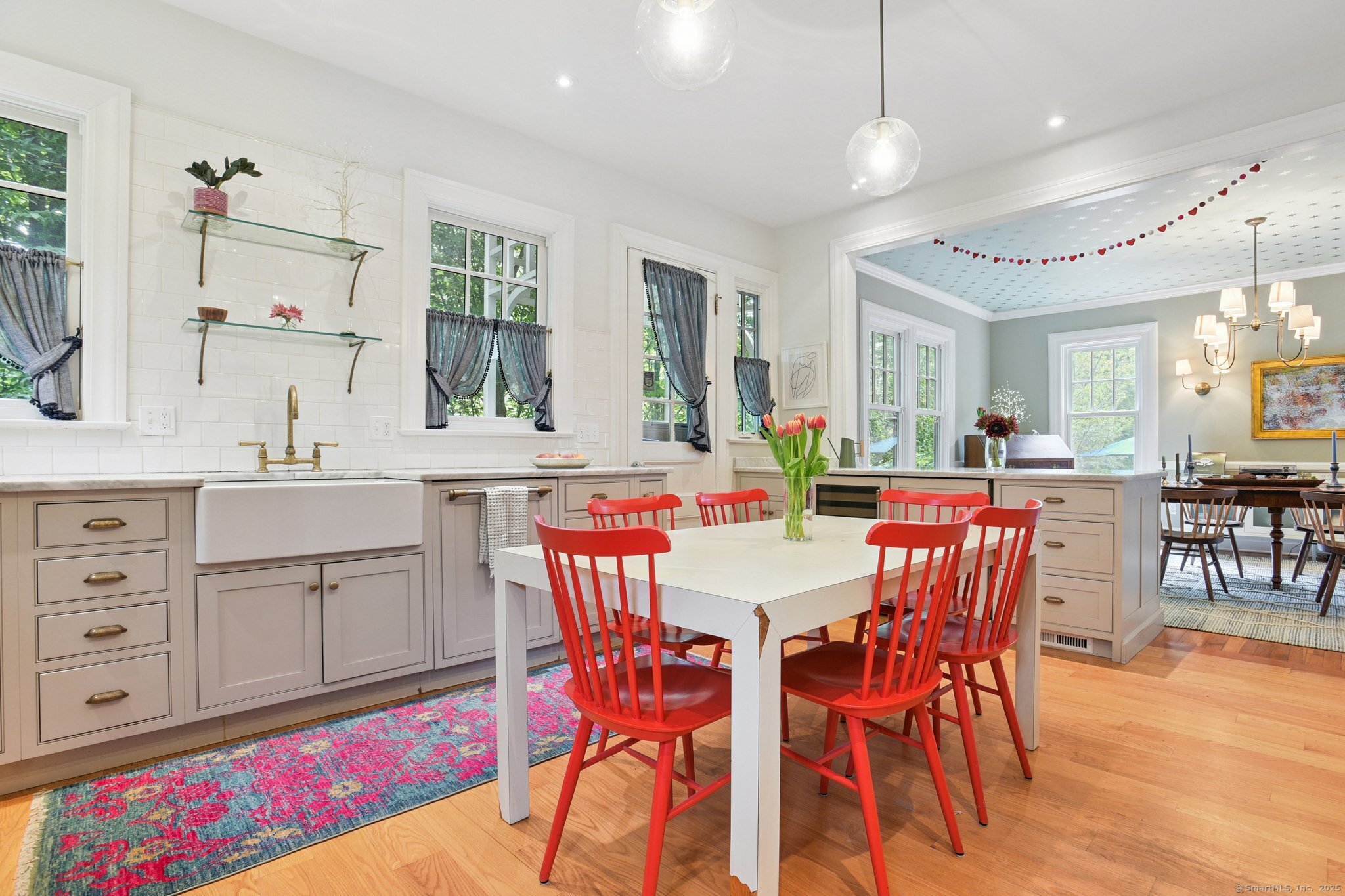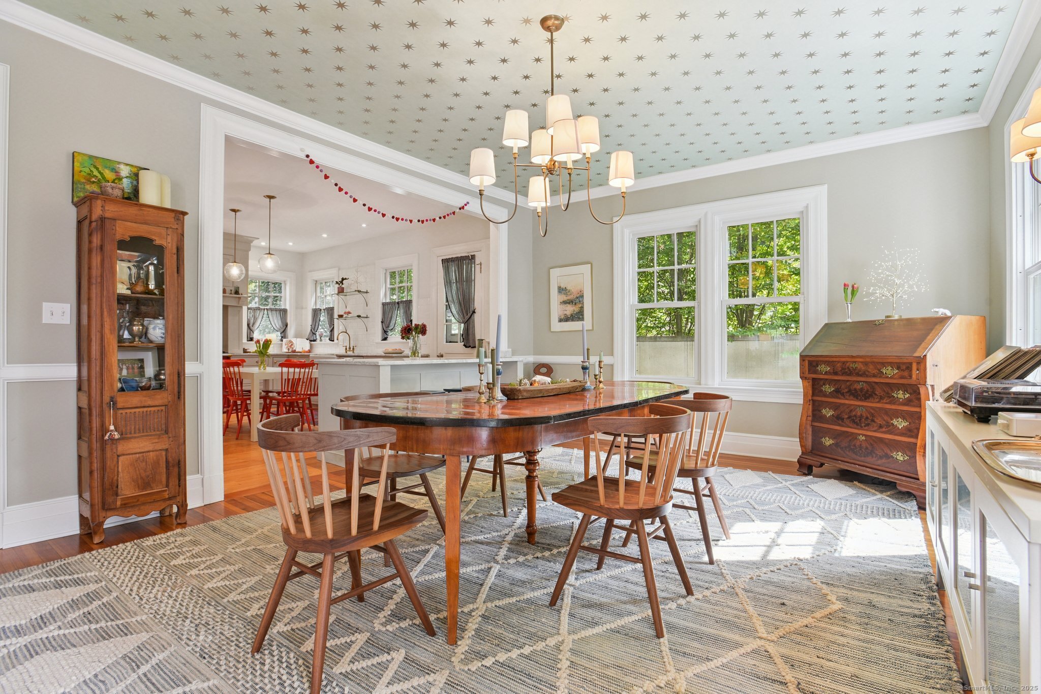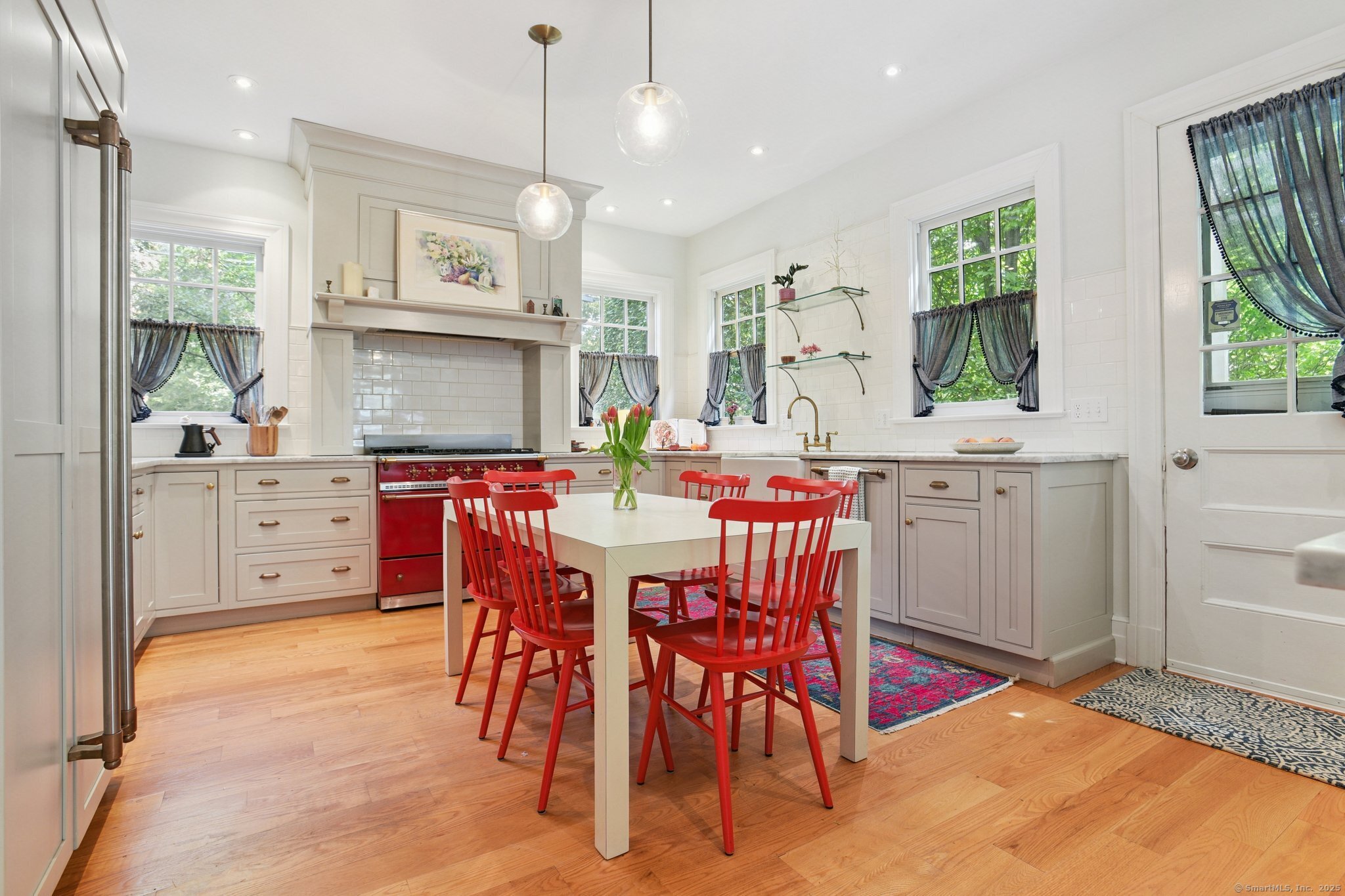This meticulously renovated East Rock colonial is a perfect blend of historic charm and modern updates and is located on a lovely street close to the Yale Campus and downtown. The first floor is an open floor plan and is filled with light. The living room has a fireplace and French doors that lead to an outstanding south facing terrace. The spacious dining room has a large opening to quite possibly the best kitchen you can imagine. It has an amazing area of work and storage space, tasteful white cabinetry with marble countertops, outstanding appliances including a spectacular Lacanche stove, SubZero refrigerator, and a breakfast bar. It's a perfect place to gather. The family room on this level is a wonderful place to snuggle up with a book. The primary suite on the 2nd floor is a true sanctuary with a bedroom, walk-in closet, and a luxurious spa-like bathroom with a free-standing tub, a separate large glass enclosed shower, a double sink vanity and a gas fireplace. There are 3 more good size bedrooms on this level, a hall bath, + a laundry room. The top has a large loft-like room, a study, 2 additional bedrooms, and a full bath. It's perfect for guests, teenagers, or a private retreat. Everything in this house radiates good taste and quality workmanship. There is a one car garage and a very deep fenced yard surrounded by mature trees and landscaping. The close proximity to Town, Yale, YNHH, neighborhood markets, cafes, is ideal. Don't miss this very special East Rock gem!