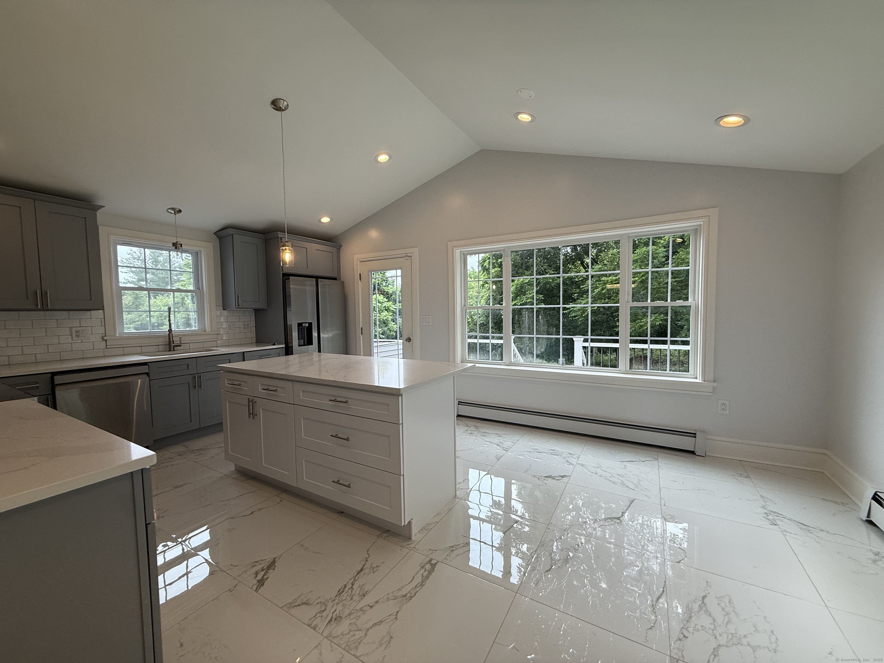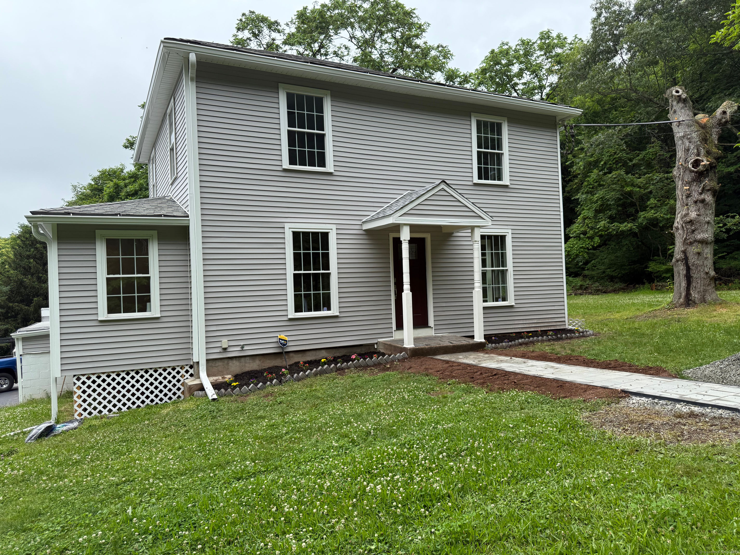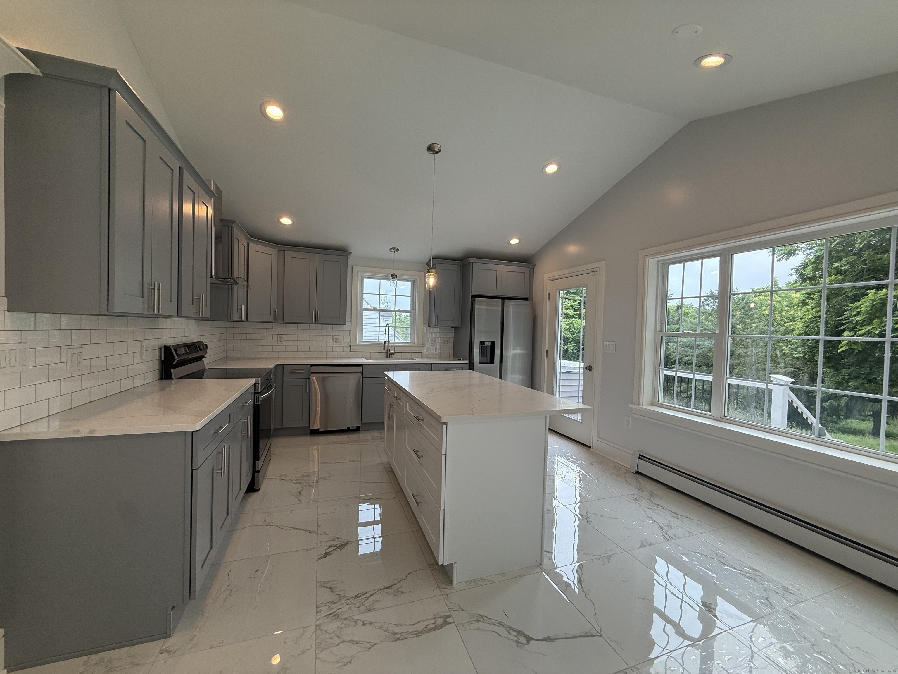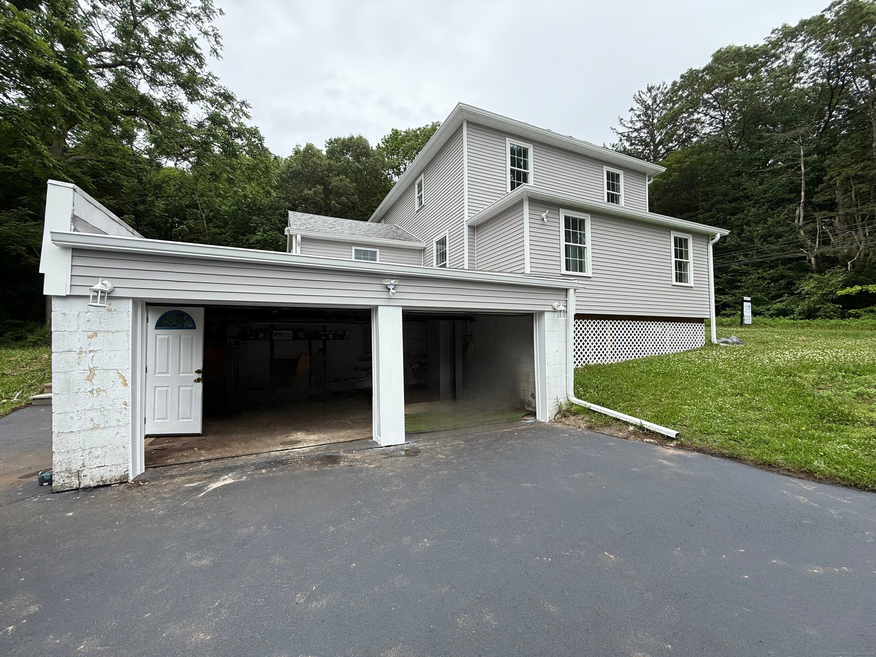 Rebuilt from the studs in 2025, this 4-bed, 2.5-bath Colonial pairs modern comfort with privacy on 1.80 acres along Meriden's southern edge. The chef's kitchen features Carrara marble counters, premium cabinetry, stainless-steel appliances, and marble tile that flows into the dining area. Custom millwork and gleaming hardwoods elevate the main level, which also includes a first-floor bedroom with en-suite bath-ideal for multigenerational living or guests. Upstairs, three generous bedrooms share an updated full bath with designer finishes. A high-efficiency propane Navien system provides on-demand hot water and heat, complemented by all-new plumbing, electrical, and insulation for long-term peace of mind. Exterior upgrades include new vinyl siding, two low-maintenance Trex decks, a paver walkway, a freshly seal-coated driveway, and an attached two-car garage. The gently wooded, park-like setting offers tranquility with only one adjacent neighbor. RA zoning and the expansive lot may allow future expansion or additional structures; must confirm with the town. Move-in ready with a flexible floor plan and potential to grow. Available for a quick closing.