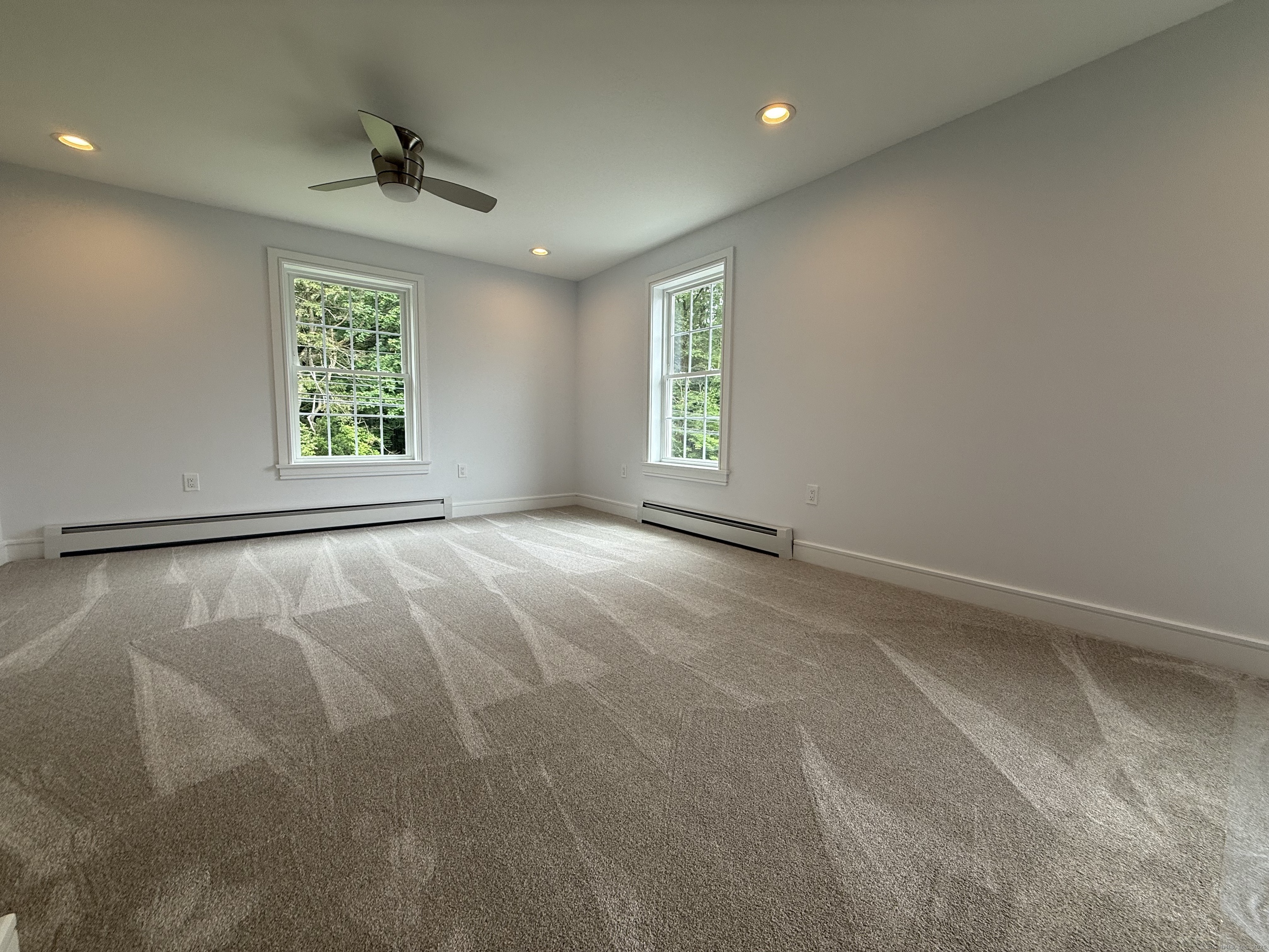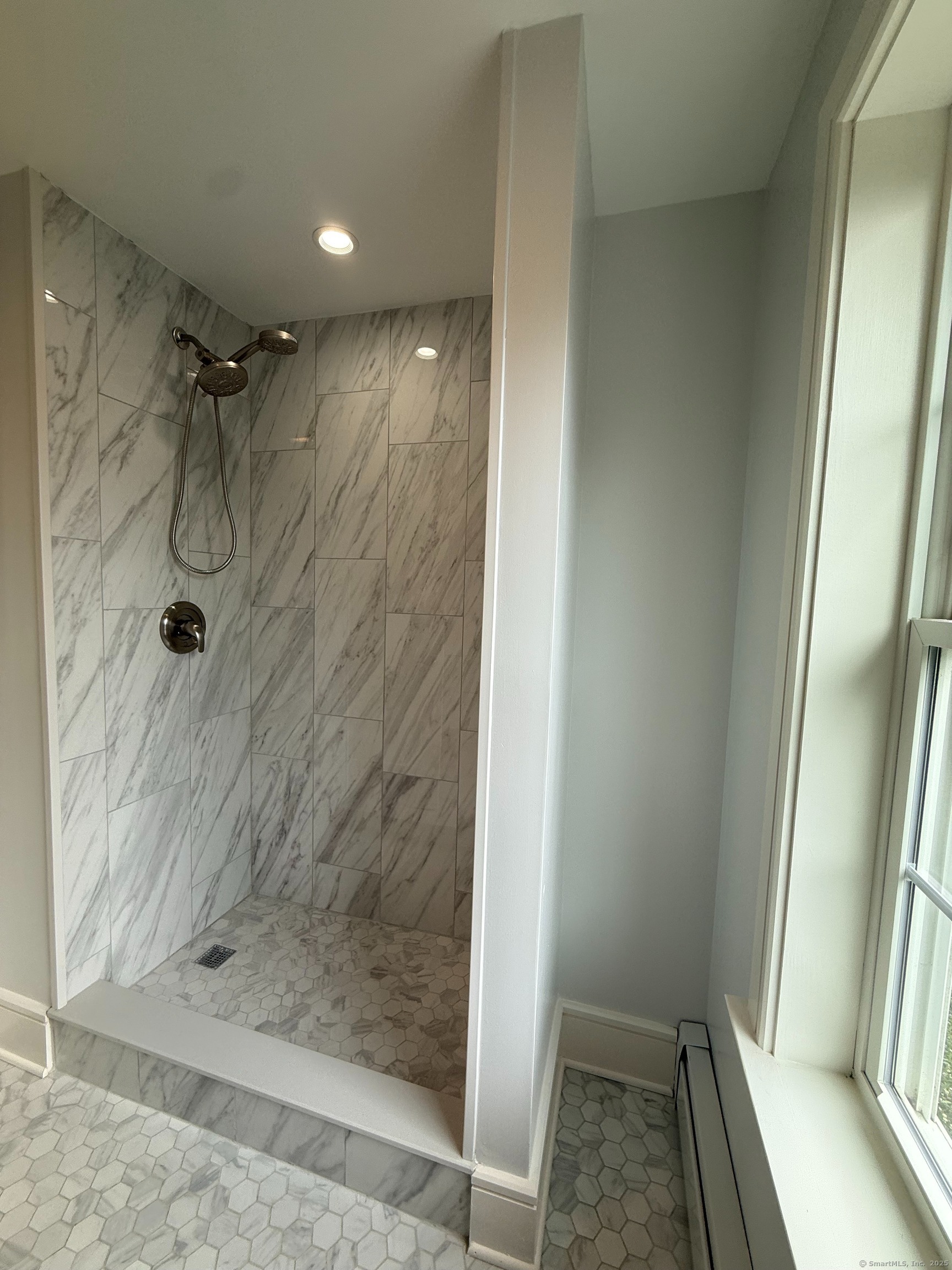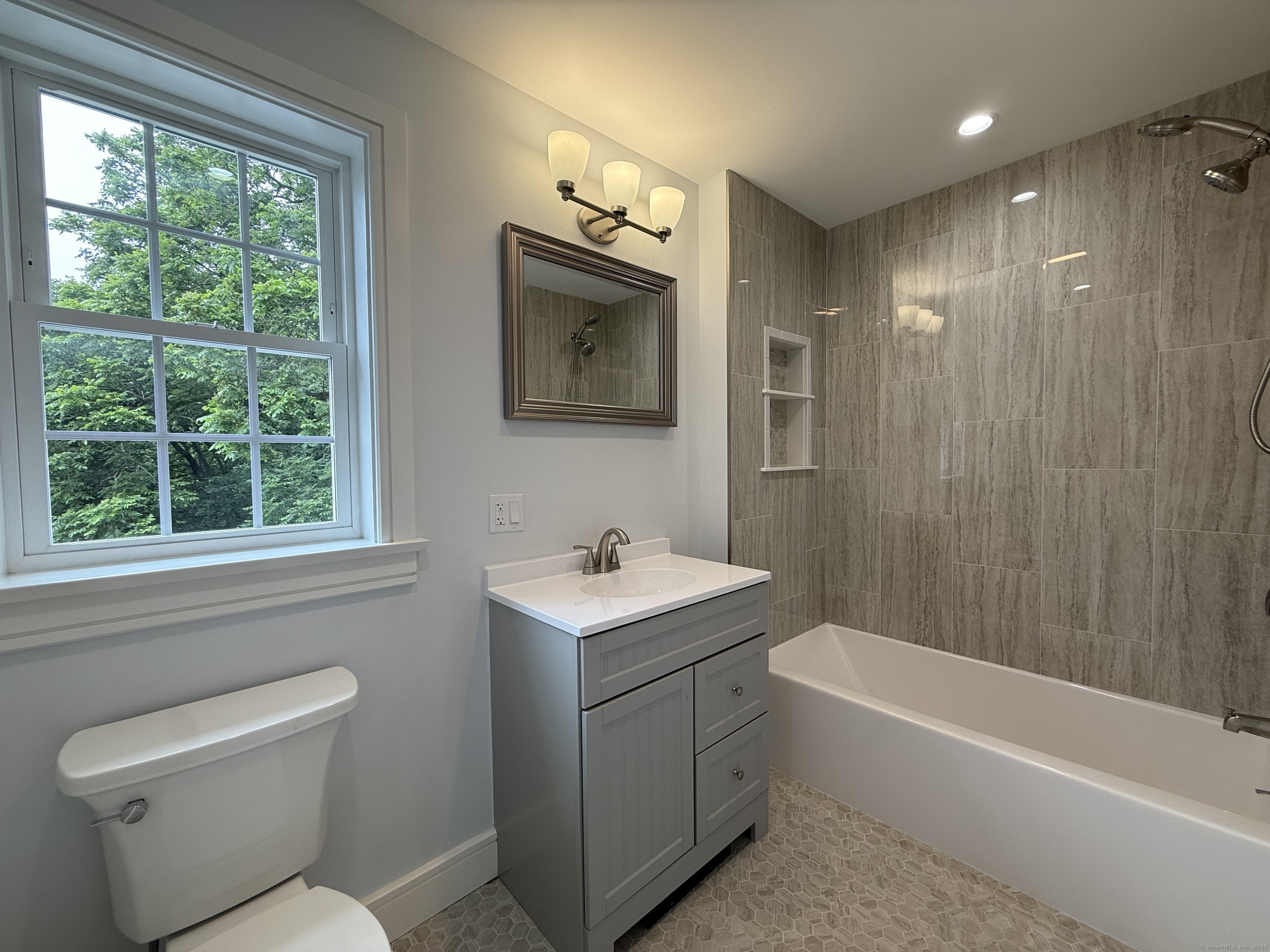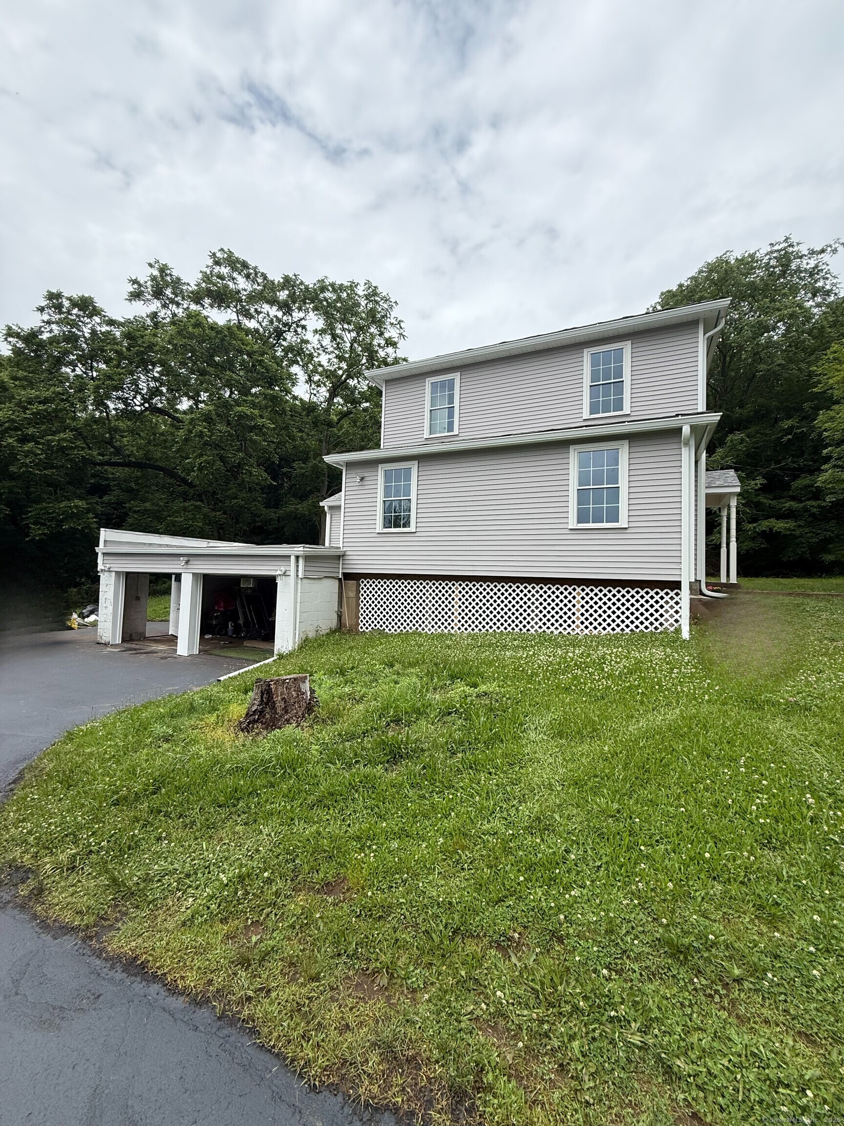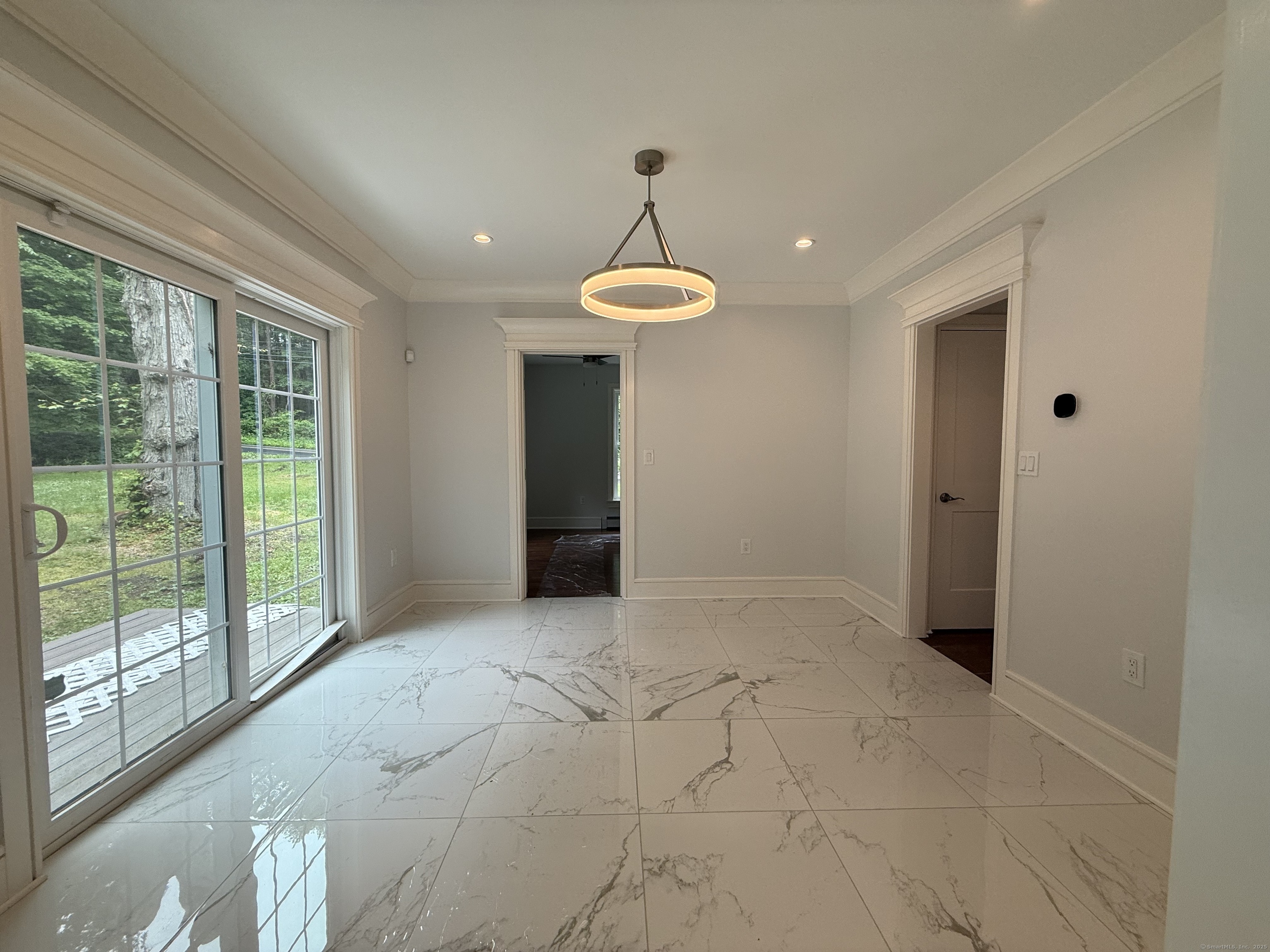 Rebuilt from the studs in 2025, this 4-bed, 2.5-bath Colonial pairs modern comfort with privacy on 1.80 acres along Meriden's southern edge. The chef's kitchen features Carrara marble counters, premium cabinetry, stainless-steel appliances, and marble tile that flows into the dining area. Custom millwork and gleaming hardwoods elevate the main level, which also includes a first-floor bedroom with en-suite bath-ideal for multigenerational living or guests. Upstairs, three generous bedrooms share an updated full bath with designer finishes. A high-efficiency propane Navien system provides on-demand hot water and heat, complemented by all-new plumbing, electrical, and insulation for long-term peace of mind. Exterior upgrades include new vinyl siding, two low-maintenance Trex decks, a paver walkway, a freshly seal-coated driveway, and an attached two-car garage. The gently wooded, park-like setting offers tranquility with only one adjacent neighbor. RA zoning and the expansive lot may allow future expansion or additional structures; must confirm with the town. Move-in ready with a flexible floor plan and potential to grow. Available for a quick closing.