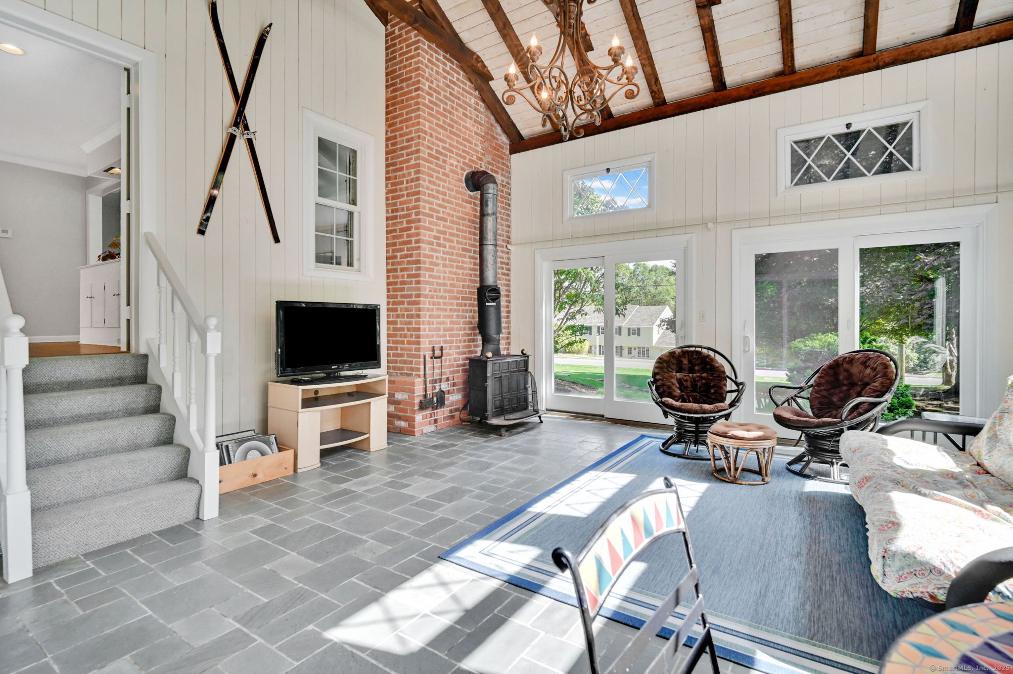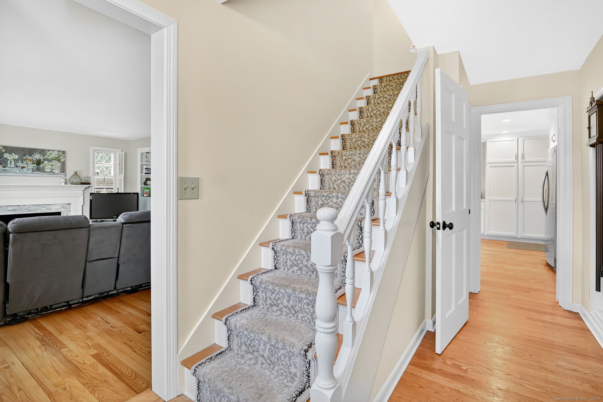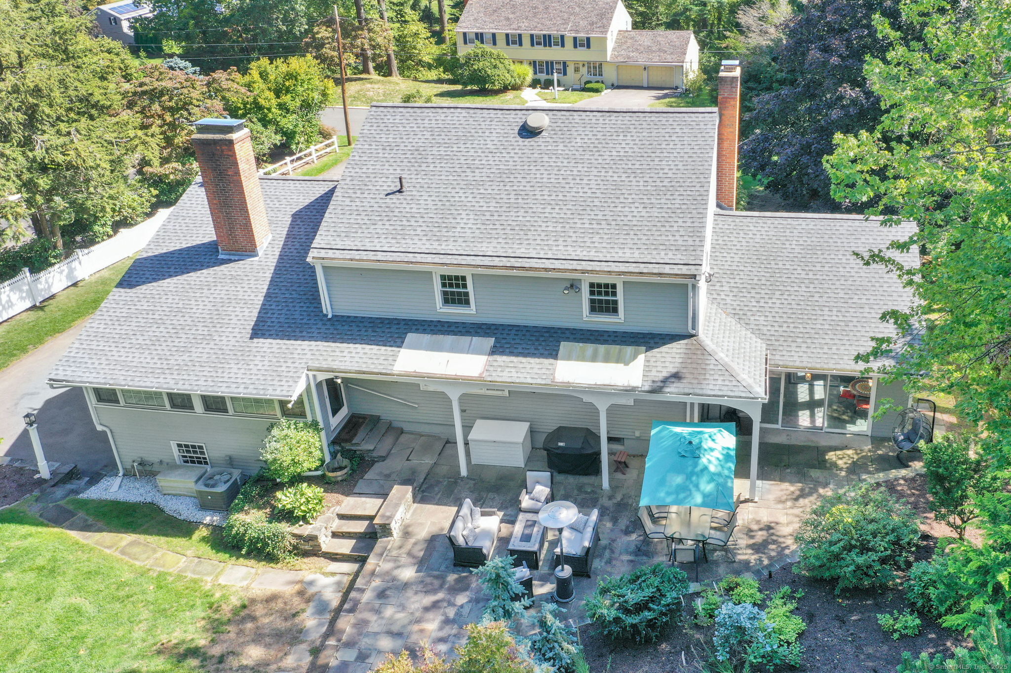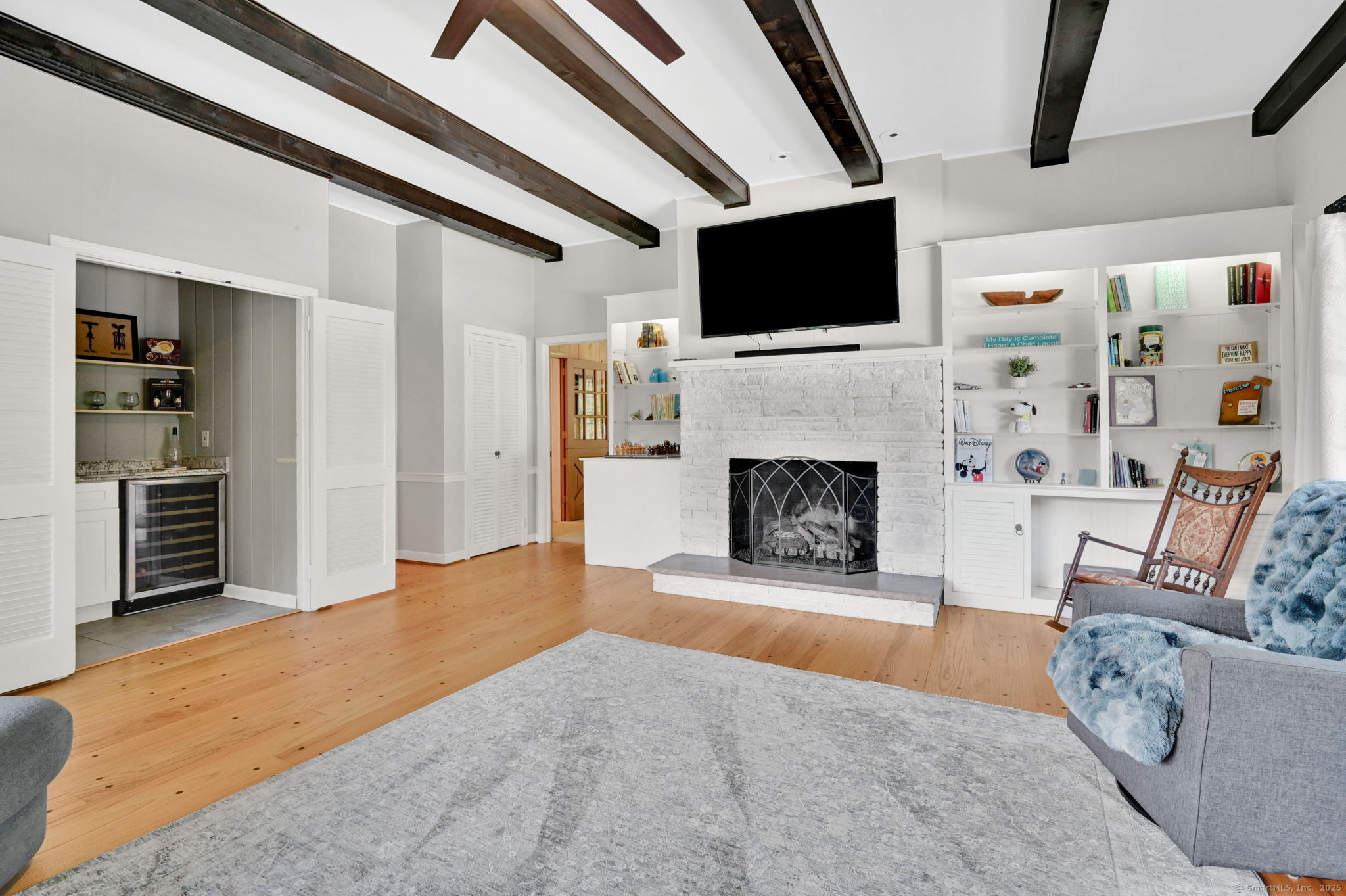 Welcome to this stunning 3-bed, 2 full & 2 half bath Colonial in one of West Hartford's most desirable neighborhoods. Step into the bright foyer, with a large sunken living room with wood-burning fireplace to one side, & an enormous family room with gas fireplace, exposed beams and a built-in bar on the other. At the back of the house, the open-layout kitchen and dining room lends itself well to modern living, with updated white cabinets, quartz countertops stainless-steel appliances and a large island. Next to the kitchen is an additional room that overlooks the backyard, ideal for an office or even an additional bedroom. A large sunroom with high ceilings and exposed wooden beams is a unique feature, with a wood-burning stove to keep you cozy on cool evenings. Upstairs, the primary suite offers an updated bathroom, with two additional spacious bedrooms and a stylish hall bath. The finished basement with half bath & garage access provides in-law potential. Features include hardwood floors throughout, central a/c, sprinkler system, and a roof less than 5 years old. With a huge lot with invisible fence for pets, a partially covered back patio and the Canal Trail straight from the backyard to the reservoir, this is certainly a dream home!