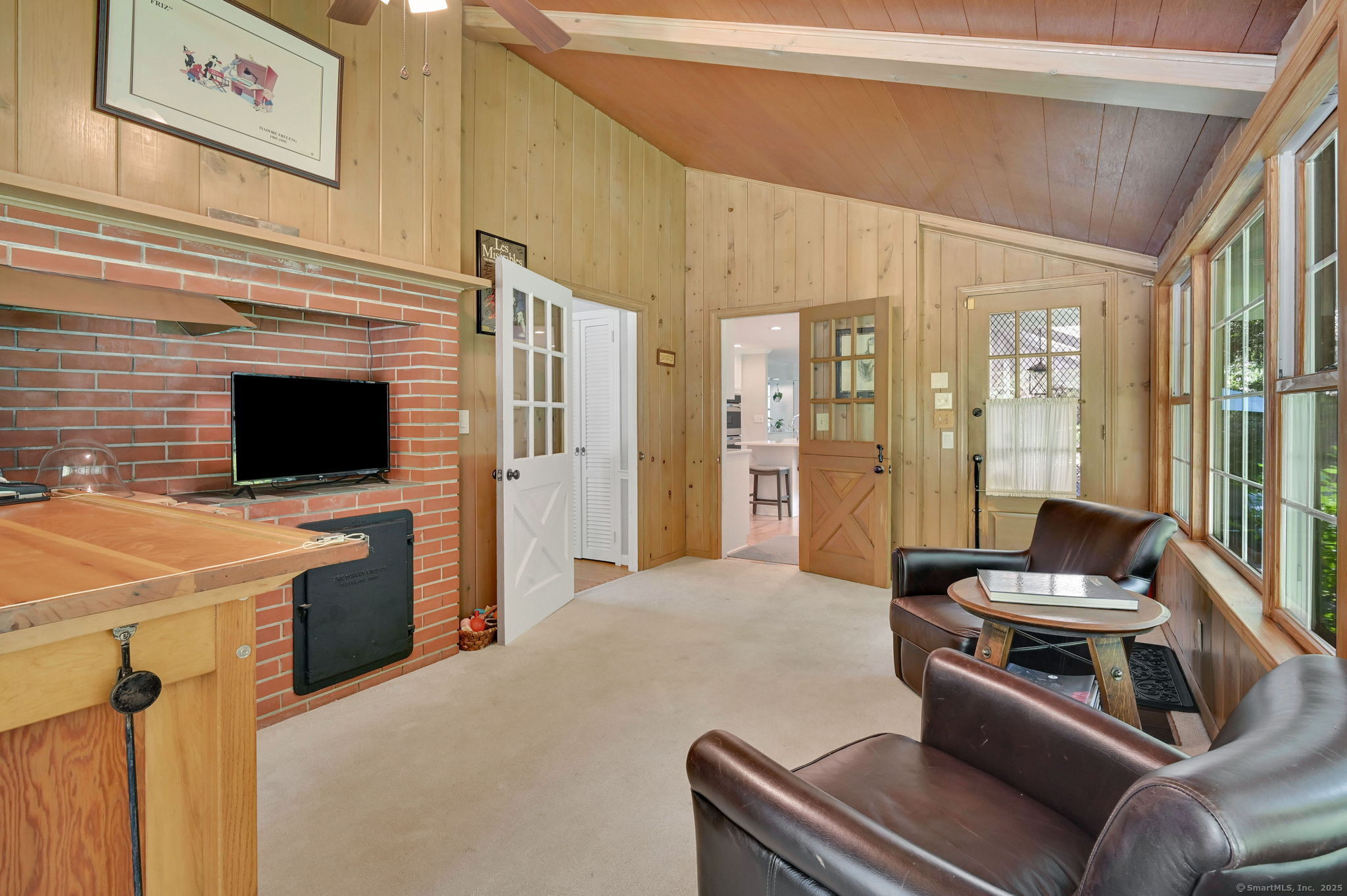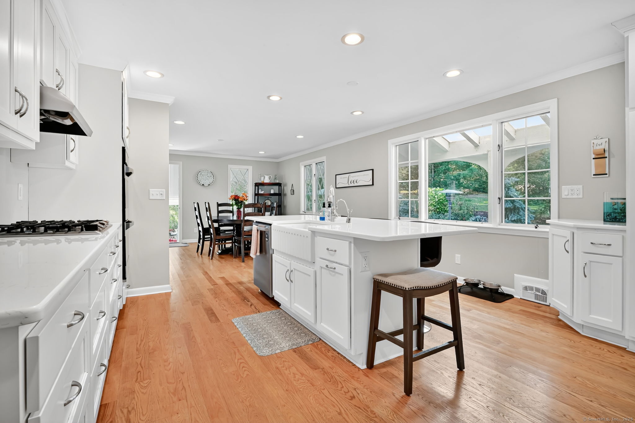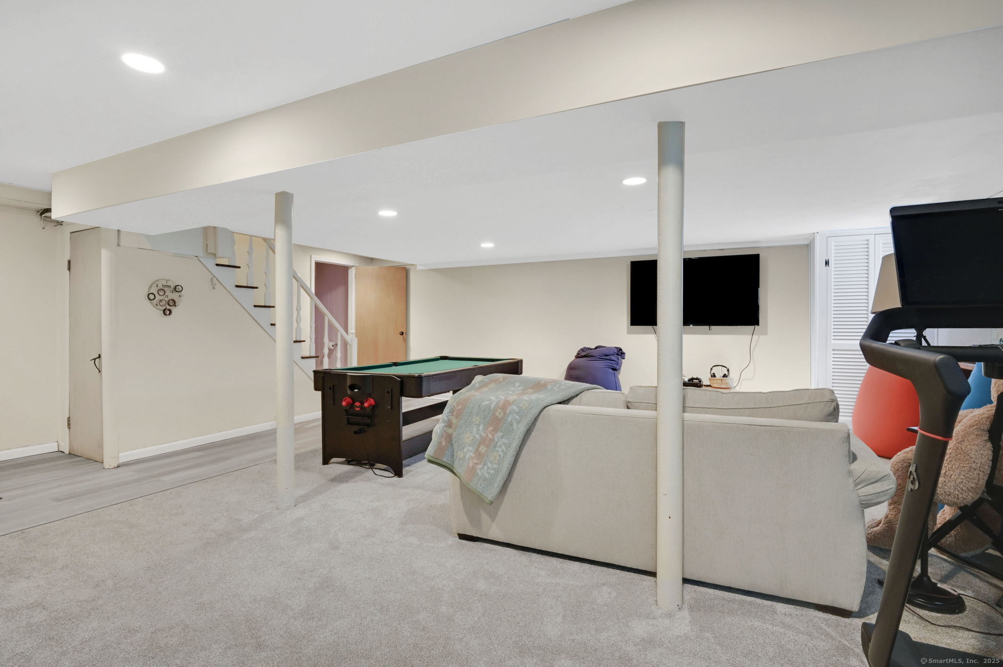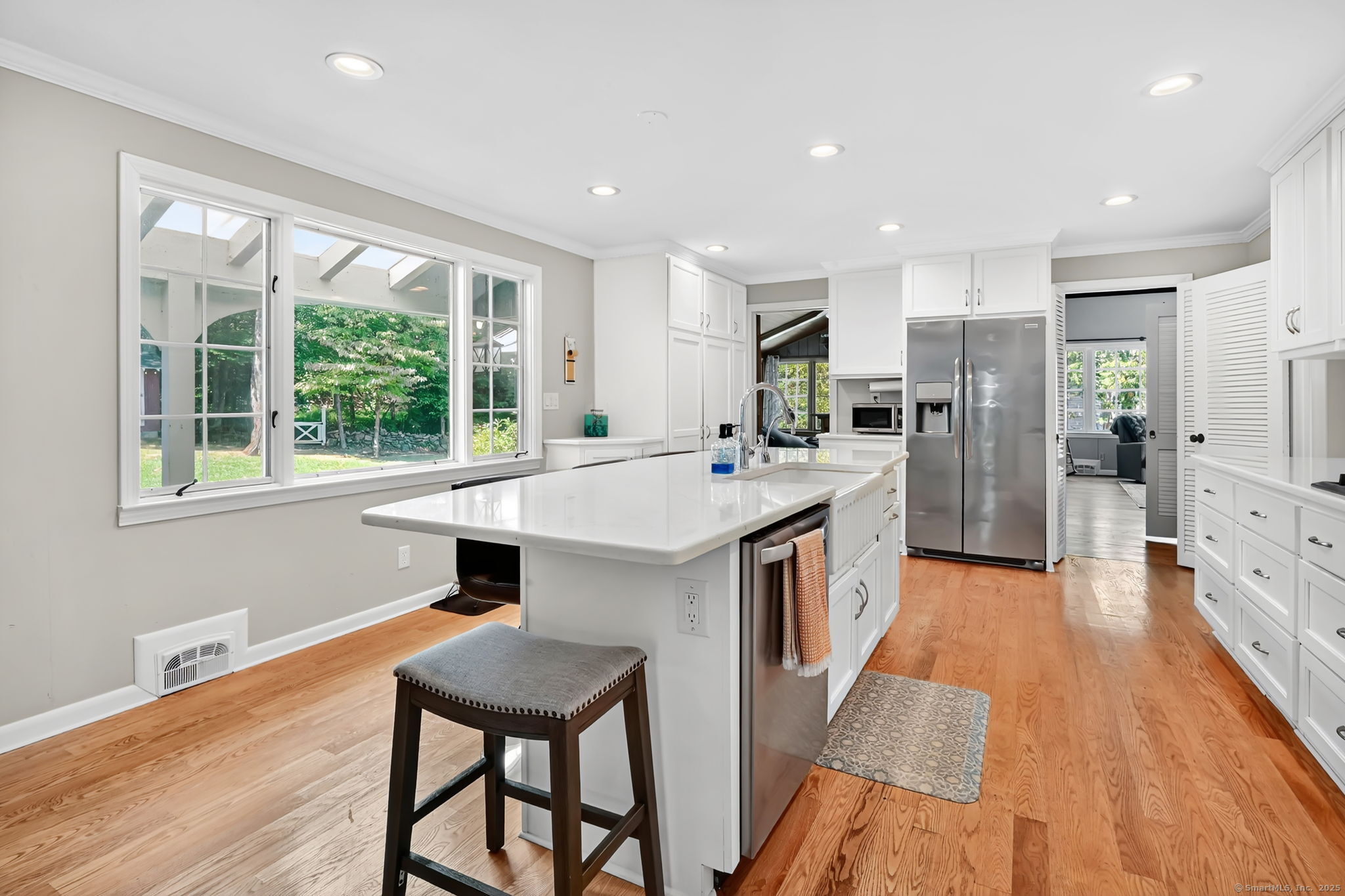 Welcome to this stunning 3-bed, 2 full & 2 half bath Colonial in one of West Hartford's most desirable neighborhoods. Step into the bright foyer, with a large sunken living room with wood-burning fireplace to one side, & an enormous family room with gas fireplace, exposed beams and a built-in bar on the other. At the back of the house, the open-layout kitchen and dining room lends itself well to modern living, with updated white cabinets, quartz countertops stainless-steel appliances and a large island. Next to the kitchen is an additional room that overlooks the backyard, ideal for an office or even an additional bedroom. A large sunroom with high ceilings and exposed wooden beams is a unique feature, with a wood-burning stove to keep you cozy on cool evenings. Upstairs, the primary suite offers an updated bathroom, with two additional spacious bedrooms and a stylish hall bath. The finished basement with half bath & garage access provides in-law potential. Features include hardwood floors throughout, central a/c, sprinkler system, and a roof less than 5 years old. With a huge lot with invisible fence for pets, a partially covered back patio and the Canal Trail straight from the backyard to the reservoir, this is certainly a dream home!