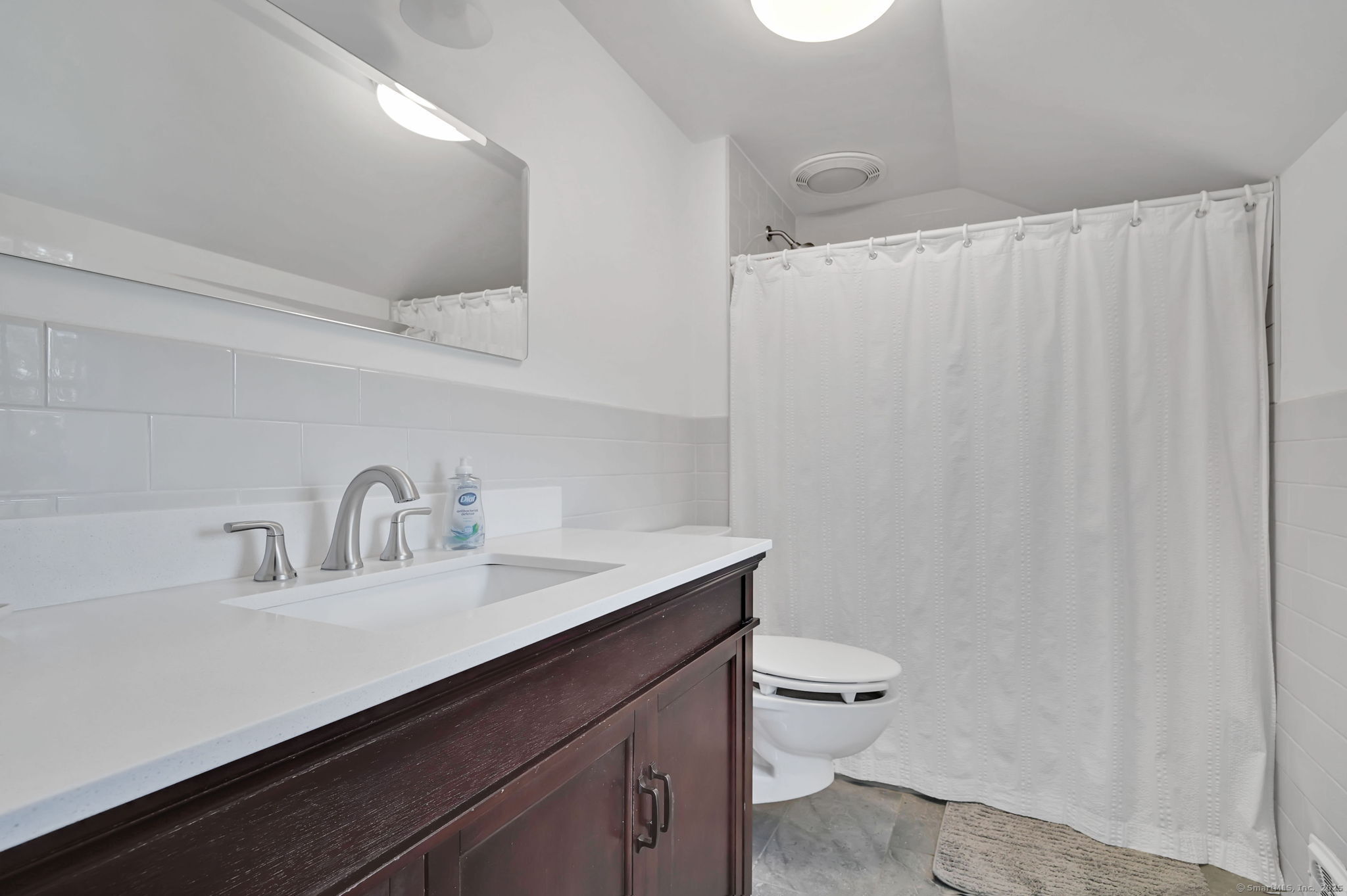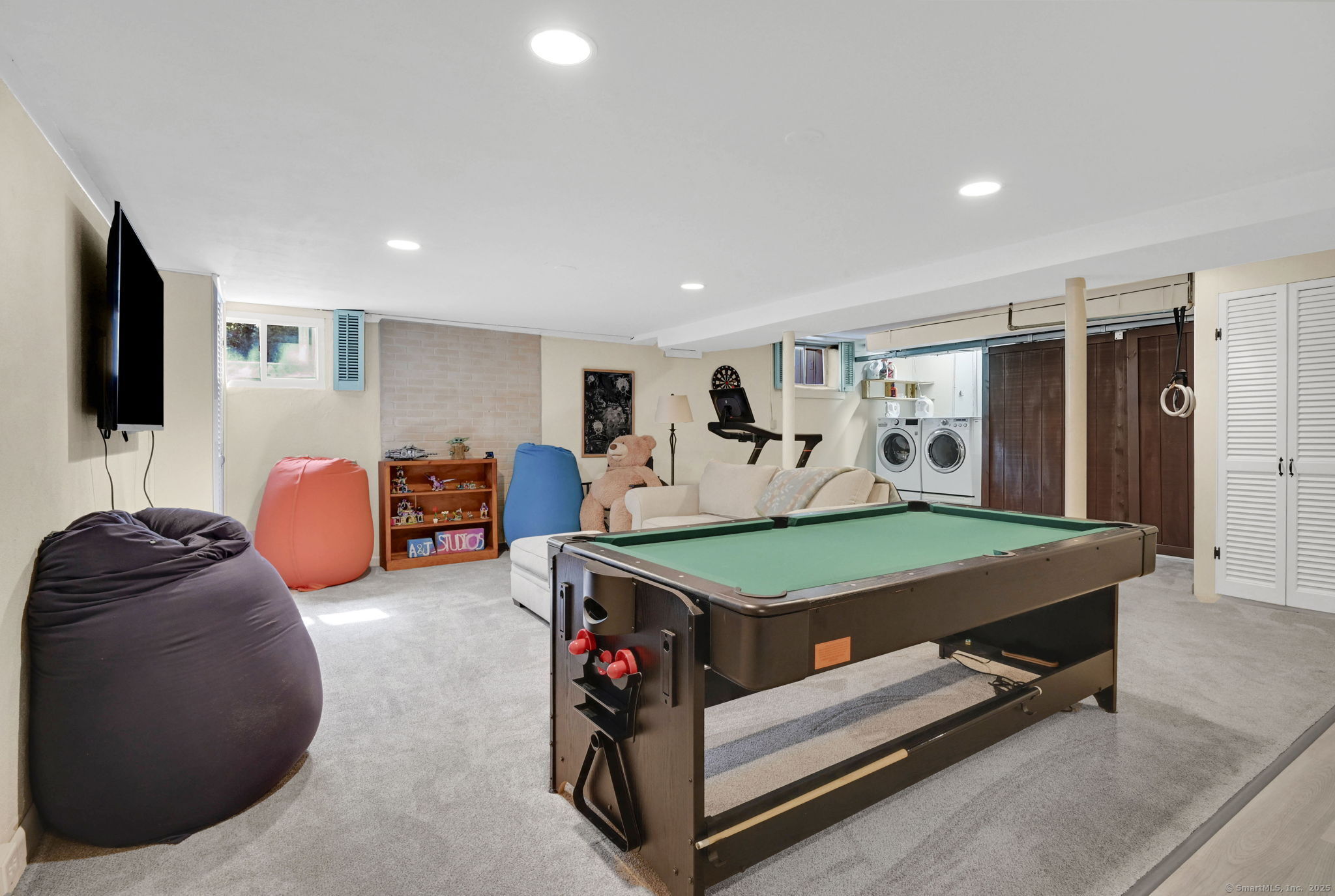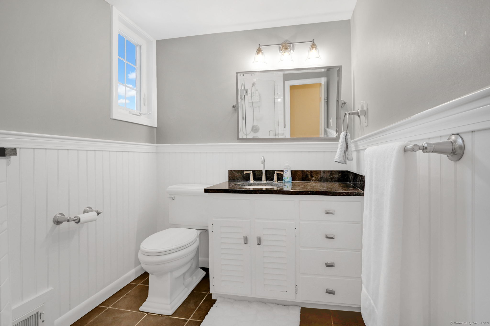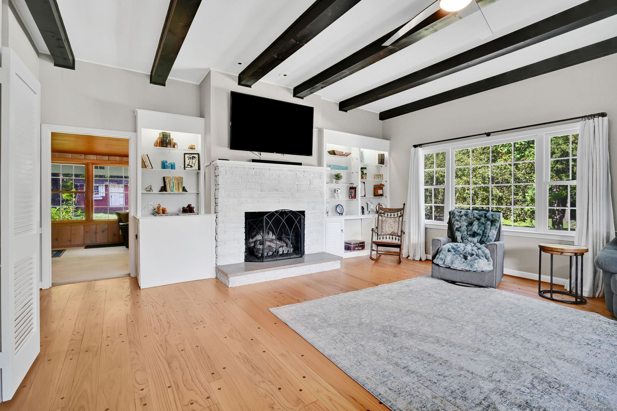 Welcome to this stunning 3-bed, 2 full & 2 half bath Colonial in one of West Hartford's most desirable neighborhoods. Step into the bright foyer, with a large sunken living room with wood-burning fireplace to one side, & an enormous family room with gas fireplace, exposed beams and a built-in bar on the other. At the back of the house, the open-layout kitchen and dining room lends itself well to modern living, with updated white cabinets, quartz countertops stainless-steel appliances and a large island. Next to the kitchen is an additional room that overlooks the backyard, ideal for an office or even an additional bedroom. A large sunroom with high ceilings and exposed wooden beams is a unique feature, with a wood-burning stove to keep you cozy on cool evenings. Upstairs, the primary suite offers an updated bathroom, with two additional spacious bedrooms and a stylish hall bath. The finished basement with half bath & garage access provides in-law potential. Features include hardwood floors throughout, central a/c, sprinkler system, and a roof less than 5 years old. With a huge lot with invisible fence for pets, a partially covered back patio and the Canal Trail straight from the backyard to the reservoir, this is certainly a dream home!