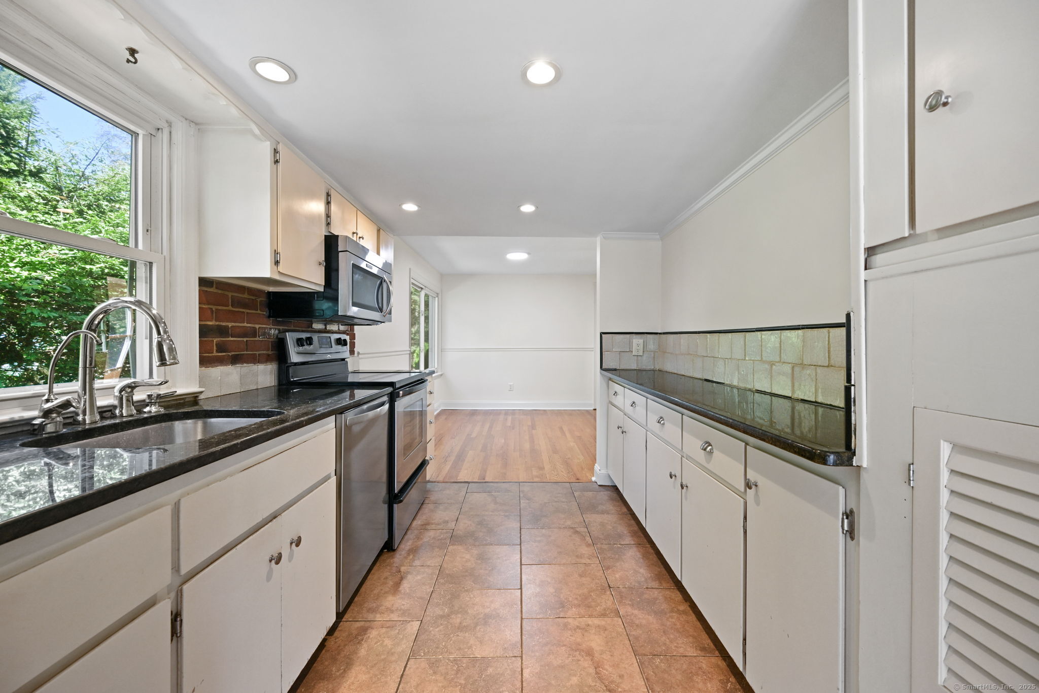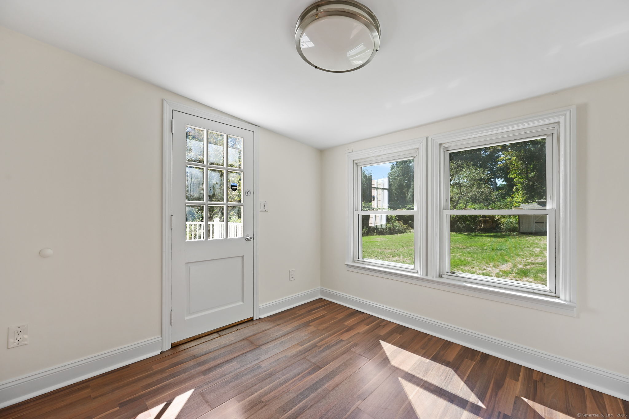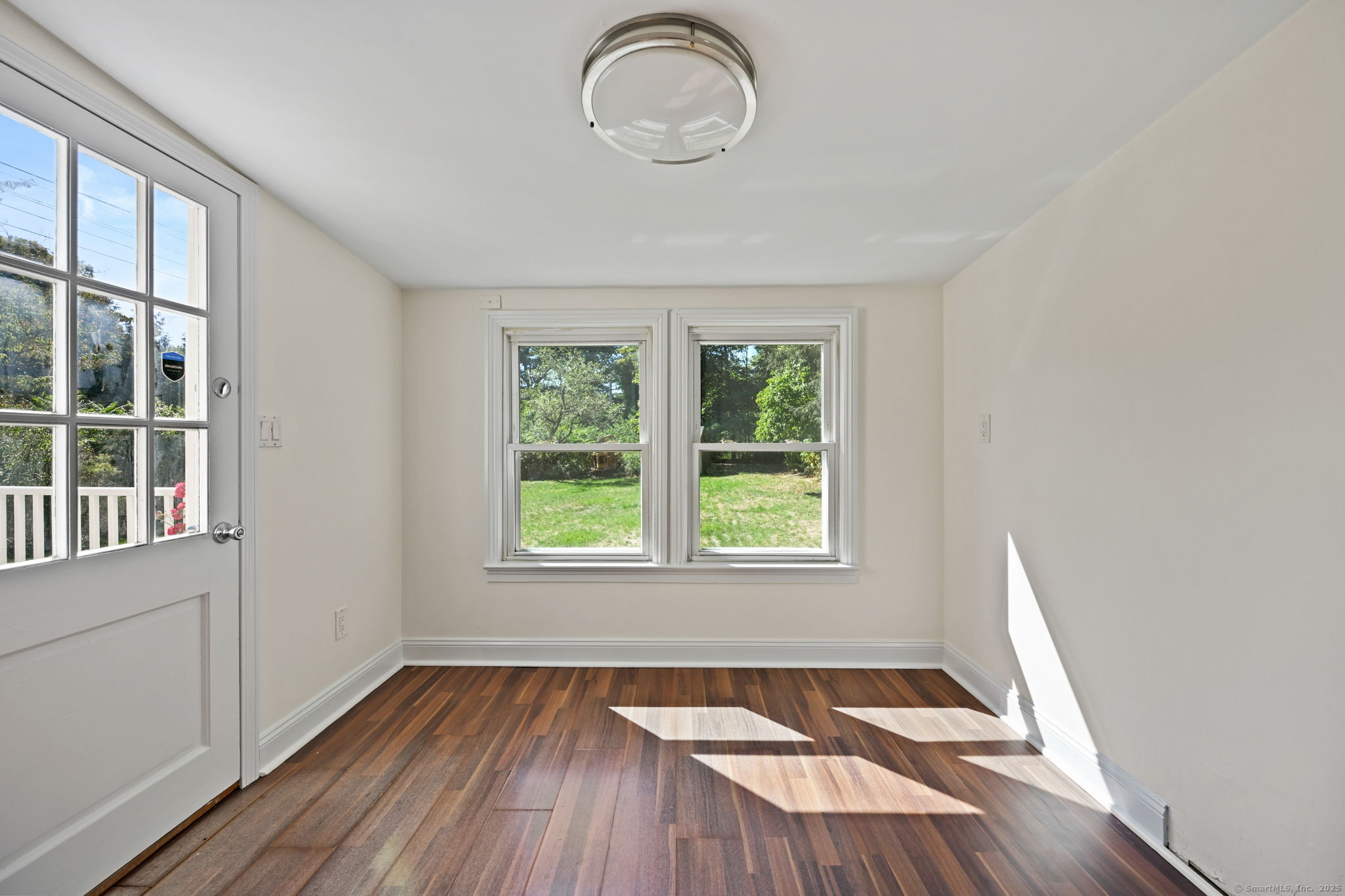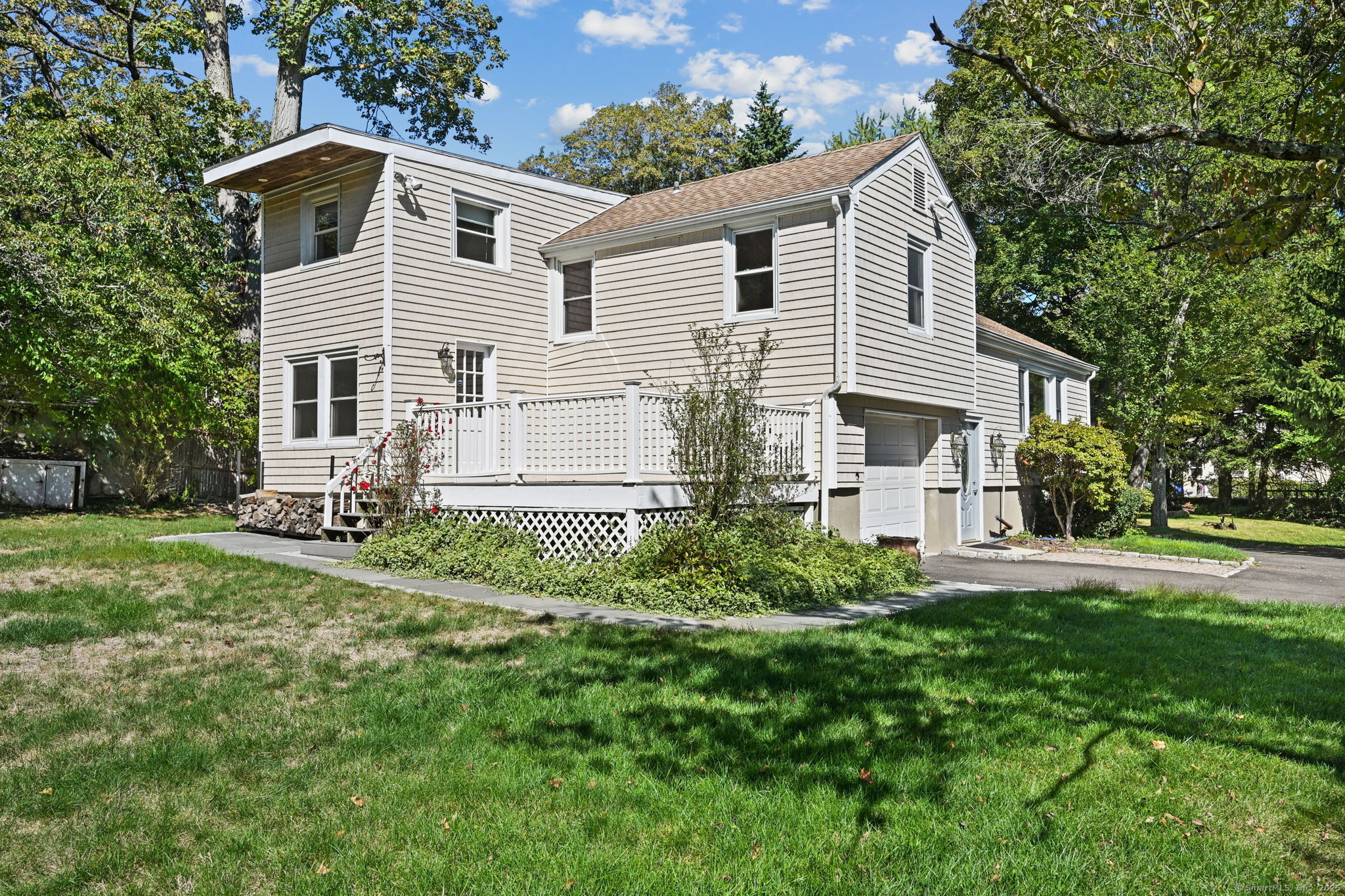 Welcome to Chestnut Hill, where this beautifully maintained 3-bedroom, 2-bath home offers comfort, character, and convenience on nearly an acre of private grounds. Freshly painted throughout, the home features gleaming hardwood floors and thoughtful spaces designed for everyday living. At the heart of the home, the kitchen opens to a bright enclosed area with walls of windows overlooking the backyard, creating the perfect spot to relax and take in the scenery. On one side, the dining area connects seamlessly to a spacious living room with a cozy fireplace, ideal for both entertaining and quiet evenings at home. The finished basement provides versatile space for a family room, home office, or gym. Additional features include central air, an attached garage, and tastefully landscaped grounds with sprinklers, highlighted by a charming bridge that enhances the property's unique appeal.