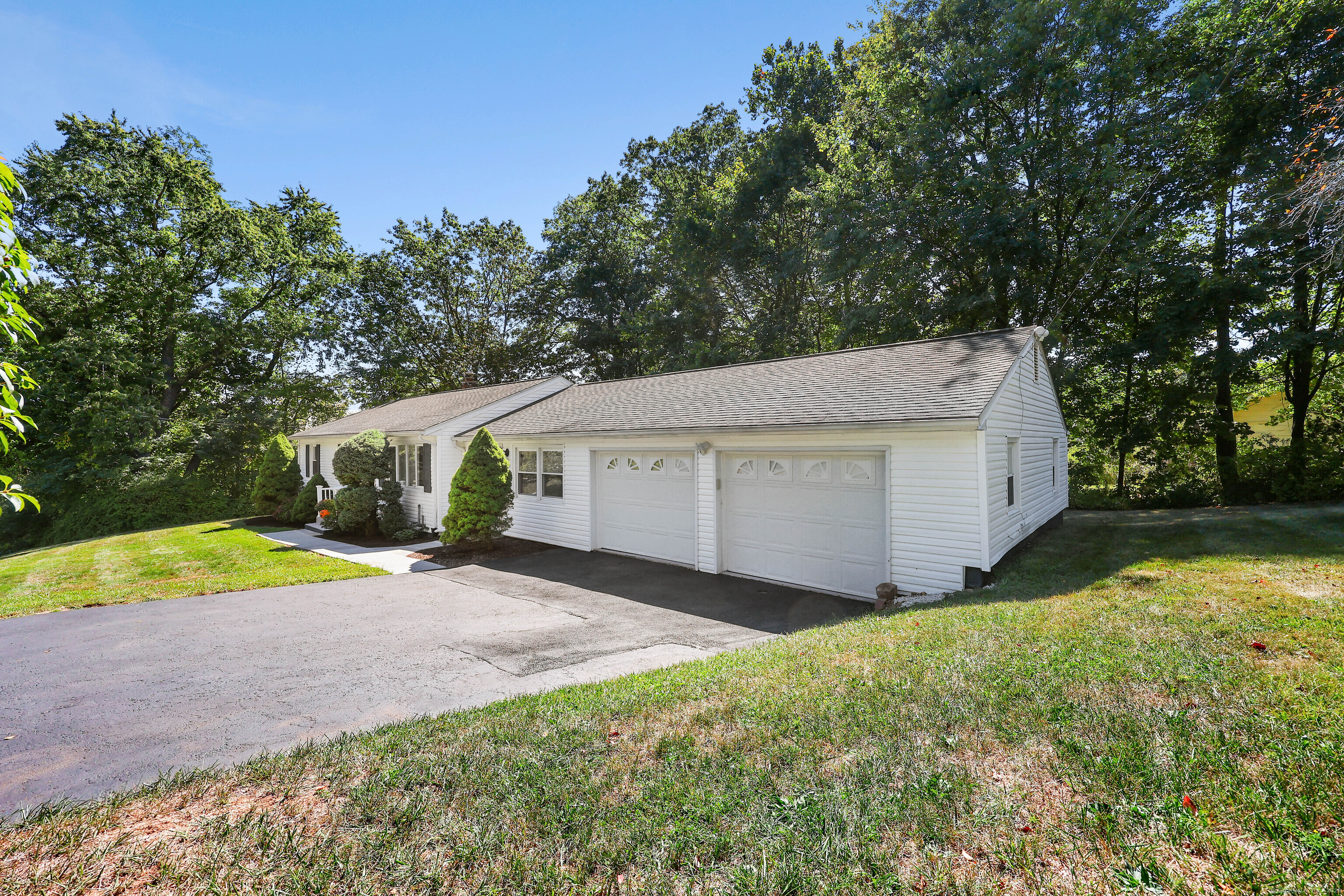 Move right in to this updated 3-bedroom, light and bright, ranch on a quiet cul-de-sac in Connecticut. Featuring a newly renovated kitchen, fresh paint, updated flooring, a renovated full bath plus an additional half bath, this home combines modern style with one-level living. The light-filled living room highlights beautiful hardwood floors, while the large deck is perfect for outdoor entertaining. Enjoy a spacious two-car garage and a large unfinished basement offering storage or expansion potential. A move-in ready home in a requested neighborhood with easy access to local amenities.