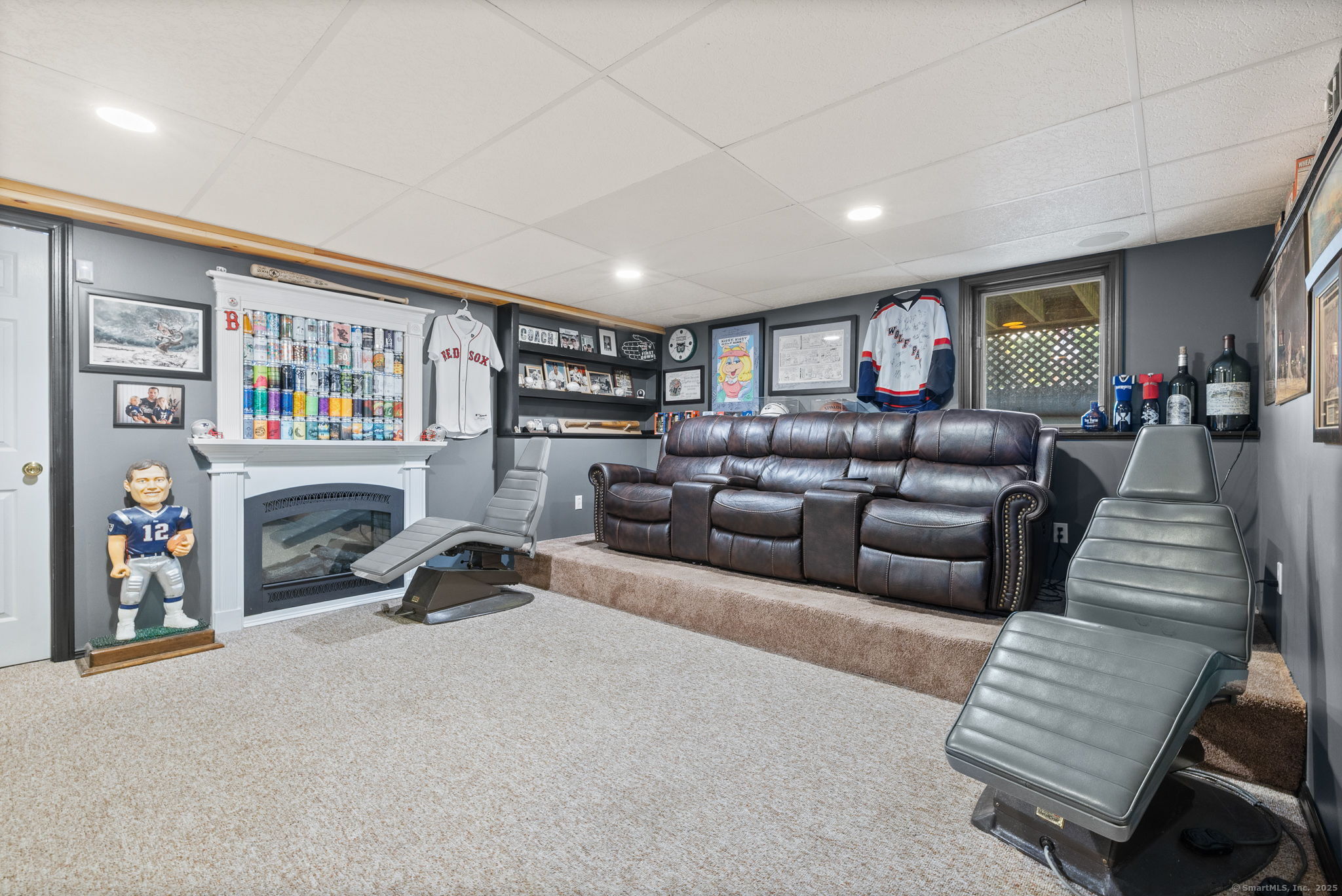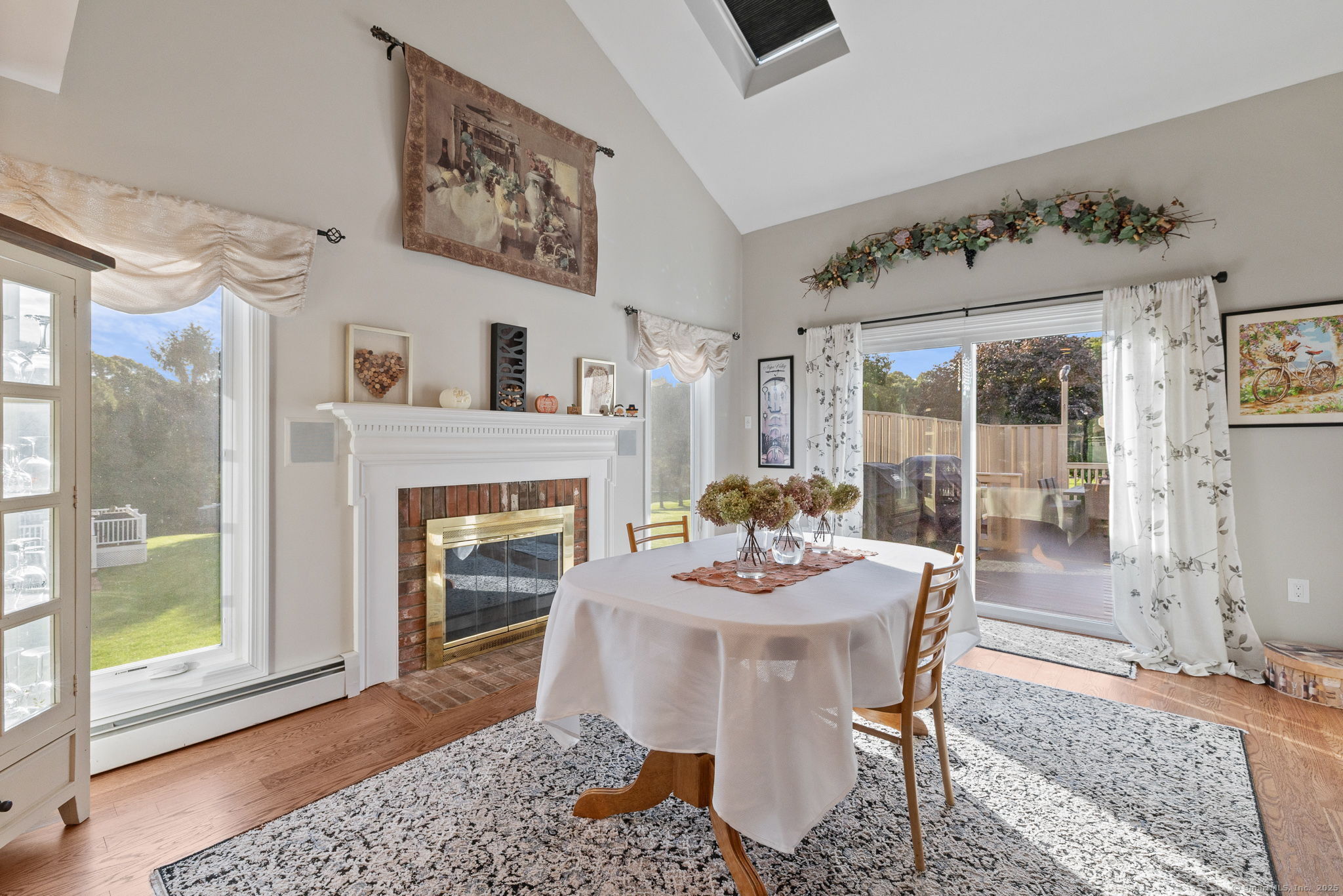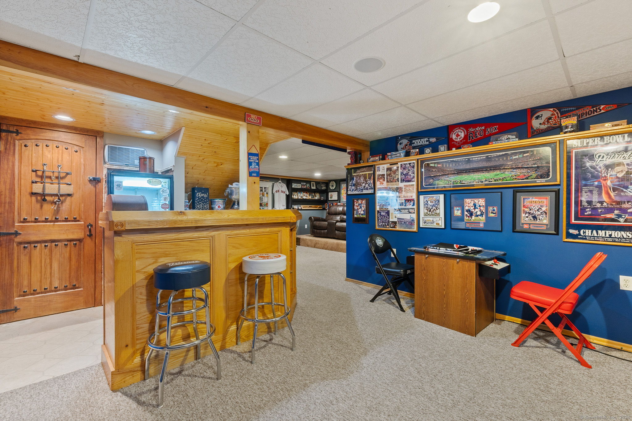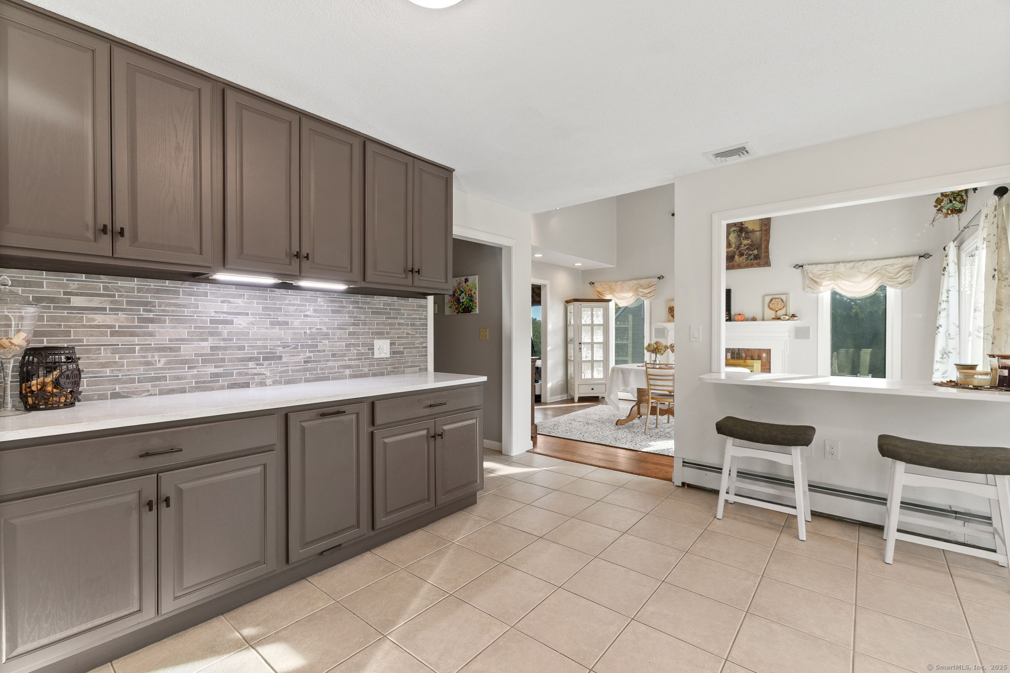 HIGHEST AND BEST DUE BY MONDAY 8:00 PM Welcome to 49 Pondview Lane, nestled in one of Bristol's most sought-after neighborhoods where homes are rarely available & pride of ownership shines. This stunning contemporary offers 3 bedrooms, 2.5 baths, over 2,400 square feet of thoughtfully designed living space. The main level boasts a remodeled kitchen with quartz countertops, tile backsplash & abundant cabinet space, flowing into a dining room with hardwood floors, a cozy fireplace & sliders that open to an expansive composite deck. Just off the dining room, the sunken living room features rich wood floors, perfect for both everyday relaxation & entertaining. An office or study & a convenient half bath complete the first floor. Upstairs, three generous bedrooms with hardwood floors & double closets provide ample space, including a primary suite with two double closets, a luxurious en-suite bath with jacuzzi tub & a separate shower. A second updated full bath & laundry add ease & functionality. The lower level is a true retreat with a partially finished space featuring theater seating, a bar & a wine cellar, ideal for movie nights or hosting friends, plus abundant storage. Recent updates include full replacement windows, new skylights, a newer roof & meticulous upgrades throughout. Outside, a manicured lawn, composite deck, paver patio with built-in firepit, & oversized spotless garage add to the appeal.