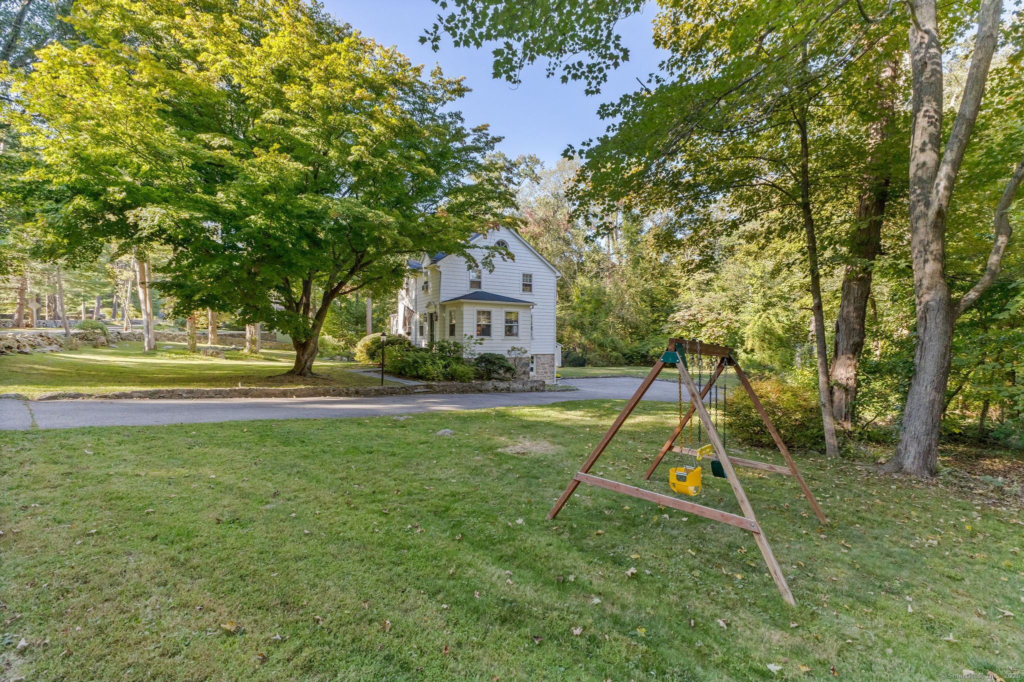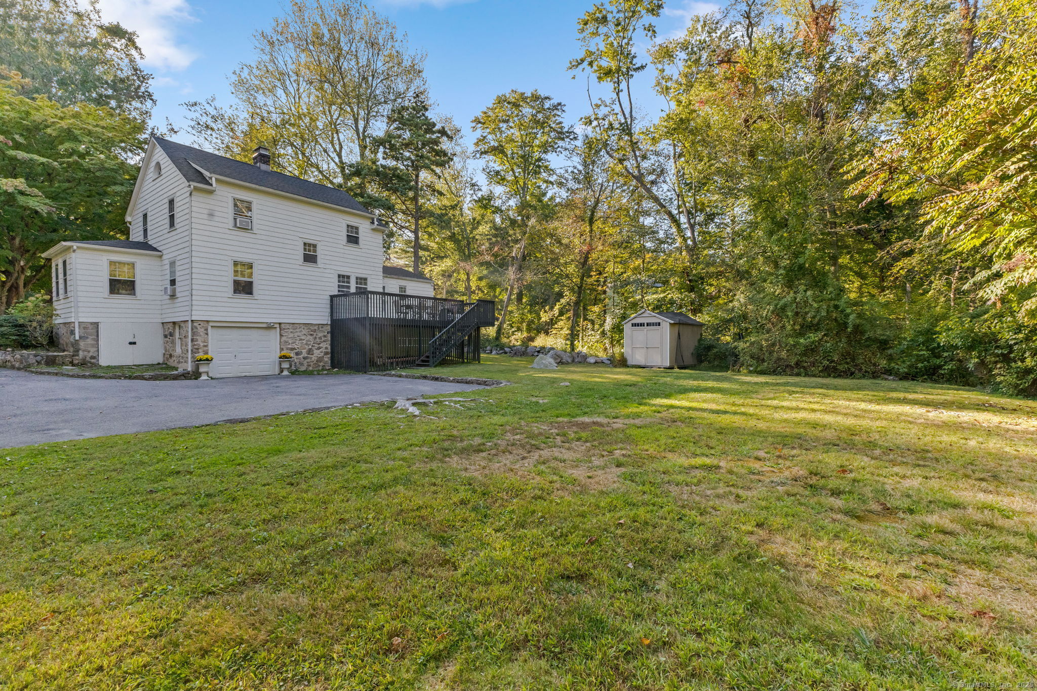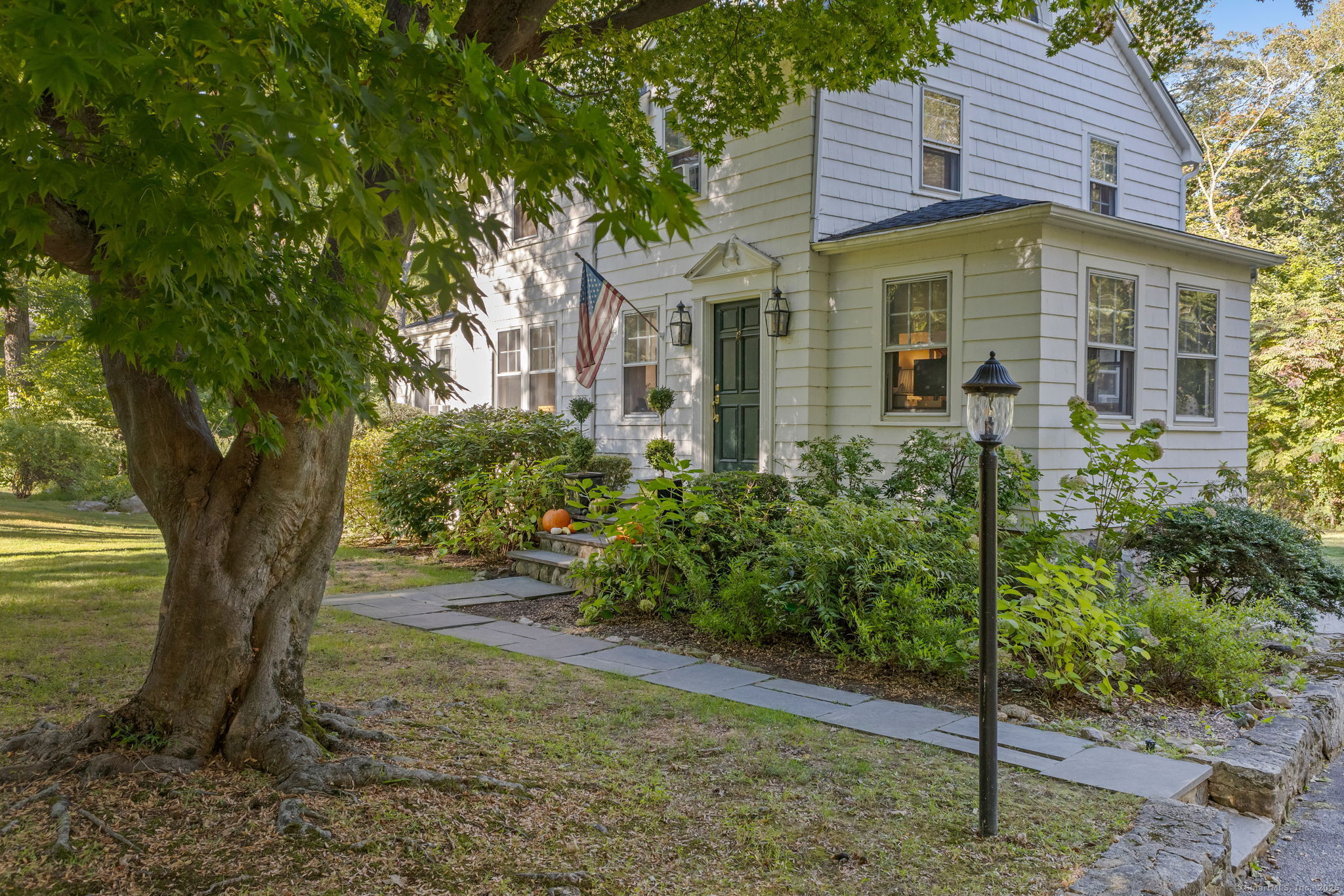 Nestled in the picturesque setting of Stamford, Connecticut, 27 Briar Brae Road welcomes you with its enchanting charm and timeless elegance. This delightful Colonial-style home, boasting 1,672 square feet, is perfectly situated on a square 1 acre lot that offers a serene escape with its mature trees and lush landscaping. Step inside to discover a home that seamlessly blends classic allure with modern comforts. The inviting living room is highlighted by a beautiful gas fireplace, ideal for cozy evenings. Adjacent is a spacious dining area, perfect for entertaining or enjoying intimate family meals. The kitchen, a dream for any culinary enthusiast, features ample cabinetry, stainless steel appliances, a gas stovetop and the convenience of an outdoor deck for easy dining or morning coffee. This home offers three generously-sized bedrooms, with a versatile family room on the first floor that easily transforms into a fourth bedroom, accommodating the evolving needs of any household. Two well-appointed bathrooms ensure convenience and privacy for residents and guests alike. Enjoy the tranquility of your private outdoor space, perfect for summer gatherings or quiet reflection. Additional amenities include a 1 car garage for secure parking, and the convenience of a washer and dryer. Experience the blend of elegance and warmth at 27 Briar Brae Road, a charming retreat that promises a comfortable and inviting lifestyle.