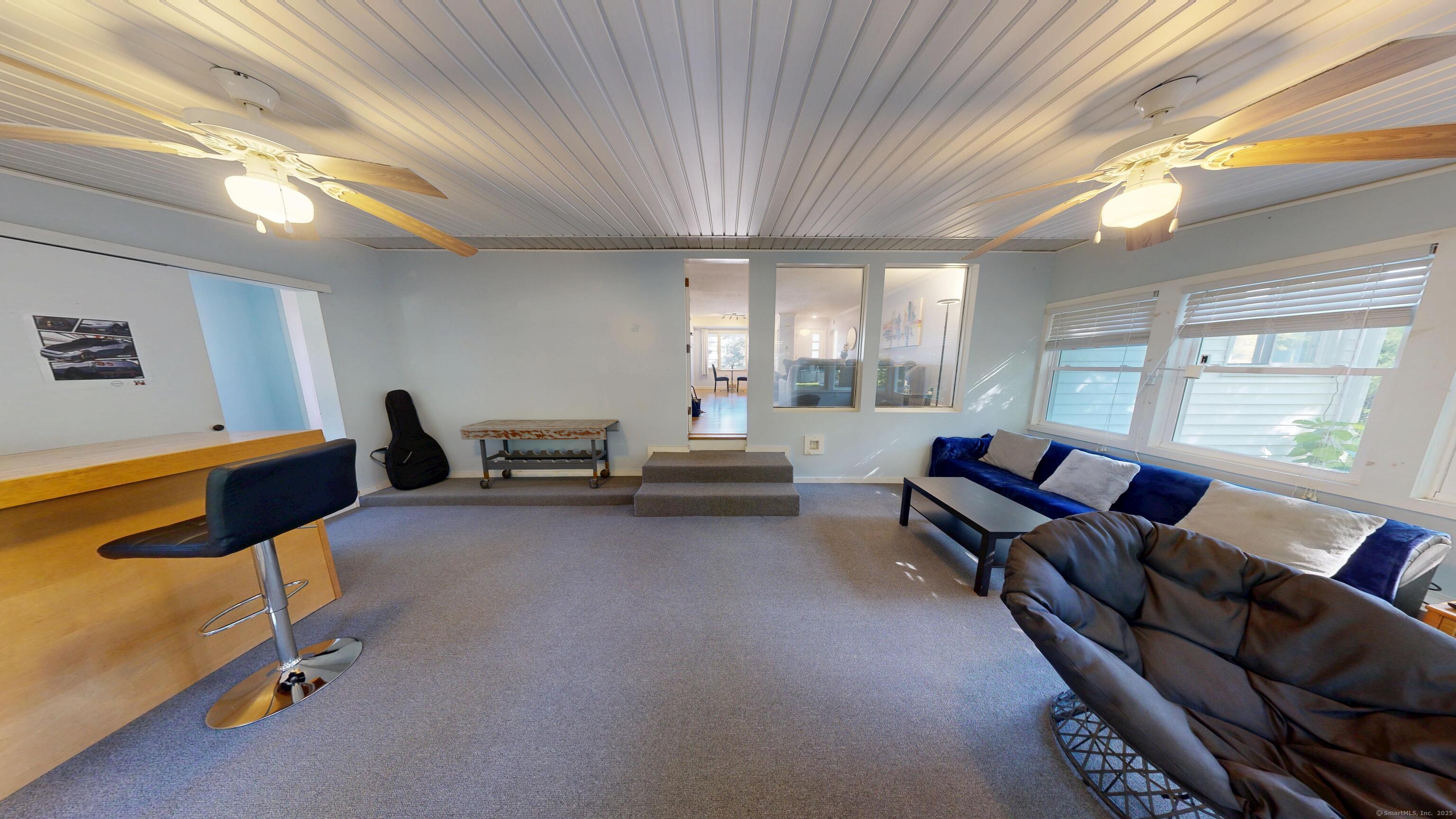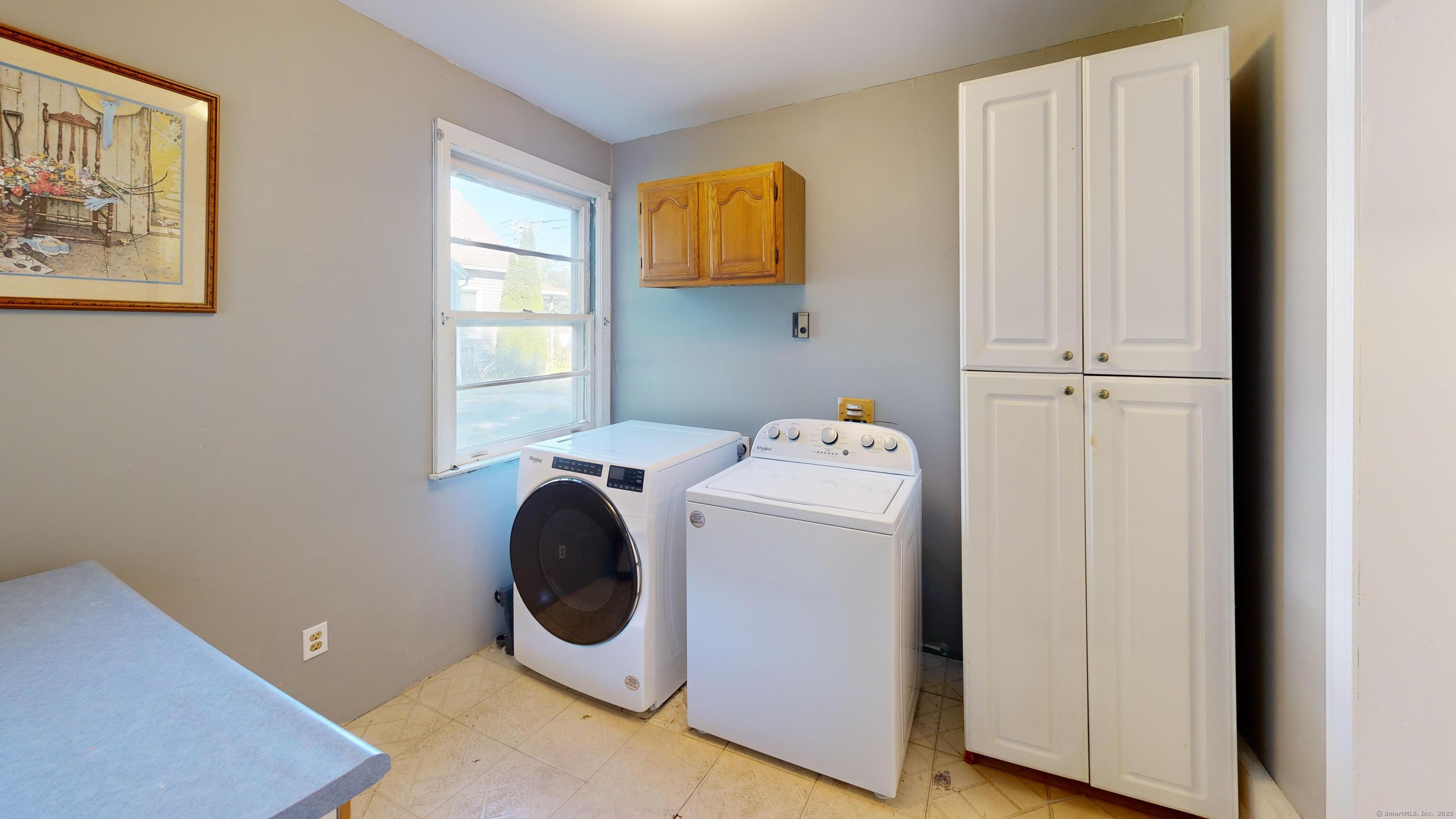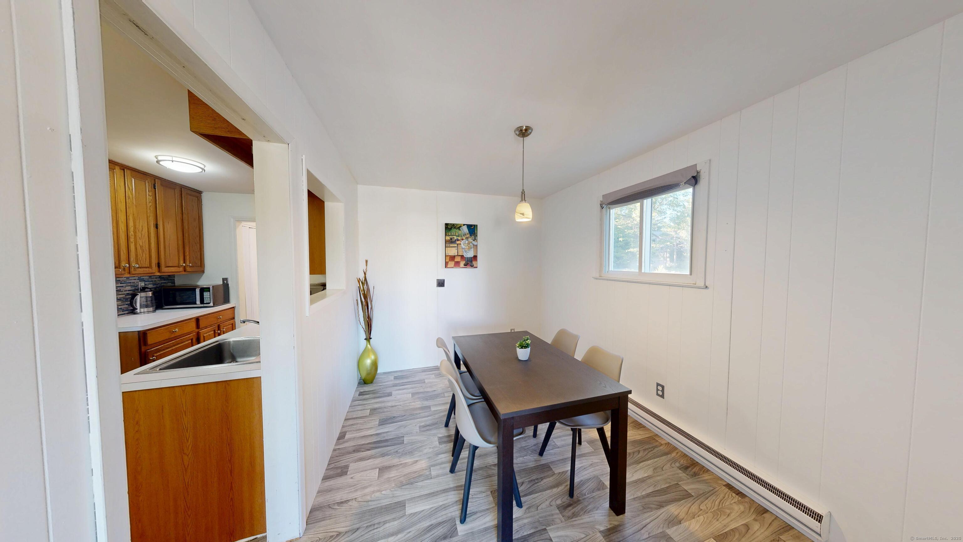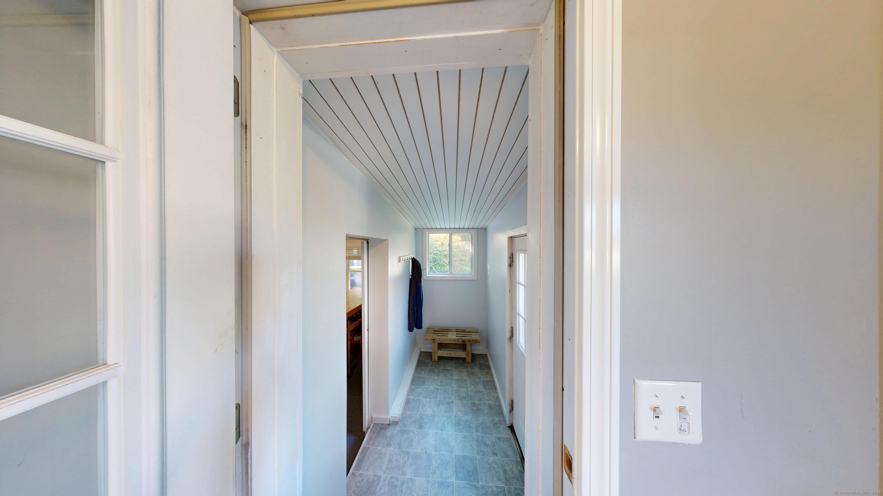 Wonderful, well-maintained ranch offering 3 bedrooms and plenty of charm! Enjoy relaxing on the front porch with sitting area before stepping into the spacious living room with hardwood floors, fireplace, and crown molding. A large sunroom with two ceiling fans adds approximately 300 sq. ft. of additional living space, perfect for year-round enjoyment. The primary bedroom has its own private entrance and can easily function as an in-home office. Two more bedrooms, each with hardwood floors and crown molding, share an updated full bath. The eat-in kitchen opens to a dining room, and the home also features a separate laundry room and mudroom. There is great potential to add a second full bath. The semi-finished lower level offers another 300 sq. ft. and just needs finishing touches to create even more living space. An oversized two-car garage provides abundant storage plus extra parking alongside. Recent updates include a newer roof, oil tank, and washer/dryer (only 6 months old). The private backyard is a true retreat with a newer pool and fire pit-ideal for entertaining or relaxing.