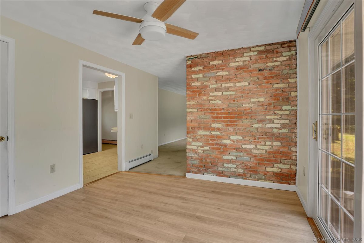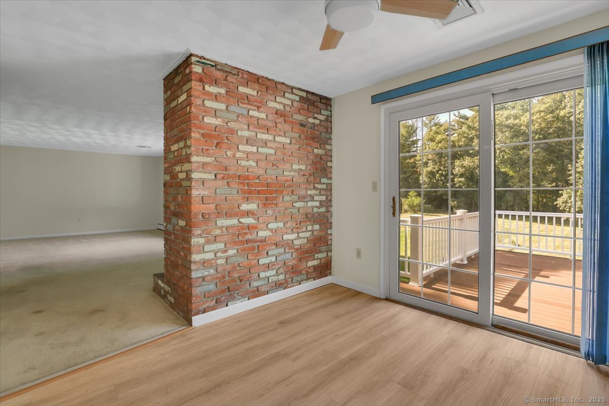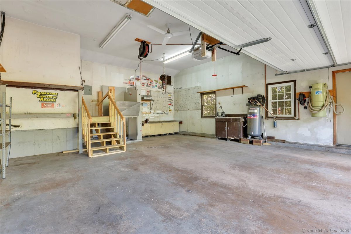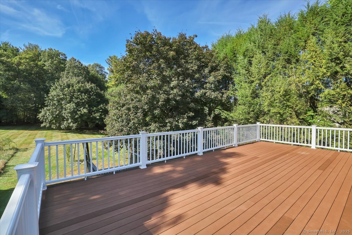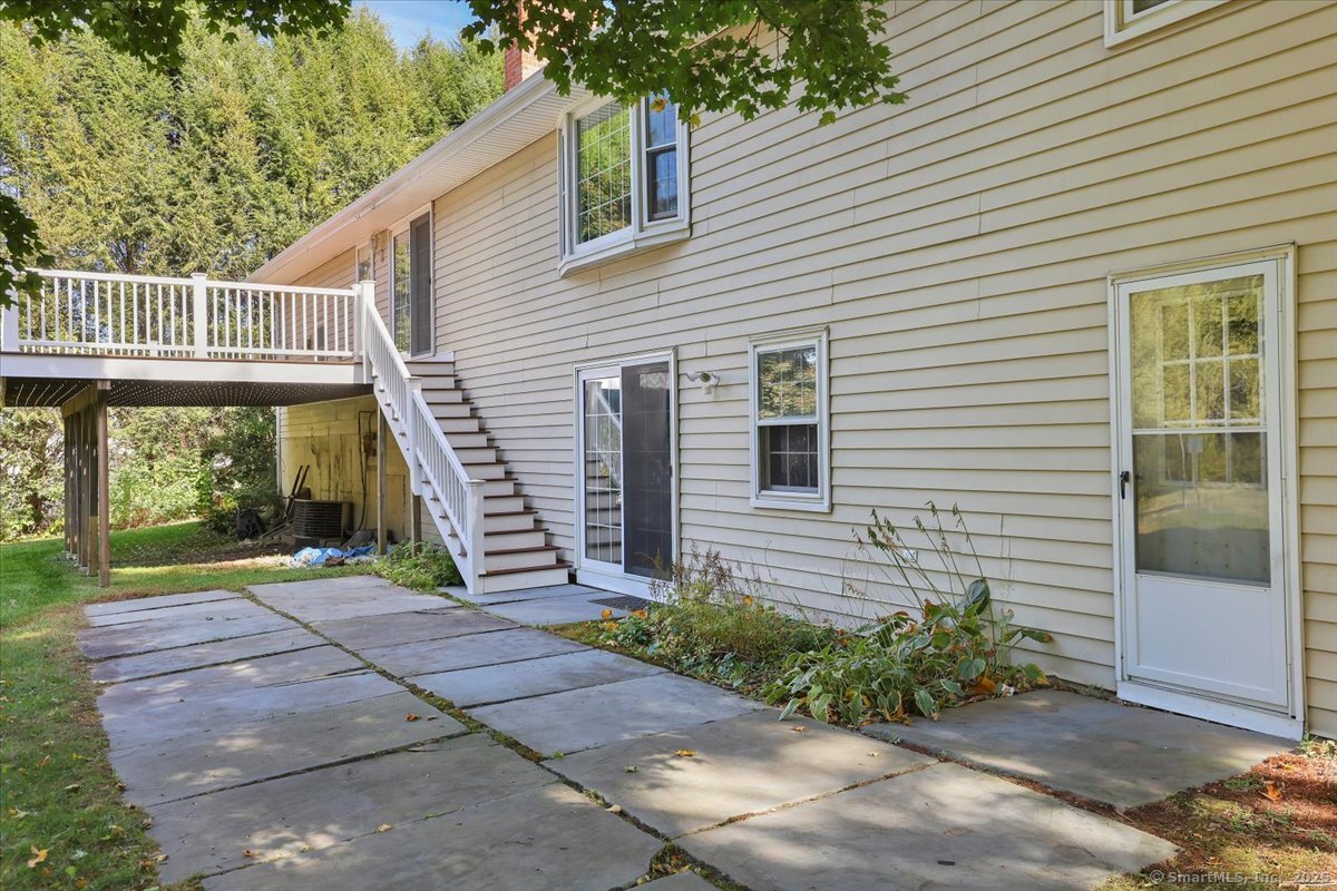 This well maintained 3 bedroom ranch home with finished lower level and oversized 2 car garage is conveniently located on a level lot in South Glastonbury. Several updates include roof replacement, window replacement, maintenance free deck, sliders, septic system, stainless-steel appliances and flooring in the kitchen. All bedrooms have hardwood flooring and are located on the main level. The primary bedroom features a half bath and walk-in closet. Two more bedrooms and a full bath with tub and shower can be found in the main hallway. The kitchen, with white cabinets and newer stainless-steel appliances, is open to the dining area which has a new slider to the huge maintenance free deck! Off of the kitchen and dining area is the light filled, spacious living room with brick fireplace. A mudroom connects the garage to the main house. The lower level has been partially finished to include a recreation room with heat and fireplace. Sliders from the rec room lead to a stone patio overlooking the large level back yard! 7.3 acres of open space borders the rear yard. The oversized garage is set up for a mechanic. With lighting, chain fall hoists, shelving, storage cabinets and work bench, this garage is good for parking cars and working on projects! There is also additional paved parking for a camper, trailer etc. on the side of the driveway.