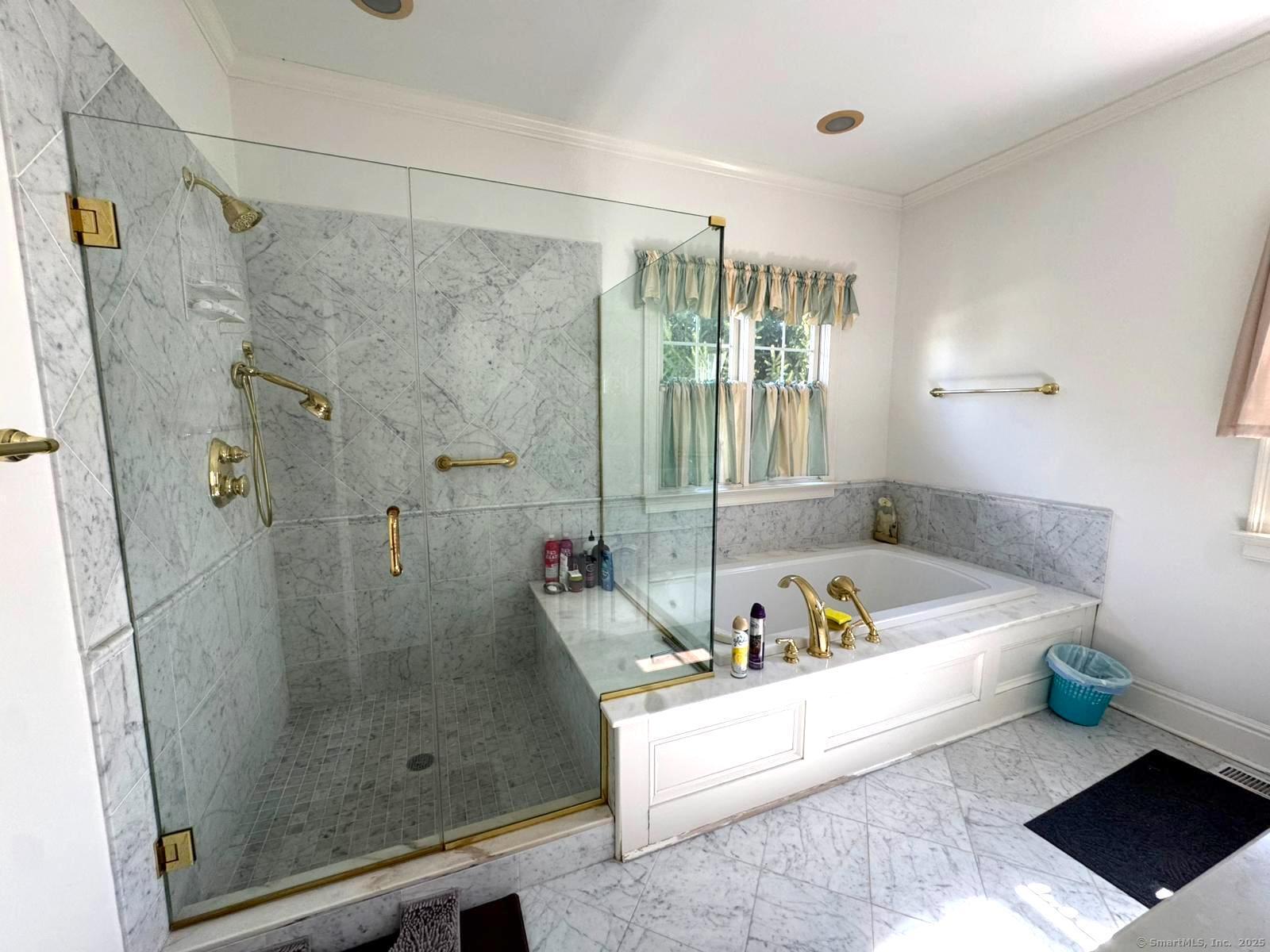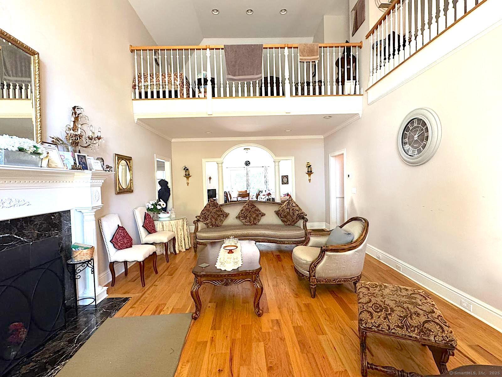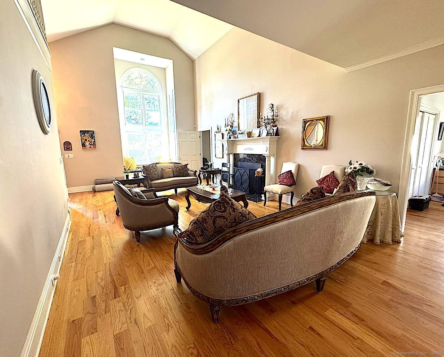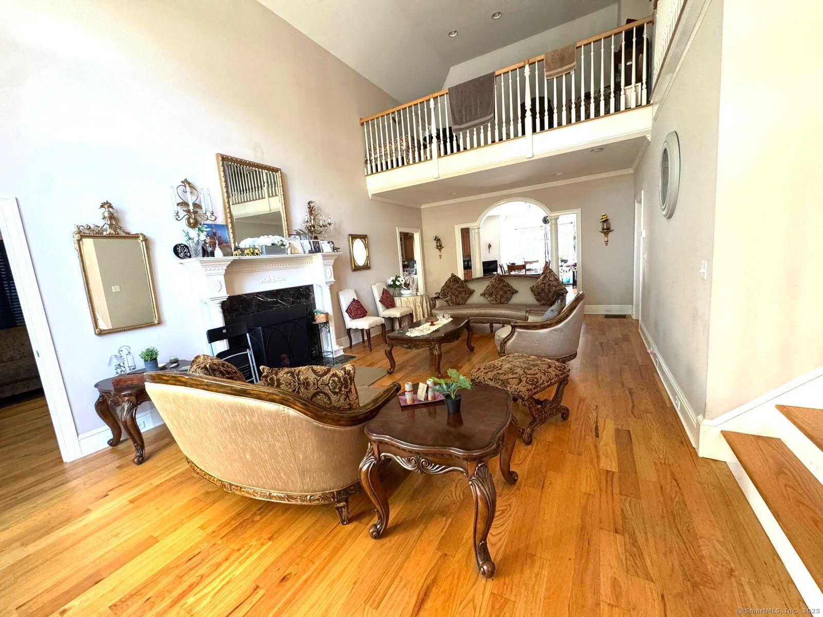 HIGHLY DESIRABLE LOCALE! Located in a premier 55+ community, this updated home features hardwood floors, a bright open layout, and a dramatic cathedral-ceiling foyer. Enjoy a spacious living room with granite-mantle fireplace, sun-filled dining room with French doors to a private deck, and a granite kitchen with modern appliances. The main-level primary suite offers comfort and convenience, while upstairs you'll find two large bedrooms, dual walk-in closets, and a spa-like marble bath. Close to dining, shopping, and the Merritt Parkway this gem has it all!