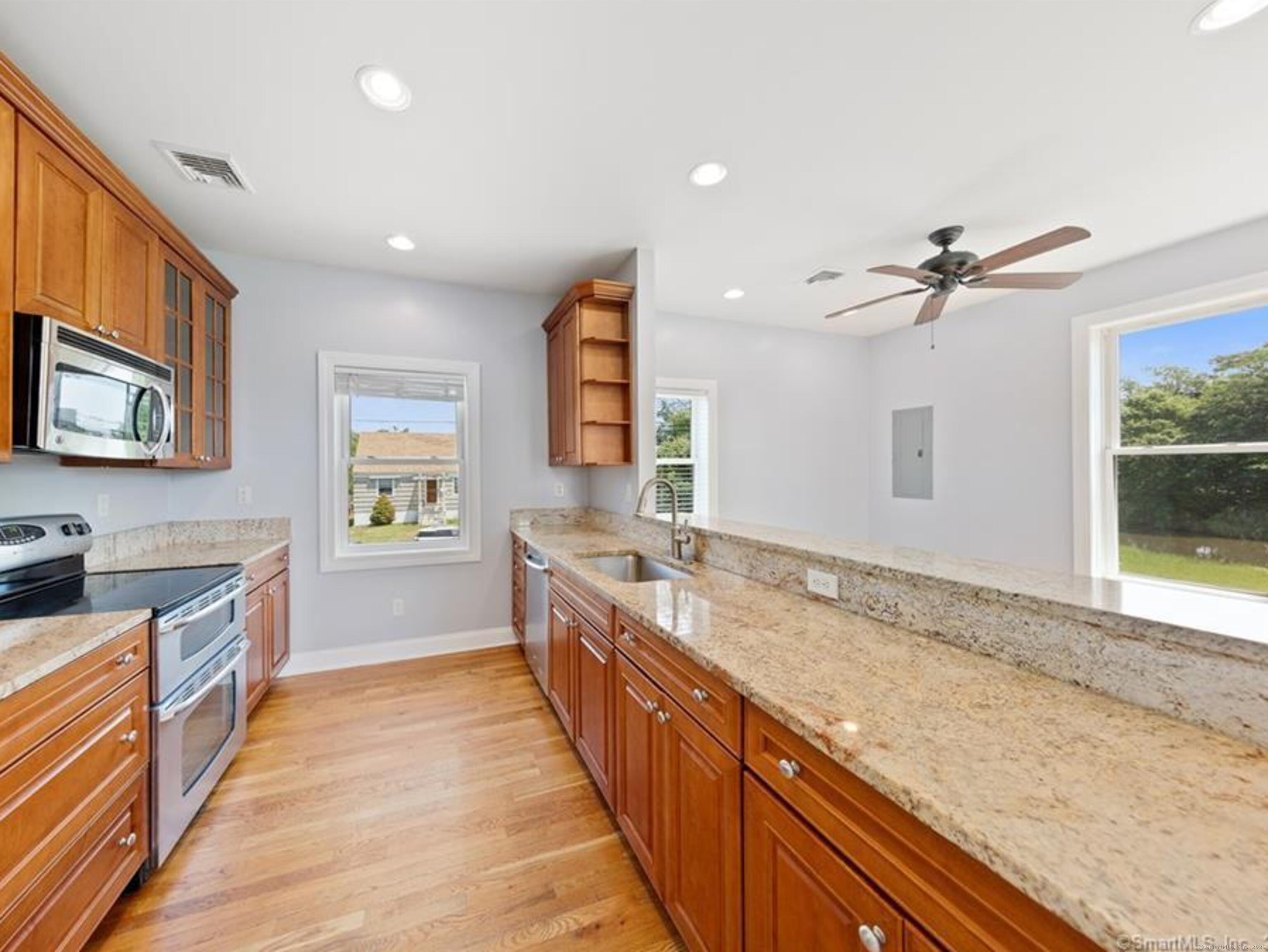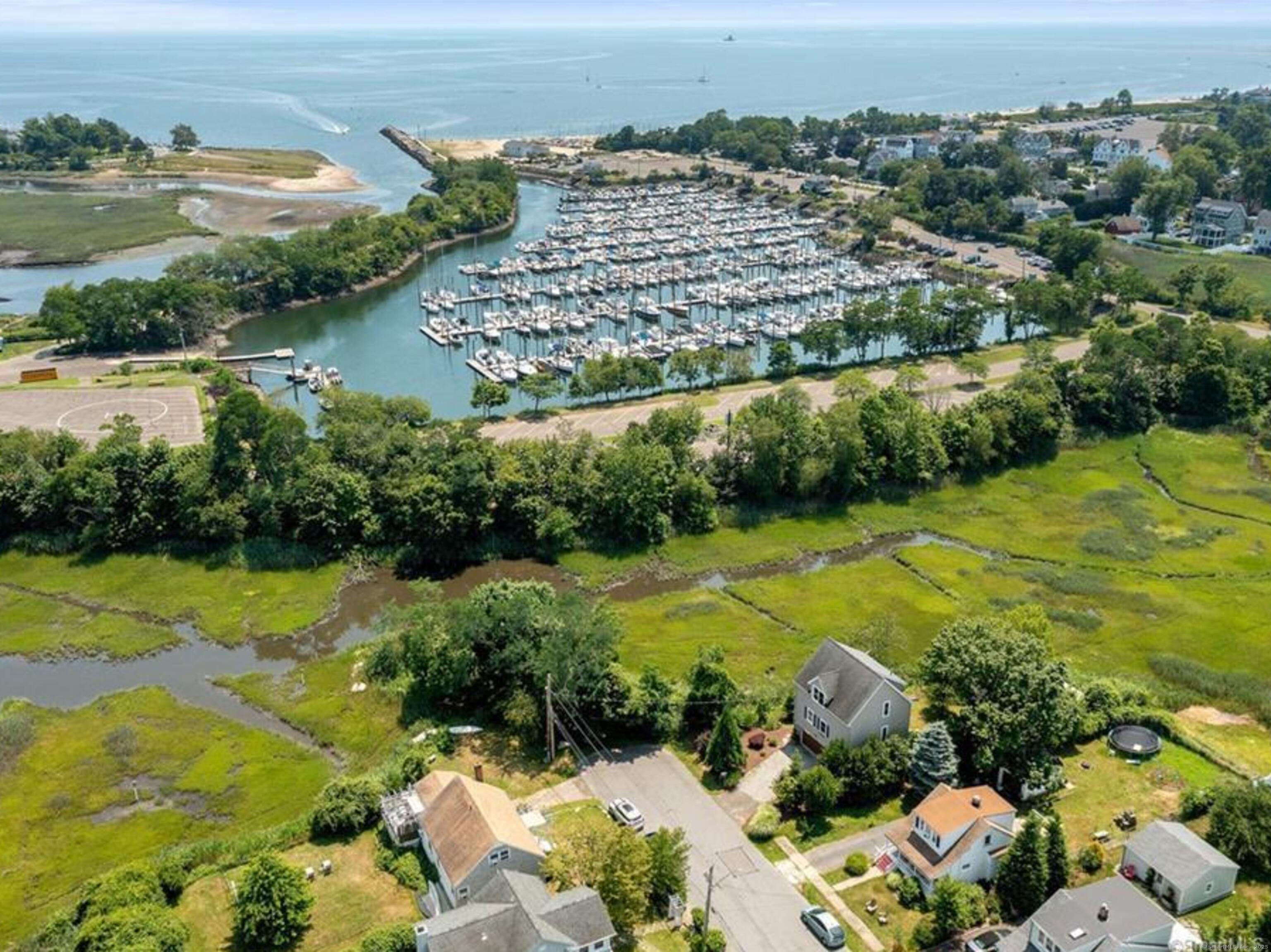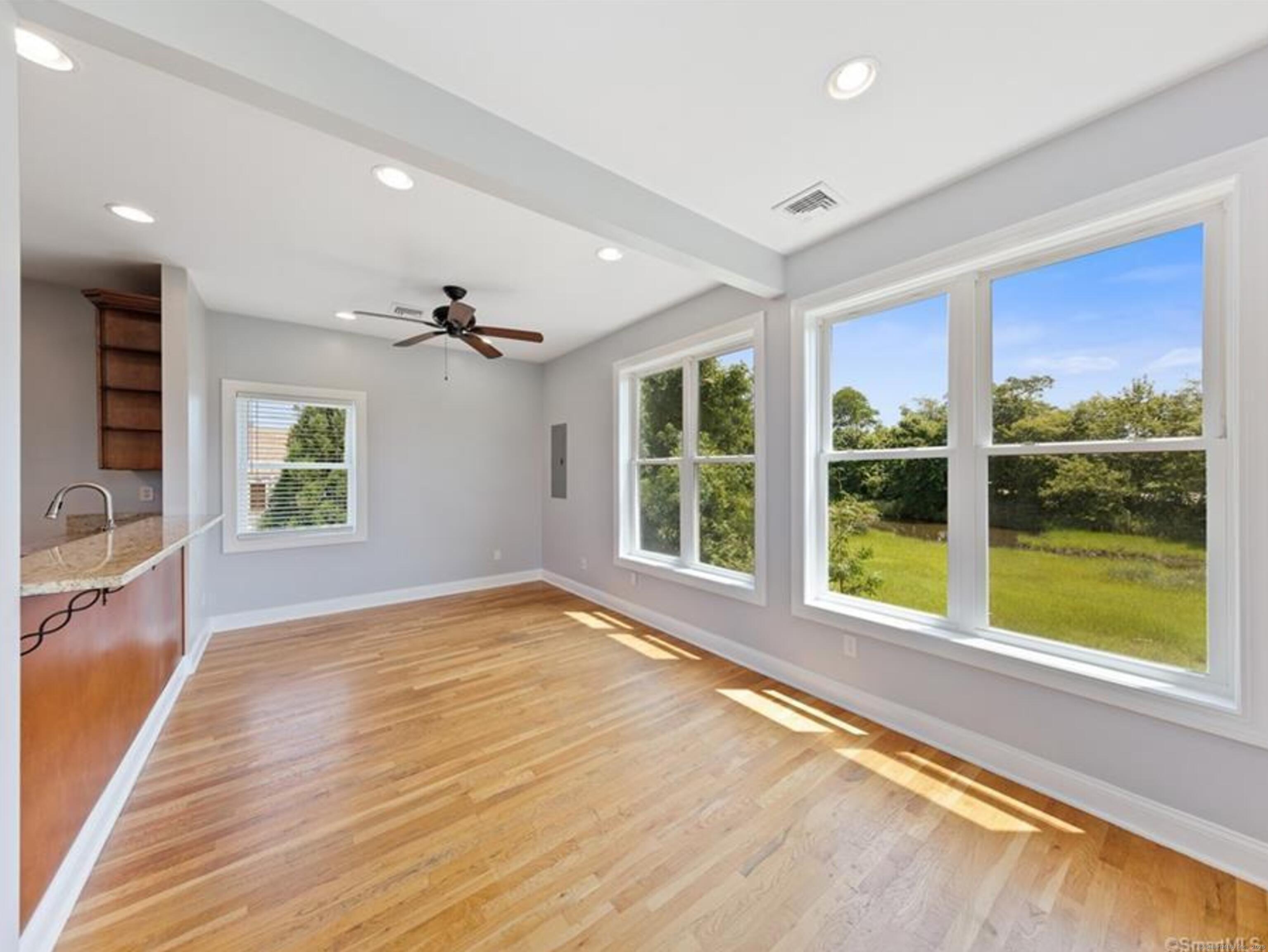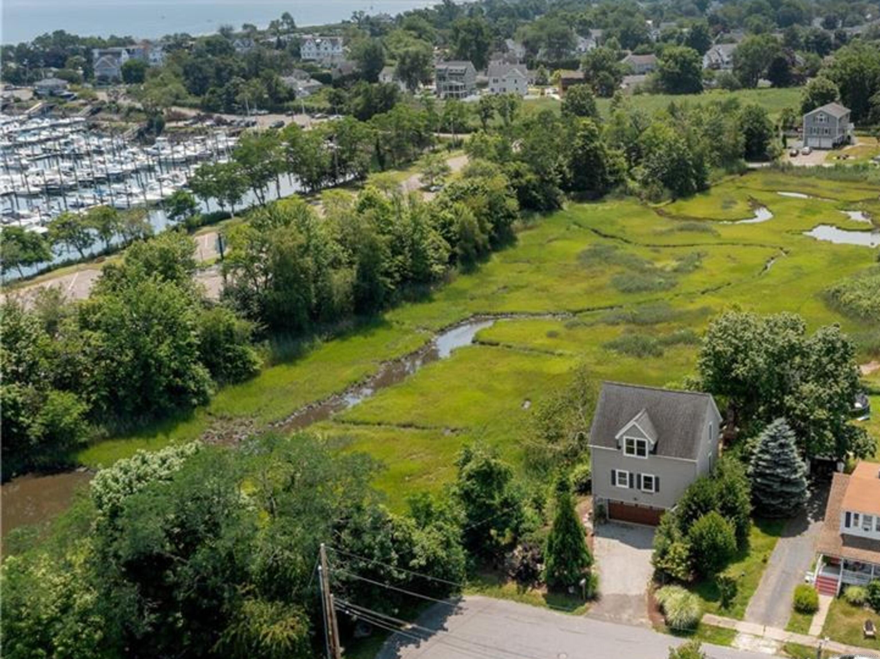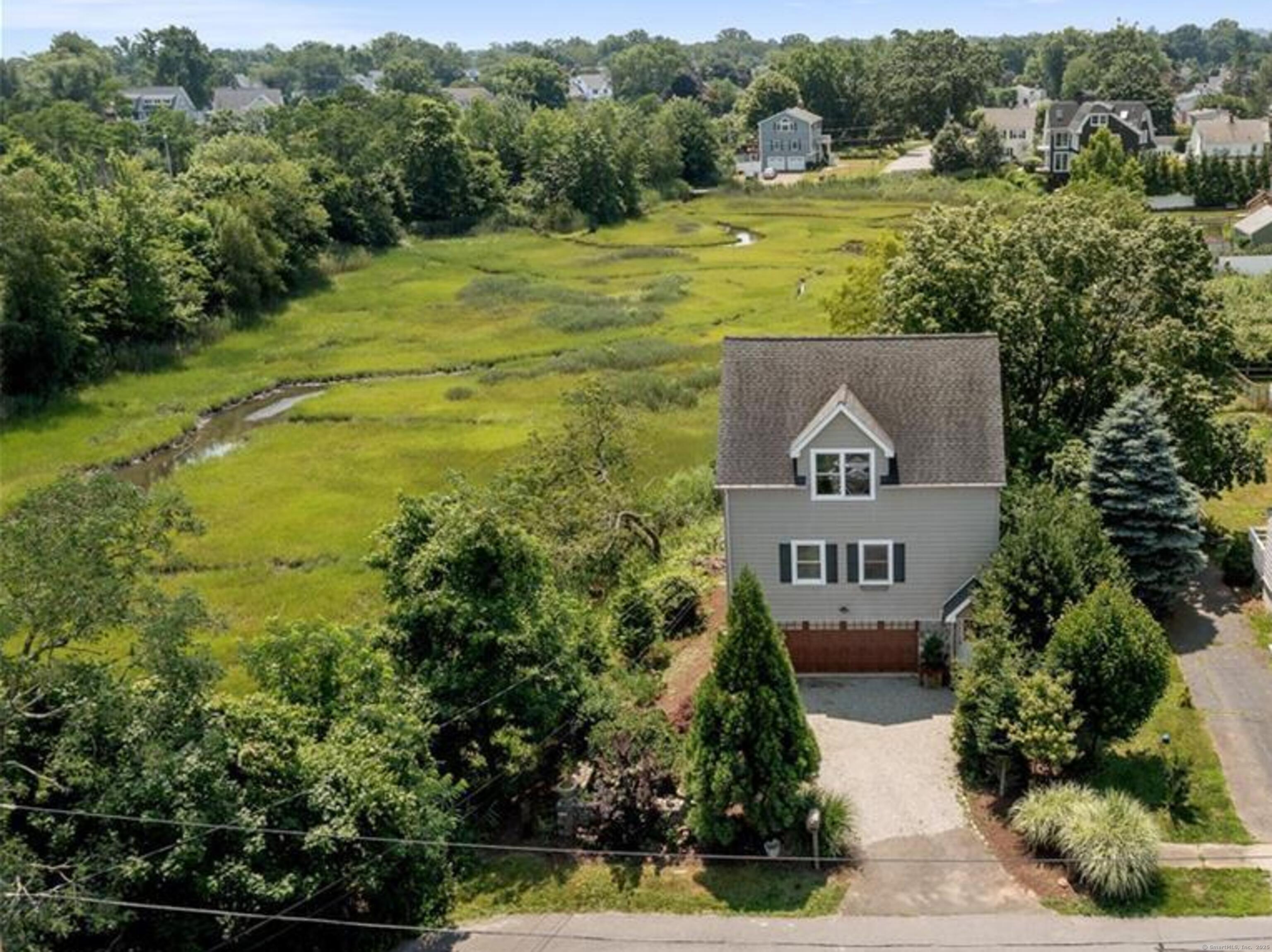 This is the perfect beach house for both nature lovers and city folk! It's convenient to Fairfield's Post Road, with its myriad of shops and restaurants, as well as I95 and the Fairfield Metro-North station. When you tire of the hubbub, head back to this elevated, single-family home built in 2009 with expansive views over Ash Creek and beyond. Watch the variety of coastal birds from your many picture windows, or take a stroll to the park, marina or Jennings Beach! The main level features: an open-plan kitchen with stainless steel appliances, granite counters, and breakfast bar; dining area and large living room with gas fireplace. There is a half bath on this level, as well as a convenient washer and dryer. Upstairs, the primary bedroom has large picture windows for lounging in bed and taking in the scene, while there is another bedroom next door, plus a shared full bath with tub and shower. Hardwood floors run throughout. There's space outside for relaxing or entertaining, and parking for two cars under the house makes this super convenient, plus it's end of cul de sac. Once you see it, you will not want to leave the extraordinary views behind! All adult tenants to apply via RentSpree.