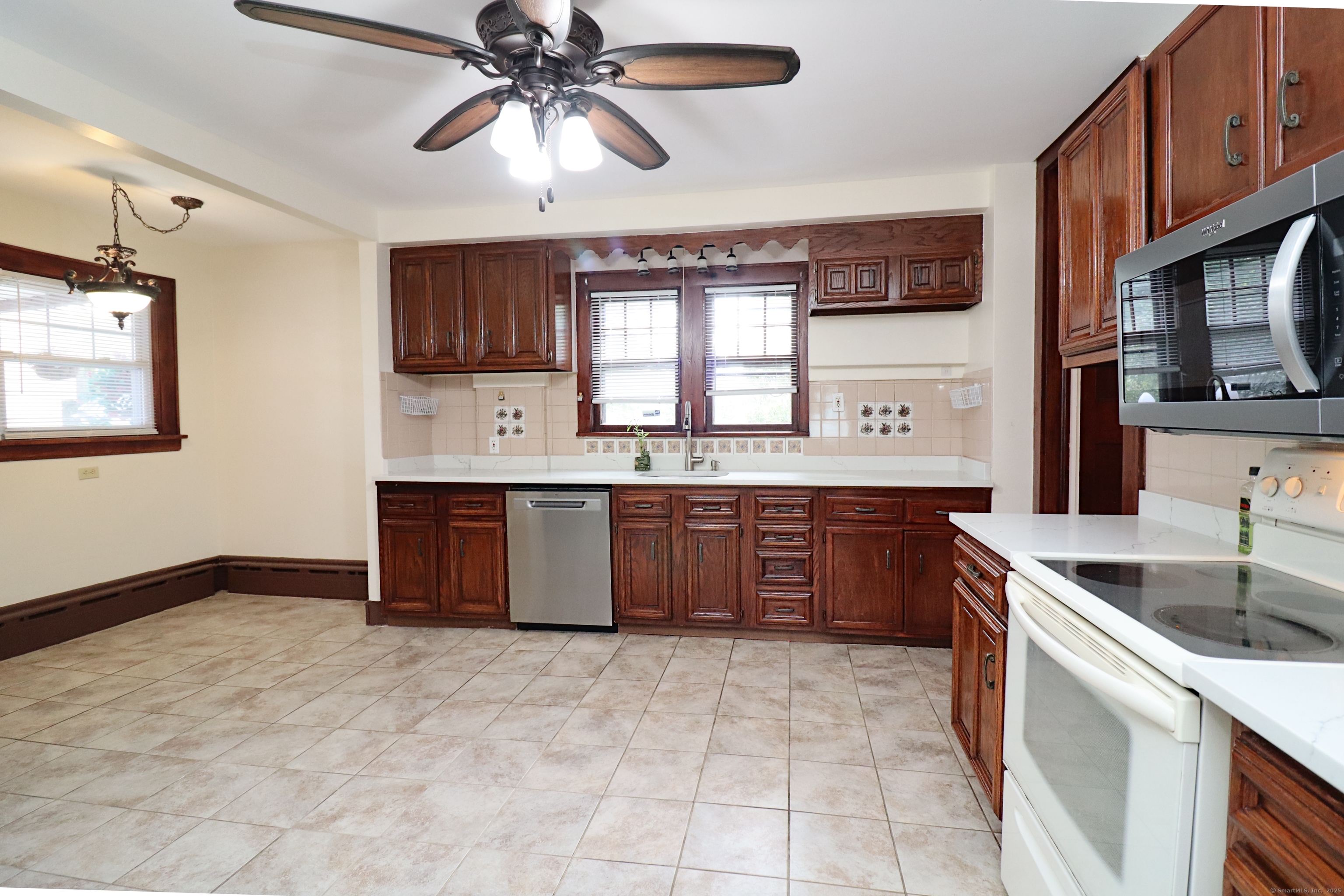 Welcome to 230 Hickory Street, an exquisite architectural structure constructed in 1926 with a rich character, situated in the vibrant North Bridgeport, 06610. This elegant residence features three bedrooms, complemented by a fourth room that may serve as your ideal family room, a cozy guest bedroom, or a productive home office tailored to your needs. The property contains an impressive 1,819 square feet of living space on a generous 0.23-acre lot. This home embodies traditional craftsmanship and a timeless charm through its brick, stone, and stucco facade. The 10,018 square foot yard provides ample space for outdoor entertaining, privacy, gardening, or tranquil relaxation, complemented by a new Trex Timbertech deck/patio for various backyard activities. Other amenities include a lawn sprinkler system, an updated gutter system, a new furnace, a new water heater, professional landscaping, and a privately fenced yard. The interior showcases a cozy fireplace, refined hardwood floors, new granite countertops, an updated 2-car garage floor, and a professionally painted interior. The well-equipped basement extends the functional use of more added space, featuring a laundry room, a generous storage area, a utility area, and an open space finished with a durable concrete and stone fireplace, ideal for various uses.