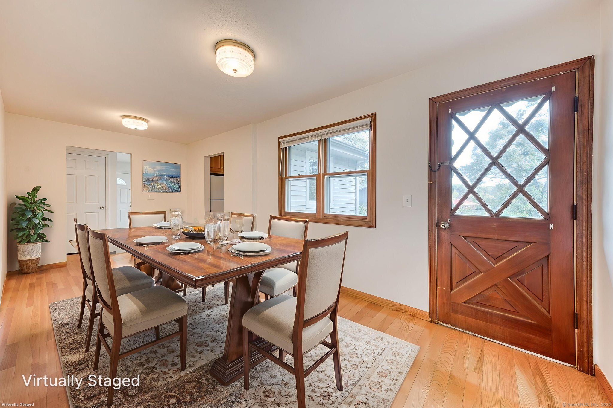 Set on a gently sloping lot in a desirable neighborhood, this classic 4-bedroom, 2-bath ranch blends timeless charm with modern updates. Freshly painted and featuring hardwood floors, the home offers a warm and inviting atmosphere. The spacious layout includes a comfortable living area, a functional kitchen with newer appliances, and sleek counter tops. The dining rooms offers generous space for those holiday gatherings. The 4 bedrooms are ideal for those needing extra space. This home also features 2 full baths and a first-floor laundry. The basement is unfinished and offers ample storage space and opportunity to customize or expand living space to suit your needs. A standout feature is the flexible floor plan, which offers the potential for an in-law apartment-perfect for extended family, guests or an office. The lot's natural elevation adds privacy and character, while the backyard is perfect for entertaining large gatherings. The location provides easy access to schools, parks, highways and local amenities. Make 24 Hemlock your next home.