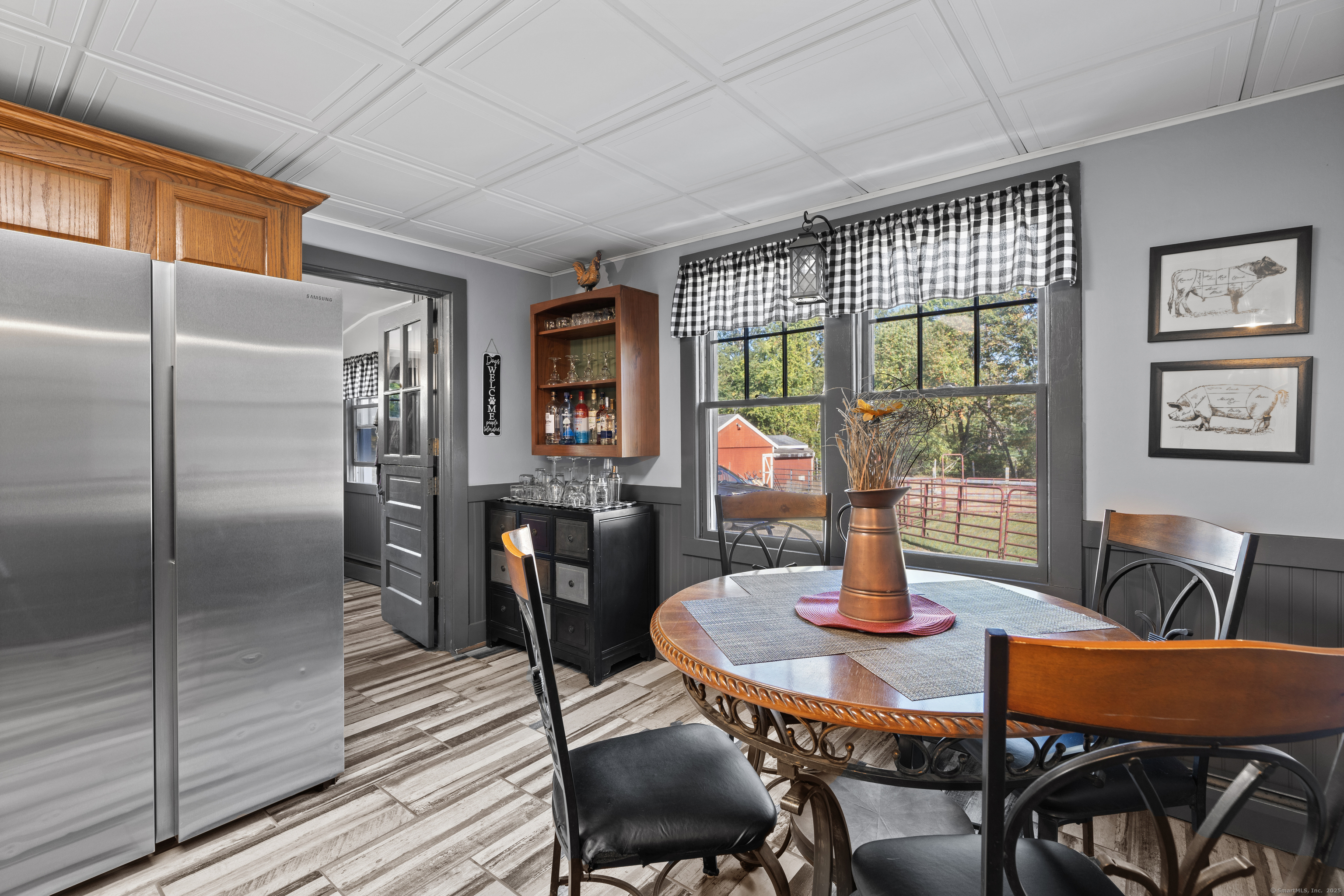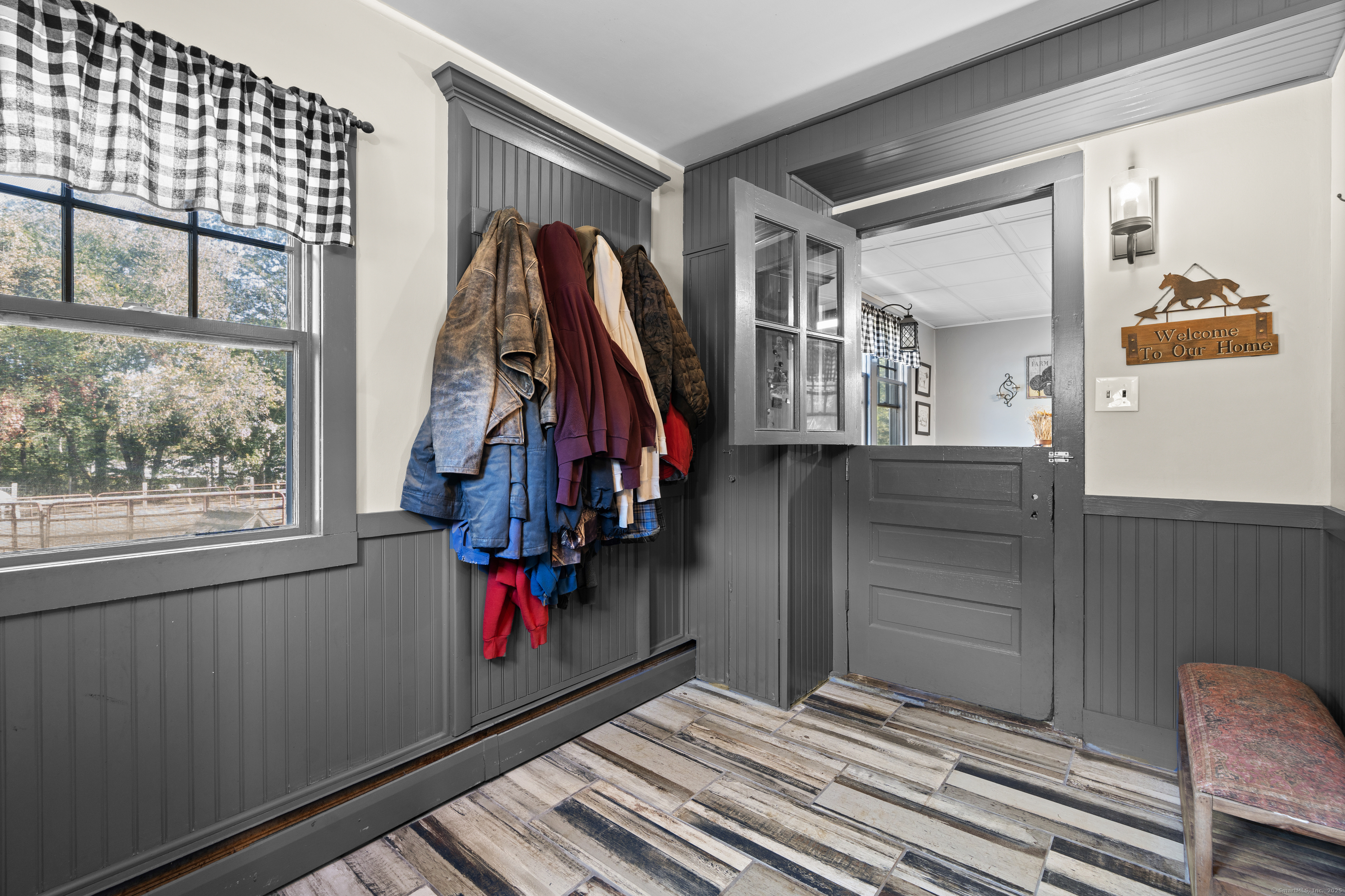 Welcome to Wisteria Farm - Your Connecticut Country Escape! Just two hours from New York City, Wisteria Farm offers a slice of country paradise in the heart of Litchfield County. Set on a beautiful, level parcel of fully usable acreage, this property blends classic New England charm with all the space and serenity of true country living, yet close to everything that makes this area such a beloved getaway. The centerpiece is a Cape Cod - where comfort meets character. The main floor includes three inviting bedrooms and a full bath in their own private wing, opening directly to a peaceful fenced patio draped in blooming wisteria; the ideal spot for morning coffee. Upstairs, a private primary retreat offers its own full bath for restful nights and quiet mornings. The living room impresses with high ceilings, exposed beams, hardwood floors, and a wood-burning fireplace, creating a cozy setting for winter weekends after skiing at nearby Mohawk Mountain. The bright eat-in kitchen features new tile flooring, gas cooking, and a natural flow into the mudroom-perfect for casual meals and easy everyday living. The barn includes 4 horse stalls, a 2-car garage, and two generous lean-tos; perfect for hay storage, tractors, tools, or expanding your equestrian or hobby farming pursuits. Beyond your own pastures, enjoy the best of Litchfield County: boating and paddle boarding on Bantam Lake, antiquing and shopping in nearby Woodbury, and farm-to-table dining in Litchfield and Washington.