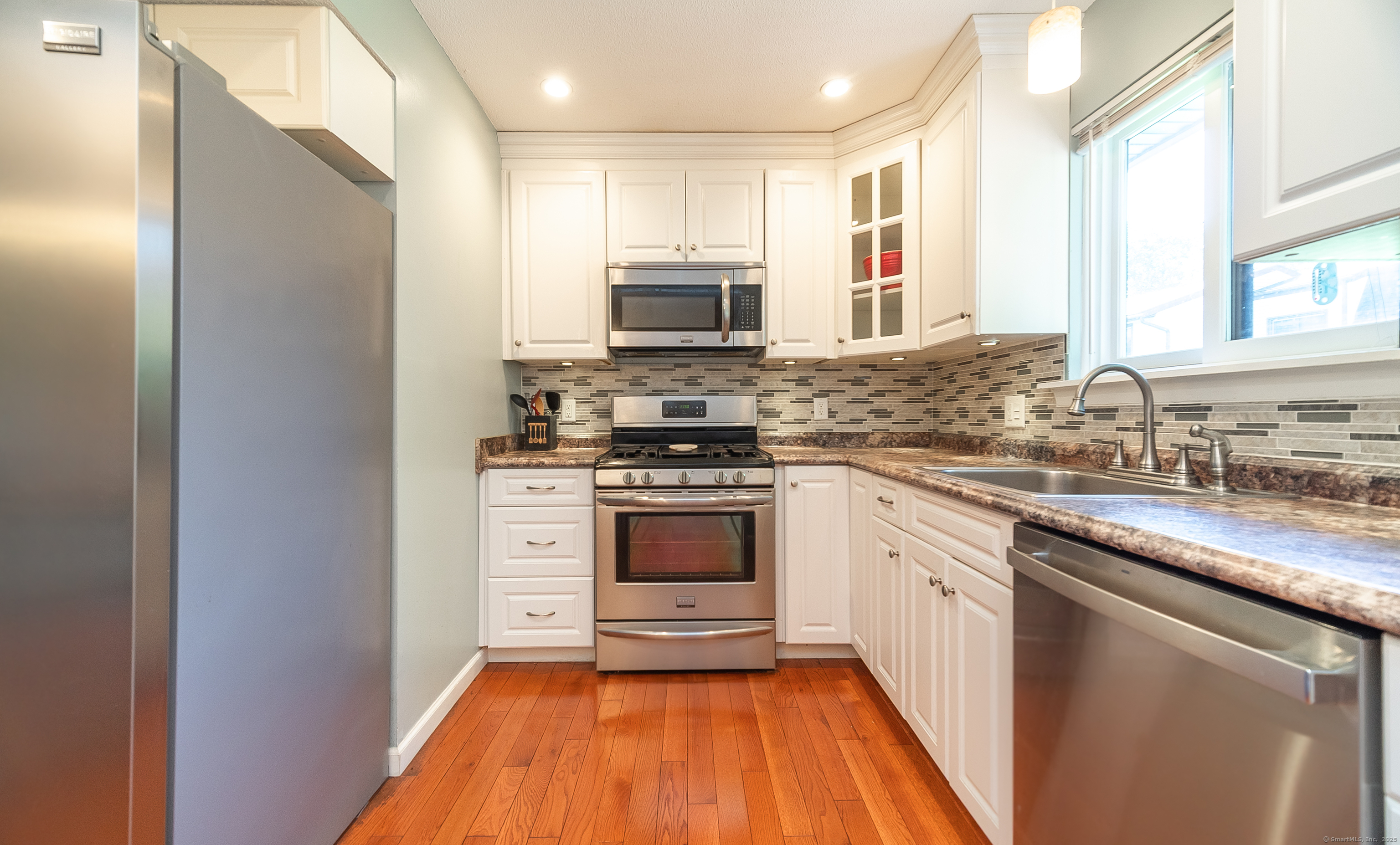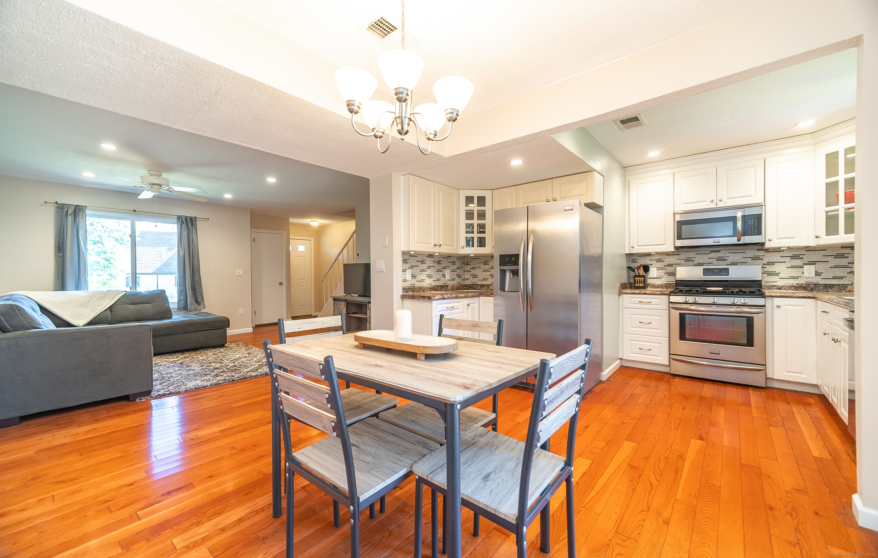 Rarely available THREE bedroom townhouse! Beautifully appointed and maintained unit at Glen Oaks. Updated kitchen and bath... hardwood floors throughout! Large primary bedroom with walk-in closet. Additional 200 square feet of finished living space in the lower level... NEWER HVAC, water heater, roof! Wonderful community complex! Located near playground, pool and clubhouse. Open floor plan, sliders to deck off dining area, beautifully kept grounds...Easy access to shopping, highway, schools, community. This one is a gem!!!