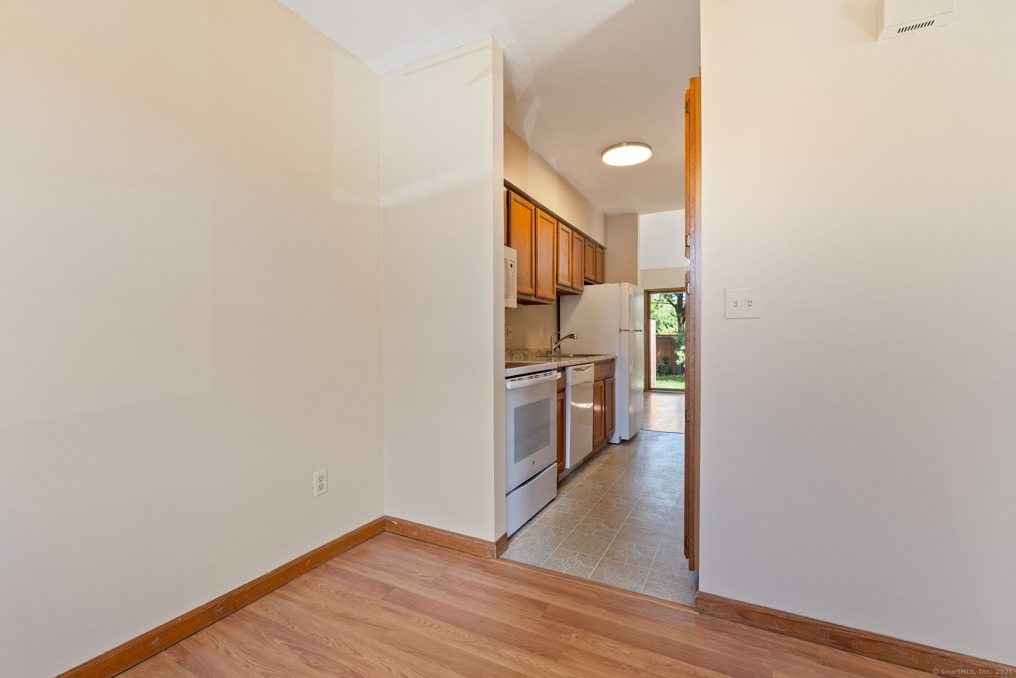 Why rent when you can own this cheerful, conveniently located end-unit townhouse in the Meadows at Tolland complex? This clean and roomy 1 bedroom, 1.5 bath condo is perfect for busy professionals, or those looking to downsize and simplify! A dining area segues into a galley kitchen with newer appliances and plenty of cabinet space, while the large soaring, vaulted-ceiling living room completes the main floor-sunny, open, and perfect for relaxing or hosting. Sliders lead out your private patio for morning coffee or dining al-fresco. Upstairs, the spacious primary suite offers a calming retreat with a full bath and generous closet space! The lower level-complete with washer/dryer-delivers extra storage and flexible finishing potential. Easy, low-maintenance living keeps weekends free, while the desirable location near shops, dining, and I-84 simplifies your commute! See disclosures; cash or portfolio lenders only.