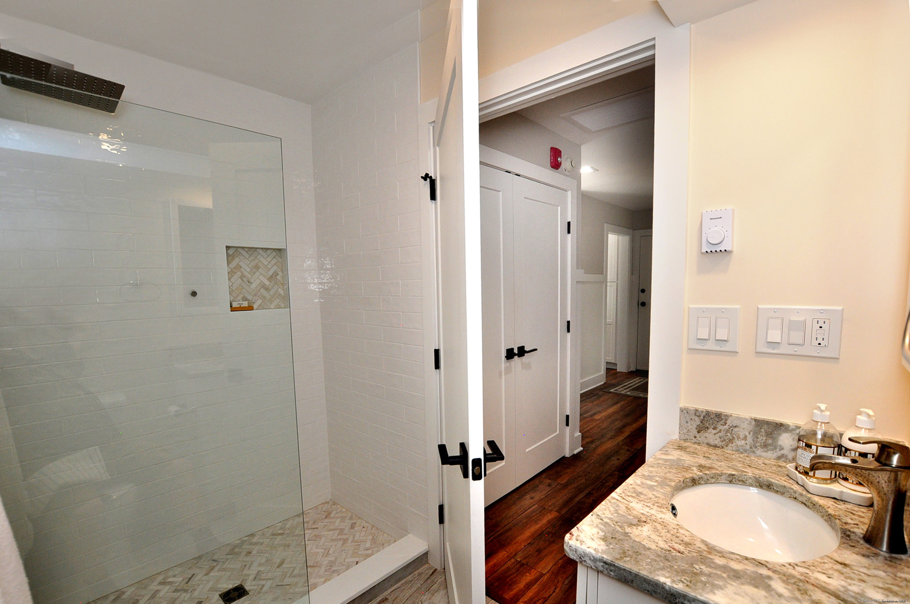 Step into this fully renovated 2-bed, 2-bath condo with a pond view, in the sought-after Heritage Village. Taken down to the studs in 2023, it features all-new Andersen windows and sliders for heat efficiency, plus stylish upgrades like wood beams and marble sinks. Set in a private enclave, the back deck overlooks lush lawn, mature trees, and a pond fed by a creek-perfect for peaceful mornings or evening unwinds. A detached carport leads to an extremely short, level front walk. The very generous amount of guest parking is at your door for added convenience. Just steps away, enjoy the Shady Glen pool or join a bocce game. In this premier 55+ community, neighbors become friends, and every day offers relaxation, recreation, and natural beauty.