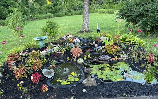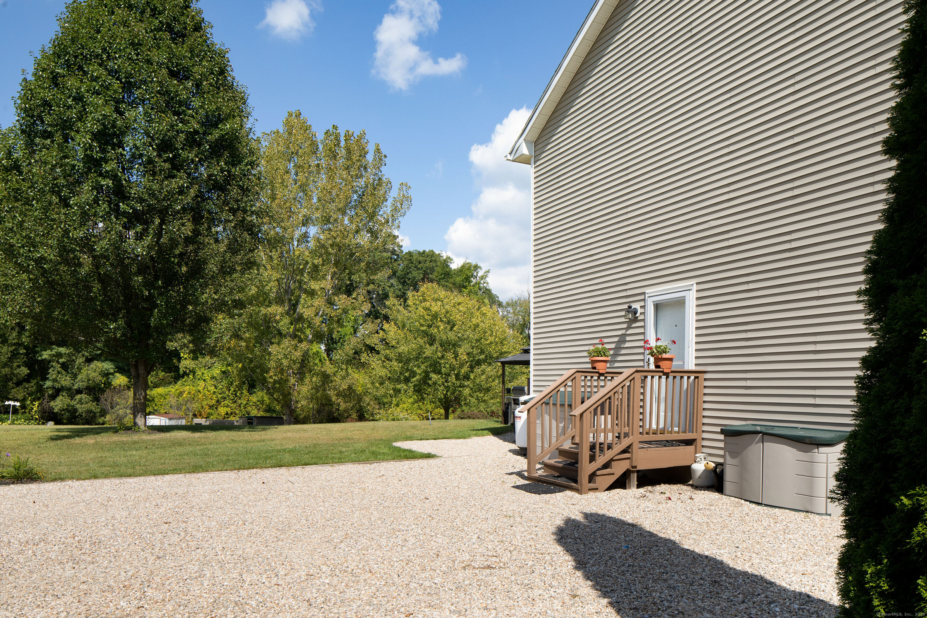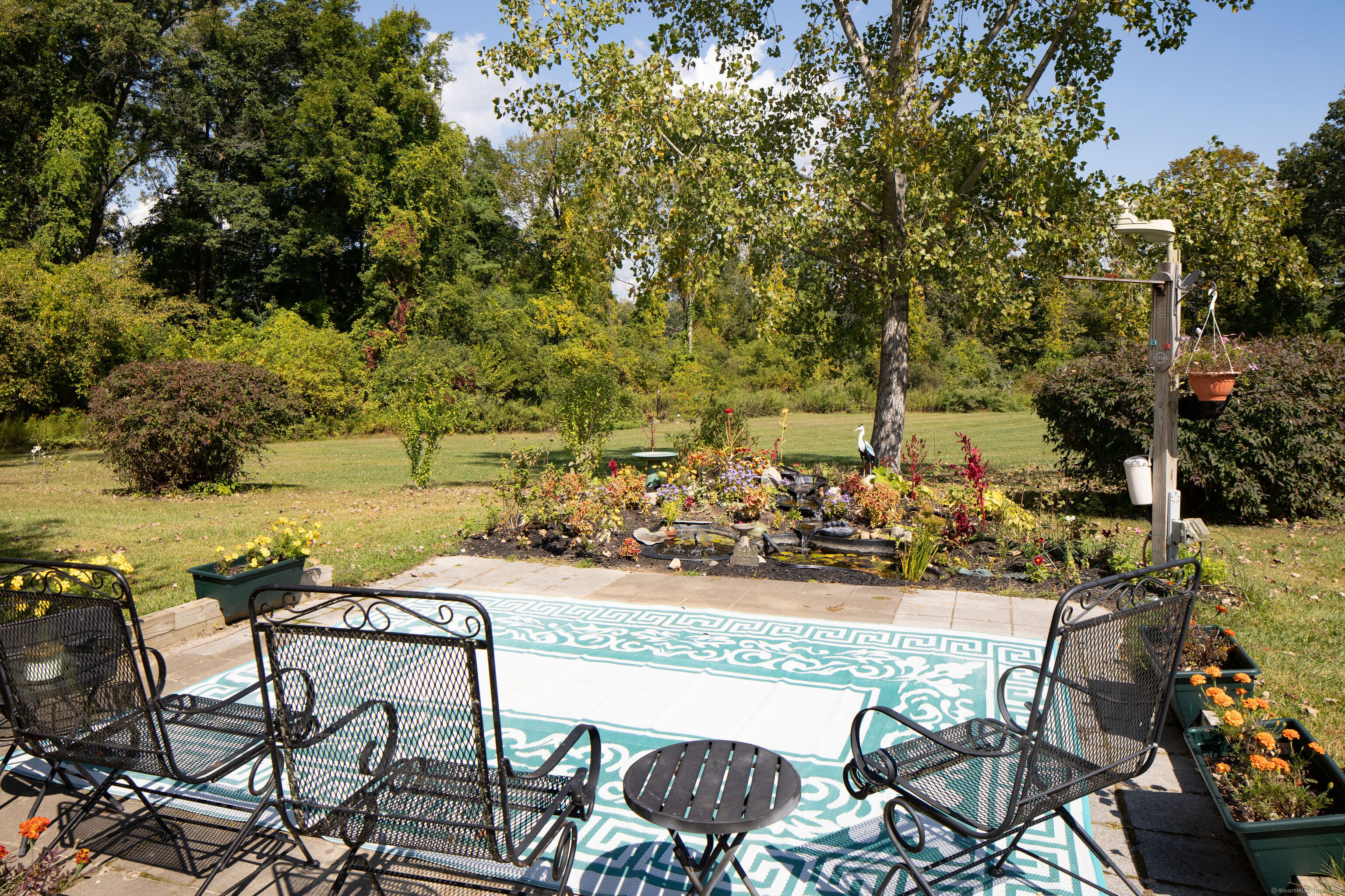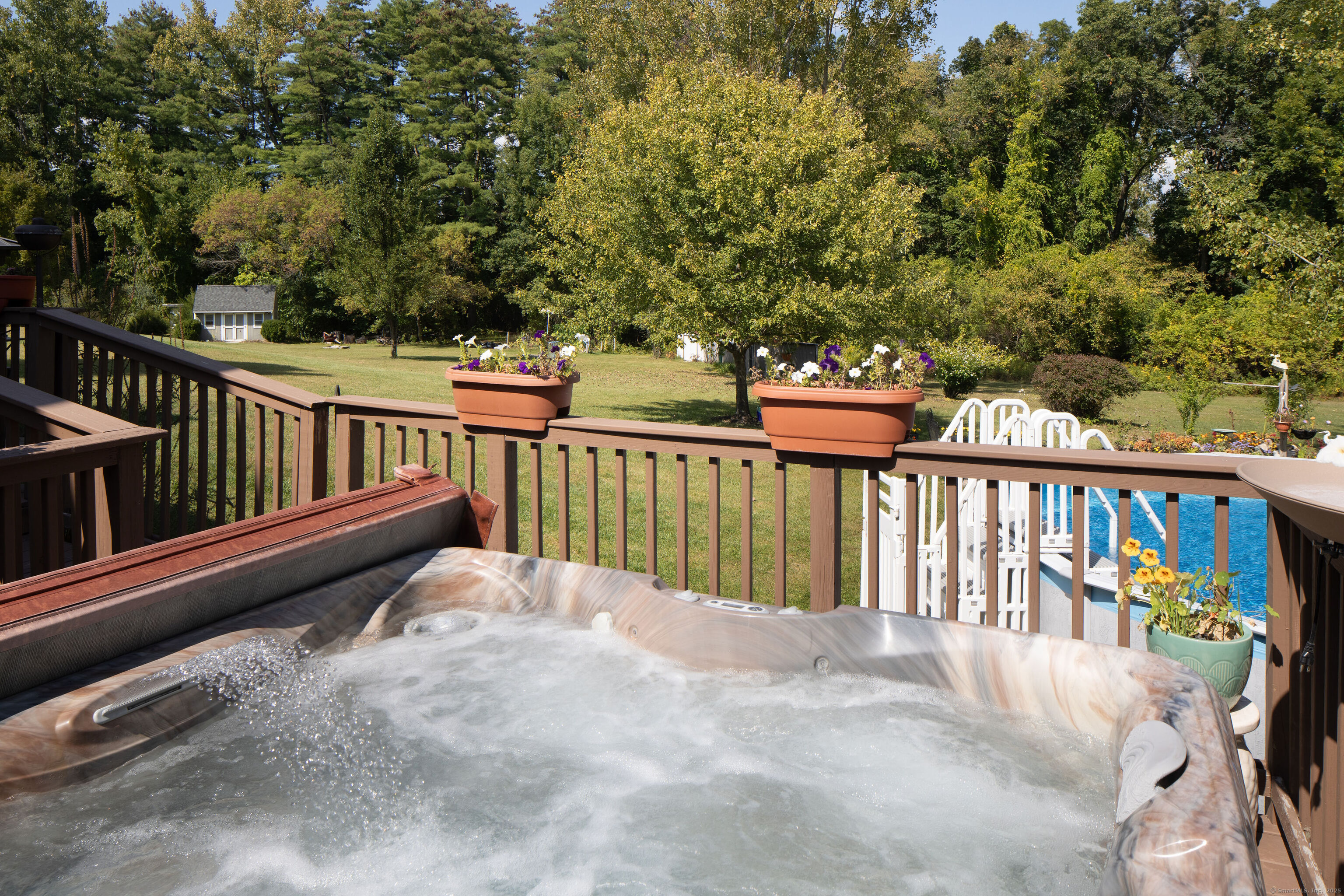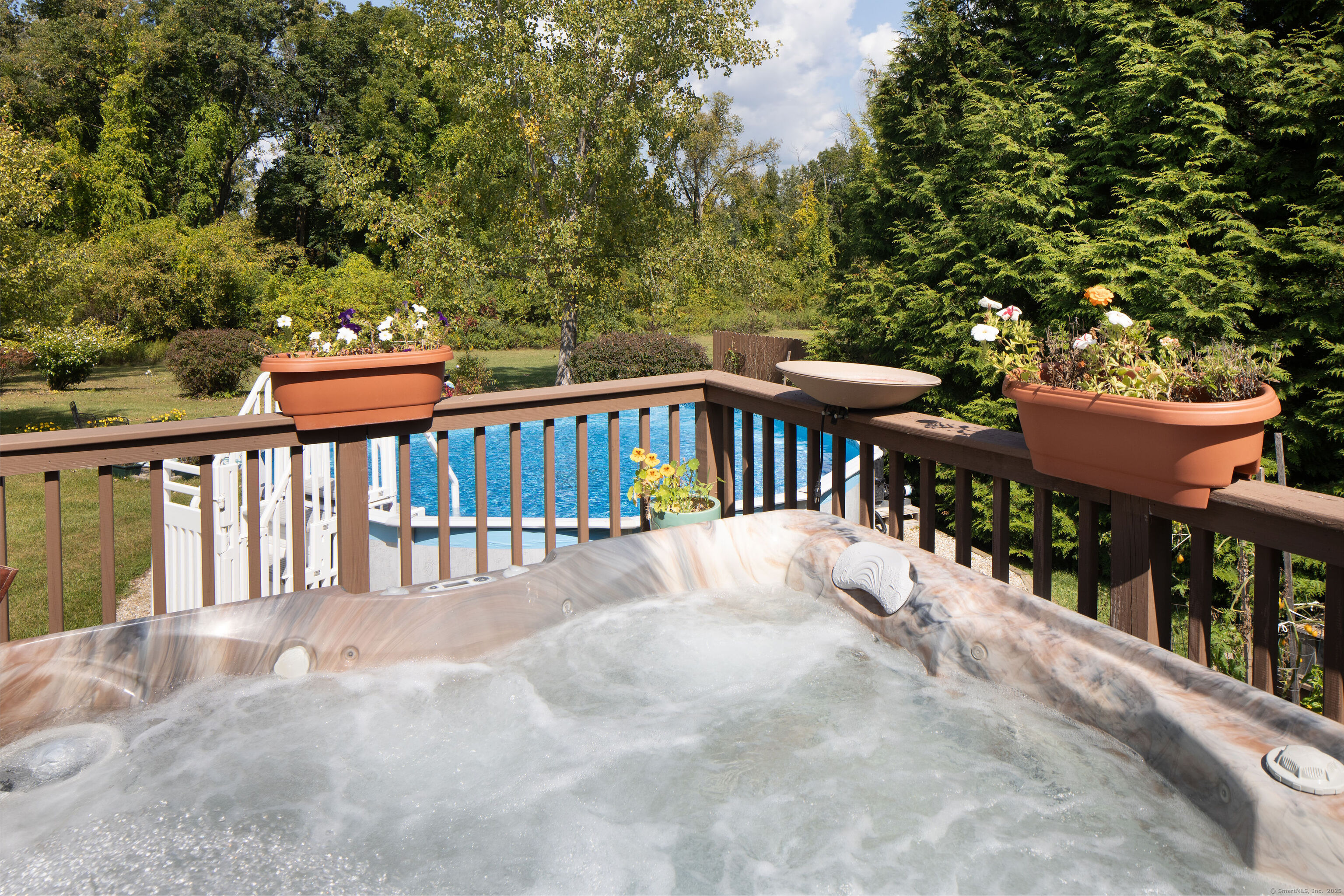 Beautifully Maintained Colonial with Outdoor Oasis! This well-kept Colonial offers three bedrooms, two full baths, and a wonderful balance of indoor comfort and outdoor enjoyment. The first floor features a bright kitchen with a 6-burner Viking stove, a formal dining room with sliders leading to the deck and gazebo, a spacious living room, and a full bath with laundry. A large, dry basement provides excellent storage or potential additional space. Upstairs you'll find three bedrooms, a den, and a full bath with double sinks. Central air ensures year-round comfort, and a generator hookup offers peace of mind. The backyard is designed for relaxation and entertaining, with multiple deck and patio areas, two gazebos, a hot tub, above-ground pool, and a stunning garden pond with waterfall. The property also includes a dog kennel, a metal shed, and a wooden shed with electric and water. With a large yard, mature plantings, and space to add a garage, this property has it all. Total property acreage is 1.86 with a half acre in Massachusetts. All room sizes are approximate.