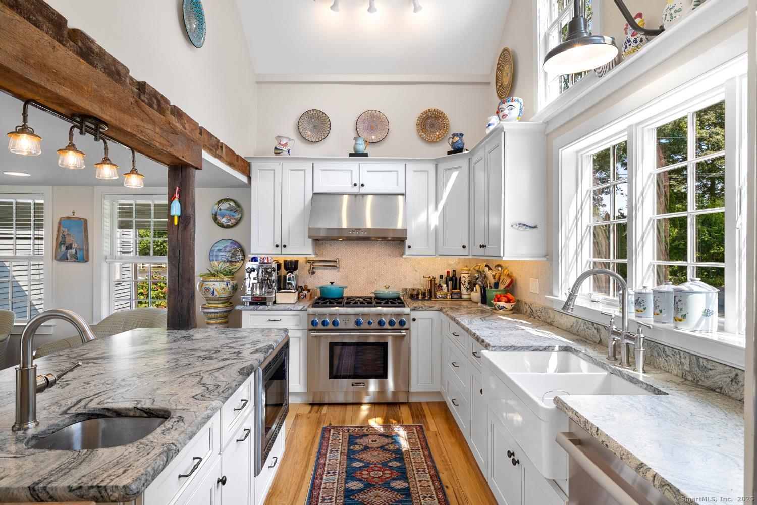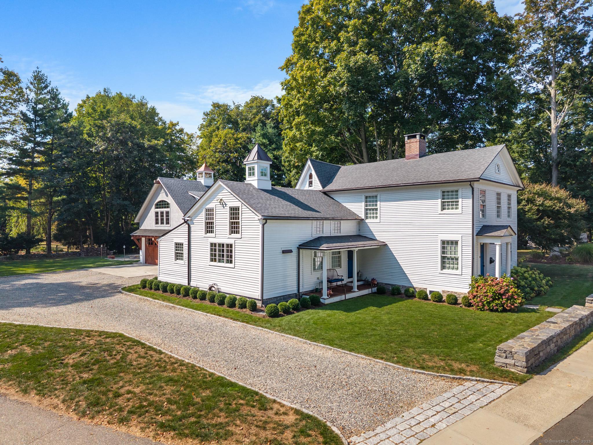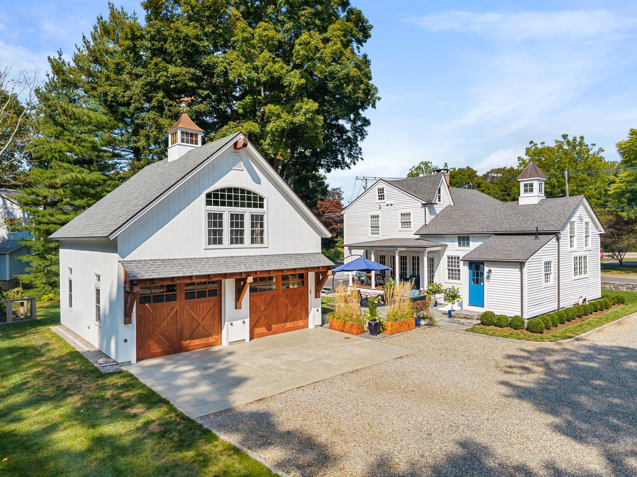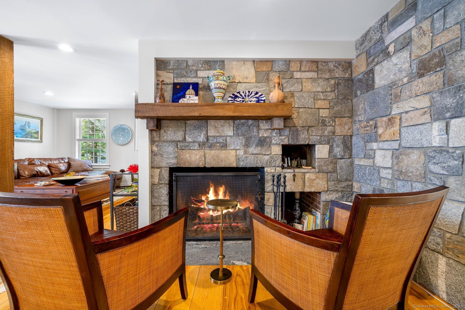 In the heart of Saybrook Village, this completely restored and remodeled vintage home blends modern convenience with timeless character, ideal for the discerning over-55 buyer who values both history and comfort or multi-generational buyers. The gourmet eat-in kitchen is a showpiece, with exposed beams, custom cabinetry, granite counters, a large island and vaulted ceilings, flowing seamlessly into the inviting living and den areas. French doors open from the living room to a private rear sitting porch, while a wood-burning fireplace enhances its warmth. Two gracious primary bedroom suites-one on the first floor-each feature fireplaces, elegant full baths and abundant closet space, providing flexibility and privacy. The upper level offers two additional bedrooms, one with its own fireplace, a full bath, and a balcony overlooking the main stairway. Throughout the home, wide-plank hickory hardwood floors, five fireplaces, and custom millwork highlight its craftsmanship. Modern upgrades include new Andersen windows, Therma-Tru doors, spray foam insulation, a high-efficiency 5-zone hydro-air system, on-demand hot water, natural gas service, and a new 1500-gallon septic system. A spacious mudroom with exterior access, dual laundry areas, and thoughtful design make daily living easy. Completing this exceptional property is a newly built oversized barn garage with workshop and finished living space, offering endless possibilities. Not in flood zone. Professional Photos to come!