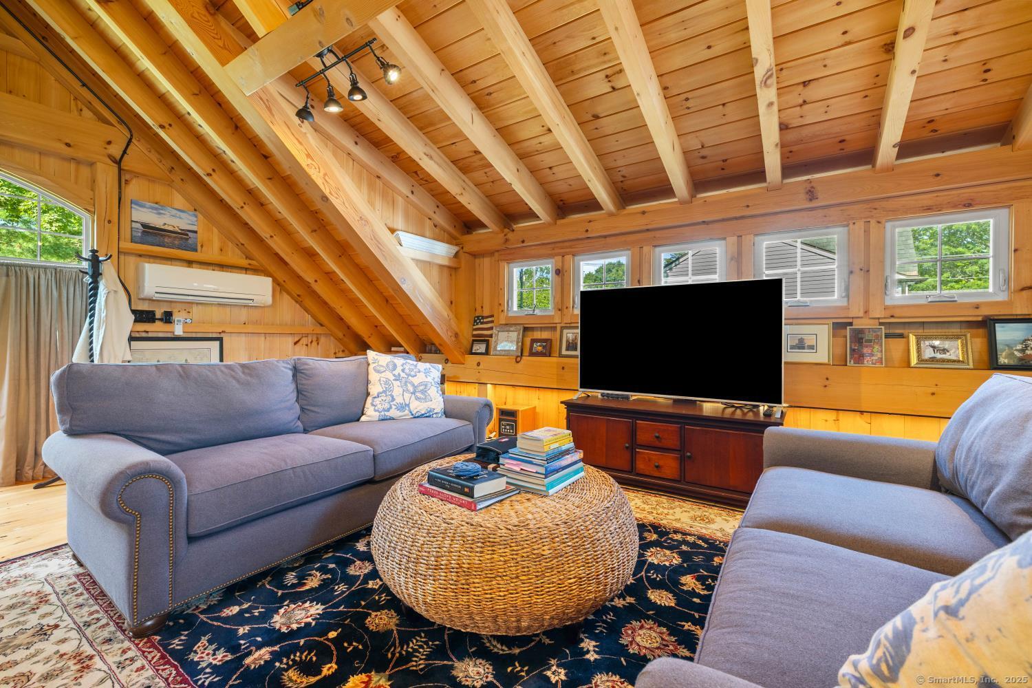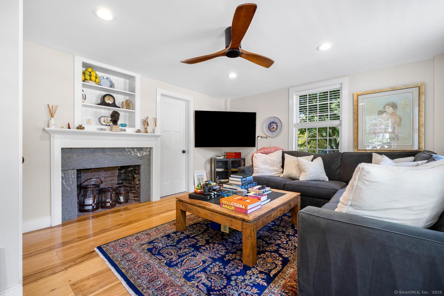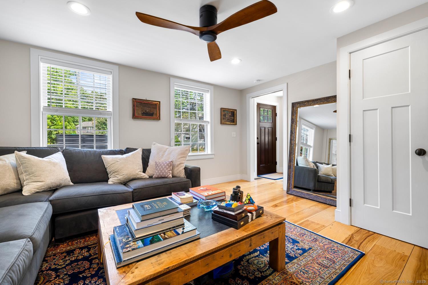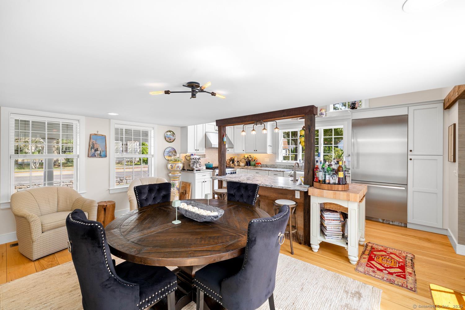 In the heart of Saybrook Village, this completely restored and remodeled vintage home blends modern convenience with timeless character, ideal for the discerning over-55 buyer who values both history and comfort or multi-generational buyers. The gourmet eat-in kitchen is a showpiece, with exposed beams, custom cabinetry, granite counters, a large island and vaulted ceilings, flowing seamlessly into the inviting living and den areas. French doors open from the living room to a private rear sitting porch, while a wood-burning fireplace enhances its warmth. Two gracious primary bedroom suites-one on the first floor-each feature fireplaces, elegant full baths and abundant closet space, providing flexibility and privacy. The upper level offers two additional bedrooms, one with its own fireplace, a full bath, and a balcony overlooking the main stairway. Throughout the home, wide-plank hickory hardwood floors, five fireplaces, and custom millwork highlight its craftsmanship. Modern upgrades include new Andersen windows, Therma-Tru doors, spray foam insulation, a high-efficiency 5-zone hydro-air system, on-demand hot water, natural gas service, and a new 1500-gallon septic system. A spacious mudroom with exterior access, dual laundry areas, and thoughtful design make daily living easy. Completing this exceptional property is a newly built oversized barn garage with workshop and finished living space, offering endless possibilities. Not in flood zone. Professional Photos to come!