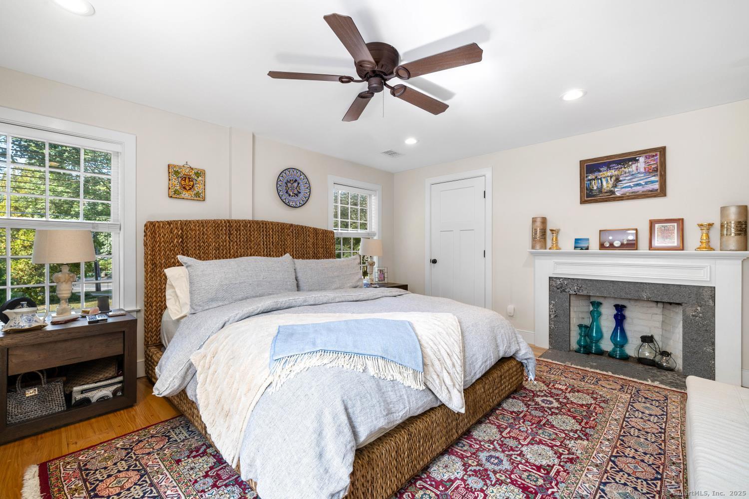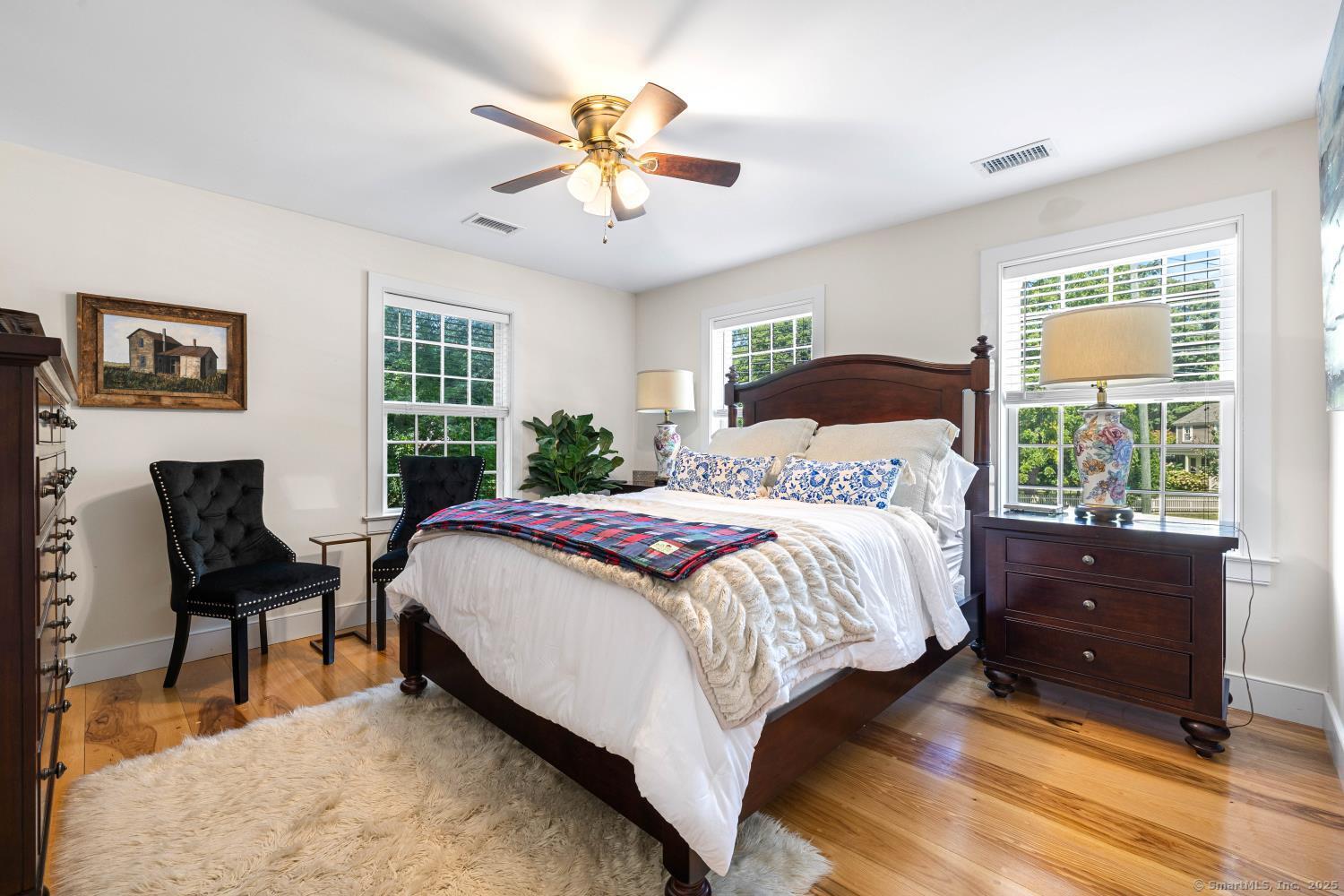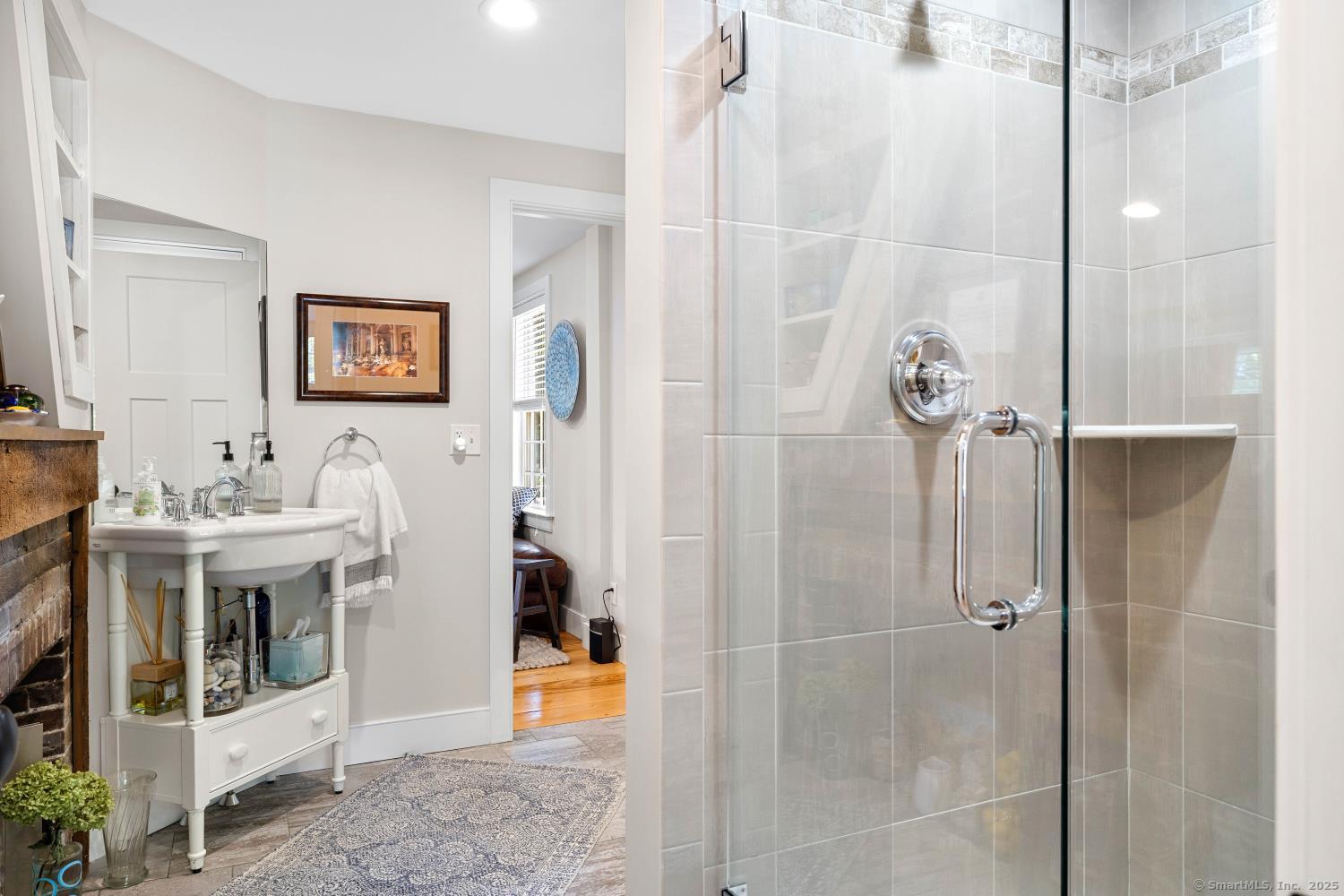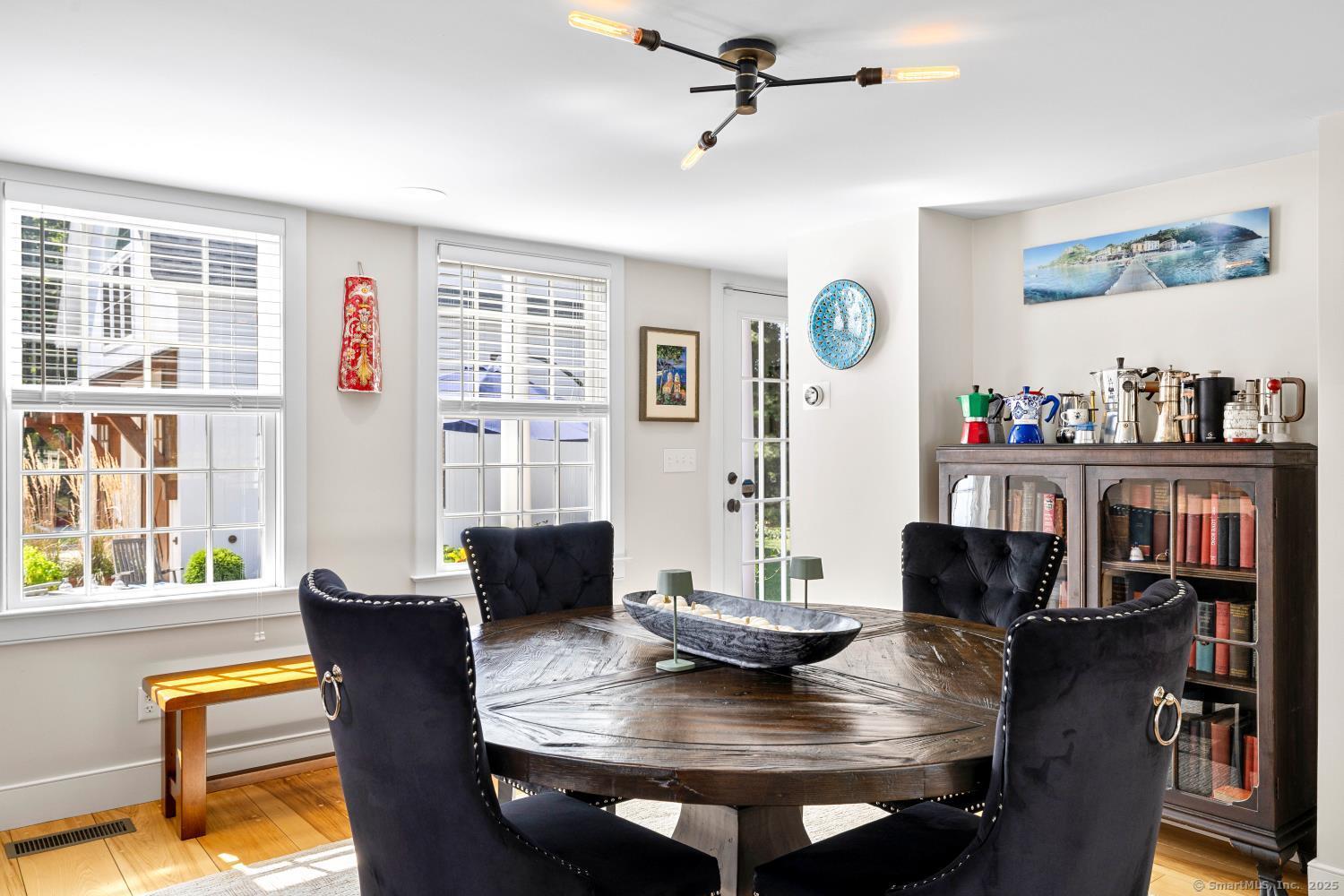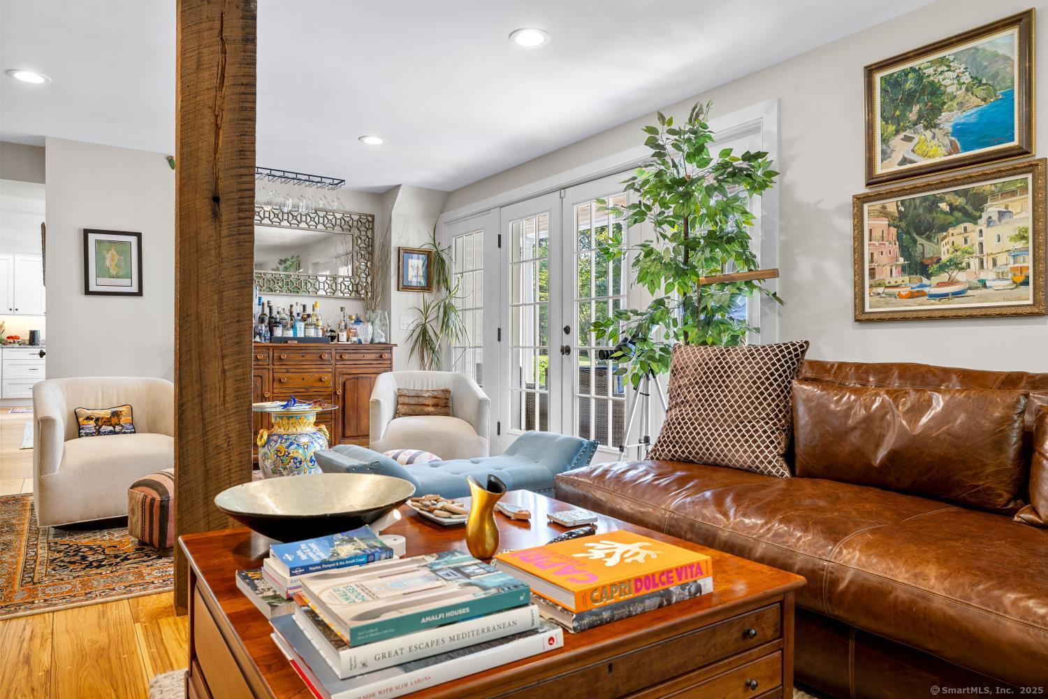 In the heart of Saybrook Village, this completely restored and remodeled vintage home blends modern convenience with timeless character, ideal for the discerning over-55 buyer who values both history and comfort or multi-generational buyers. The gourmet eat-in kitchen is a showpiece, with exposed beams, custom cabinetry, granite counters, a large island and vaulted ceilings, flowing seamlessly into the inviting living and den areas. French doors open from the living room to a private rear sitting porch, while a wood-burning fireplace enhances its warmth. Two gracious primary bedroom suites-one on the first floor-each feature fireplaces, elegant full baths and abundant closet space, providing flexibility and privacy. The upper level offers two additional bedrooms, one with its own fireplace, a full bath, and a balcony overlooking the main stairway. Throughout the home, wide-plank hickory hardwood floors, five fireplaces, and custom millwork highlight its craftsmanship. Modern upgrades include new Andersen windows, Therma-Tru doors, spray foam insulation, a high-efficiency 5-zone hydro-air system, on-demand hot water, natural gas service, and a new 1500-gallon septic system. A spacious mudroom with exterior access, dual laundry areas, and thoughtful design make daily living easy. Completing this exceptional property is a newly built oversized barn garage with workshop and finished living space, offering endless possibilities. Not in flood zone. Professional Photos to come!