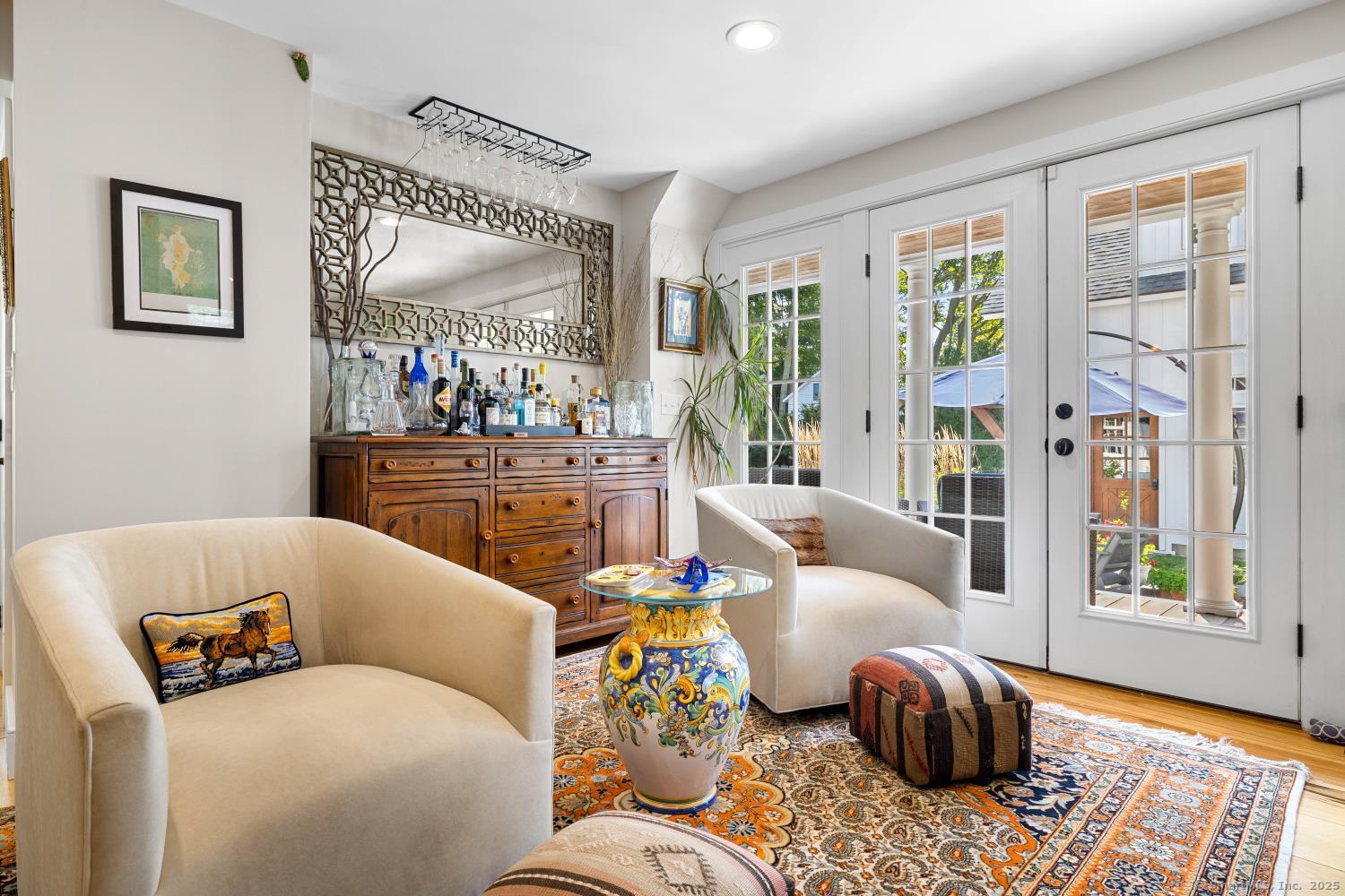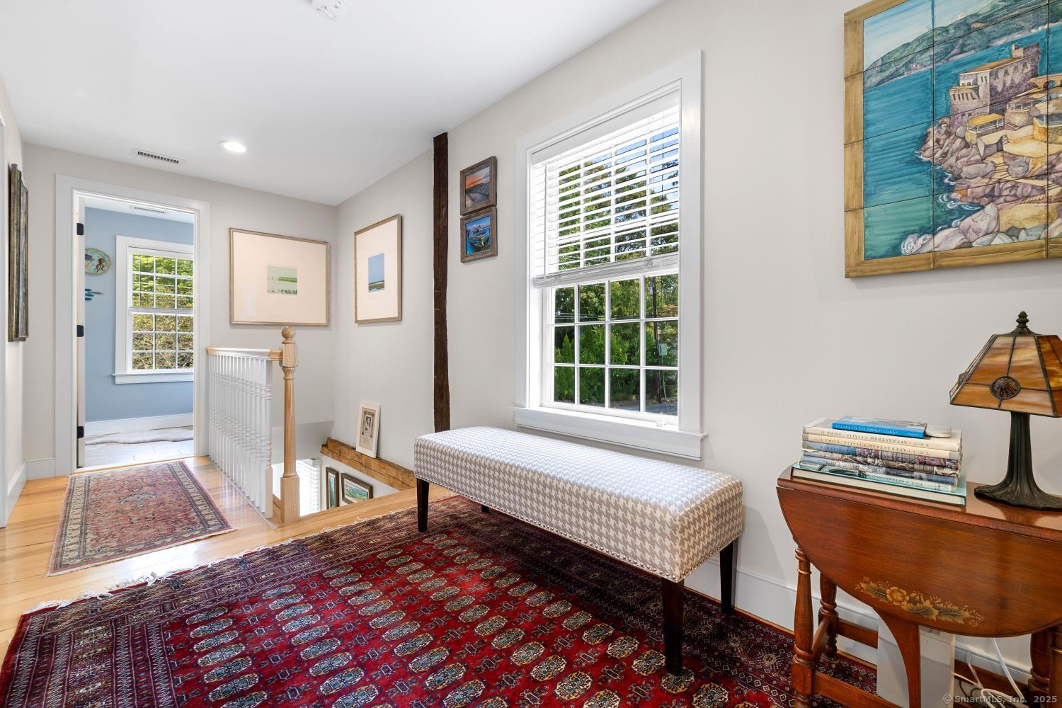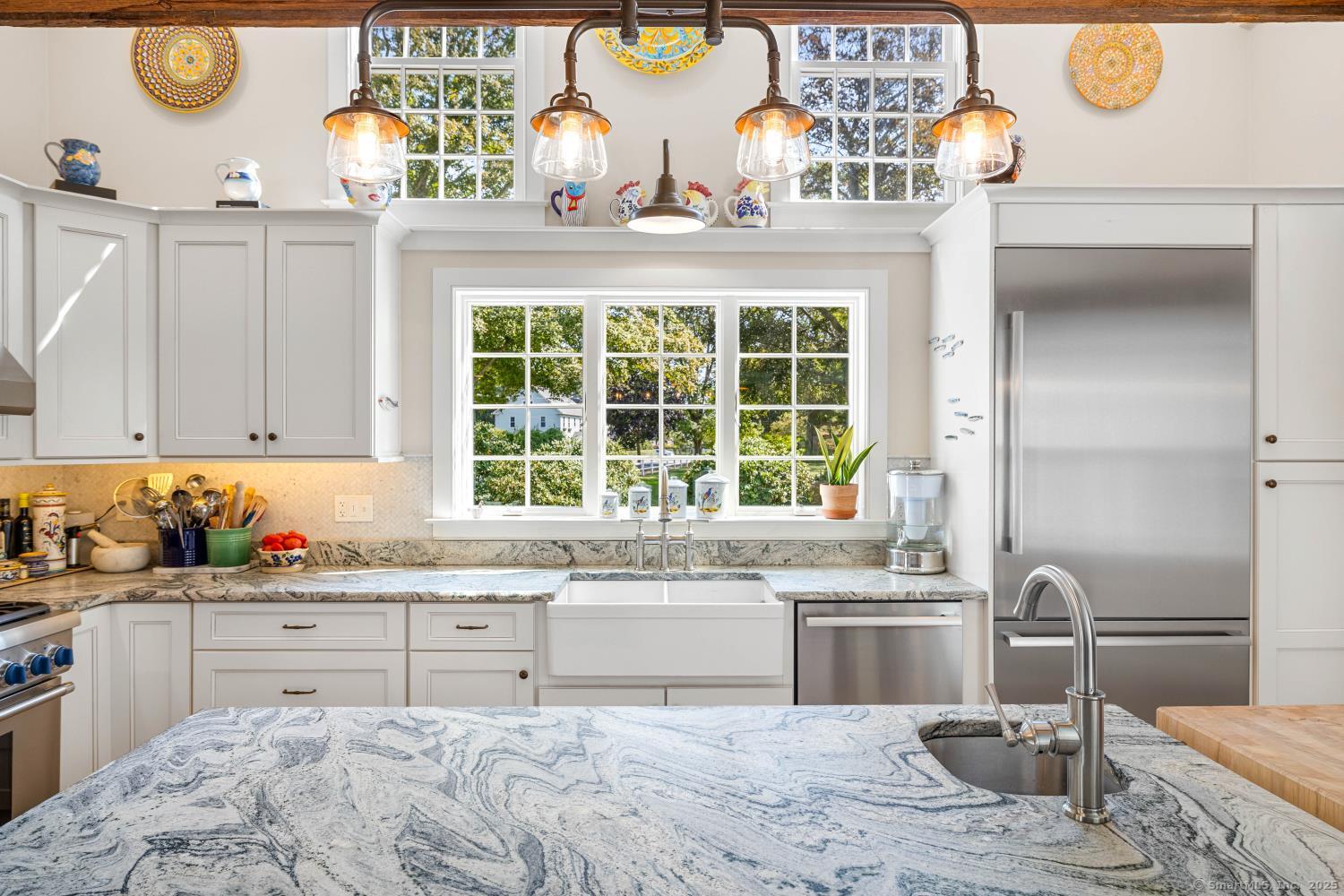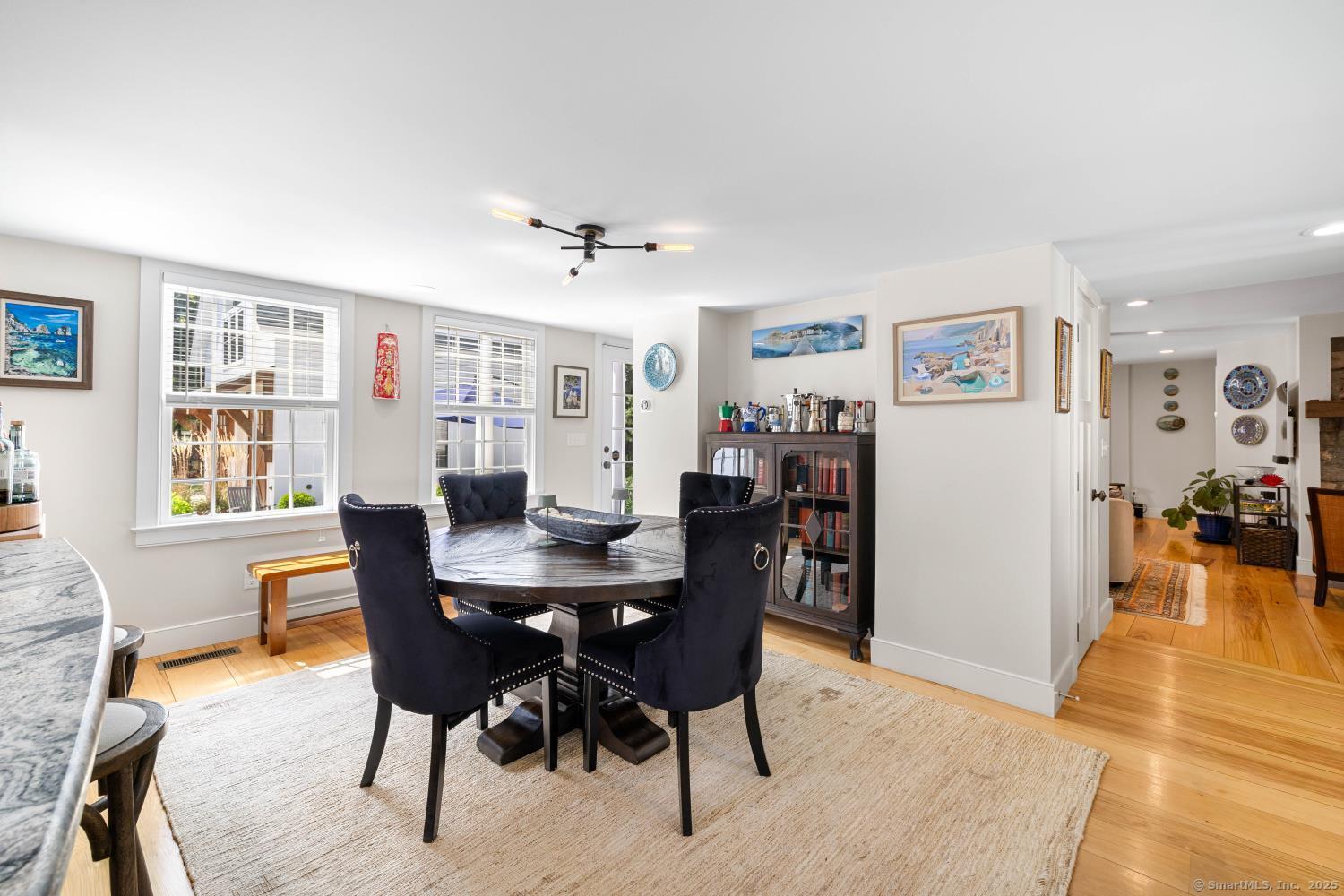 In the heart of Saybrook Village, this completely restored and remodeled vintage home blends modern convenience with timeless character, ideal for the discerning over-55 buyer who values both history and comfort or multi-generational buyers. The gourmet eat-in kitchen is a showpiece, with exposed beams, custom cabinetry, granite counters, a large island and vaulted ceilings, flowing seamlessly into the inviting living and den areas. French doors open from the living room to a private rear sitting porch, while a wood-burning fireplace enhances its warmth. Two gracious primary bedroom suites-one on the first floor-each feature fireplaces, elegant full baths and abundant closet space, providing flexibility and privacy. The upper level offers two additional bedrooms, one with its own fireplace, a full bath, and a balcony overlooking the main stairway. Throughout the home, wide-plank hickory hardwood floors, five fireplaces, and custom millwork highlight its craftsmanship. Modern upgrades include new Andersen windows, Therma-Tru doors, spray foam insulation, a high-efficiency 5-zone hydro-air system, on-demand hot water, natural gas service, and a new 1500-gallon septic system. A spacious mudroom with exterior access, dual laundry areas, and thoughtful design make daily living easy. Completing this exceptional property is a newly built oversized barn garage with workshop and finished living space, offering endless possibilities. Not in flood zone. Professional Photos to come!