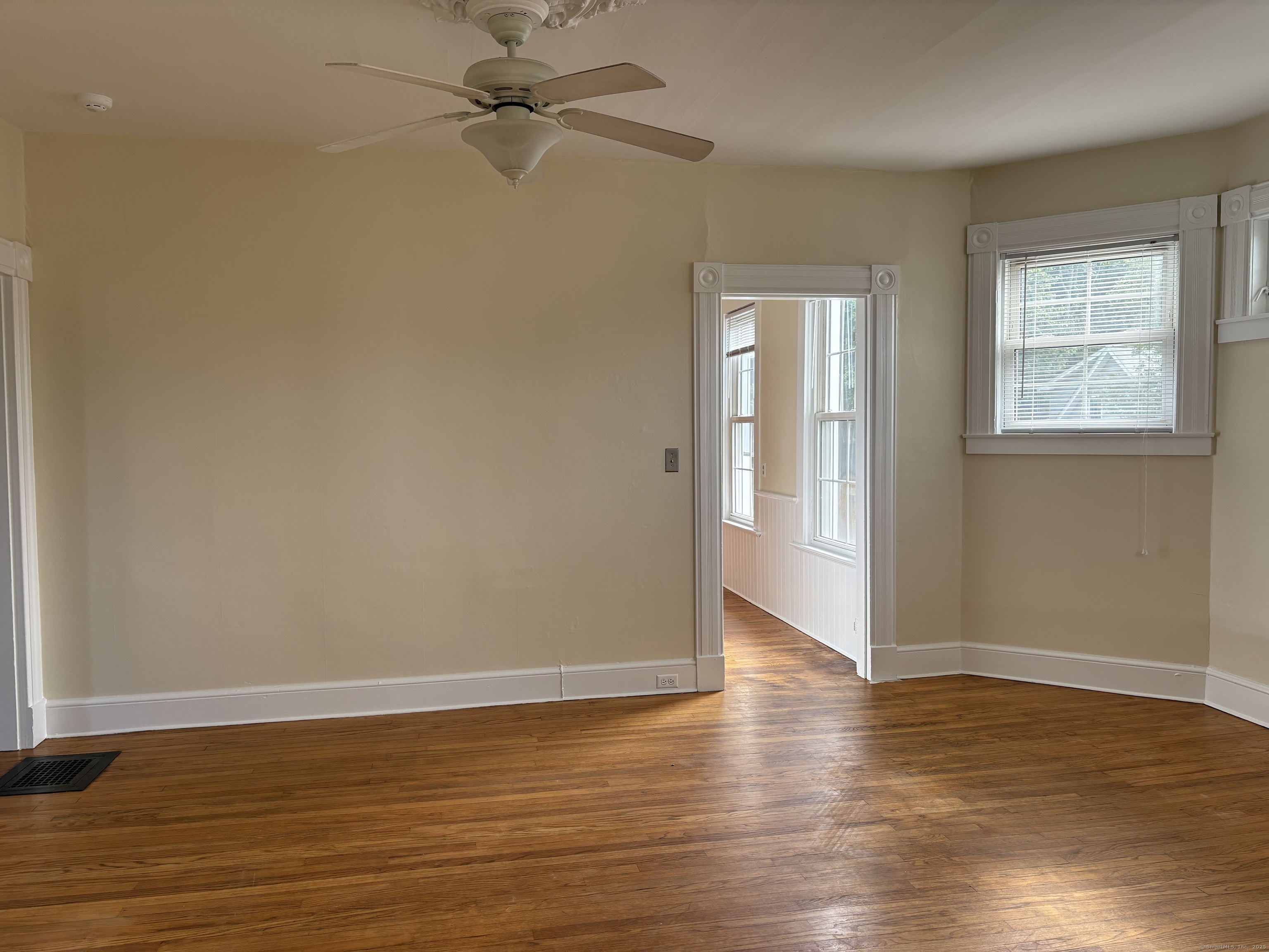Immaculate, spacious, freshly painted 2nd floor apartment with offstreet parking. Hardwood floors throughout, modern kitchen with pantry, and spacious rooms. Gas heat. Tenants pays their own heat, hot water, and electric. Washer and dryer provided. Close to several major highways. Minimum 650 credit score. 1 month security deposit and lease required.