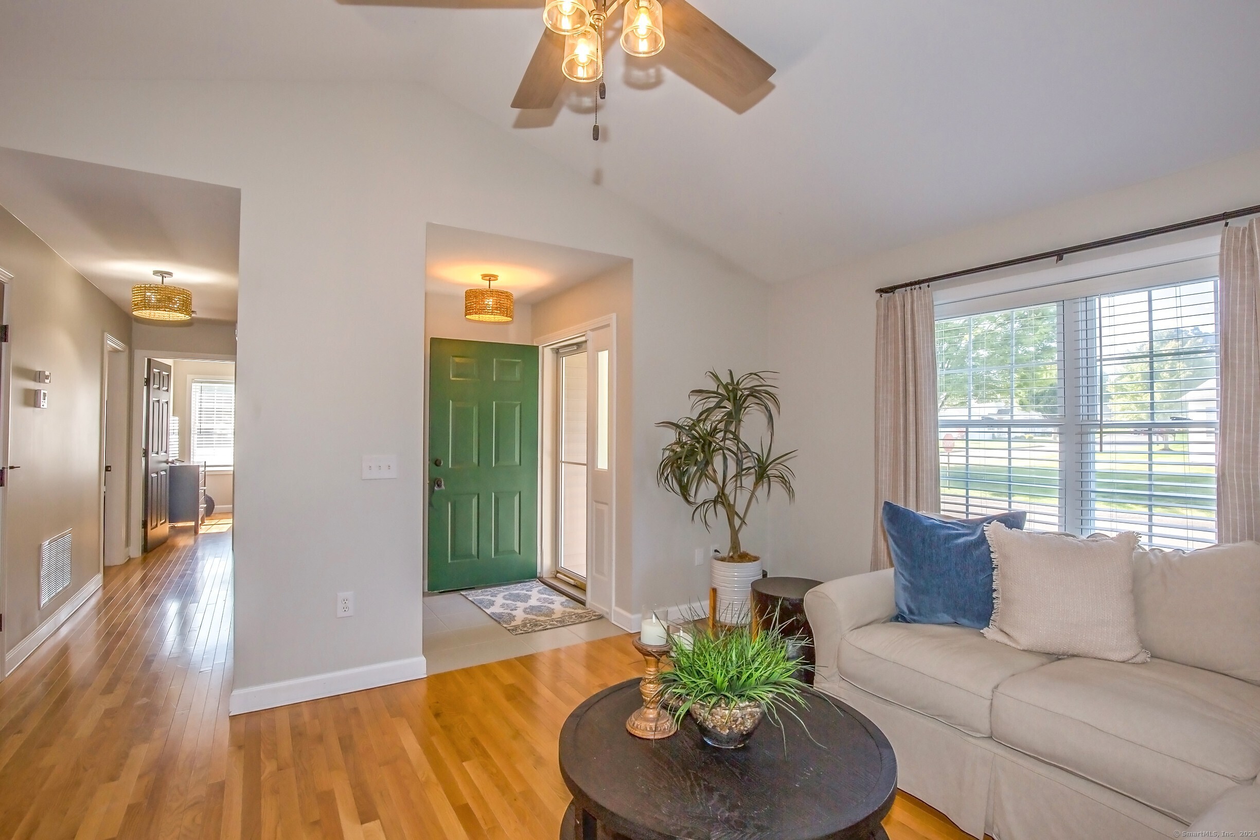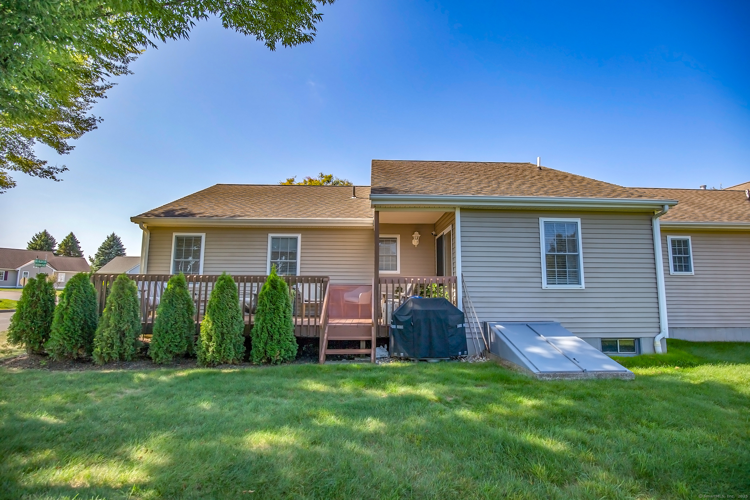 HIGHEST AND BEST BY TUESDAY 9/30 9AM Step into easy, single level living in this 55 plus end unit ranch condominium. From the moment you enter this beautifully and completely updated 2-bedroom, 2-bath home you'll notice the bright, open layout filled with natural light and modern finishes. The spacious living room with vaulted ceiling flows seamlessly into a stylish, updated kitchen featuring sleek cabinetry, all new stainless steel appliances, huge island and plenty of counter space for cooking and entertaining. The primary suite offers a private retreat with a refreshed full bath and generous walk-in closet space, while the second bedroom and full bath provide comfort for guests or a home office. Updates extend throughout the home, new stackable washer and dryer, new heating and cooling system and fresh paint throughout ensuring move-in ready convenience with nothing left to do but enjoy. Also, as an end unit, you'll appreciate the double sized deck and extra windows, plus the full basement for added space and storage. Take advantage of the condo's proximity to the club house to host events or for additional parking.
