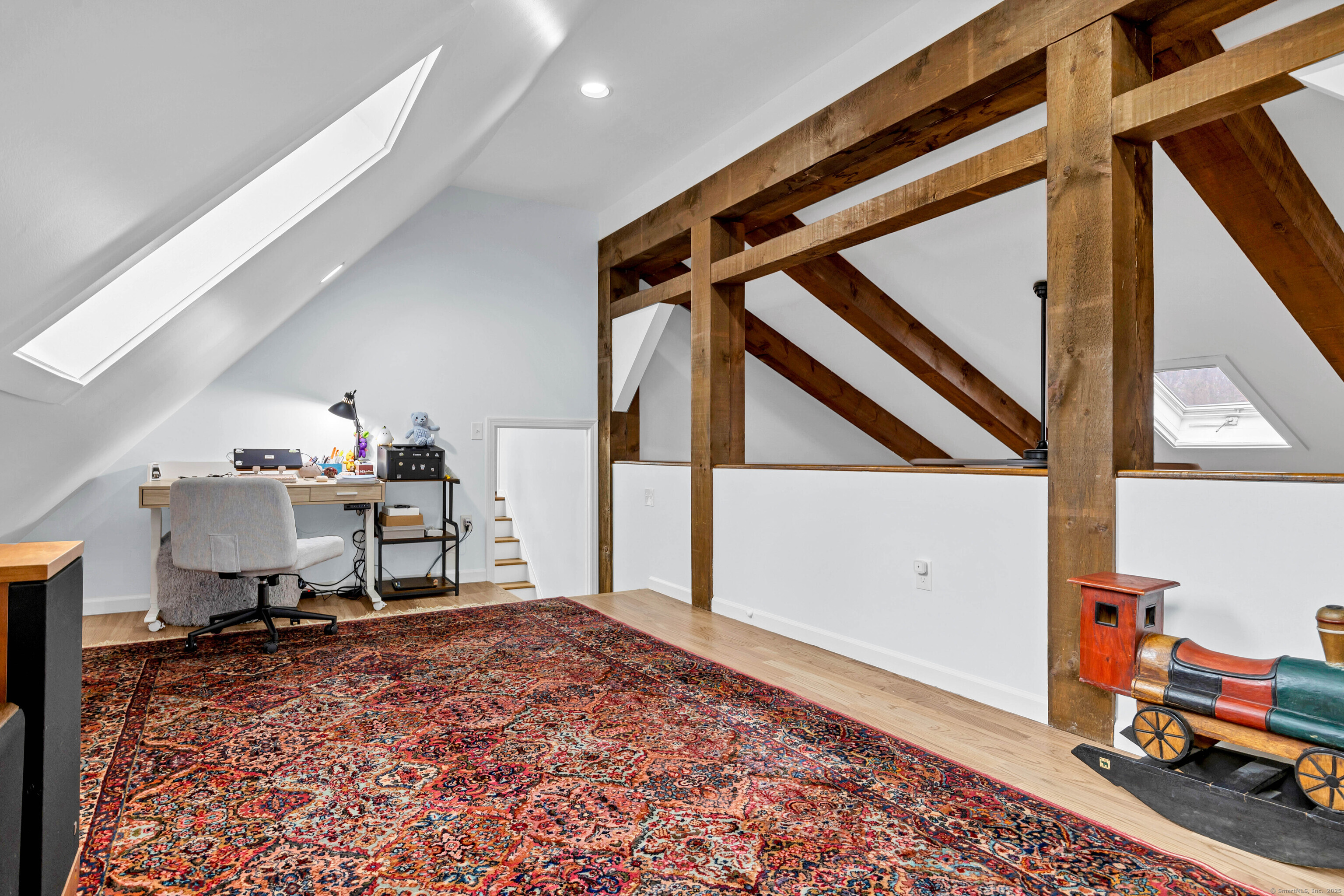 Located at the entrance of a quiet cul-de-sac, this expansive contemporary Cape sits on over an acre and offers 4 bedrooms and 2 full and 2 half baths. The first-floor primary suite and open-concept layout provide flexible living options. Features include an indoor 10ft-deep saltwater pool with sauna, a loft ideal for an office or den, and both attached and detached two-car garages, one with an EV charging station. Additional highlights include updated mechanicals, privacy fencing, and potential expansion space above the garage. Conveniently situated near Bishop's Orchards, Guilford High School, marinas, golf, restaurants, and the town beach, this home offers exceptional versatility, comfort, and location.