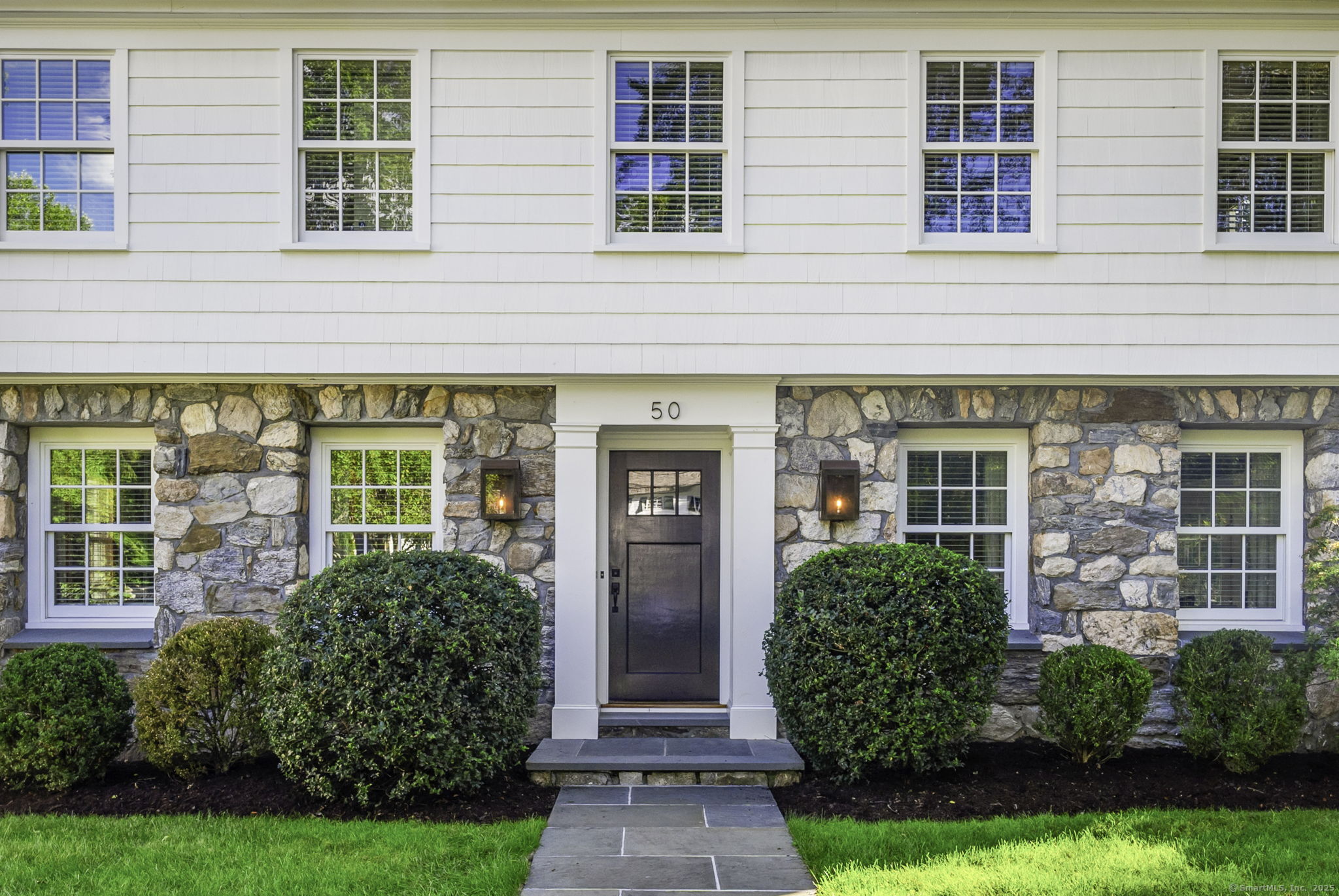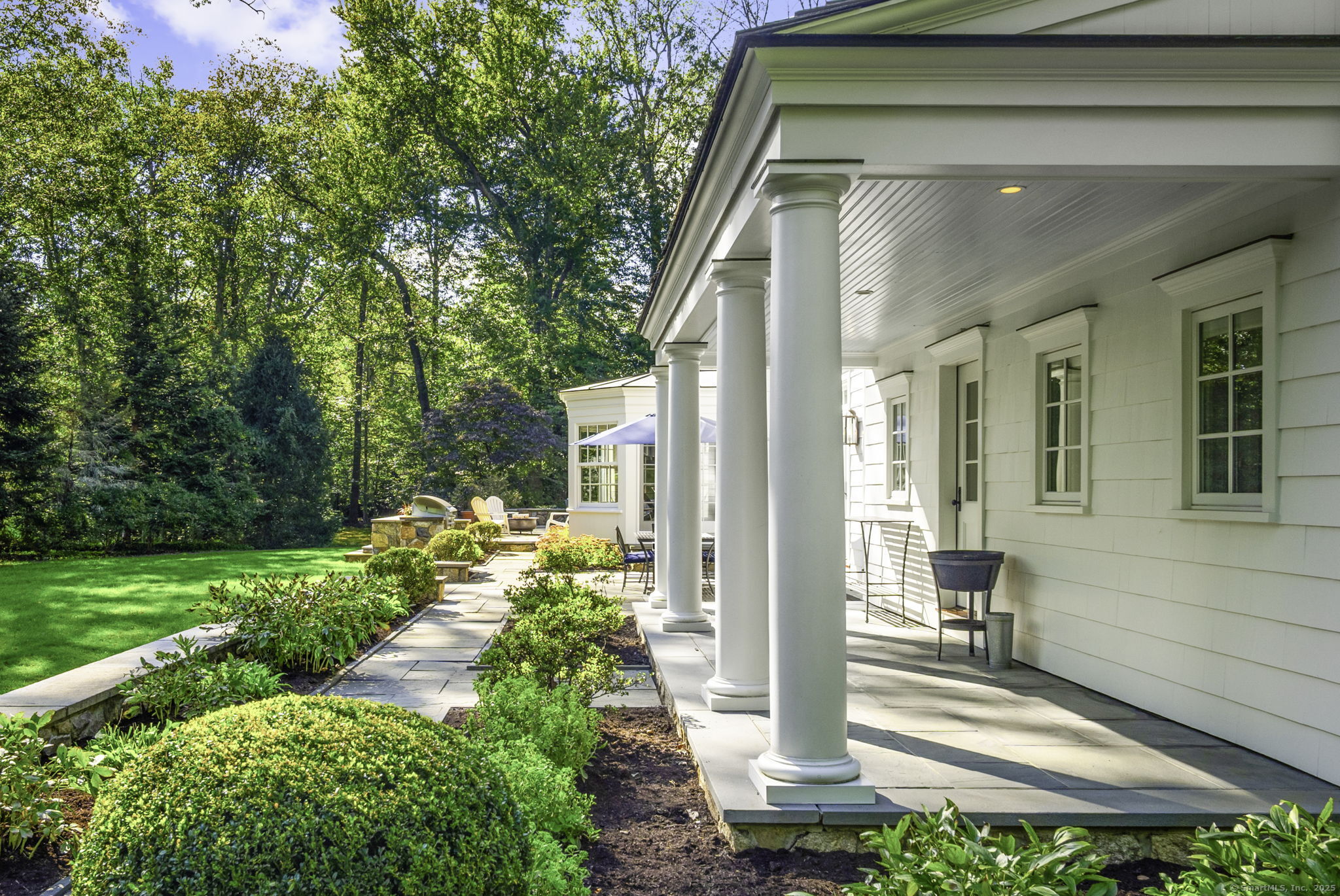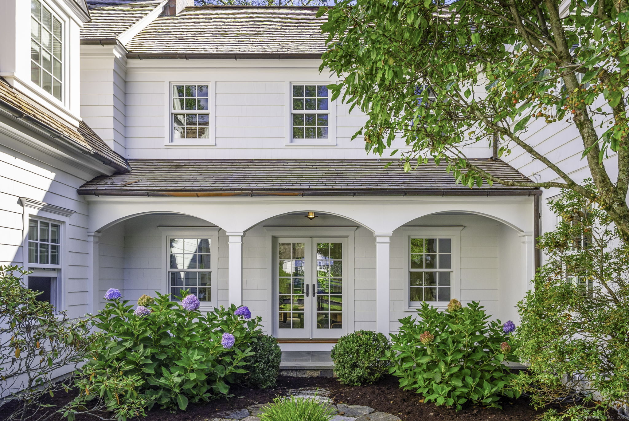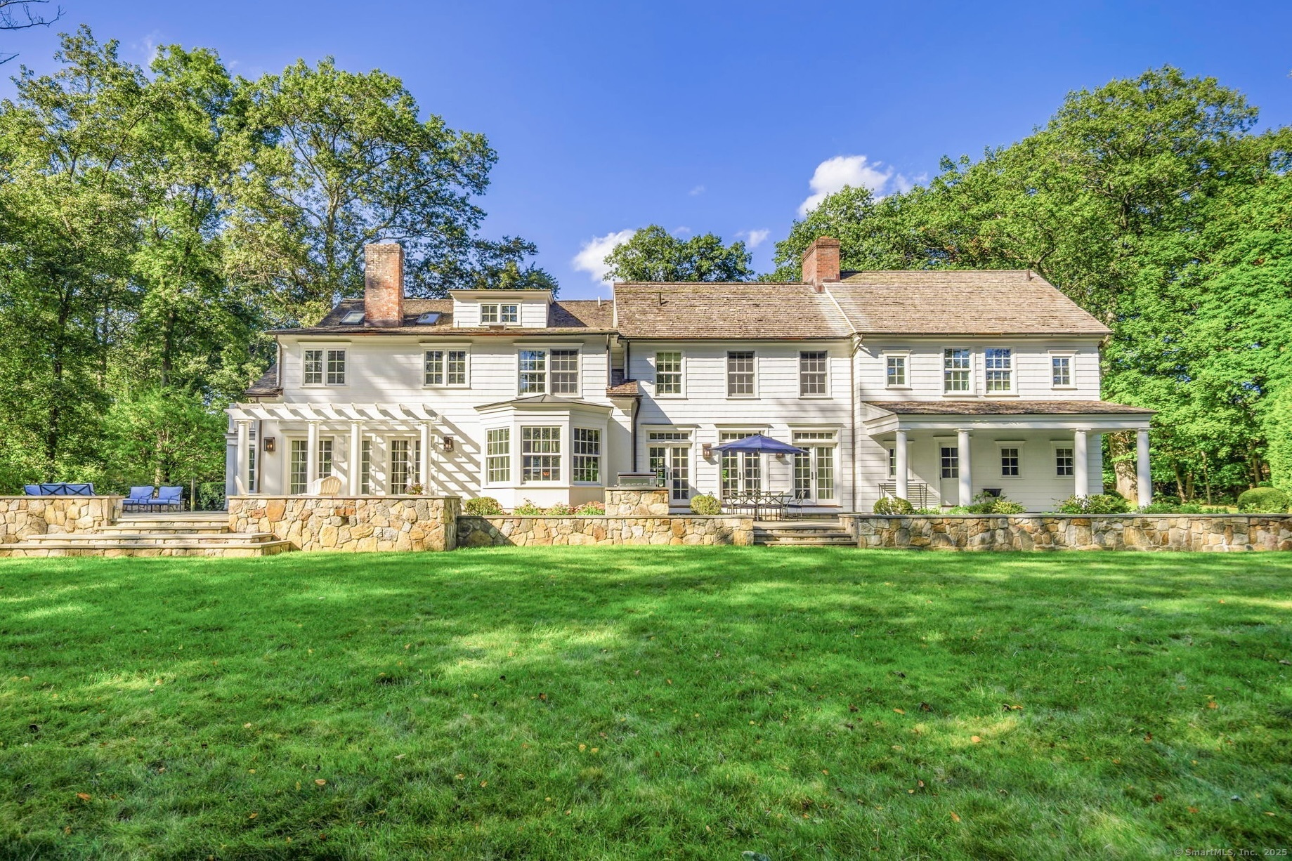 Originally built in 1929, this distinguished residence has been meticulously expanded and renovated to showcase time-honored design reimagined for contemporary living. A stone facade, crisp white exterior, and welcoming front porch set an elegant tone upon arrival. Inside, the home achieves a graceful balance between formal and informal living. Sunlit rooms framed by generous windows create an inviting warmth, while preserved details-including curved archways-honor the home's history. The thoughtful renovation enhanced both scale and flow, introducing expansive gathering areas, a chef's kitchen, and versatile spaces equally suited for entertaining or everyday living. Upstairs, the primary suite provides a serene retreat with a wood-burning fireplace and French doors opening to a private deck. Six additional bedrooms are generously proportioned and thoughtfully arranged to provide comfort and privacy. A large recreation room with custom built-ins adds flexibility, accommodating everything from work to play. Outdoors, the beautifully landscaped property features a bluestone patio with a built-in grill-creating an exceptional setting for al fresco dining, gatherings, and quiet enjoyment.