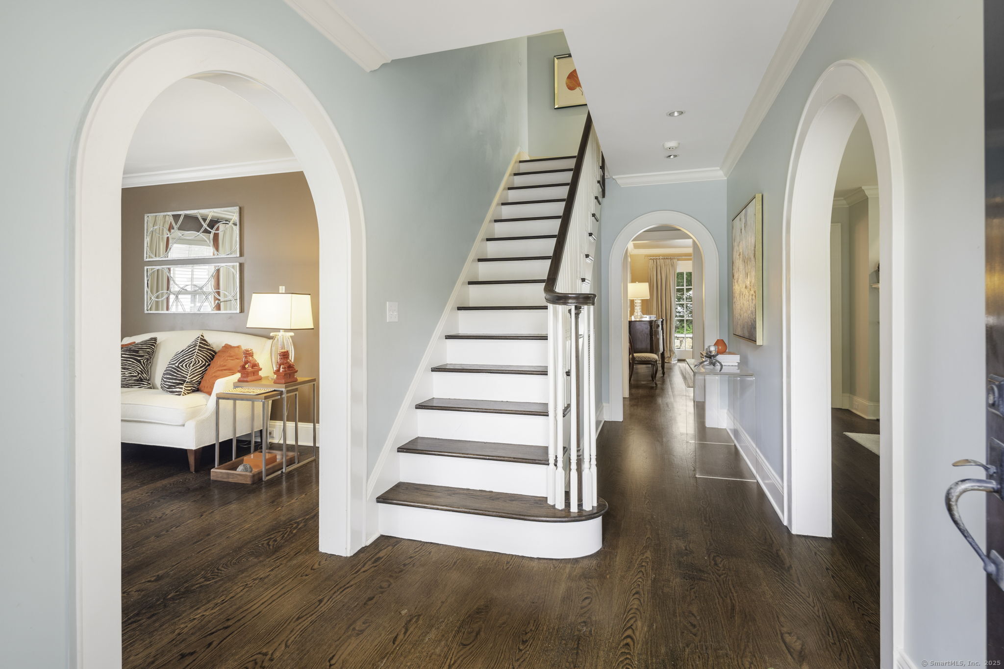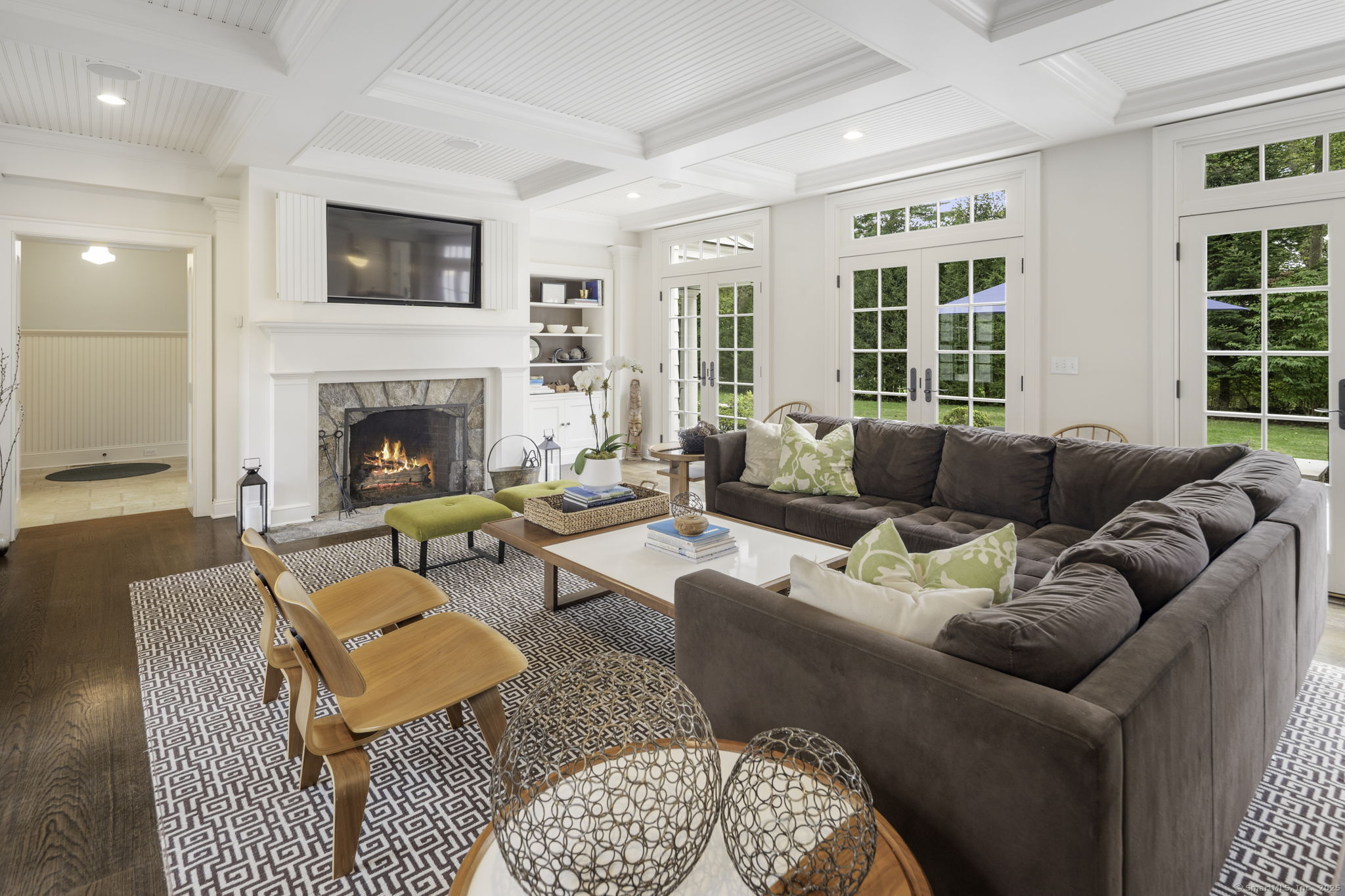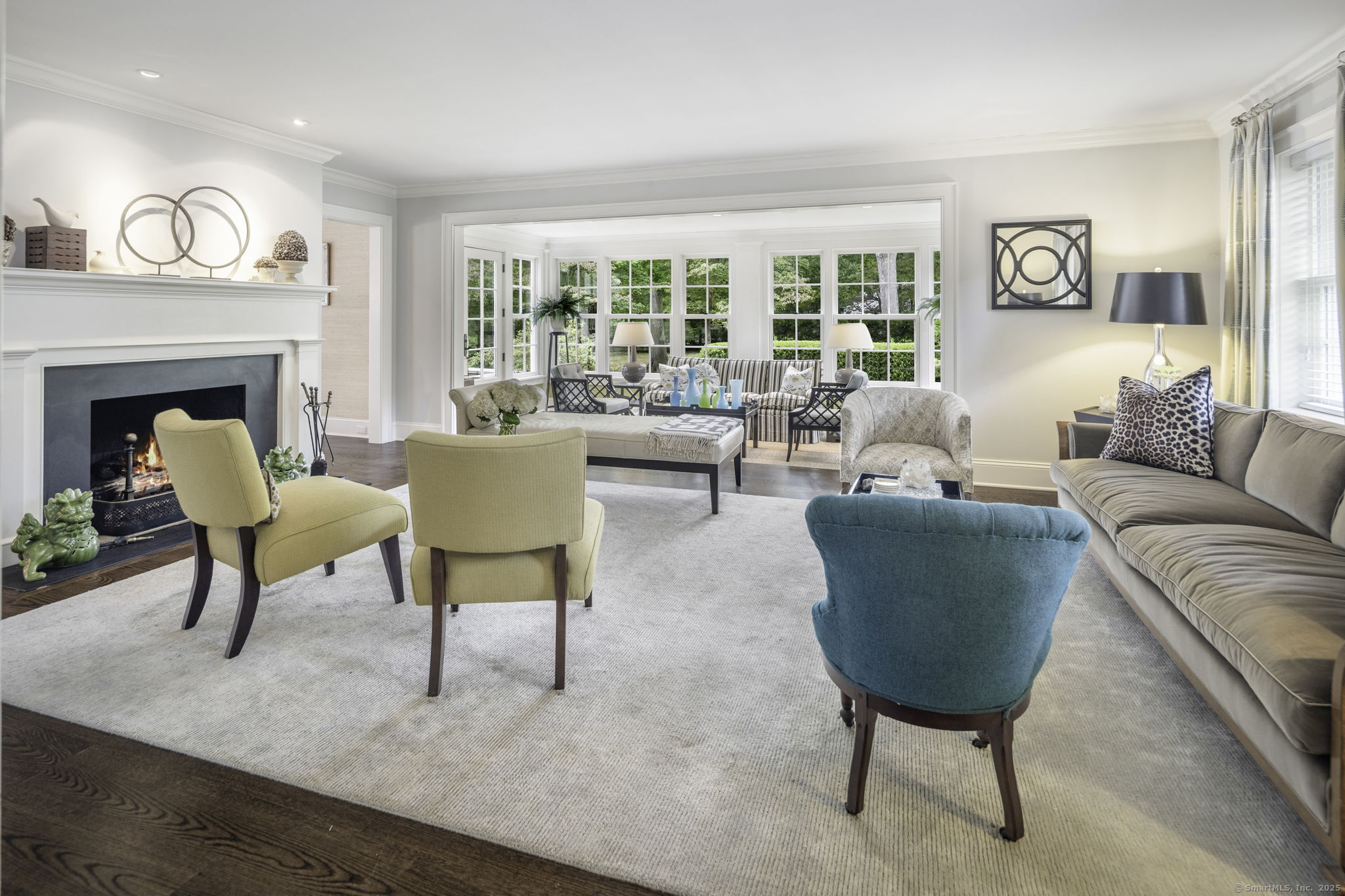 Originally built in 1929, this distinguished residence has been meticulously expanded and renovated to showcase time-honored design reimagined for contemporary living. A stone facade, crisp white exterior, and welcoming front porch set an elegant tone upon arrival. Inside, the home achieves a graceful balance between formal and informal living. Sunlit rooms framed by generous windows create an inviting warmth, while preserved details-including curved archways-honor the home's history. The thoughtful renovation enhanced both scale and flow, introducing expansive gathering areas, a chef's kitchen, and versatile spaces equally suited for entertaining or everyday living. Upstairs, the primary suite provides a serene retreat with a wood-burning fireplace and French doors opening to a private deck. Six additional bedrooms are generously proportioned and thoughtfully arranged to provide comfort and privacy. A large recreation room with custom built-ins adds flexibility, accommodating everything from work to play. Outdoors, the beautifully landscaped property features a bluestone patio with a built-in grill-creating an exceptional setting for al fresco dining, gatherings, and quiet enjoyment.