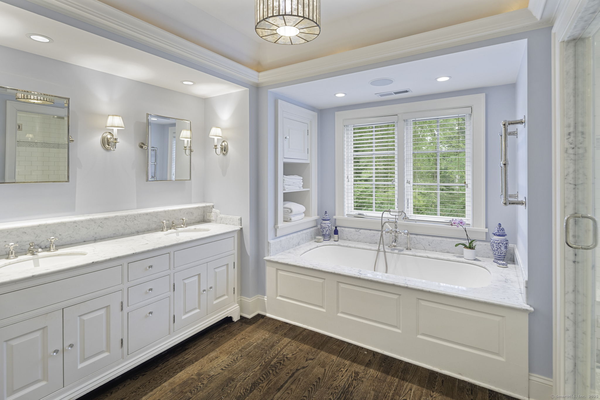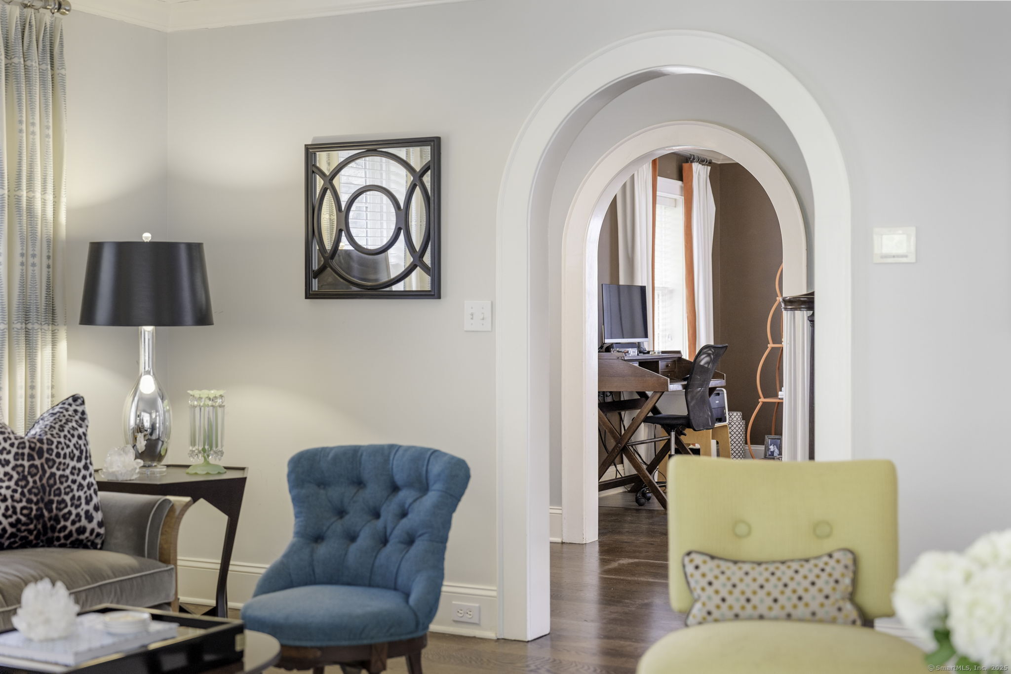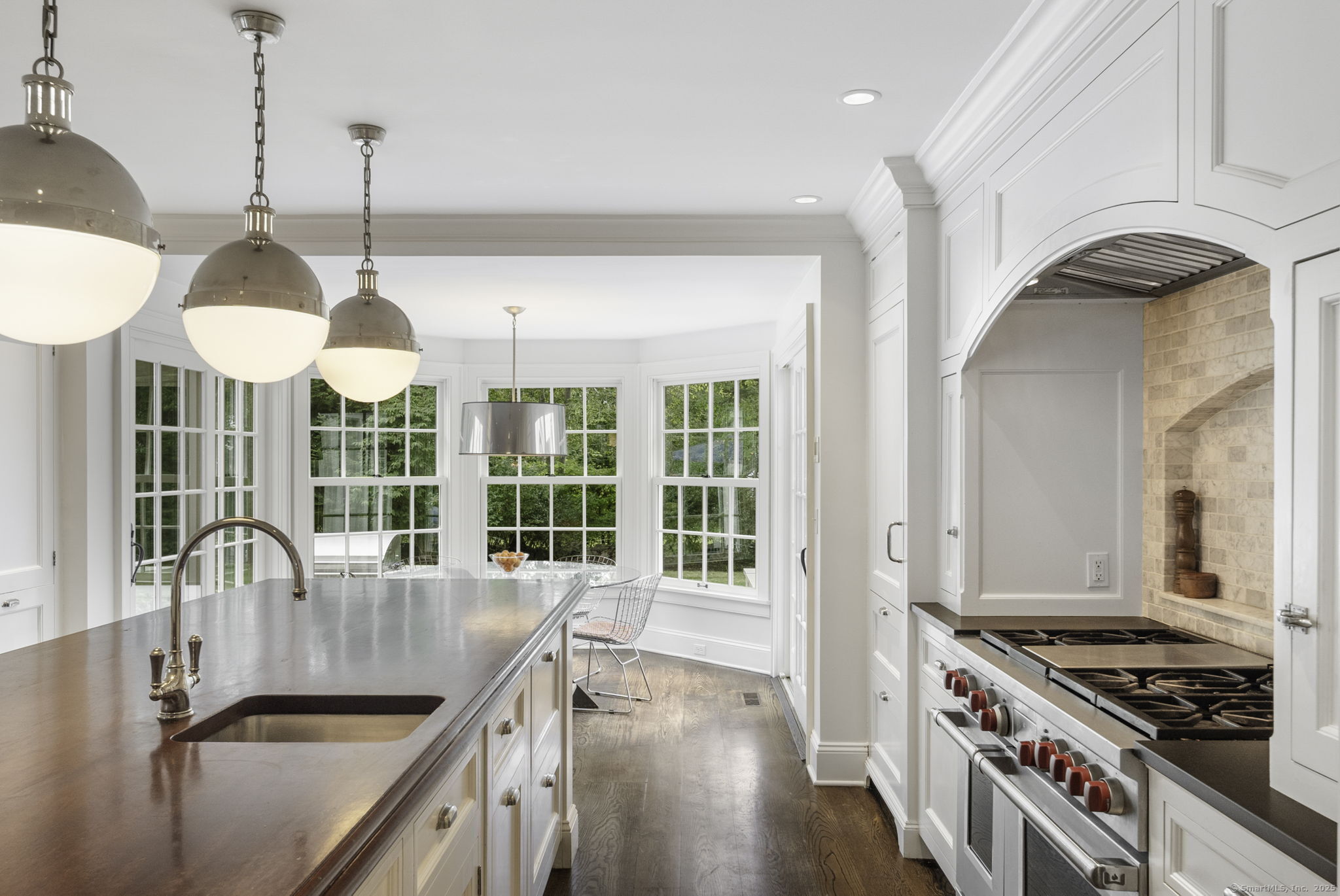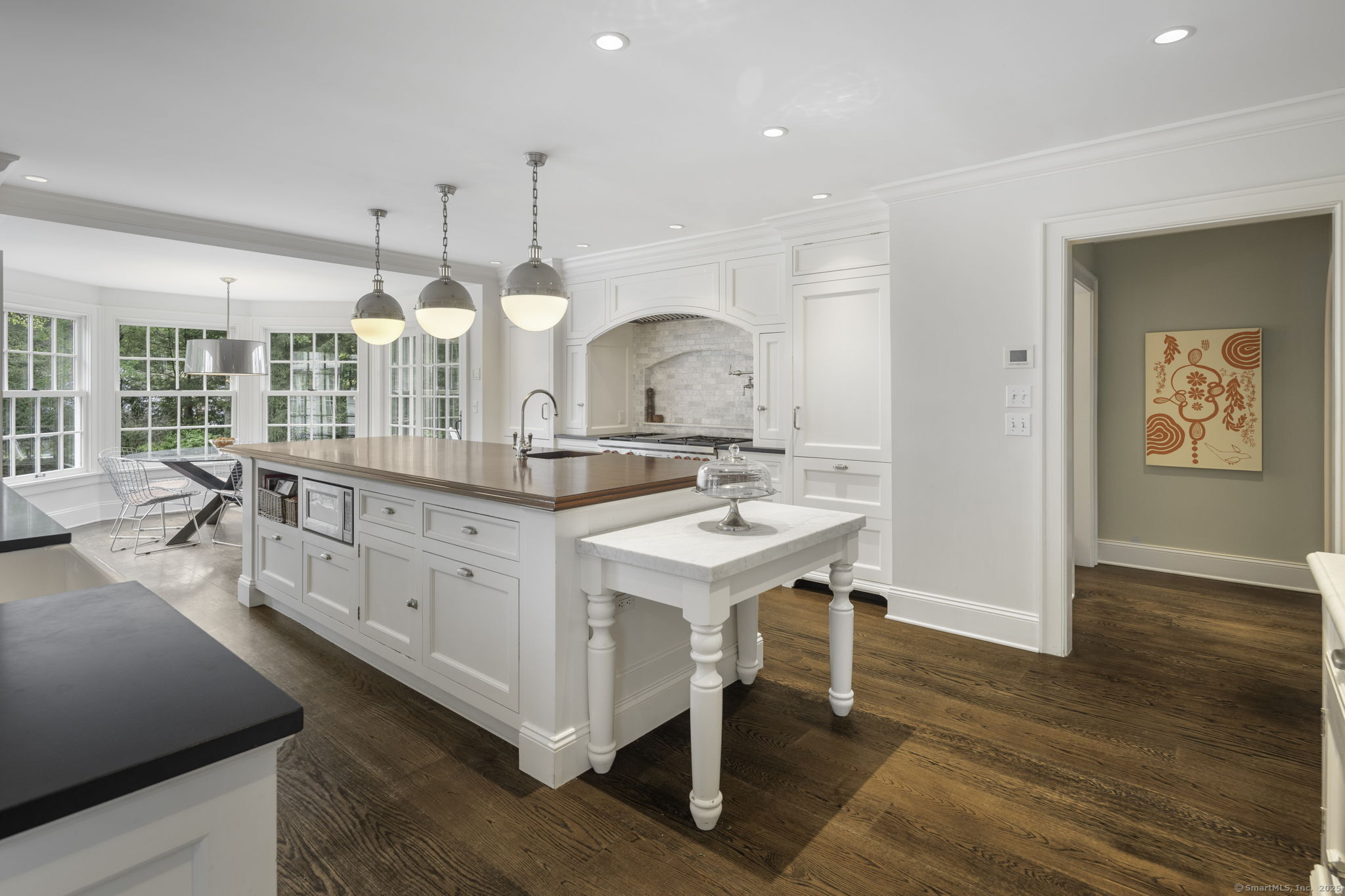 Originally built in 1929, this distinguished residence has been meticulously expanded and renovated to showcase time-honored design reimagined for contemporary living. A stone facade, crisp white exterior, and welcoming front porch set an elegant tone upon arrival. Inside, the home achieves a graceful balance between formal and informal living. Sunlit rooms framed by generous windows create an inviting warmth, while preserved details-including curved archways-honor the home's history. The thoughtful renovation enhanced both scale and flow, introducing expansive gathering areas, a chef's kitchen, and versatile spaces equally suited for entertaining or everyday living. Upstairs, the primary suite provides a serene retreat with a wood-burning fireplace and French doors opening to a private deck. Six additional bedrooms are generously proportioned and thoughtfully arranged to provide comfort and privacy. A large recreation room with custom built-ins adds flexibility, accommodating everything from work to play. Outdoors, the beautifully landscaped property features a bluestone patio with a built-in grill-creating an exceptional setting for al fresco dining, gatherings, and quiet enjoyment.